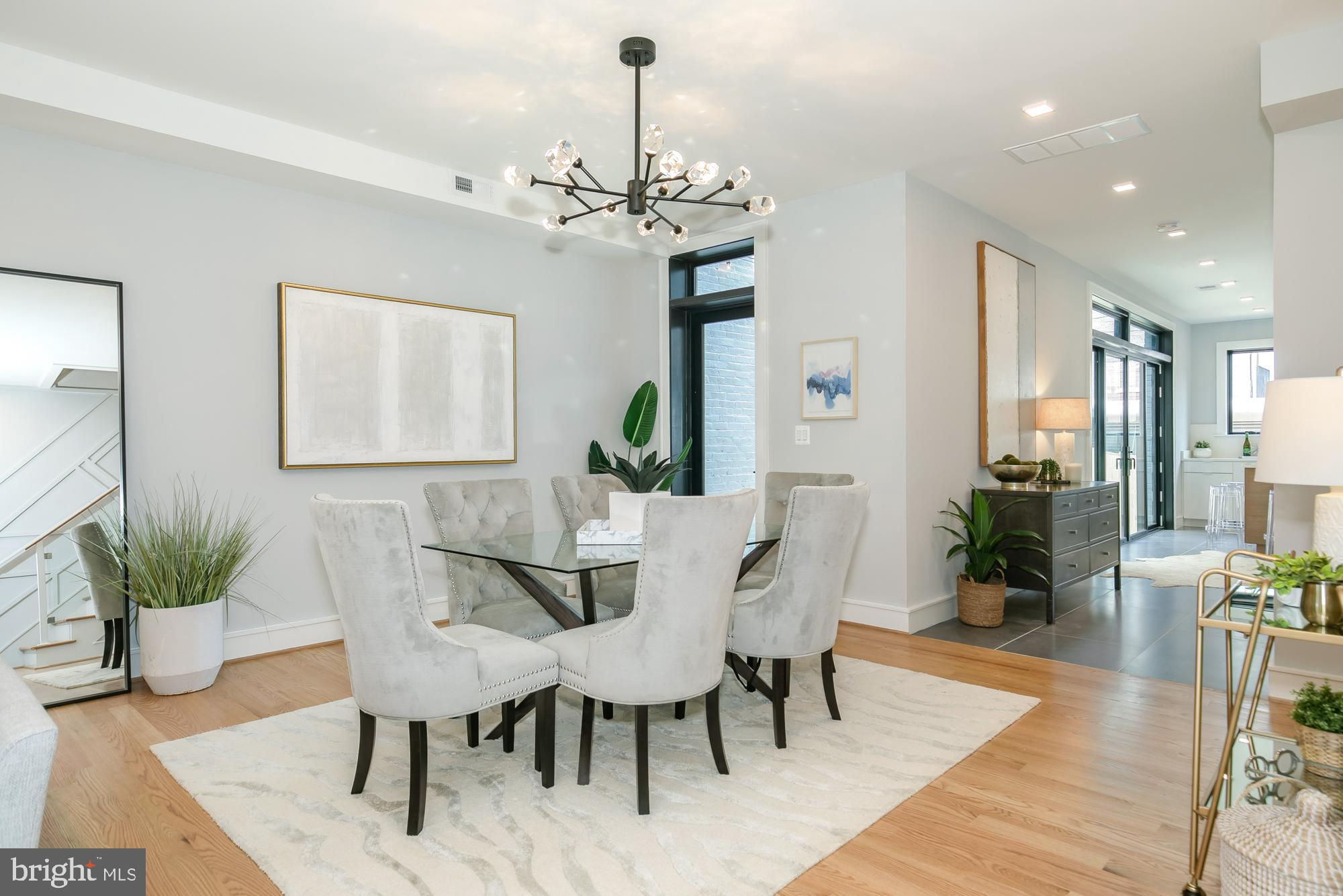 Lovely, essentially brand new Logan Federal rowhome on a tree-lined residential block steps to some of the highest rated restaurants & nightspots! 1015 O has been expertly crafted with all custom designs throughout three, deep levels. This includes architectural square recessed lighting; sand-in-place oak hardwood floors; a sleek kitchen with quartz counters, a moveable island with storage, cabinet-front appliances including Jenn-Air & Asko, and enviable step-in pantry; 3.5 baths with floating cabinets with toe lighting and Ceasarstone counters; a customized, lighted primary closet; accent relief walls and custom glass/steel railing; plenty of storage space throughout. Additional features include windows, roof, and all-home systems including electrical & plumbing as of 2023. The capstone on this new home is its outdoor spaces: a north/south roofdeck with a built-in wetbar with honed granite counters, cabinets & sink, a patio off the kitchen that leads to the secure parking; and finally a balcony off the top floor bedroom. All this and moments to hotspots Nina May, LGP and Supra, trendy Blagden Alley, Logan Circle, Whole Foods plus 14th Street boutiques, and more in this central location!