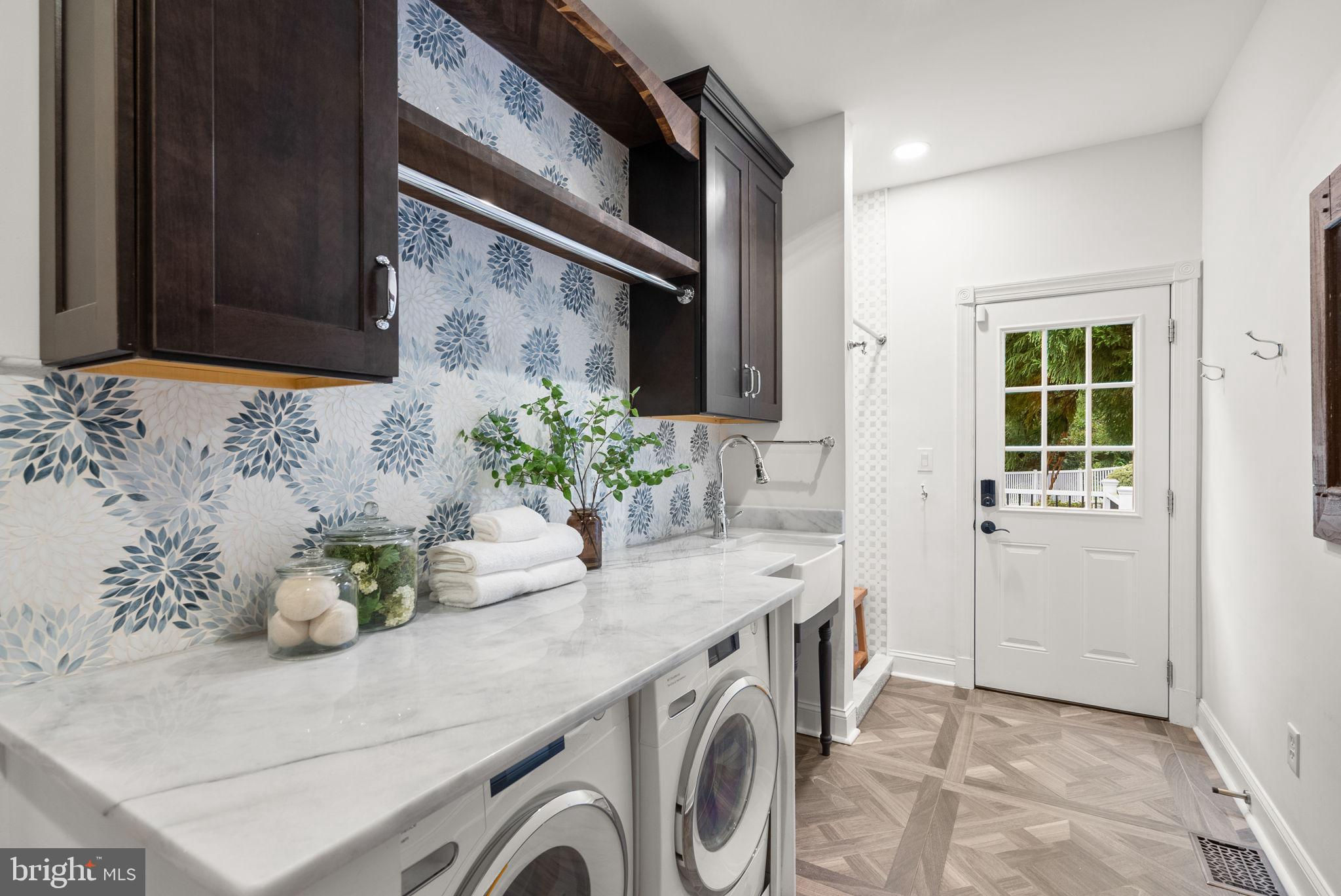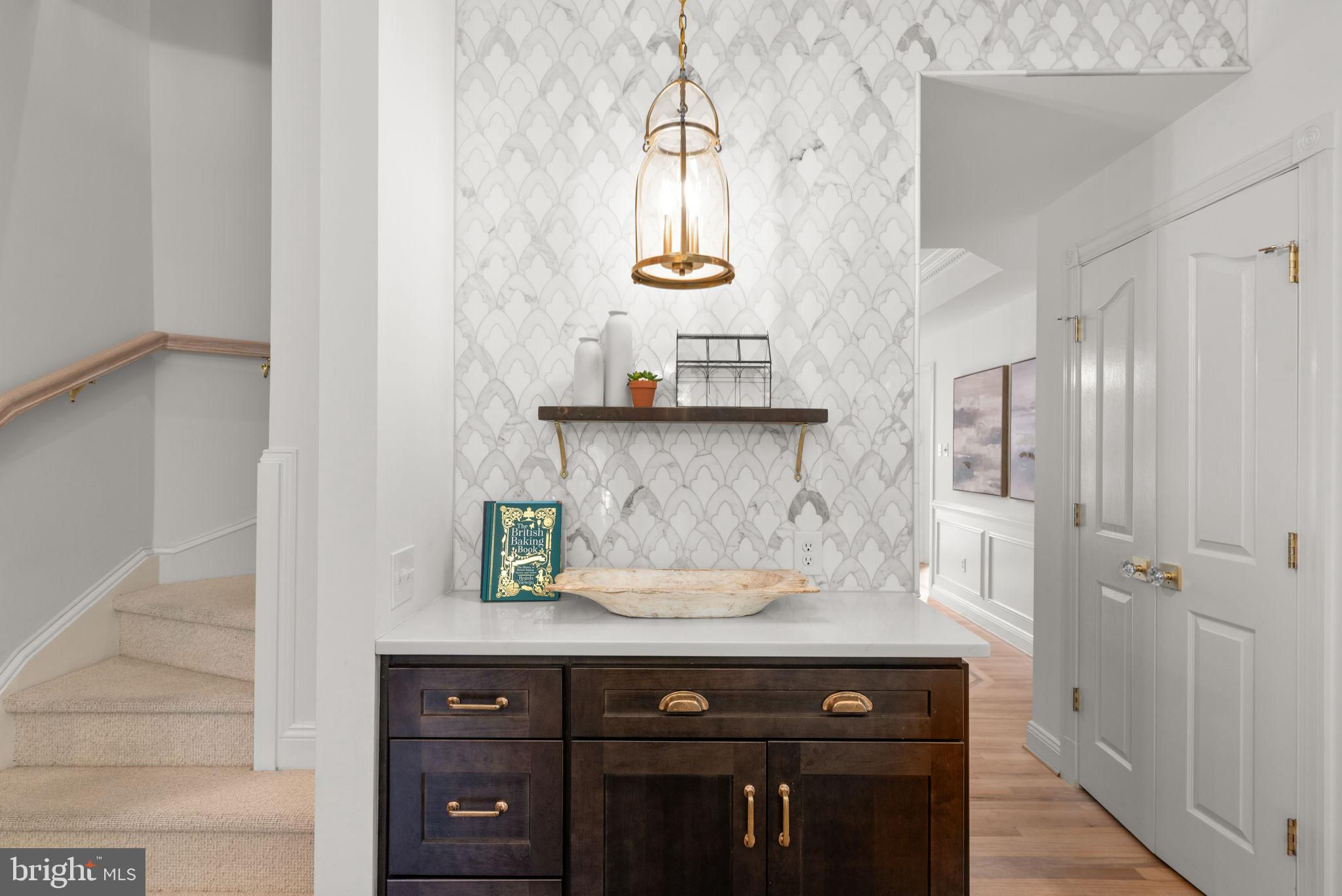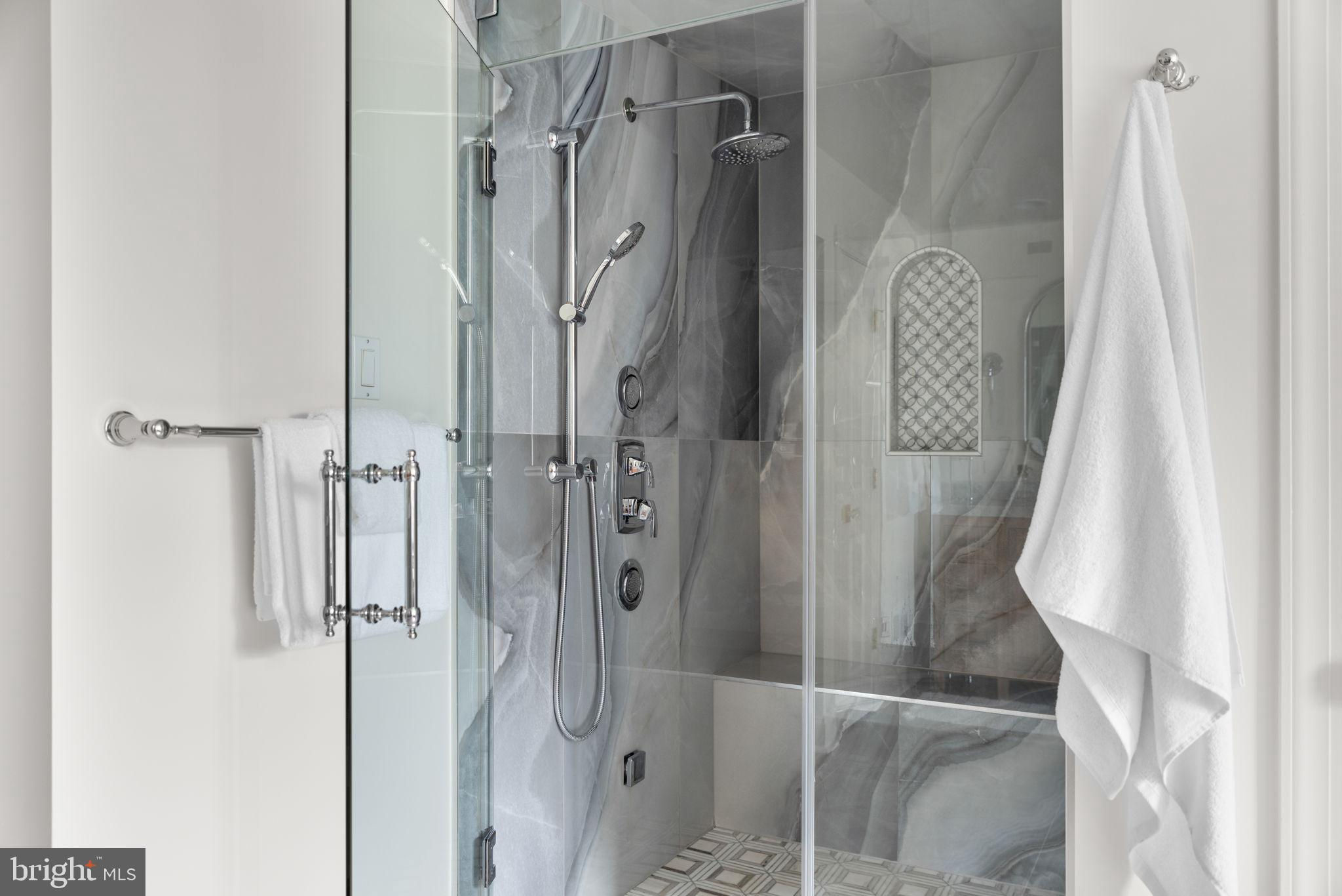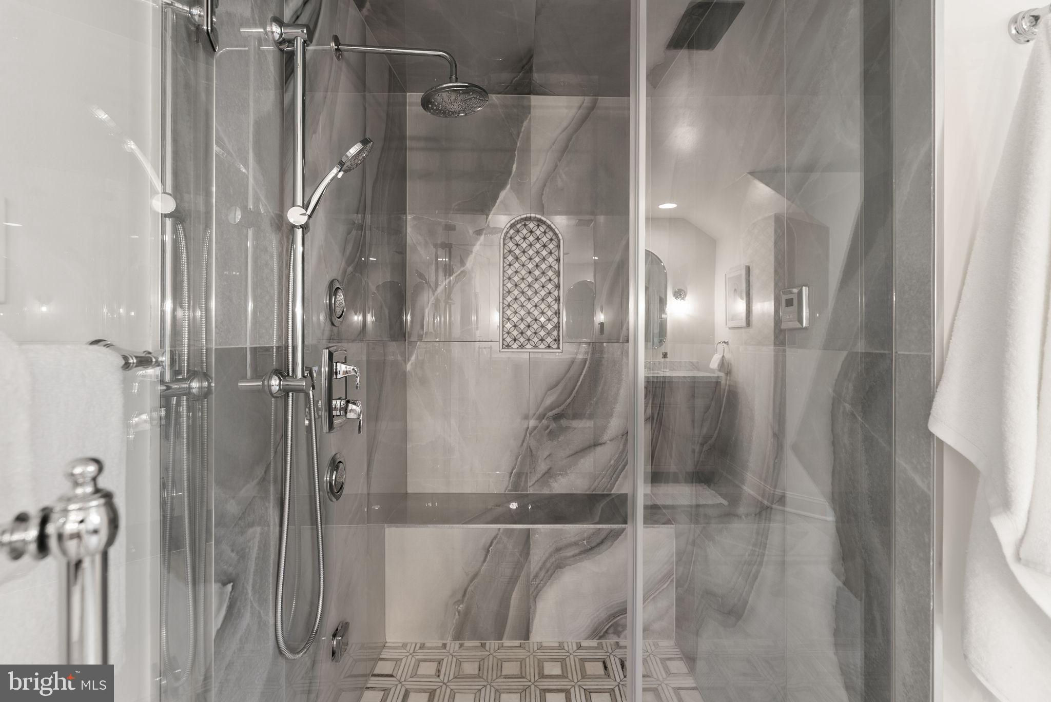 Welcome to The Kingsway Haven, a remarkable residence showcasing an array of indoor and outdoor spaces curated for luxurious living. Completely reimagined and thoughtfully renovated in 2022, this property is truly a haven for clean living with refined upgrades and wellness-driven design. The home backs to forest preserve and is tucked on a 0.7-acre homesite on a quiet cul-de-sac in the desired Kingsbridge community in Howard County’s Centennial School District. This prime location in Ellicott City is convenient to dining, shopping, parks, schools, country clubs, commuter routes, BWI airport, and more. Exterior amenities reflect a resort-style sanctuary. A Trex® deck invites al fresco dining, and overlooks a fenced saltwater pool and spa surrounded by a stone patio and mature landscaping. Meandering stepping-stone pathways lead to the custom garden house or art studio, the stacked stone fire pit area, and the spectacular imported Belgian Orangerie—a truly dreamy space for growing plants, cozying up with a morning coffee, or hosting magical starlit dinners. Inside, hand-sanded oiled oak floors, bespoke built-ins, and soaring windows fill the interior with natural light and elegance. A two-story foyer with a sparkling chandelier opens to the formal living room and the formal dining room with custom inlay floors, wainscoting and dentil mouldings, a tray ceiling, and chandelier. Ahead, the two-story great room unfolds, defined by elegant columns, vaulted ceilings, and a marble mosaic fireplace framed by treetop views through dramatic windows. Continue and find a chic powder room and a study with French doors, elegant mouldings, built-ins, and a bay window. The English-inspired kitchen is a chef’s dream equipped with imported marble mosaics on walls and backsplash, Italian parquet tile floors, an oversized tiered quartz island with breakfast bar seating, rich cabinetry, pendant lighting, and an appliance suite including a Gaggenau® plumbed steam oven, Thermador® 5-burner range, Elica® designer hood, and Bosch® 800 Series refrigerator, oven, and dishwasher. An English café station with a built-in coffee bar and a custom English pantry complete this gourmet space, along with a breakfast area which accesses the deck. Just beyond, a mudroom features built-in cubbies, a built-in laundry station, cabinetry, plus a shower or dogwash station providing practical convenience for days spent enjoying the pool and outdoors. Upstairs, rich hardwoods grace the floors and hallway leading to the Cotswolds-inspired primary suite. This serene retreat boasts two cedar walk-in closets, a tray ceiling, and a sitting room with columns and custom built-ins. The spa-like bath offers indulgent amenities: a copper soaking tub, a steam shower, a dual-sink vanity, a fireplace, a linen closet, and built-in shelving. Three additional bedrooms and beautiful bathrooms complete the upper level—including one with a whimsical built-in reading nook. A secondary rear staircase leads down to the kitchen. Downstairs, the finished lower level is highlighted by wide-plank oak floors, a recreation lounge anchored by a stone-surround fireplace with built-in bookcases, and several defined spaces perfect for dining, entertaining, or playing. A versatile bonus room, a full bath, a walkup to the yard, and a fitness or yoga studio with mirrored walls and built-ins complete this spacious level. This home was updated in 2022 with extensive and expensive upgrades including all new HardiePlank siding and trim, bronze gutters with integrated gutter guards, roof with CertainTeed Landmark Pro Designer architectural shingles with advanced underlayment and flashing, all new shutters throughout, a new Trane HVAC system, a whole-house air filter and humidifier, and a new cast iron sump pump. Move right in and immediately enjoy the wonderful turn-key value and lifestyle. This is more than a residence—it’s a haven for elevated living. Let your new memories begin!