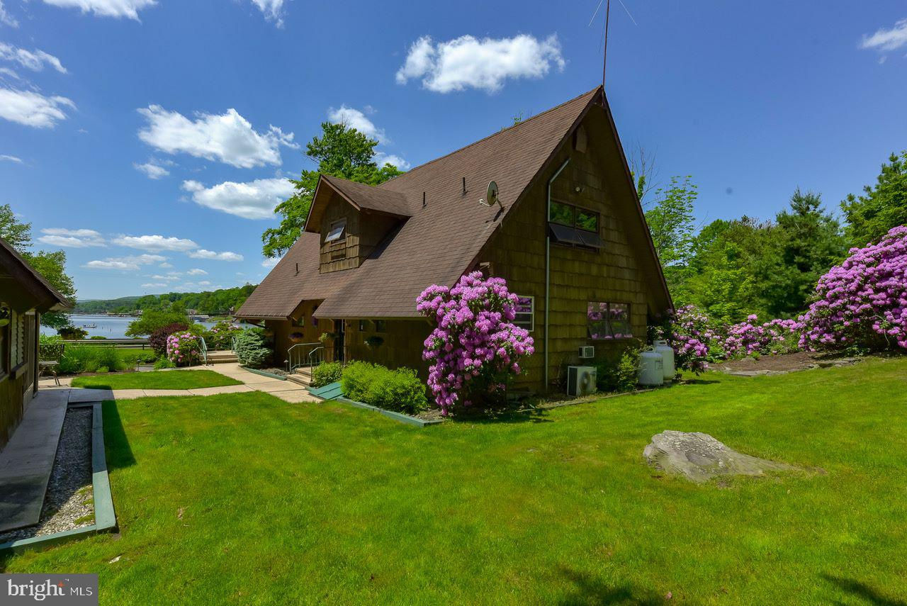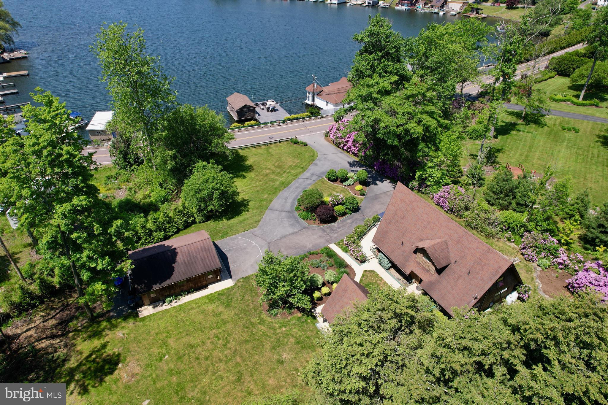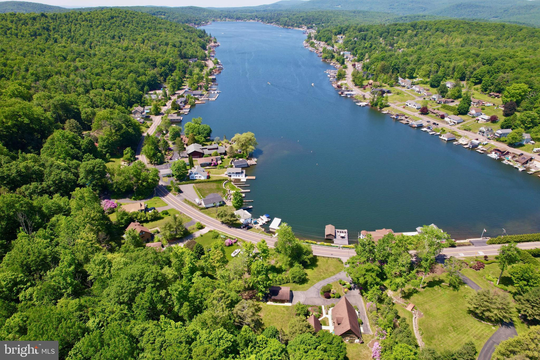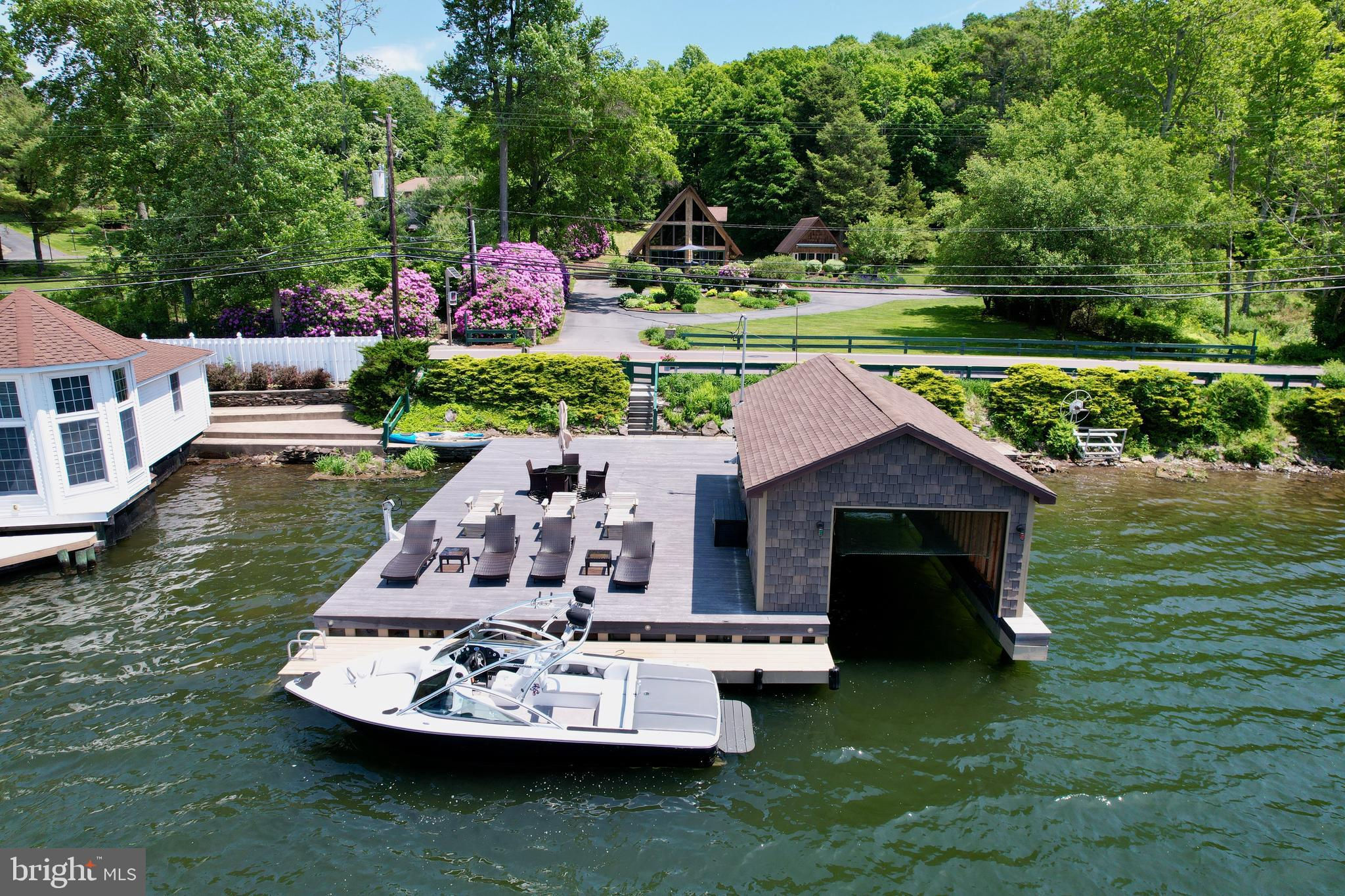 This A-frame house is a stunning retreat nestled on 2 flat acres with 128' of lake front on Alderson Cove, the perfect location on Harvey's Lake. Lush, manicured lawns, picturesque views, and a cozy, rustic atmosphere provides a year-round retreat. The house features custom walnut interior, 3 bedrooms, a 5-bunk dorm loft, 4 bathrooms, detached 2-car garage, and a private entertainment lodge with sliding glass doors and a fully equipped kitchen. The boathouse and new dock sit on the quiet end of the lake where a natural shoal keeps boat traffic to a minimum ensuring a tranquil and private waterfront experience. Whether you're boating, fishing, or simply soaking in the stunning lake views, this A-frame house offers a perfect blend of relaxation and rustic charm. ***AGENTS PLEASE SEE PRIVATE REMARKS.