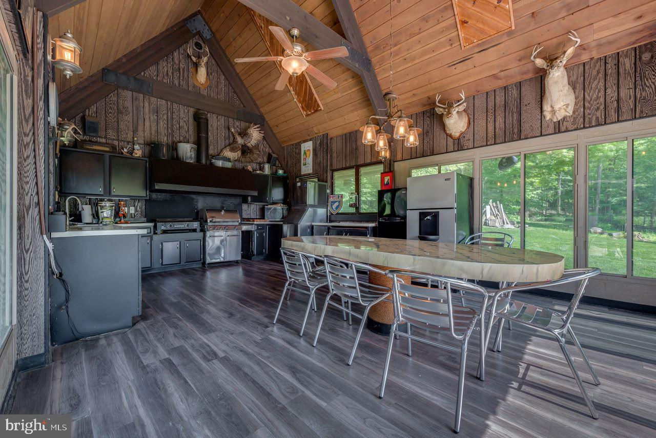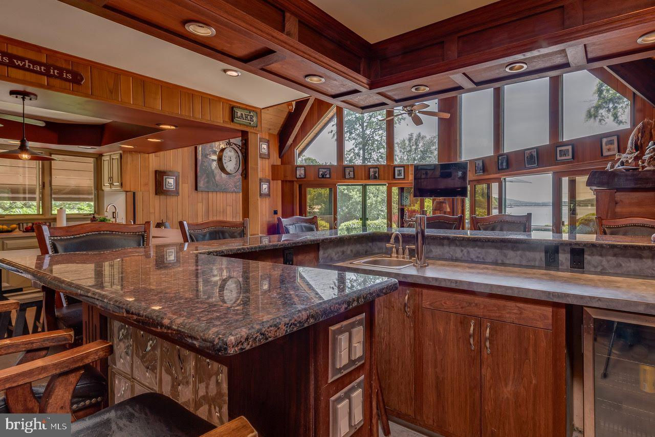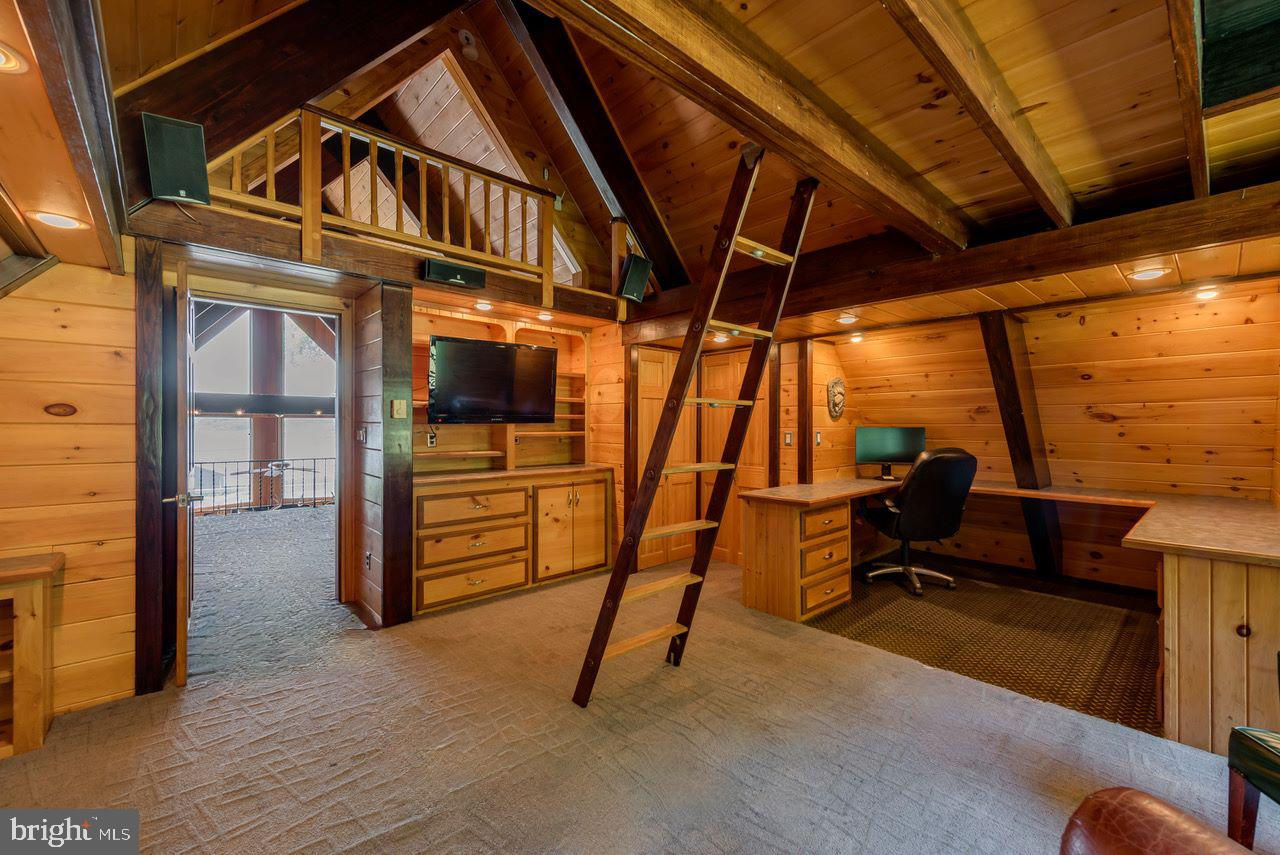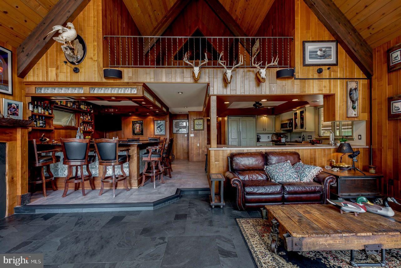 This A-frame house is a stunning retreat nestled on 2 flat acres with 128' of lake front on Alderson Cove, the perfect location on Harvey's Lake. Lush, manicured lawns, picturesque views, and a cozy, rustic atmosphere provides a year-round retreat. The house features custom walnut interior, 3 bedrooms, a 5-bunk dorm loft, 4 bathrooms, detached 2-car garage, and a private entertainment lodge with sliding glass doors and a fully equipped kitchen. The boathouse and new dock sit on the quiet end of the lake where a natural shoal keeps boat traffic to a minimum ensuring a tranquil and private waterfront experience. Whether you're boating, fishing, or simply soaking in the stunning lake views, this A-frame house offers a perfect blend of relaxation and rustic charm. ***AGENTS PLEASE SEE PRIVATE REMARKS.