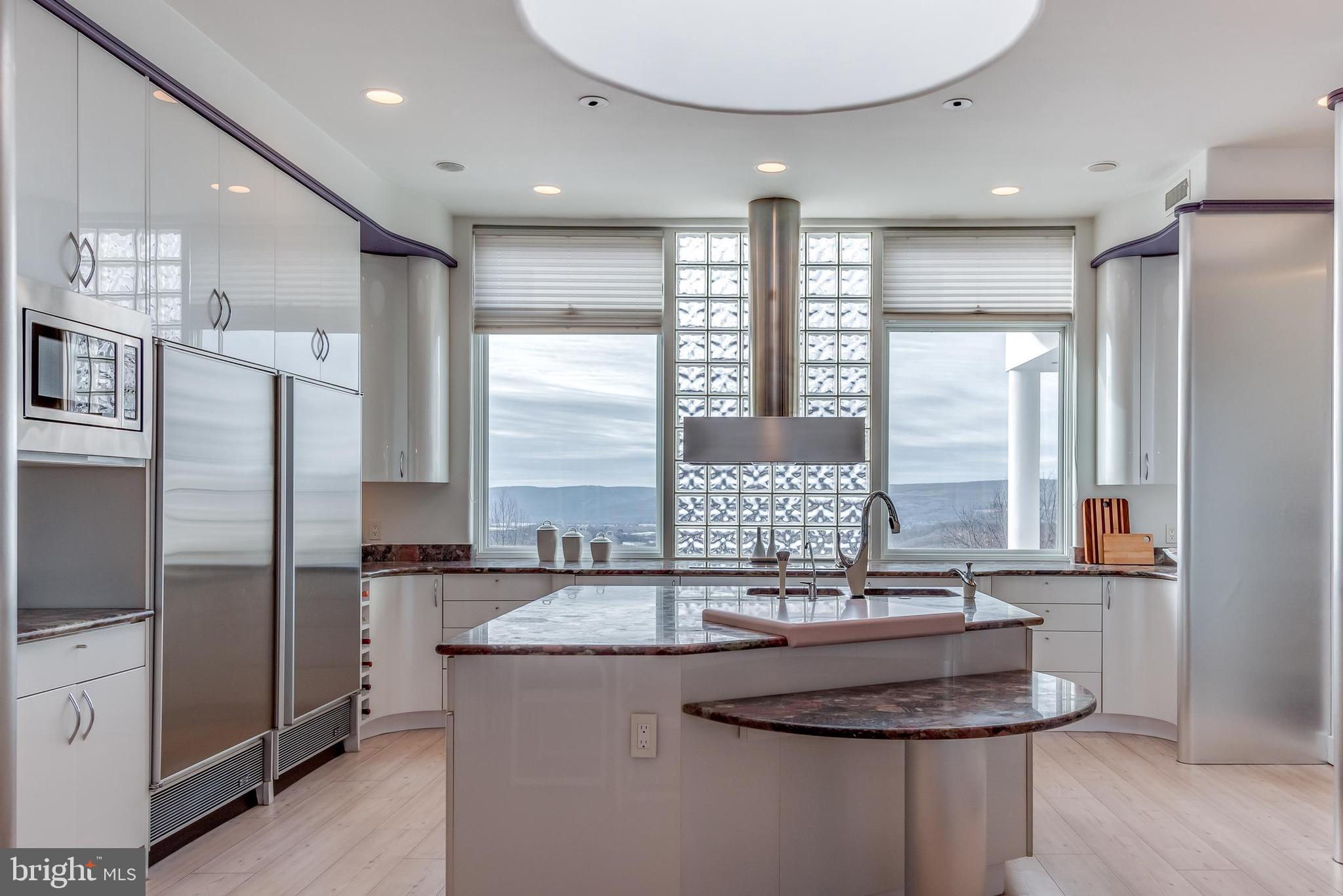 This striking three story, 7000+ square foot residence is thoughtfully situated in a serene 2+ acre setting and architecturally designed to provide both privacy and spectacular views. Impressive bronze doors and a soaring two story wall of windows set the tone. Glass, plaster and steel sculpt unique living areas throughout the spacious light filled home. The exceptional kitchen features one of several large cylindrical skylights. A remarkably engineered spiral staircase winds to the bedrooms, a large gallery and adjacent office area with expansive granite countertop. An elevator is conveniently located at the north end of the hallways. Multiple balconies extend the living space and offer additional views of Glenmaura golf course and exquisite vistas. The residence and pool area are surrounded by mature landscaping, natural stone and native rock walls. The home is quietly magnificent. See listing for room details, plans and site information.