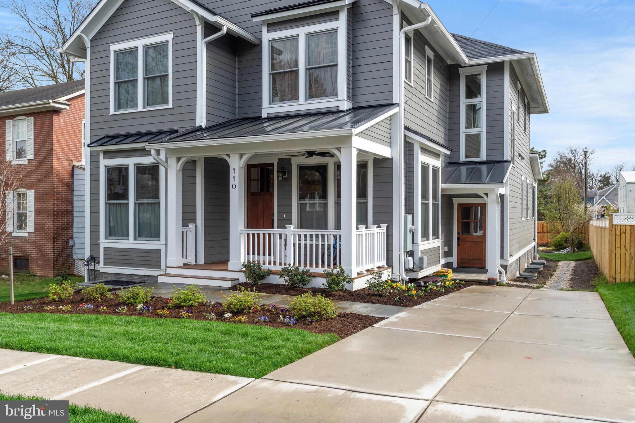 Welcome to 110 W Nelson, the gorgeously curated home in the desirable Del Ray neighborhood! New from the ground up (2022), there is no shortage of space in this 6 bedroom, 4.5 bathroom, over 4K sqft home which features both a main and upper level primary suite! With 10ft soaring ceilings, the main level offers a traditional layout and plenty of space for entertaining or relaxing. The expansive kitchen features white shaker cabinetry, stainless appliances, and a large peninsula with plenty of seating and storage. The great room is the perfect place for gathering indoors around the gas fireplace, or open the tall sliding doors and enjoy the lovely Spring evenings on the back porch while overlooking the beautiful yard! A coveted main level primary suite features a perfect private balcony, ensuite bathroom with a tiled shower, and a large walk-in closet including a stackable washer/dryer for convenience. Walk upstairs past the built-in bookshelves (and storage seats!) to 4 generously sized bedrooms, 2 full bathrooms, and a spacious laundry room! The upstairs primary suite is a true oasis featuring a walk in closet, huge ensuite bathroom and a large soaking tub. The lower level is full of surprises including built-in locker shelving in the mudroom area and a mudroom closet with built-in cubbies. Continue downstairs to an expansive lower level where the soaring ceilings continue, and a ton of storage! The large recreation room offers plenty of space for a family room, game room, or playroom. An exercise room with sliding doors has plenty of ceiling height for all the equipment, and also plenty of natural light to use as a home office. Don't miss the 6th bedroom with a lovely bathroom, perfect for a guest room or au-pair room. Large windows, tall ceilings, tons of natural light (the home is even pre-wired for solar panels!) storage galore, wide hallways, are just a few of the owners' favorite features! Home is more important than ever and this one checks every box. Ideally located in the heart of Del Ray near plenty of shopping, dining, schools, playgrounds, and endless community events, you will love living in this amazing community! Welcome home!