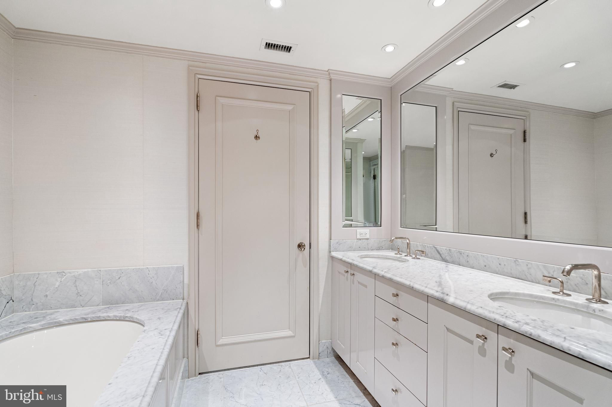 Welcome to unparalleled luxury living at The Ritz-Carlton Residences in the heart of Washington, D.C. This exquisite 2-bedroom, 2.5-bathroom, fully renovated condominium offers a refined urban oasis with impeccable finishes and breathtaking views. Upon entering, you are greeted by an elegant foyer that leads to a spacious and light-filled living area, perfect for both relaxation and entertaining. The renovated kitchen is a chef's dream, featuring top-of-the-line appliances, custom cabinetry, new wine refrigerator and sleek countertops. The residence boasts two generously sized bedrooms, each with its own luxurious en-suite, fully renovated bathroom and Water Works fixtures, offering the ultimate in privacy and comfort. The master suite is a serene retreat, complete with a spa-like bathroom and access to one of the two private balconies, where you can savor your morning coffee or unwind with a glass of wine as you take in the tranquil private garden. Additional highlights of this exceptional home include in-unit laundry for added convenience, ample storage space to accommodate all your belongings, and a powder room for guests. Direct elevator access to the floor from the private parking garage makes makes this home particularly convenient. Residents of The Ritz-Carlton enjoy access to world-class amenities, including 24-hour concierge service, valet parking, a state-of-the-art fitness center, and a stunning rooftop terrace with panoramic views of the city. Located in the prestigious West End neighborhood, just steps from fine dining, shopping, and cultural attractions, this is truly urban living at its finest. Don't miss this rare opportunity to experience the epitome of luxury at The Ritz-Carlton Residences in Washington, D.C.