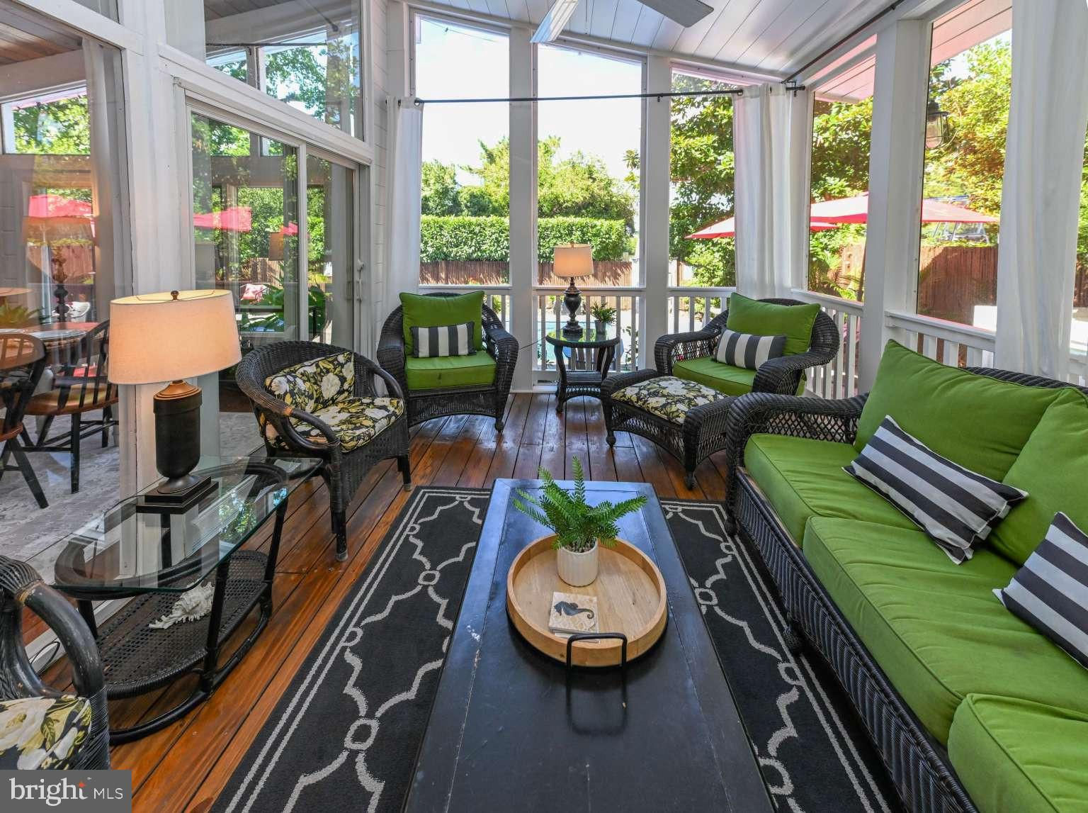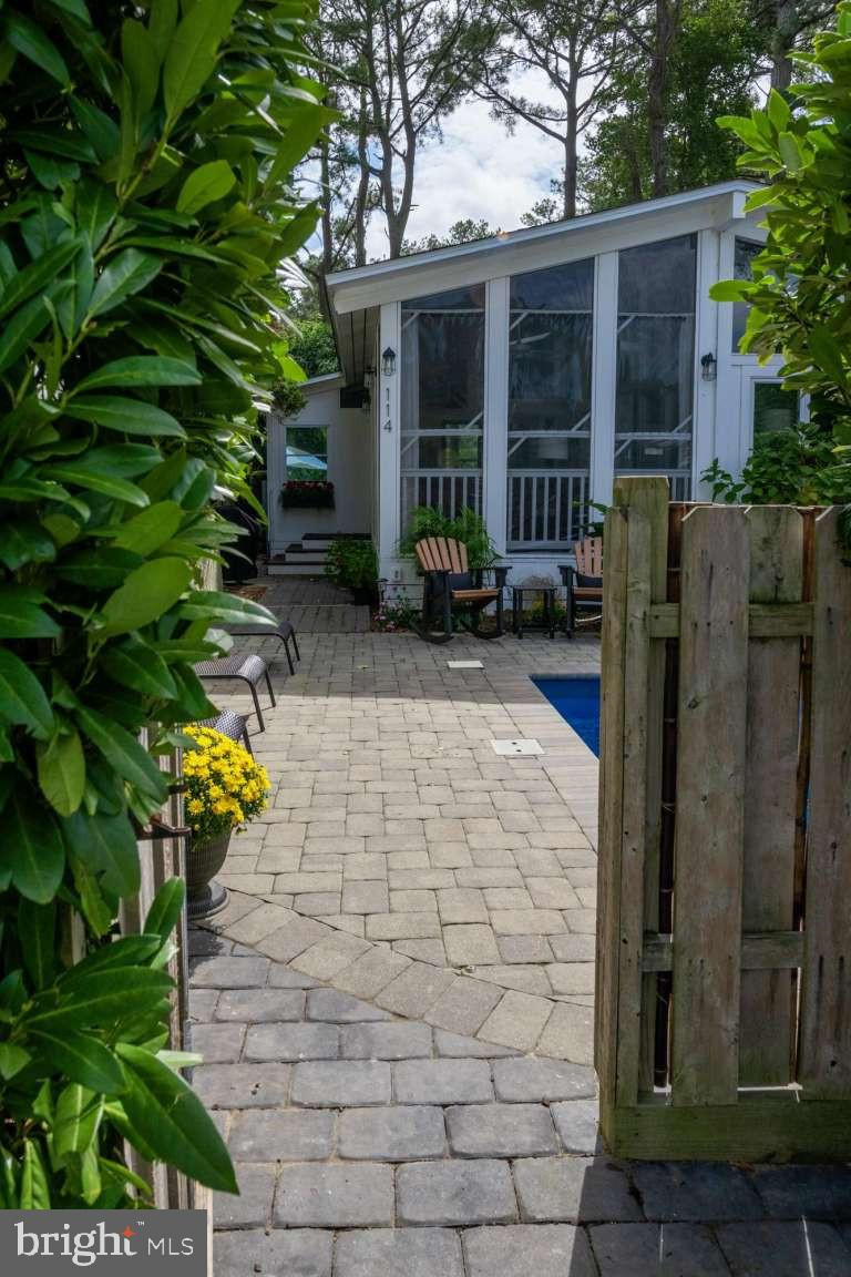Welcome to Seaside Rendezvous -- This spectacular Key-West style home is truly a seashore oasis located in the coveted north end of Dewey Beach know as Rehoboth by the Sea. This resort hideaway is a one-of-a-kind property featuring a spectacular 12 x 27 heated, in ground private pool with water fall feature surrounded by tropical landscaping with gorgeous palms, seasonal red geraniums and 6 ft privacy fence surrounding the entire property. A large patio with sun lounge chairs and al fresco dining area surround the pool. Relax here, or take a short three minute walk to sink your toes into the sand and the Atlantic Ocean. Many nights you can hear the waves crashing on the large, 12x24 screened porch overlooking the pool and lake just across the street. The home features an open concept great room with living/dining areas with beautiful vaulted wood ceilings, exquisite tongue and groove hardwood floors, updated kitchen and baths, central heat and air conditioning. A wall of floor to ceiling glass separates the porch and great room allowing natural light to flow freely throughout the main rooms. There are two primary suites w/full ensuite baths, one off the great room and one in the new addition (added in 2023). Two additional bedrooms (queen and queen with bunk beds) share a hall bath -- all have vaulted wood ceilings and hardwood floors. There is a small private deck off the rear primary suite. Excellect rental history / summer prime weeks at $15,000 per week. Two off street parking spaces. The home is beautifully designed and decorated - furnishings negotible. This is a Land Lease property with 32 years left on the land lease. Land rent approx. $11,000 annually with increases every five years (not every year). RENTAL INCOME 2024 was $189,000.00 Rent just two weeks and it pays your land lease and most expenses!