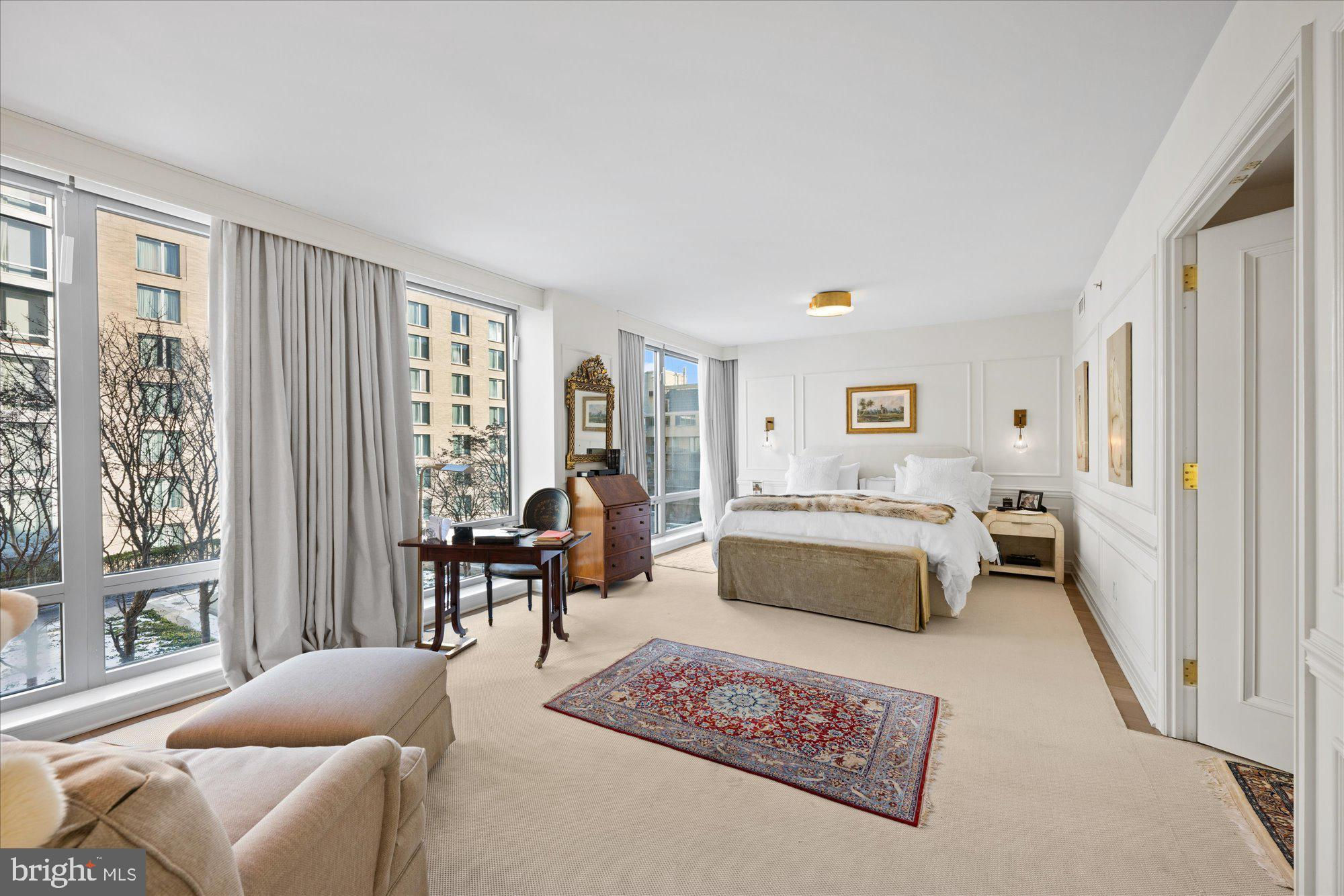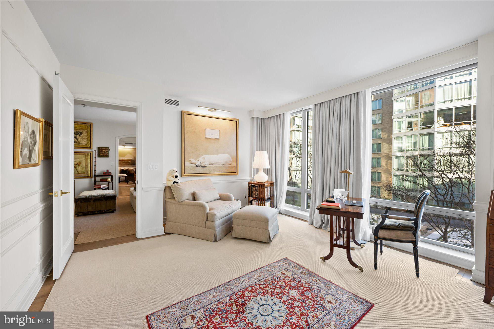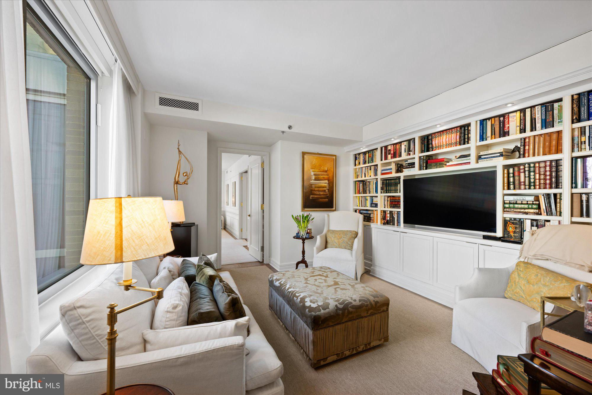 ****NEW PRICE**** Live at the Ritz Residence and experience unparalleled luxury. This stunning 2,000+ square foot, 2-bedroom, 3.5-bathroom condominium offers an elegant lifestyle with expansive, floor-to-ceiling windows in every room, providing views of the tranquil courtyard. As you step into the spacious entry foyer, you’re immediately greeted by the sophisticated design of the condo, which is ideal for both casual living and elegant entertaining. The open flow leads you into the inviting living room, which seamlessly transitions into the formal dining area. For book lovers or those in need of a quiet retreat, a private library with custom-built shelves awaits. The oversized primary bedroom suite is a true sanctuary, featuring two en-suite bathrooms equipped with high-end fixtures and finishes, as well as two generous walk-in closets. The second bedroom also offers its own private full bathroom and a large walk-in closet, ensuring comfort and privacy for guests or family. Additional amenities include a gourmet kitchen, elegant flooring, a large soaking tub, and remote-controlled window coverings. A full-size washer and dryer, plus two parking spaces, complete the package. Located in the heart of a vibrant neighborhood, you’ll find yourself just moments away from premier restaurants, shopping, and metro access. The Ritz Residence offers exceptional service and amenities, including 24-hour concierge, valet parking, doorman services, and exclusive access to the Equinox Sports Club.Luxury, convenience, and comfort await you at the Ritz Residence.
