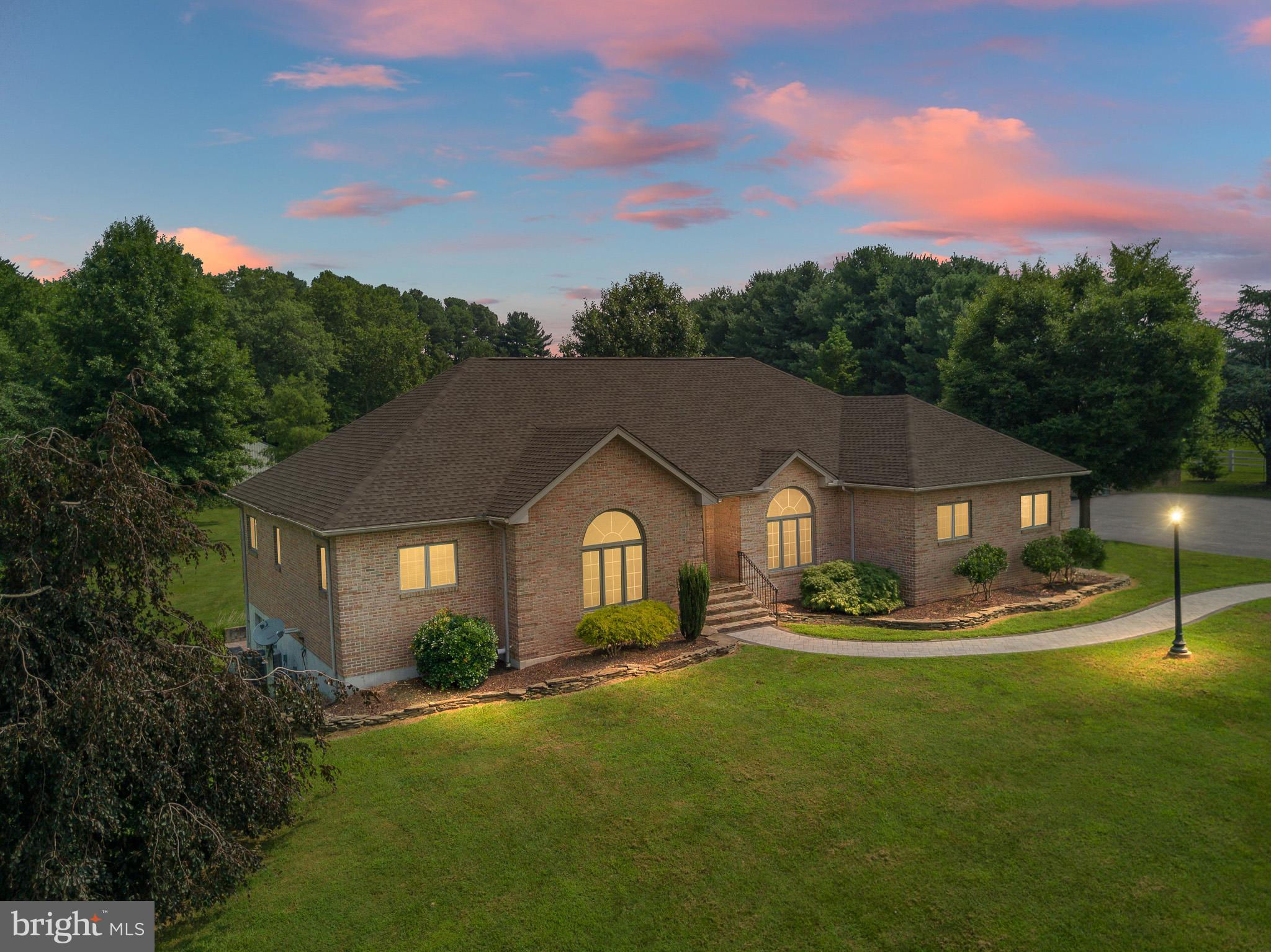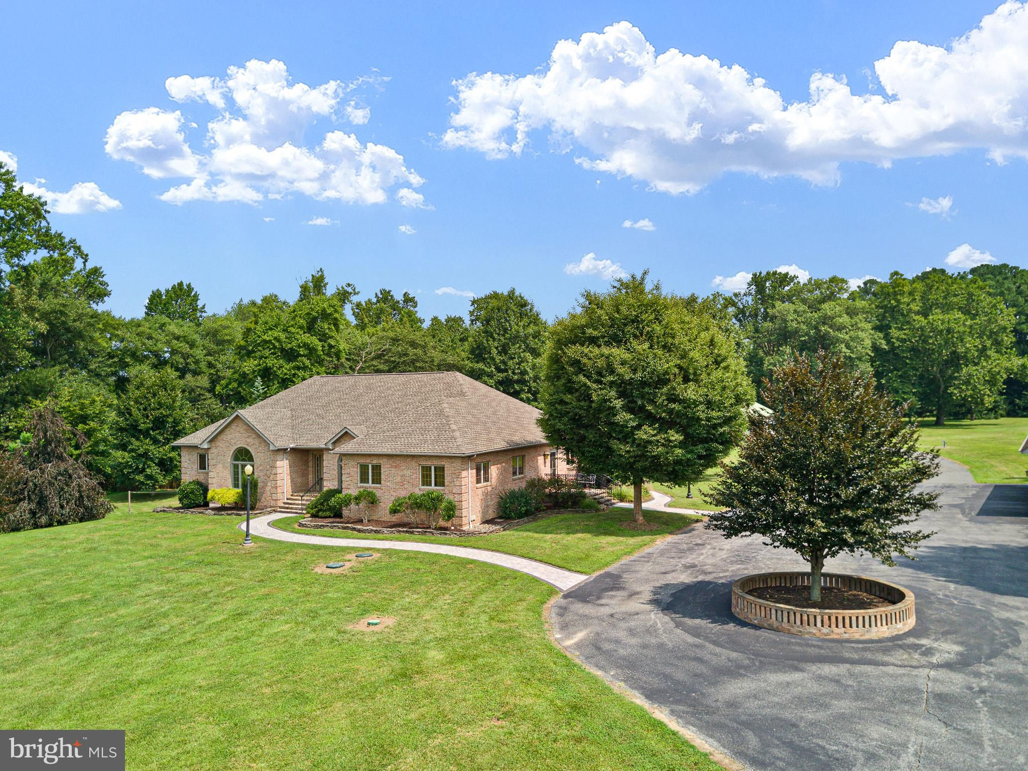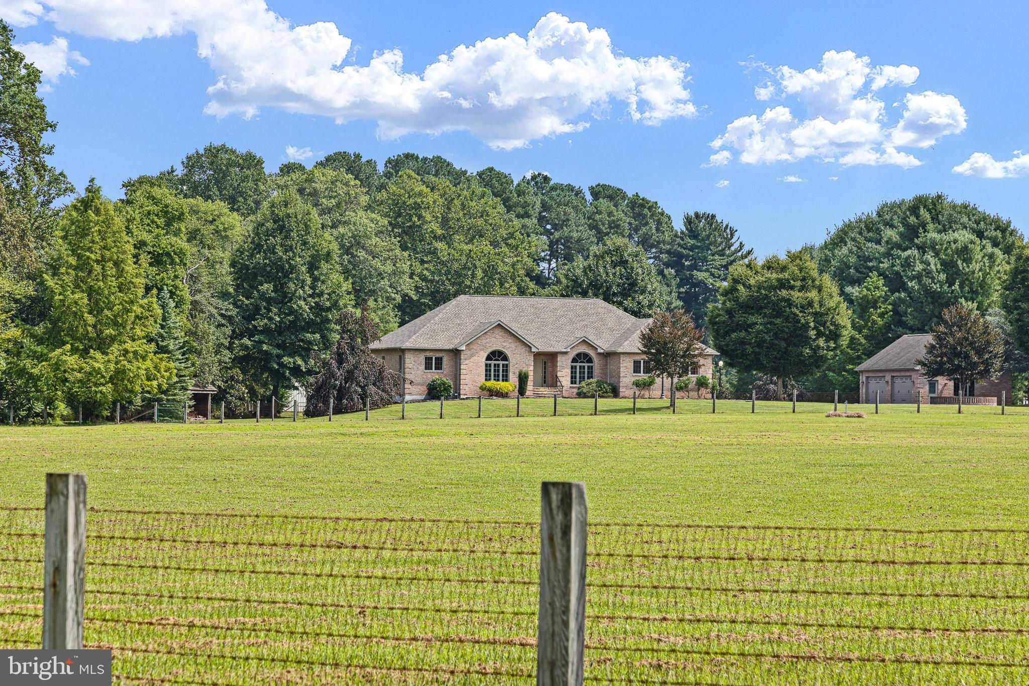 Welcome to Windmere Farm – a stunning country estate situated on 14.21 acres, recently enhanced with over $135,000 in updates. This custom, all-brick ranch blends comfortable living with casual luxury, offering features that go well beyond the ordinary. As you enter the spacious foyer, your eye is immediately drawn to the family room and the expansive views beyond, visible through two tall sliders leading to the patio and backyard. To the right, the open dining area offers another slider for seamless indoor-outdoor living. The chef’s kitchen is a true showpiece, equipped with: 6-burner Viking gas range with two ovens (one gas, one convection); Sub-Zero refrigerator/freezer; two Bosch dishwashers; under-counter ice maker; and custom hickory cabinetry with soft-close drawers and under-cabinet lighting. Just off the family room is a charming library, featuring custom cherry built-ins and a large arched window. It can be closed off with pocket doors for privacy. Beyond the library, glass French doors open to a large flex room—ideal for a second office, playroom, or studio—which also connects to the kitchen. On the opposite wing, a pocket door leads to the bedroom quarters. The primary suite boasts a triple arched window, a spacious en-suite bath with updated fixtures and lighting, and a large walk-in closet. Two additional bedrooms share a beautifully updated hall bath. The fully finished lower level—with walk-out access to the hot tub - features new LVP flooring, a private office space, and a mini-split system for year-round comfort. Step outside the family room to a large patio with custom wrought iron railings and Cambridge pavers. Across from the kitchen is the four-car, all-brick garage, complete with: tile flooring; EV charging station; wall-mounted vacuum system; gas heat and full insulation. For additional space, a 42' x 60' insulated pole barn with heat, A/C, water, and electric sits nearby. The property also includes: fenced pasture with run-in shed (currently home to Teddi, the llama); backyard cedar woodshed; heated/cooled kennel with auto-fill water station and two garage bays; and 8 water hydrants throughout the property. Recent updates include: roof (5 years old); Marvin Ultimate windows & sliders (new); engineered hardwood flooring; full interior repaint (2024); septic inspection & repairs (2024). Windmere Farm offers peace and quiet, with horses as your neighbors, while being just minutes from restaurants, shops, and all that Middletown has to offer. The home is not visible from the street—showings are by appointment only. Call Renée with any questions.