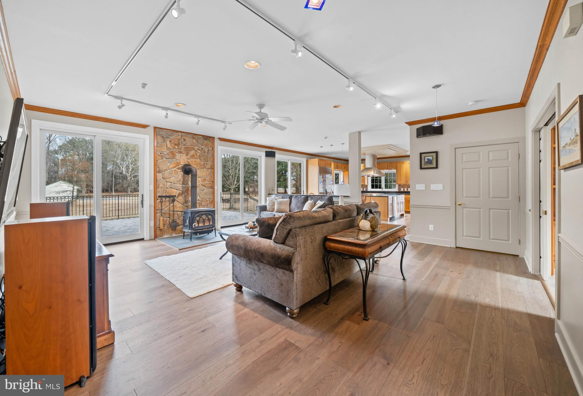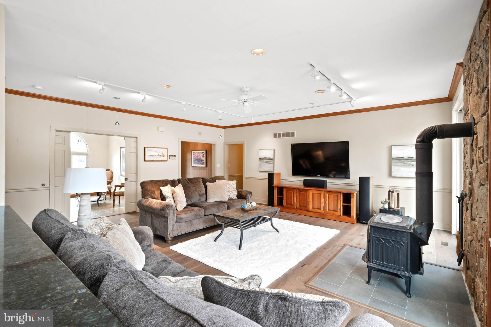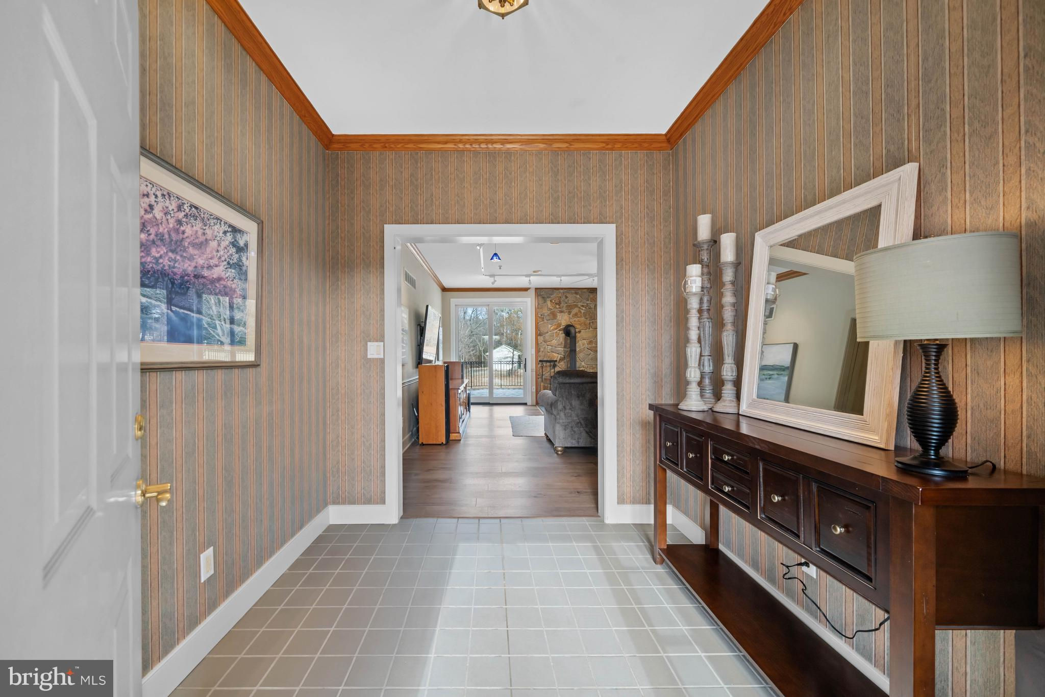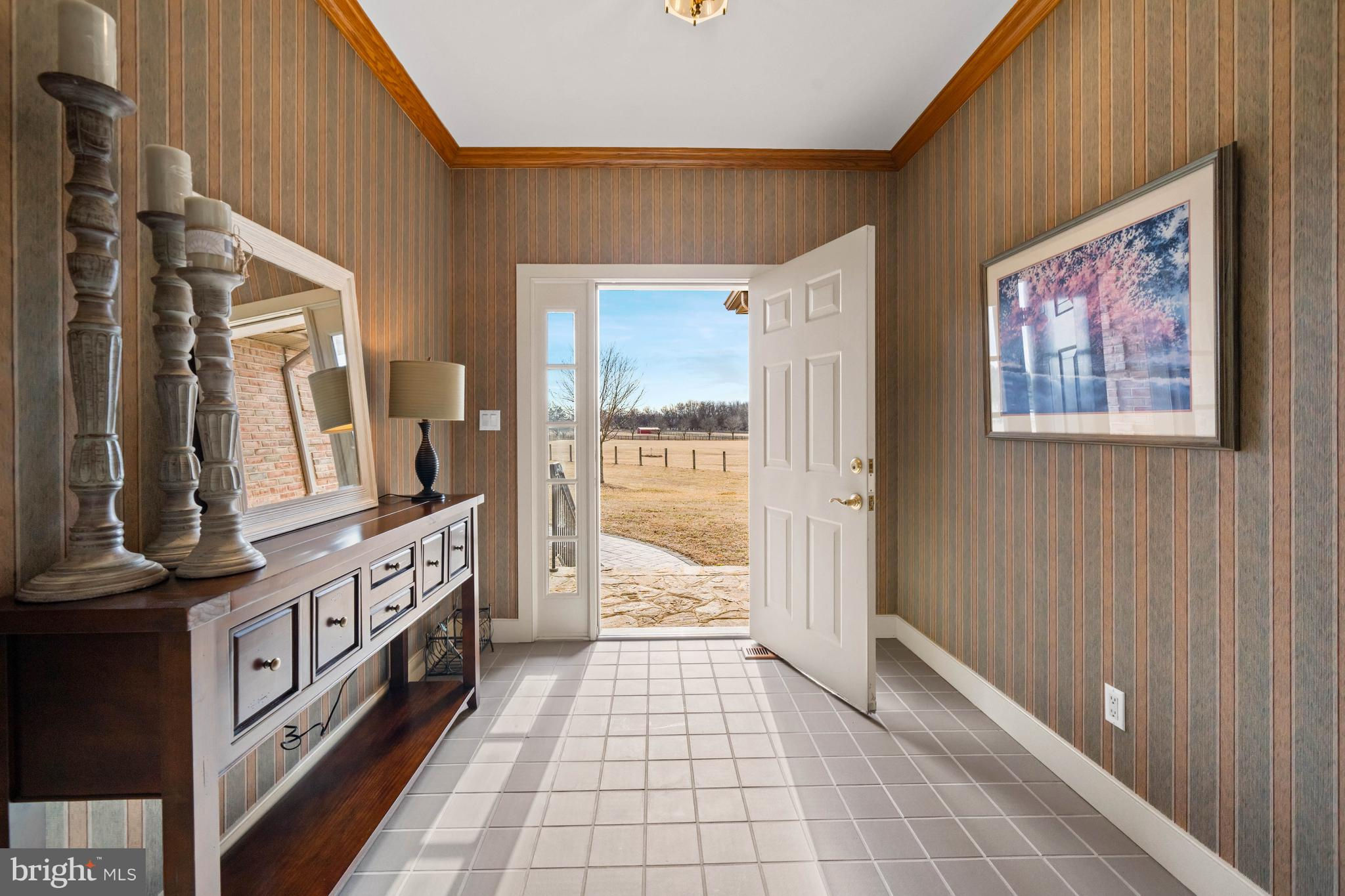 Welcome to Windmere Farm – a stunning country estate situated on 14.21 acres, recently enhanced with over $135,000 in updates. This custom, all-brick ranch blends comfortable living with casual luxury, offering features that go well beyond the ordinary. As you enter the spacious foyer, your eye is immediately drawn to the family room and the expansive views beyond, visible through two tall sliders leading to the patio and backyard. To the right, the open dining area offers another slider for seamless indoor-outdoor living. The chef’s kitchen is a true showpiece, equipped with: 6-burner Viking gas range with two ovens (one gas, one convection); Sub-Zero refrigerator/freezer; two Bosch dishwashers; under-counter ice maker; and custom hickory cabinetry with soft-close drawers and under-cabinet lighting. Just off the family room is a charming library, featuring custom cherry built-ins and a large arched window. It can be closed off with pocket doors for privacy. Beyond the library, glass French doors open to a large flex room—ideal for a second office, playroom, or studio—which also connects to the kitchen. On the opposite wing, a pocket door leads to the bedroom quarters. The primary suite boasts a triple arched window, a spacious en-suite bath with updated fixtures and lighting, and a large walk-in closet. Two additional bedrooms share a beautifully updated hall bath. The fully finished lower level—with walk-out access to the hot tub - features new LVP flooring, a private office space, and a mini-split system for year-round comfort. Step outside the family room to a large patio with custom wrought iron railings and Cambridge pavers. Across from the kitchen is the four-car, all-brick garage, complete with: tile flooring; EV charging station; wall-mounted vacuum system; gas heat and full insulation. For additional space, a 42' x 60' insulated pole barn with heat, A/C, water, and electric sits nearby. The property also includes: fenced pasture with run-in shed (currently home to Teddi, the llama); backyard cedar woodshed; heated/cooled kennel with auto-fill water station and two garage bays; and 8 water hydrants throughout the property. Recent updates include: roof (5 years old); Marvin Ultimate windows & sliders (new); engineered hardwood flooring; full interior repaint (2024); septic inspection & repairs (2024). Windmere Farm offers peace and quiet, with horses as your neighbors, while being just minutes from restaurants, shops, and all that Middletown has to offer. The home is not visible from the street—showings are by appointment only. Call Renée with any questions.