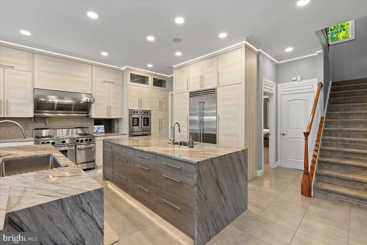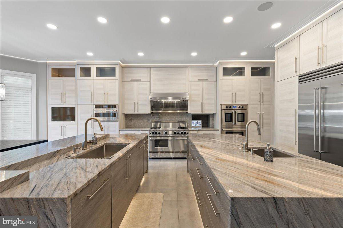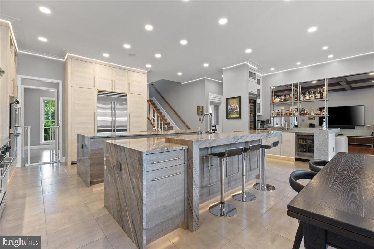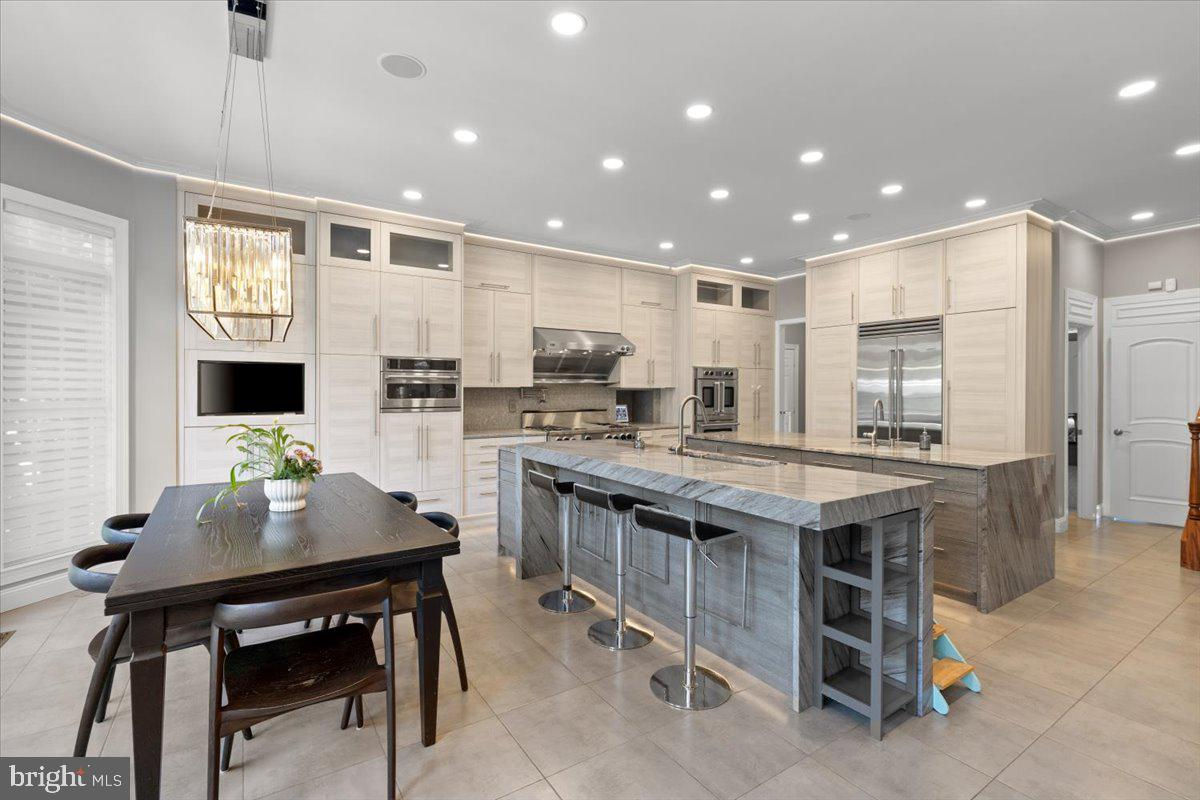 Welcome to this impressive, modern brick estate in the coveted Belmont Farms community, offering nearly 8,000 square feet of luxurious living space on 1.2 beautifully manicured acres. Notably, this property boasts the title of World's Best Kitchen from the 2022 International Property Awards in London (https://www.baltimorestyle.com/a-star-among-kitchens/). The award winning kitchen includes twin islands with striking stone waterfall countertops, a 48" 8 burner Bluestar range, a 36" stainless Bluestar refrigerator with two separate 24" Subzero refrigerators integrated into the cabinetry plus two Bosch dishwashers, also integrated into the cabinetry. Additionally, the beverage center features a Subzero wine fridge and a Subzero mini-fridge. This stunning home also features a three car garage, lush landscaping, and a spacious main level designed for both comfort and entertaining. Enjoy a grand living room, formal dining room and private office/den. The main level also includes two stylish half baths and a sun drenched great room with skylights that opens to an outdoor oasis complete with a pergola, custom grill station, firepit, and expansive yard. The fully finished lower level boasts a second kitchen, state of the art theater room, workout studio, and a fifth bedroom with a full bath and an additional half bath. Upstairs, the luxurious primary suite is a true retreat with a fireplace, dual walk in closets, a dressing area, and an incredible spa like bath with a curved wall, dual vanities, and elegant finishes. Three additional bedrooms each feature their own walk in closets and en suite baths. This exceptional home combines elegance, comfort, and space in one of the area’s most sought after neighborhoods.