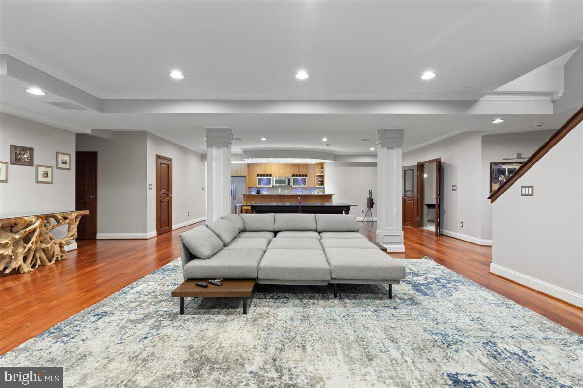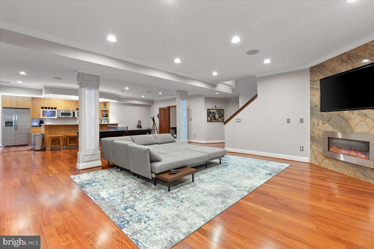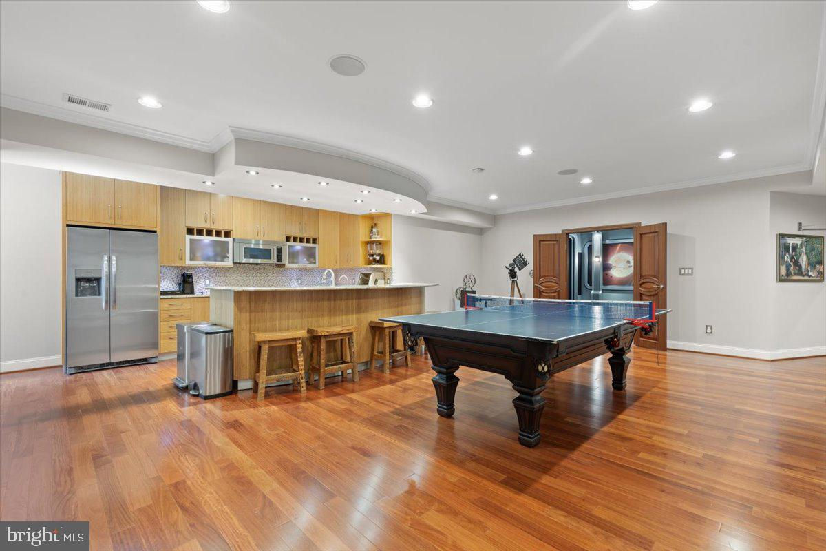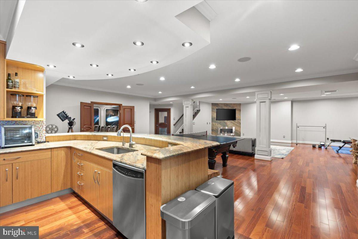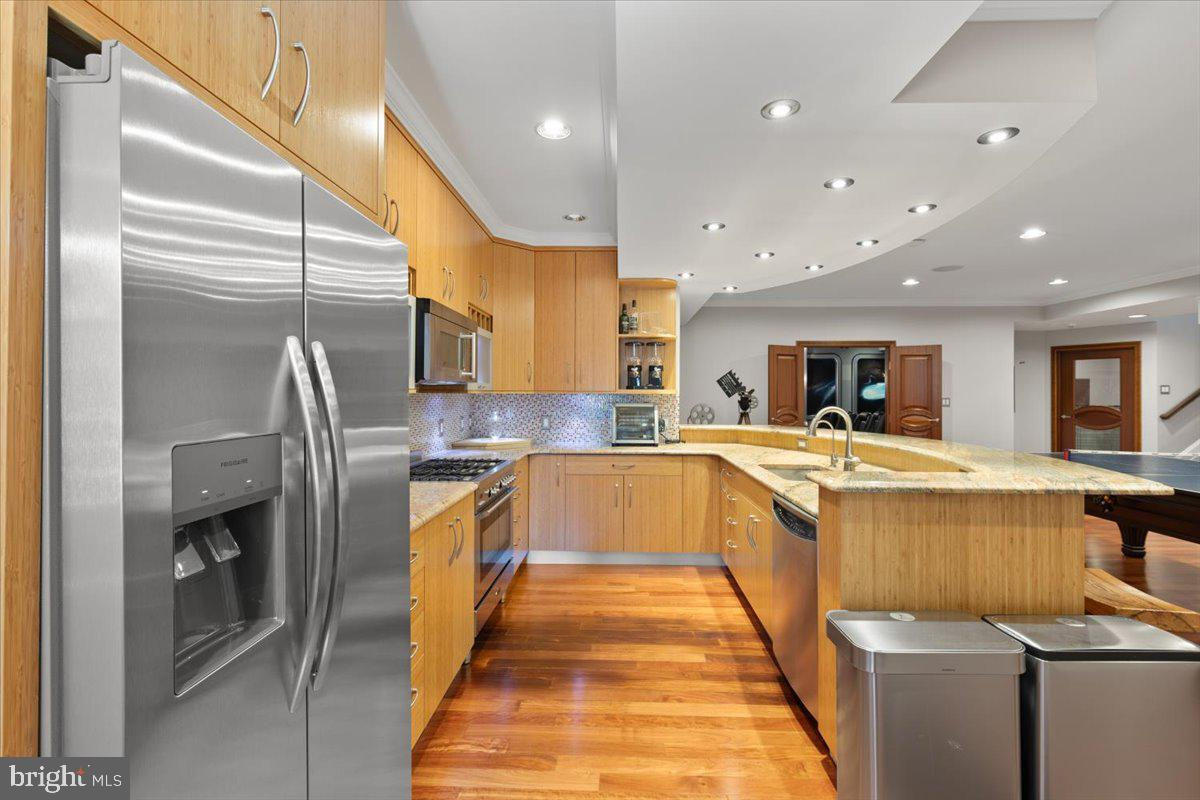 Welcome to this impressive, modern brick estate in the coveted Belmont Farms community, offering nearly 8,000 square feet of luxurious living space on 1.2 beautifully manicured acres. Notably, this property boasts the title of World's Best Kitchen from the 2022 International Property Awards in London (https://www.baltimorestyle.com/a-star-among-kitchens/). The award winning kitchen includes twin islands with striking stone waterfall countertops, a 48" 8 burner Bluestar range, a 36" stainless Bluestar refrigerator with two separate 24" Subzero refrigerators integrated into the cabinetry plus two Bosch dishwashers, also integrated into the cabinetry. Additionally, the beverage center features a Subzero wine fridge and a Subzero mini-fridge. This stunning home also features a three car garage, lush landscaping, and a spacious main level designed for both comfort and entertaining. Enjoy a grand living room, formal dining room and private office/den. The main level also includes two stylish half baths and a sun drenched great room with skylights that opens to an outdoor oasis complete with a pergola, custom grill station, firepit, and expansive yard. The fully finished lower level boasts a second kitchen, state of the art theater room, workout studio, and a fifth bedroom with a full bath and an additional half bath. Upstairs, the luxurious primary suite is a true retreat with a fireplace, dual walk in closets, a dressing area, and an incredible spa like bath with a curved wall, dual vanities, and elegant finishes. Three additional bedrooms each feature their own walk in closets and en suite baths. This exceptional home combines elegance, comfort, and space in one of the area’s most sought after neighborhoods.