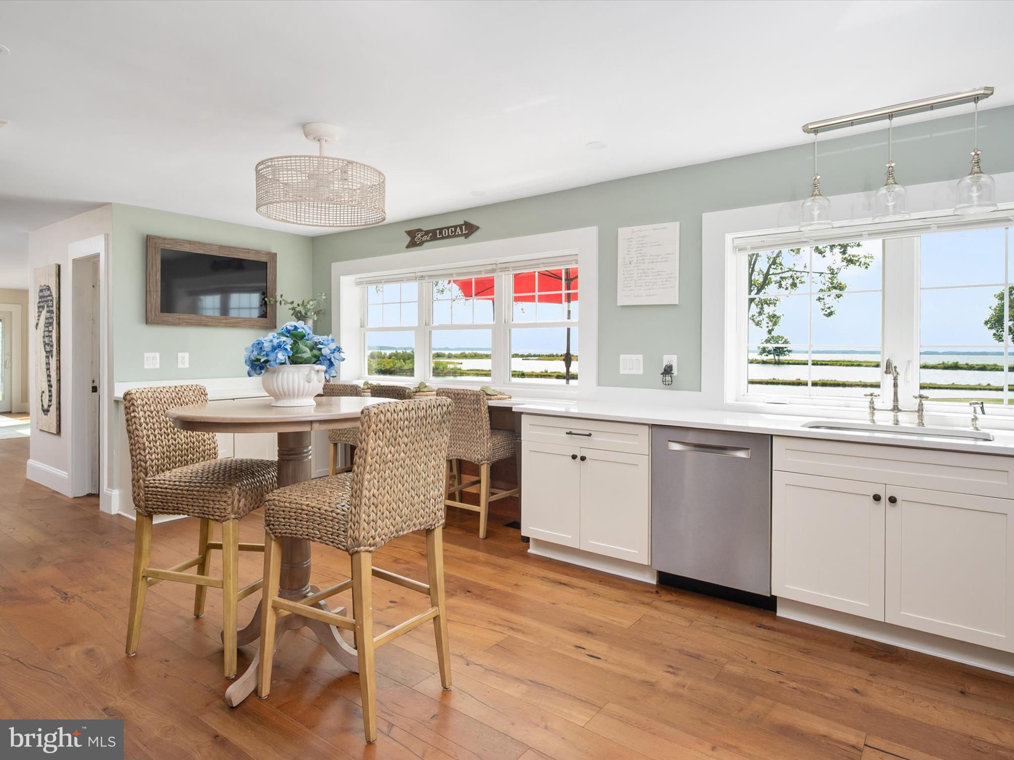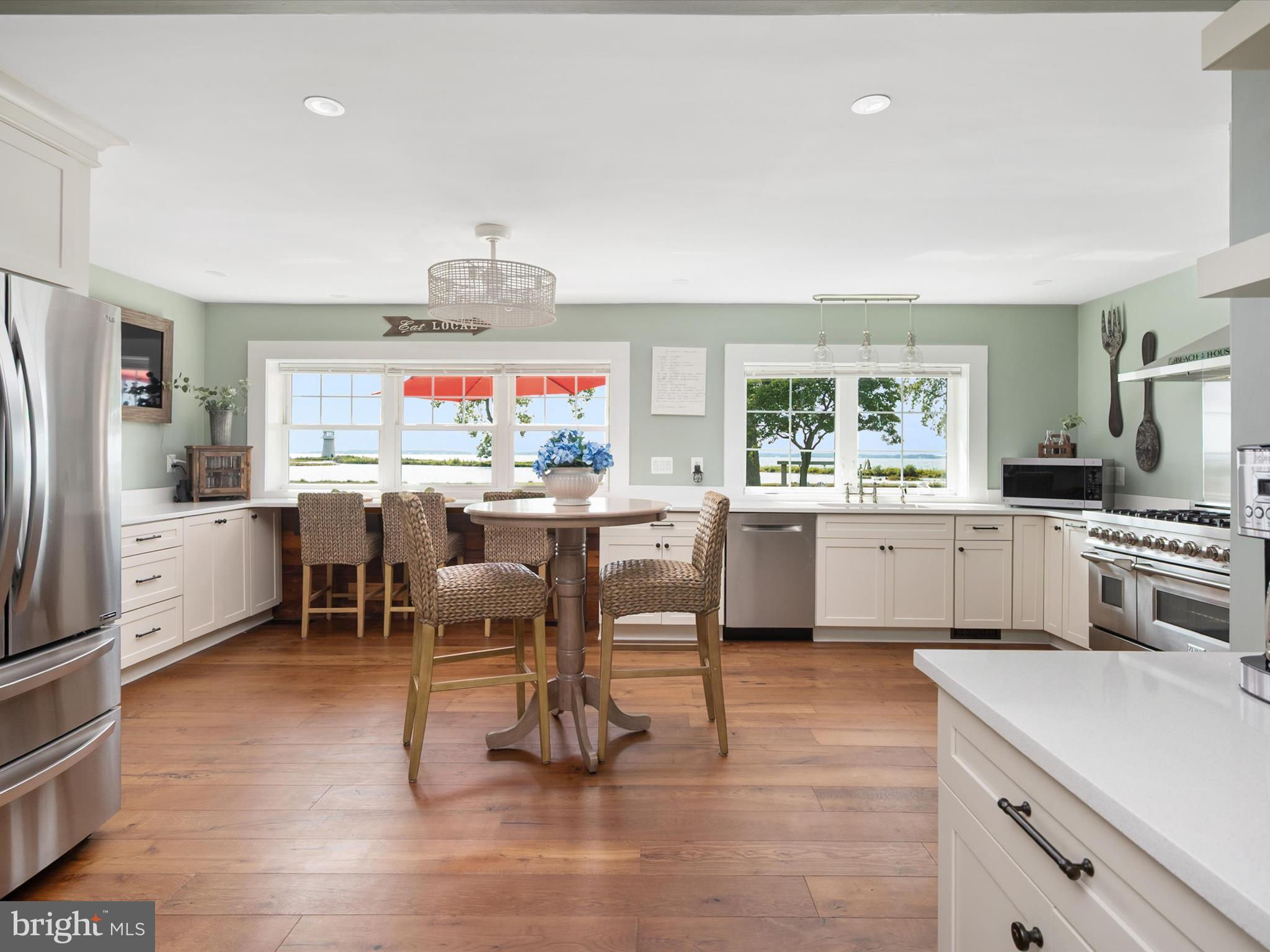 Imagine waking up to breathtaking sunrises over Eastern Bay and the Wye River at 133 Kilby Point Road, a stunning waterfront retreat nestled within the private community of Kilby Point at the tip of Bennett Point. This beautifully renovated 4-bedroom, 2.5-bath residence boasts approximately 3,156 sq. ft. of living space, perfectly blending timeless elegance with modern comforts. Please do not venture down without an appointment - this is a private point - thank you . As you step inside, you'll be greeted by the warmth of Provenza engineered hardwood floors, a custom solid wood entry door, and big views that frame the captivating water views steps away. The fully renovated chef's kitchen is a culinary dream, featuring quartz countertops, stainless steel appliances, dual wall ovens, and 6-burner gas range that's sure to delight even the most discerning cooks. Imagine sipping your morning coffee or enjoying a glass of wine while cooking up a storm, with the serene water views as your backdrop. The main level's open layout seamlessly connects the dining room, living areas, and kitchen, creating an ideal space for entertaining and making memories with family and friends. The intimate porch off the dining room is the perfect spot to enjoy a quiet morning or a sunset cocktail, with the water views providing a serene atmosphere. Upstairs, the primary suite is a tranquil retreat, complete with a newly built Duradeck balcony (2025) that offers panoramic views of the surrounding waters. The additional three bedrooms, all with water-facing windows, and a renovated hall full bath make this level the perfect haven for family and guests. The true magic happens outdoors, where the nearly 5-acre property unfolds into a stunning oasis. The heated saltwater pool (2021) is the perfect spot for pool parties and relaxation, surrounded by patios for lounging and landscaped grounds. There are so many more opportunities to add gardens, pergolas, chicken coop and more. As you gaze out across the water in multiple directions, you'll be treated to picturesque views of a lighthouse and a charming old-time windmill, views of the boats sailing to St. Michaels, adding to the property's natural beauty. And, if you're lucky, you might even catch a glimpse of the two resident white swans on the pond and 2 bald eagles perched on the lighthouse that call the property home, or gliding effortlessly across the water. Imagine hosting unforgettable gatherings, with an extra pool enclosure that can be easily converted into a vibrant pool club room or outdoor kitchen. The fireplace is already there. The possibilities are endless, from sunset soirees to family reunions, weddings, and the serene water views provide a breathtaking backdrop for any celebration. As a resident of Kilby Point, you'll enjoy access to community beach, a 1-mile waterfront walking/golf cart path, and a pier/dock, 1 available boat slip (not deeded, subject to availability). The property's convenient location, to Route50 and the Bay Bridge, makes it easy to explore Annapolis, Washington, D.C., and the charming destinations on Maryland's Eastern Shore, Easton, St Micheals, Oxford and more. This is a rare opportunity to own such a unique waterfront retreat with extensive upgrades, captivating views, and endless possibilities for entertainment and relaxation. Come make your memories today.