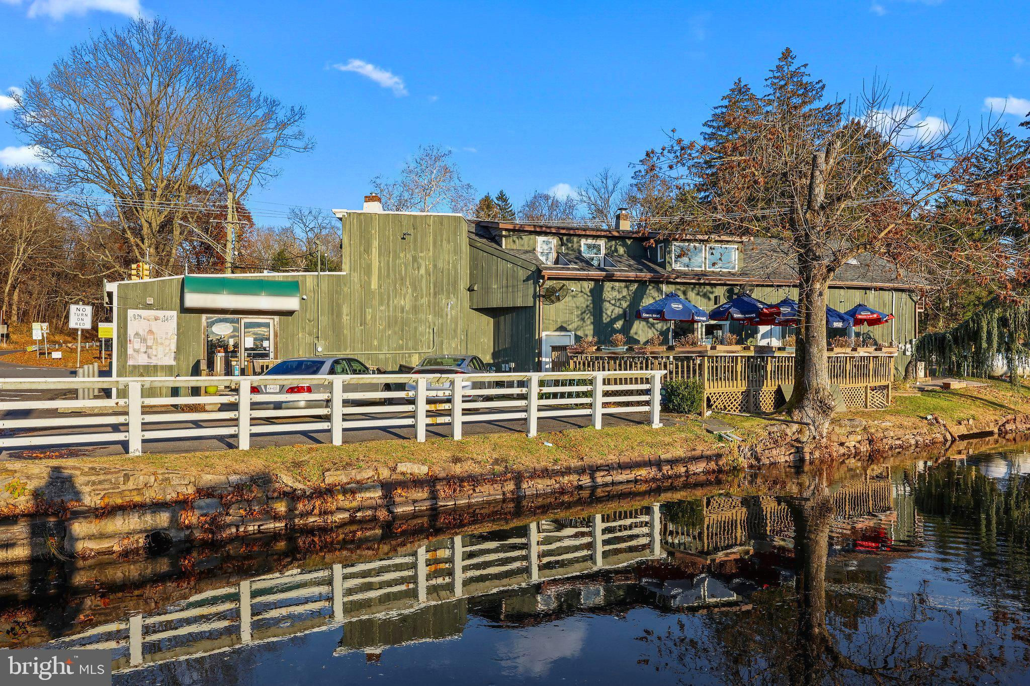 Nestled adjacent to the serene Washington Crossing State Park, boasting breathtaking waterfront vistas of the majestic Delaware River, awaits an exceptional business opportunity. Presenting an established, thriving turnkey establishment encompassing a bar, restaurant, and package goods deli, this property is primed for success. Fully furnished and equipped with a comprehensive array of amenities including a full kitchen, fryers, coolers, and taps, this property is ready for operation. Unlock its full potential by undertaking renovations and expansions, or reconfigure the layout to maximize its prime riverfront location. Visualize an expanded patio area complete with covered seating and an outdoor bar, offering patrons a coveted waterfront dining experience. The strategic locale benefits from its proximity to the pedestrian-friendly bridge, D&R Canal towpath, and the bustling Washington Crossing State Park, ensuring a steady stream of potential clientele. Furthermore, the nearby Route 29 corridor draws in visitors from Lambertville and New Hope, enhancing the property's visibility and patronage. Boasting over 4000 square feet of space, the building also features a private entrance to a two-bedroom apartment, ideal for an owner-operator or generating additional rental income. Included in the sale are a valuable liquor license, the real estate itself, the established business, and all accompanying furniture and fixtures. Don't miss out on the opportunity to own a piece of flourishing riverfront commerce and hospitality.