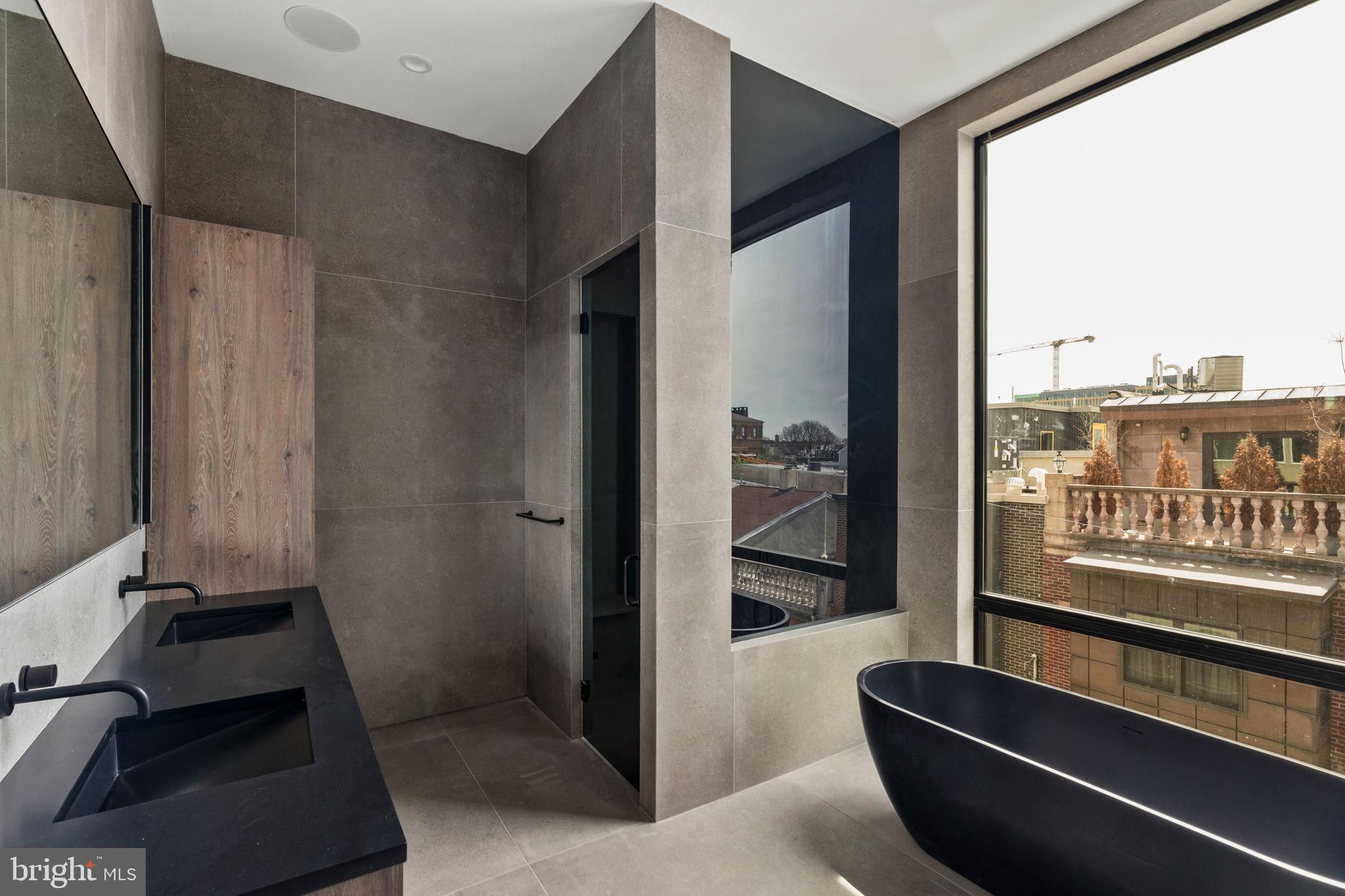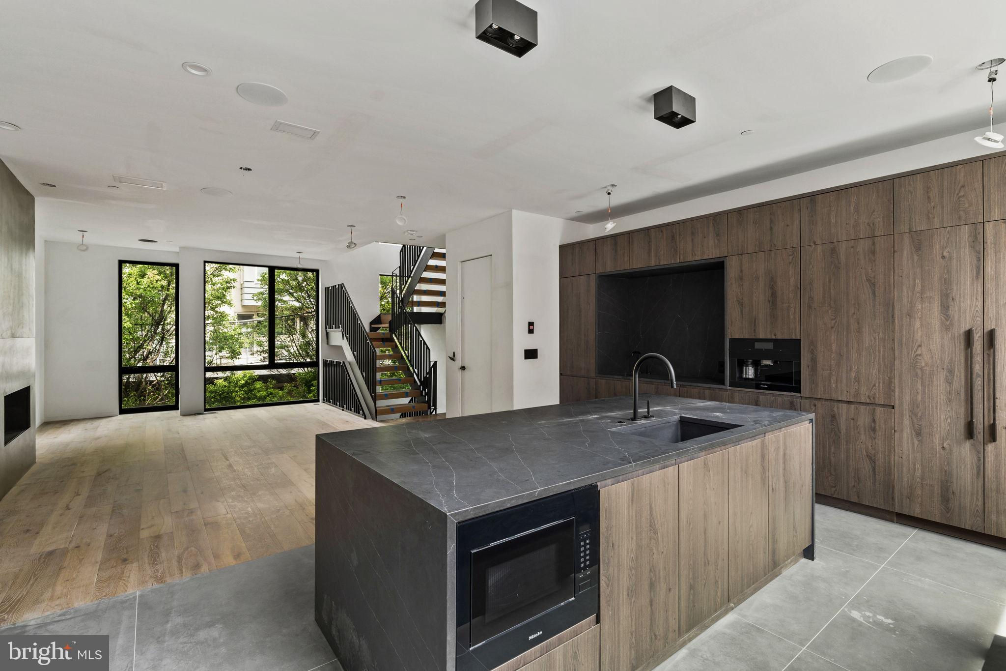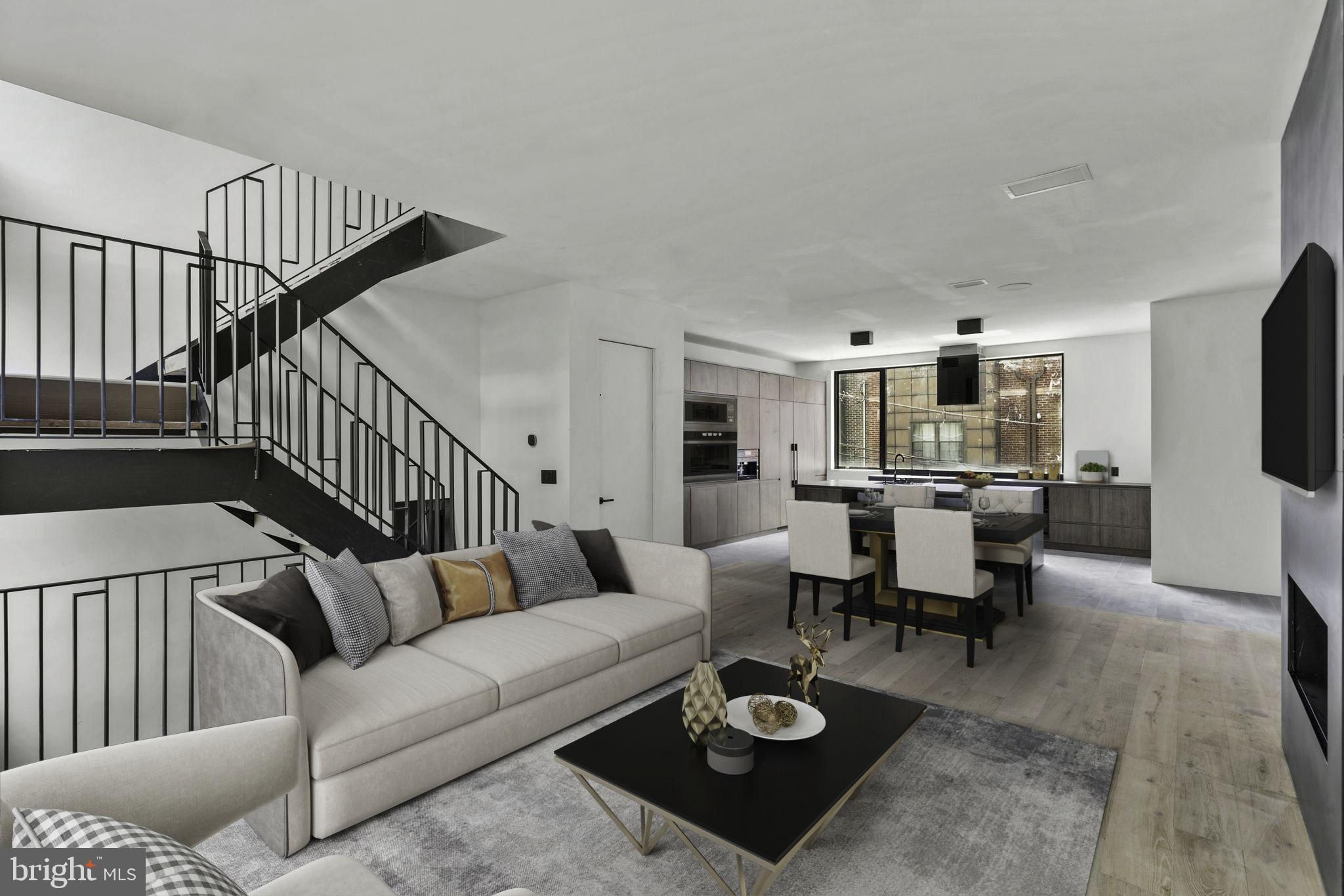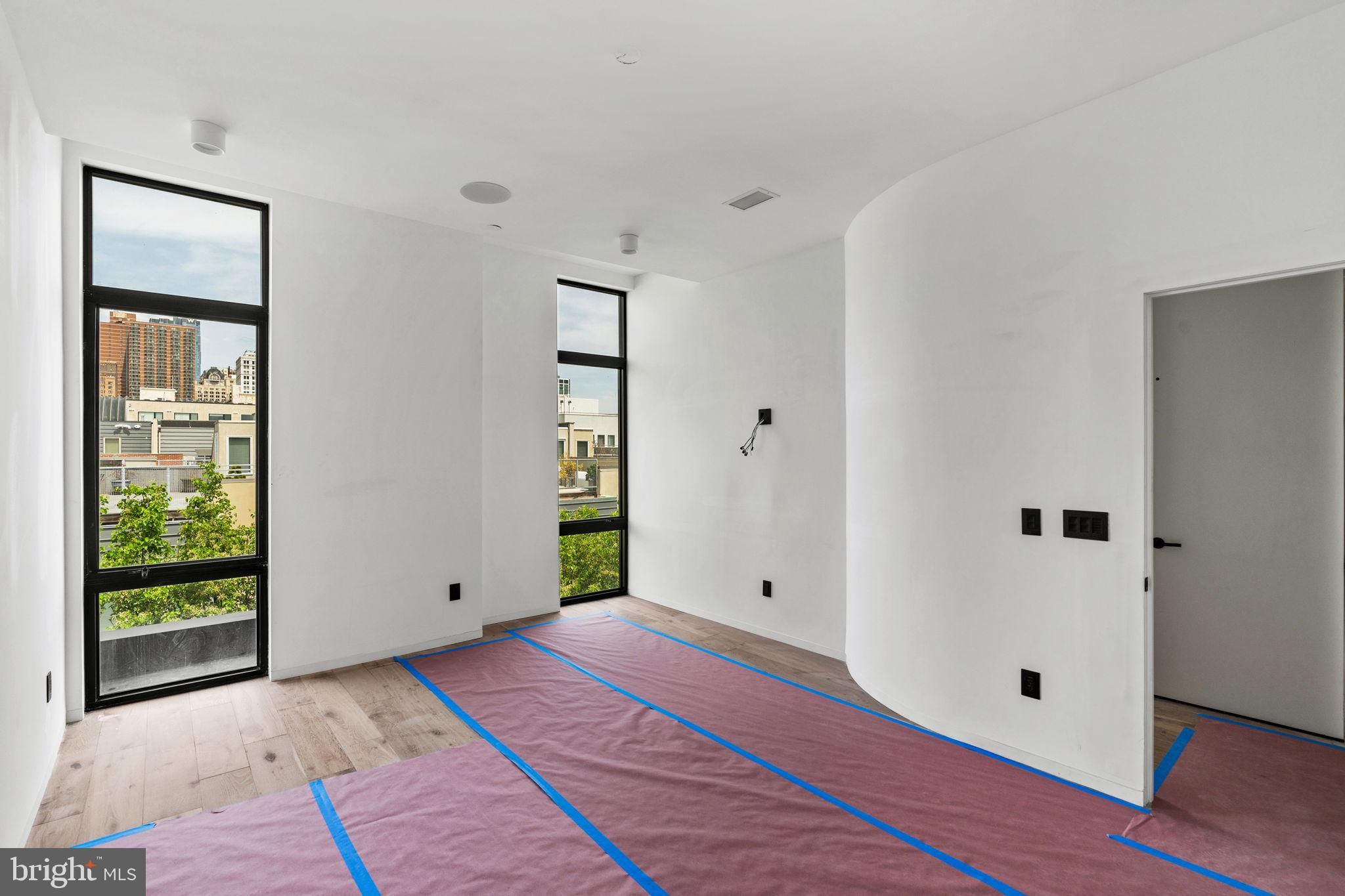 You’re Almost Home: The Kenilworth III new construction homes offer ultimate townhome living. Spread across 3100 SF of living space, you’ll find top-level finishes, carefully thought open floor plans, a five-stop elevator, 9’+ floor-to-ceiling windows, custom metalwork, recessed millwork, and Savant smart home integration. Enter the home through a custom 4’ wide pivot hinge entry door and you will first find a convenient home office with an en-suite powder room, and a built-in coat closet in the main hallway. Upstairs, the living space is anchored by a gas fireplace with custom blackened steel surround and wide-plank hardwood flooring. Next, you will find a well-curated kitchen finished with Miele appliances, 48” panel-ready fridge, a built-in coffee maker, sleek wood-grain cabinetry, a tiled floor with large format tiles, sophisticated black honed counters, and an additional wet bar area with additional built in fridge. On the 3rd floor you will find 2 bedrooms with custom closets, an additional living/lounge area, walk-in laundry room, and a spa-inspired hall bathroom with porcelanosa tile, Watermark fixtures, and a heated tile floor. The 4th Floor primary suite encompasses the top level featuring 10’+ ceilings, unobstructed city skyline views from the 10’ tall windows with green roofs right outside, a primary spa equipped with a built-in steam shower system, matte black soaker tub. and large dual sink vanity and a private water closet. In addition, the primary has an impressive walk-in closet with over 26’ of built-in cabinetry. Lastly finishing off the fourth floor includes another wet bar area and a separate powder room set up perfectly for roof deck entertainment. The basement is another great place to entertain guests with a superb layout for a home theatre and includes a 3rd conveniently located wet bar, a fourth bedroom, and another spa-inspired bathroom. Additional features of this home include a two-car garage with electric car charging, a 4-zone HVAC system, designer steel staircase from top to bottom with custom-fit 4” oak treads. From heated front and rear sidewalks to a green roof view outside the primary suite, this home is built of the highest quality materials for ultimate luxury living. Take advantage of stunning rooftop views, quiet cul de sac streets, and full 10-year tax abatement. Graduate Hospital is an extremely walkable neighborhood home to an abundance of restaurants, shops, and just steps from Center City. Delivery May/June 2025