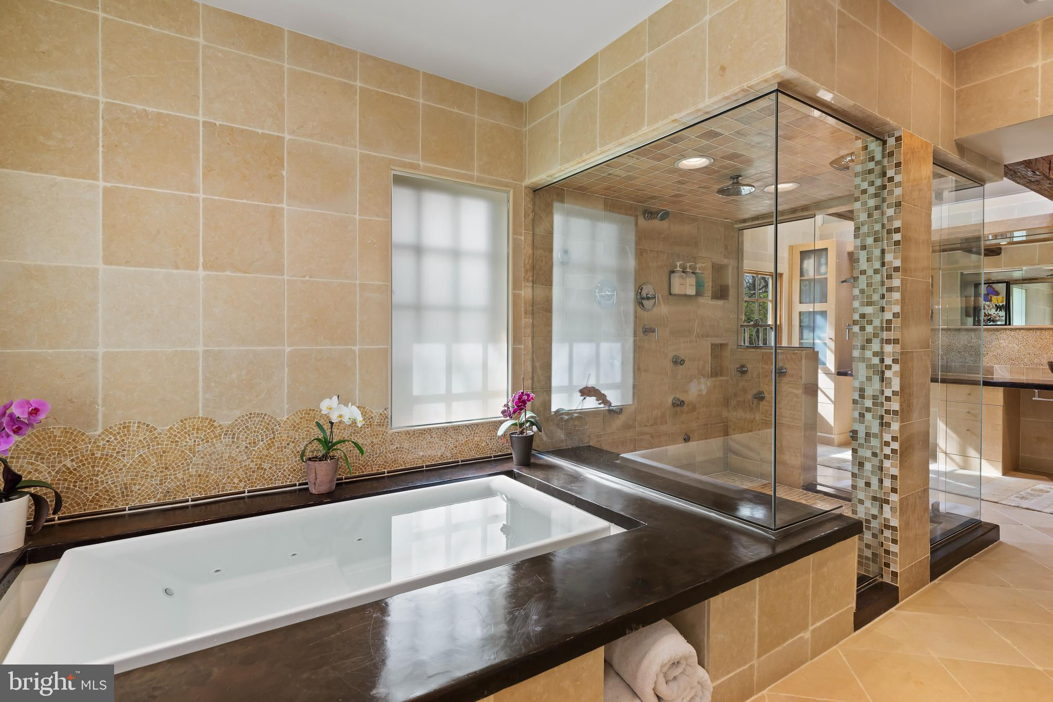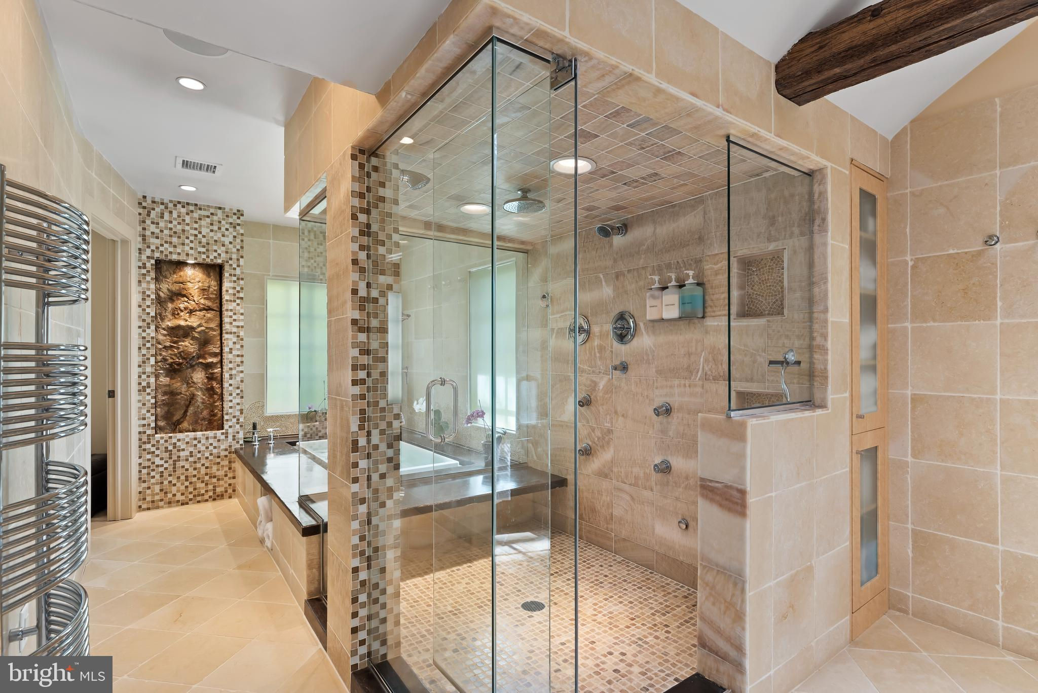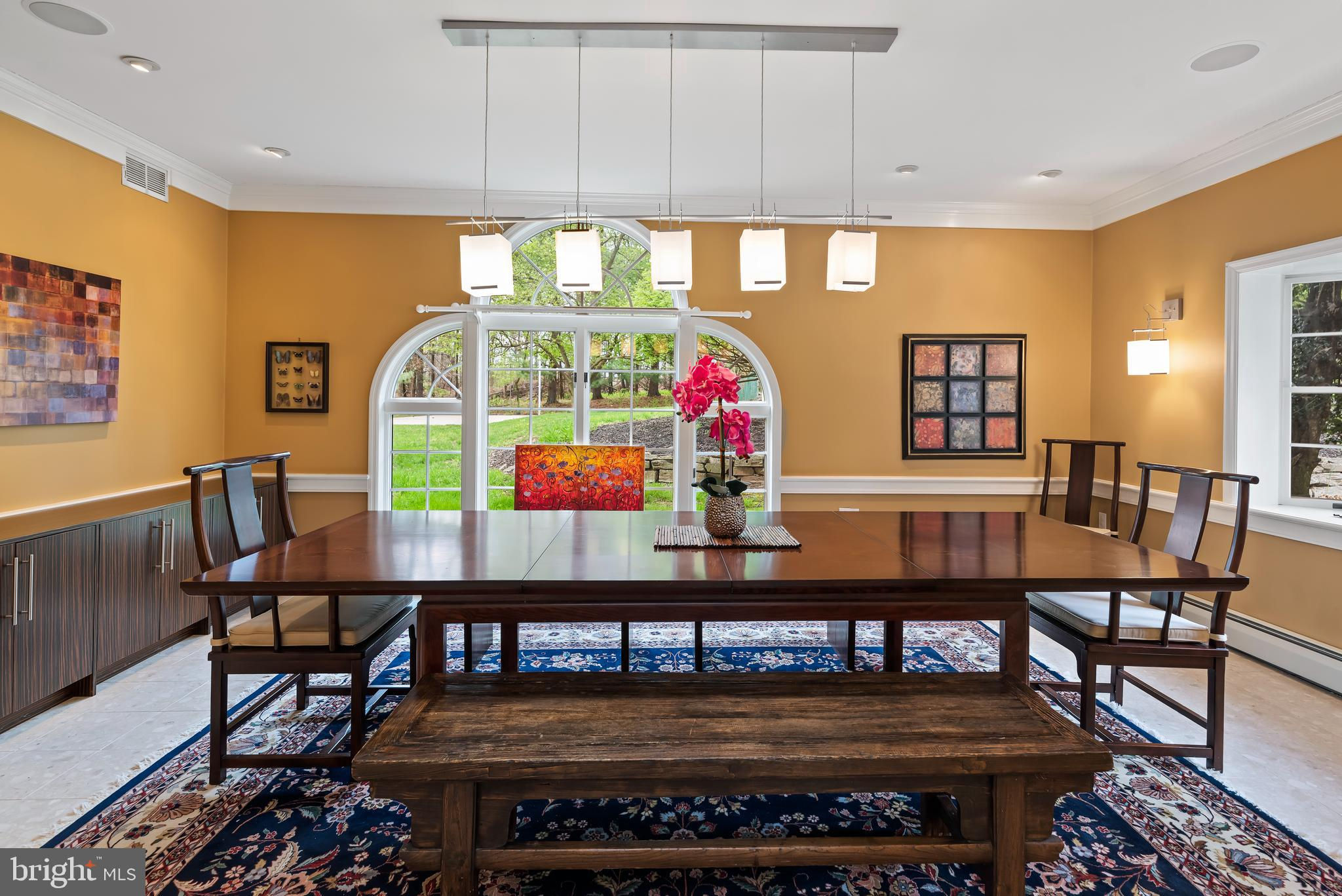 This stunning estate includes 5 spacious bedrooms, 3 full bathrooms, and 1 half bath, all situated on 12.41 acres of manicured lawn and private woods. As you step inside, you will be greeted by a luxurious Travertine marble entrance way and Brazilian Ipe hardwood floors that run throughout the entire first floor of the house. The great room features 18-foot ceilings with 12-inch crown molding, home theater, and five extraordinary arched windows that let in an abundance of natural light. The high-end European kitchen is a chef's dream, with tempered glass back splash, double thick quartz counter tops, and top-of-the-line appliances, including a built in cappuccino machine, and two Insta hot hot water dispensers. The three seasons sun room off the kitchen with sliding glass partitioning wall is where you will love to host friends or sit and relax with a great book. The primary bedroom with built in home theater is a true oasis, featuring Australian Jarrah wood flooring, a walk-in closet with built-ins, and a stunning primary bathroom with Jerusalem limestone floors and walls, an onyx shower with three walls of glass, and an overflow infinitely primary bathtub/spa. The award winning bathroom also includes in-floor radiant heat, a Mr. Steam steam shower, copper bowl sinks, front and rear shower heads, with rain shower head and body jets, heated towel warmer. Other features of this magnificent property include an office with wood built-ins and fireplace, a library with 200-year-old Heartwood Pine floors with fireplace, a workout/fitness room, and a music room with bay windows and crown molding. Enjoy outdoor living at its finest with an in-ground vinyl-lined heated pool with a slide and diving board, surrounded by a 10-foot concrete pool deck. The gas appliances and gas barbecue make outdoor entertaining a breeze. Additional amenities include three wood fireplaces, two gas fireplaces, two central A/C units with multiple heating zones and a three-car detached garage. This clean and green home also has two wells on the property and a commercial water softener, commercial hot water storage, and a reverse osmosis water purifier. Home is being sold completely furnished. Don't miss the opportunity to make this exquisite property your dream home. Owner is a licensed real estate agent.