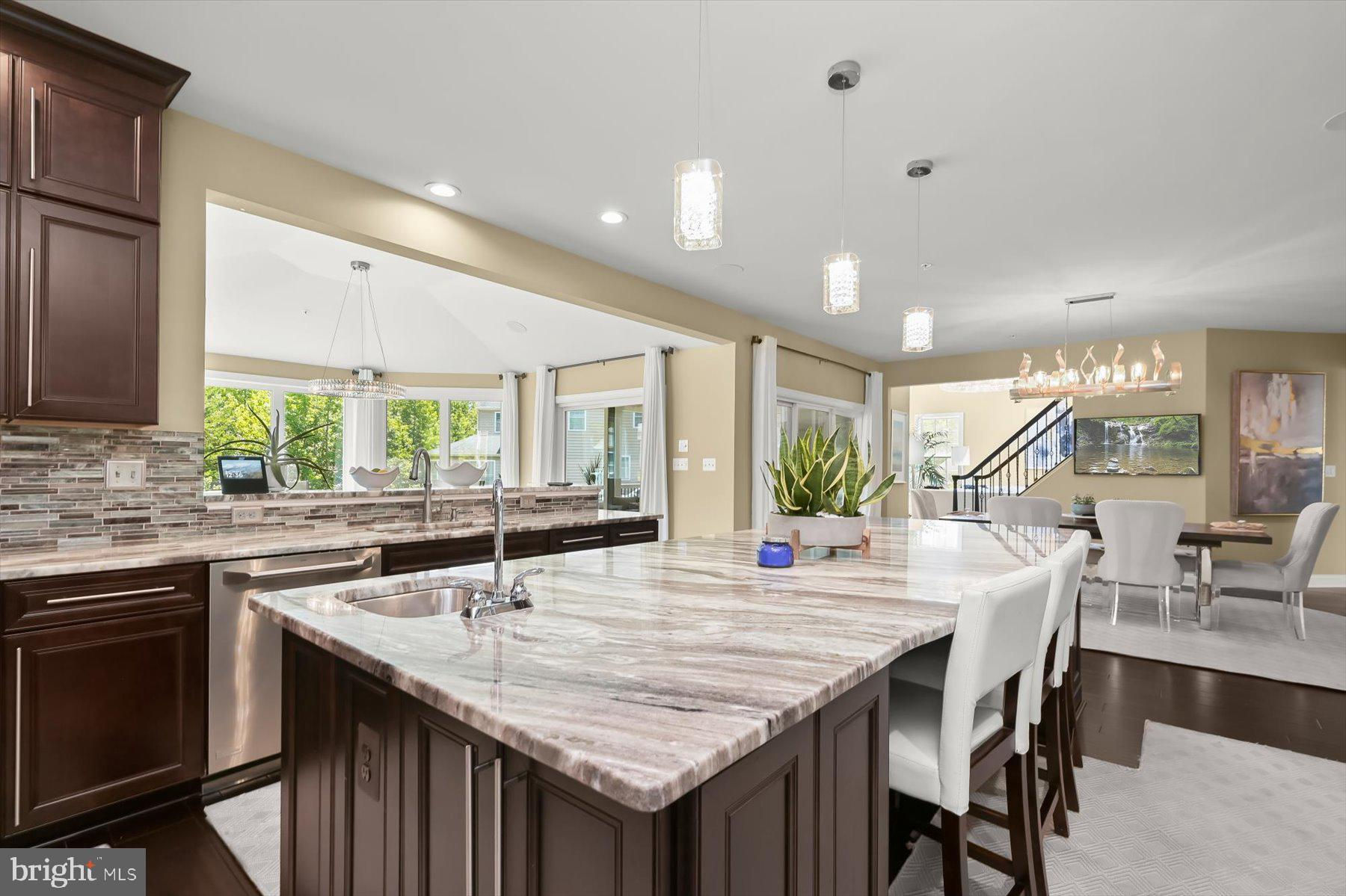 Grand Neo-Georgian Estate with Classic European Accents, 14900 Hopedale Ct delivers nearly 10,000 square feet of curated elegance in the prestigious, gated Oak Creek golf community by Toll Brothers—where luxury, function, and location converge. Perfectly situated on a prominent corner lot, this custom residence radiates sophistication with its handsome brick façade, ionic portico, architectural roofing, and side-entry 3-car garage, framed by vibrant landscaping, elegant hardscapes, and dramatic outdoor living spaces. Inside, the 2-story marble foyer makes a stunning first impression with chandelier lighting, sweeping staircases, and east-west Romeo and Juliette balconies. The main level is designed for grand-scale entertaining, featuring formal living and dining rooms, a sun-filled Naples room, adaptable conservatory, executive office, and a 2-story family room with an 8-foot halo chandelier and gas fireplace. The chef’s kitchen boasts GE Monogram appliances, granite counters, a 16-foot island with prep sink, built-in pantry, and coffered ceilings—all connected by Sonos sound and rich hardwoods. An in-home elevator, powder room, and direct garage access complete the level. Upstairs, four ensuite bedrooms include a lavish primary retreat with dual walk-in closets, a sitting room with two-sided fireplace, and a spa-caliber bath showcasing a Roman Greek seated Super Shower with eight heads, and a sunken tub. The lower level blends leisure and luxury with a state-of-the-art theatre, full custom bar, wine cooler, fitness room, gas fireplace, oversized bedroom, and direct walk-out to the resort-inspired backyard—complete with Trex-style deck, patio TV wall, grilling station, firepit, and ample seating. Community amenities include pocket parks, tennis courts, walking/biking trails, a clubhouse pool, and an 18-hole championship golf course. Just 14 minutes to Annapolis, 15 minutes to the D. C. line, and 30 minutes to downtown, with easy access to major employers, shopping, dining, and cultural destinations. Recent updates include serviced AC units, an elevator upgrade, a quick-recovery 75-gallon gas water heater (2025), and a home warranty through 2026. This is the ultimate in refined living—inside and out. Mortgage savings may be available for buyers of this listing.