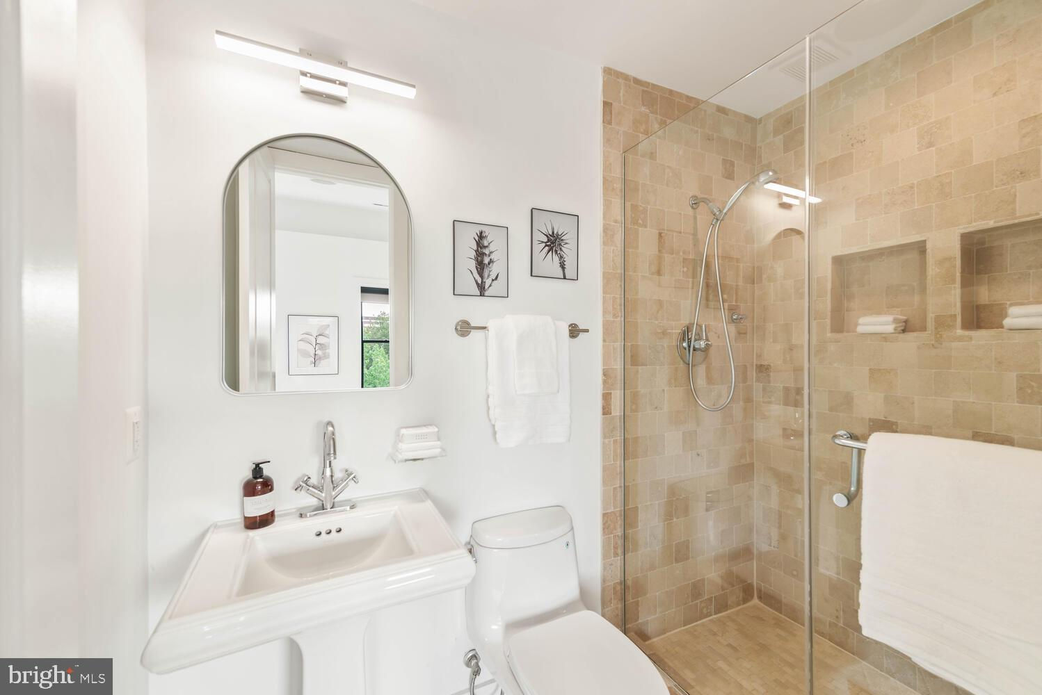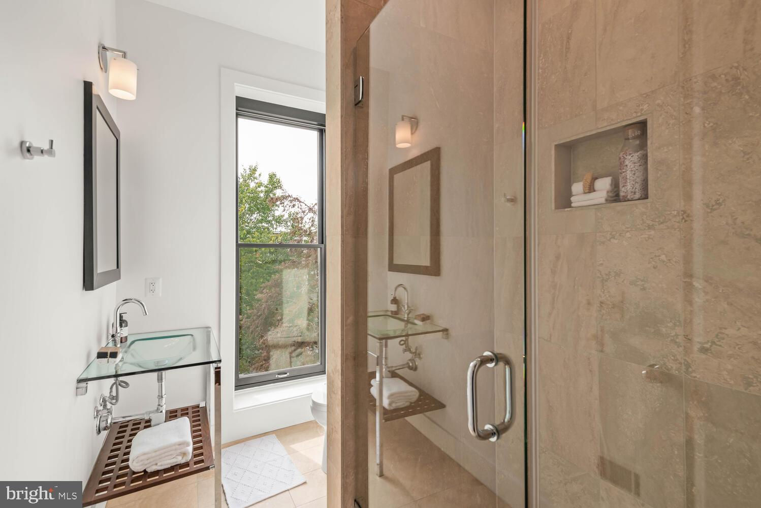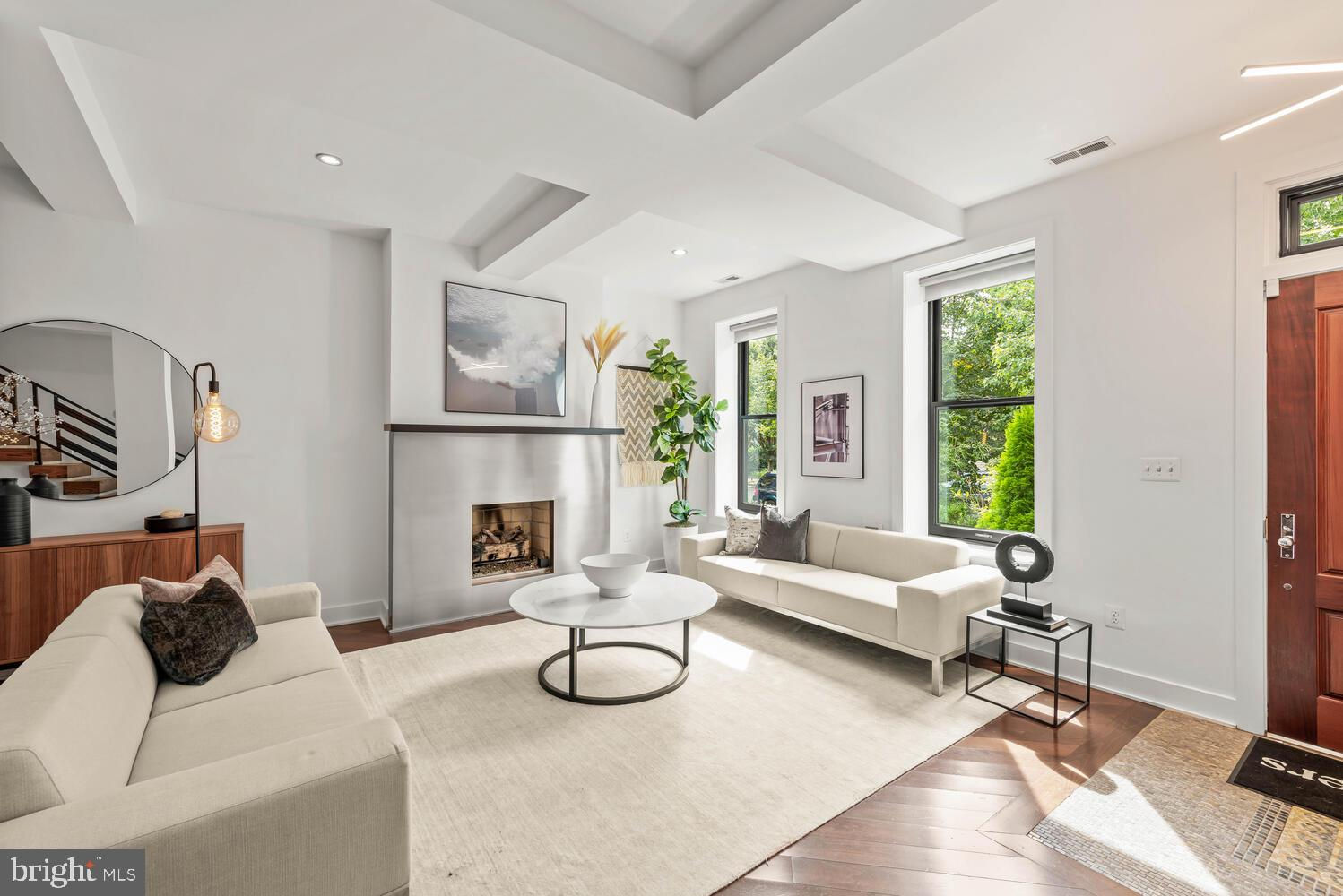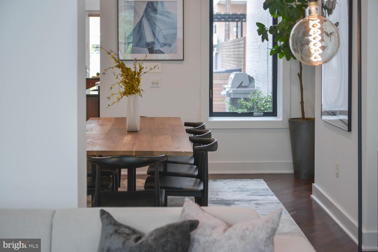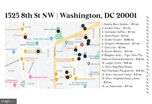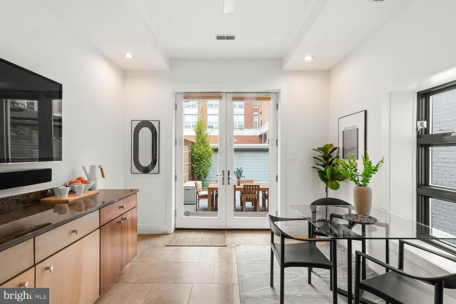 NEW PRICE!!! This stately, modern 20' wide beauty showcases expansive dimensions with 10' ceilings, 2 car parking, and 3 full levels of ALL above ground, sleek living. The current owner has invested extensively, to include new HVAC, Architectural Series Pella windows with motorized Lutron shades, designer hardscaping, perennial yard, full exterior brick pointing and stucco - it's impeccable! The main level showcases impressive modern living space and an open floorplan with gas fireplace, large dining area and a chef's kitchen, powder room and breakfast area that leads to the renovated patio withing dining, a grill zone, 2+ car parking, and beautiful ipe-clad privacy walls. The second floor is your lounge area (perfect for the audiophile with wired sound throughout) - find an incredibly spacious second living room and wet bar plus two full bedrooms and a full hall bath and laundry. The top floor features two en-suite bedrooms and bathrooms, a huge walk-in closet and an upper level patio with great sunlight and privacy. Outside, the world is your Michelin starred Oyster-Oyster! So many more award winning restaurants are within blocks - Convivial, the Dabney, Tiger Fork, Causa/Amazonia, Ambar, Dacha Beer Garden, All Purpose, Chaplins and so much more. Le Diplomate and 14th Street is an easy minute stroll. 2 blocks to the metro, and a great dog park is a little more. Fido will love it! What more could you want? Come, rest easy and enjoy - you’re home!