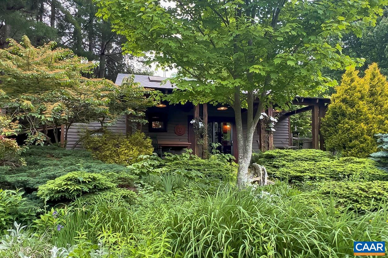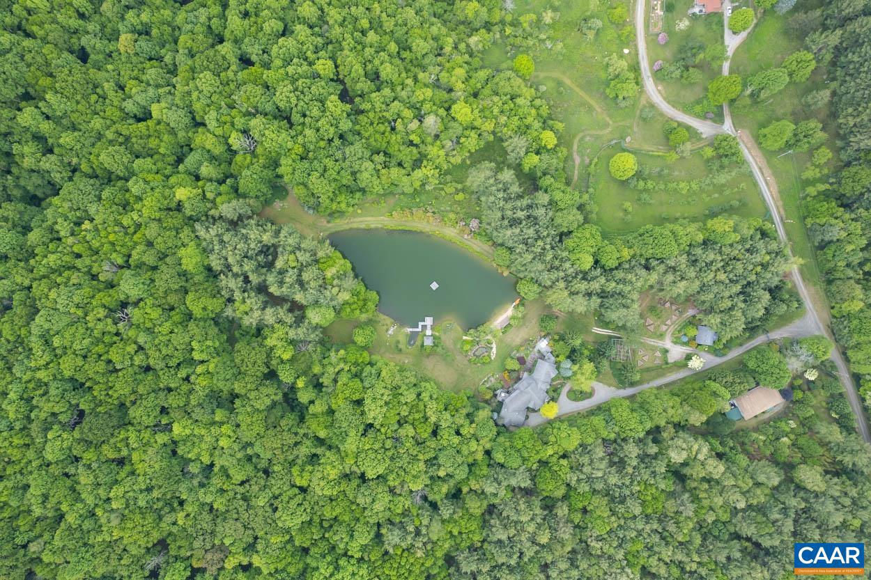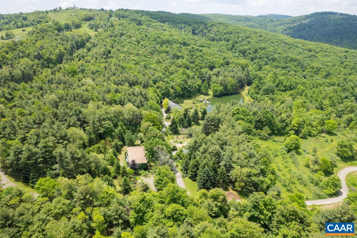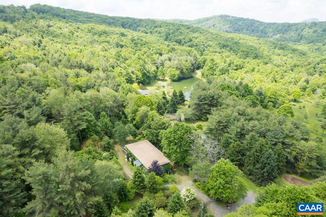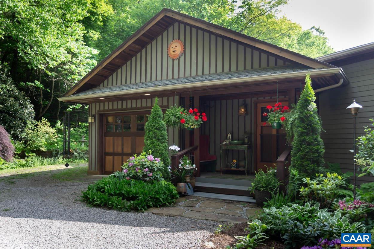 Sarvisberry is a remarkable property nestled in the scenic mountains of Floyd, Virginia, just off the Blue Ridge Parkway. This unique 26-acre estate, situated adjacent to the prestigious 5-star Primland Resort, offers an unparalleled habitat for diverse flora and fauna, thanks to its distinctive land and elevation. The property's elevation of over 3250 feet above sea level creates a unique micro-climate, ideal for a variety of plants and trees, reminiscent of an English garden. The main house on the property is an impressive 4792 square foot custom-built home, featuring 4 bedrooms and 4 bathrooms. With a passive solar design, it boasts a walk-out lower level that leads directly to the pond and backyard, extensive decks and patios offering stunning views, and a hot tub. The home is adorned with custom woodwork and exposed beams throughout, adding to its charm and elegance. Additionally there is a 1 bedroom guest cottage with a full bathroom.