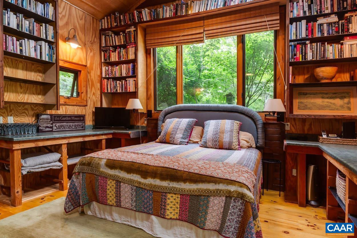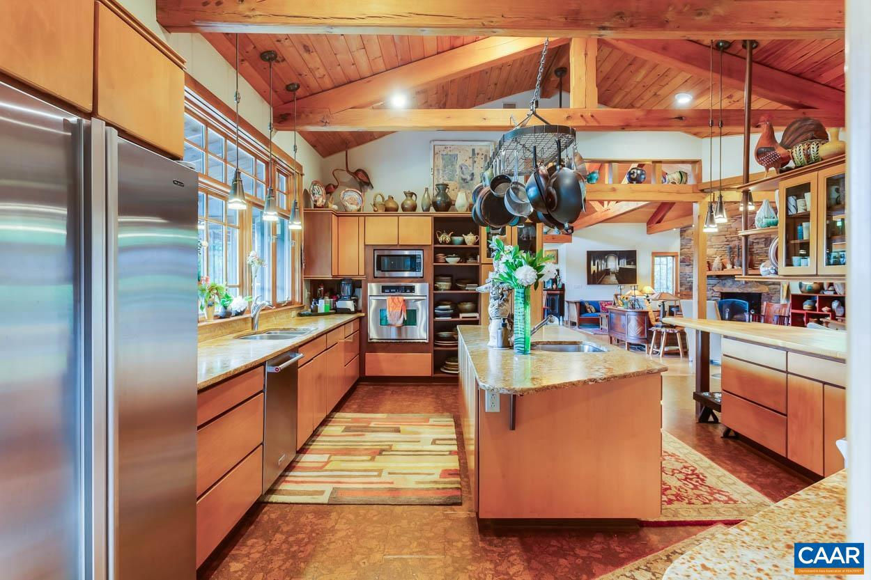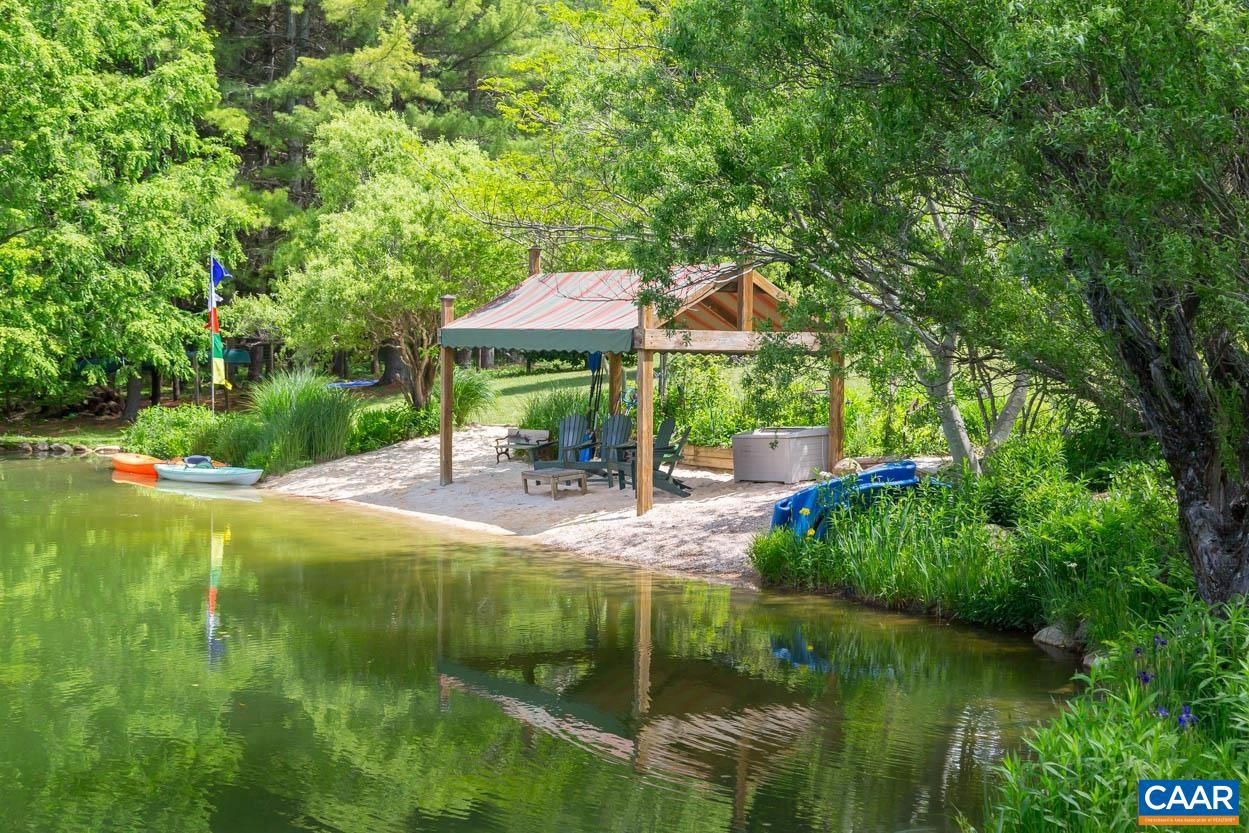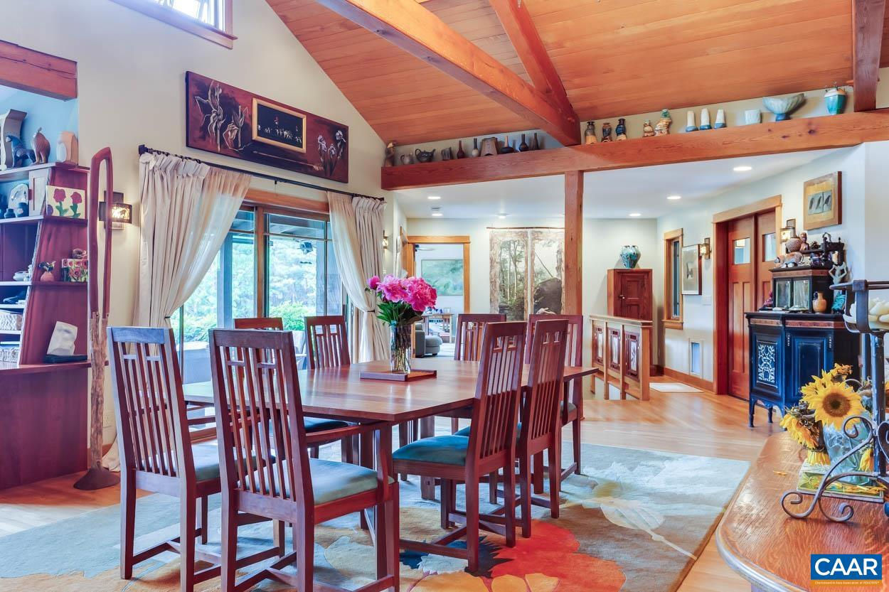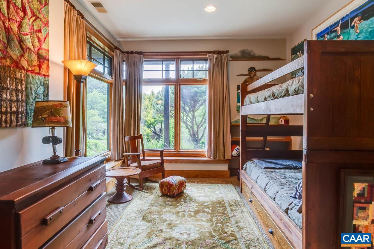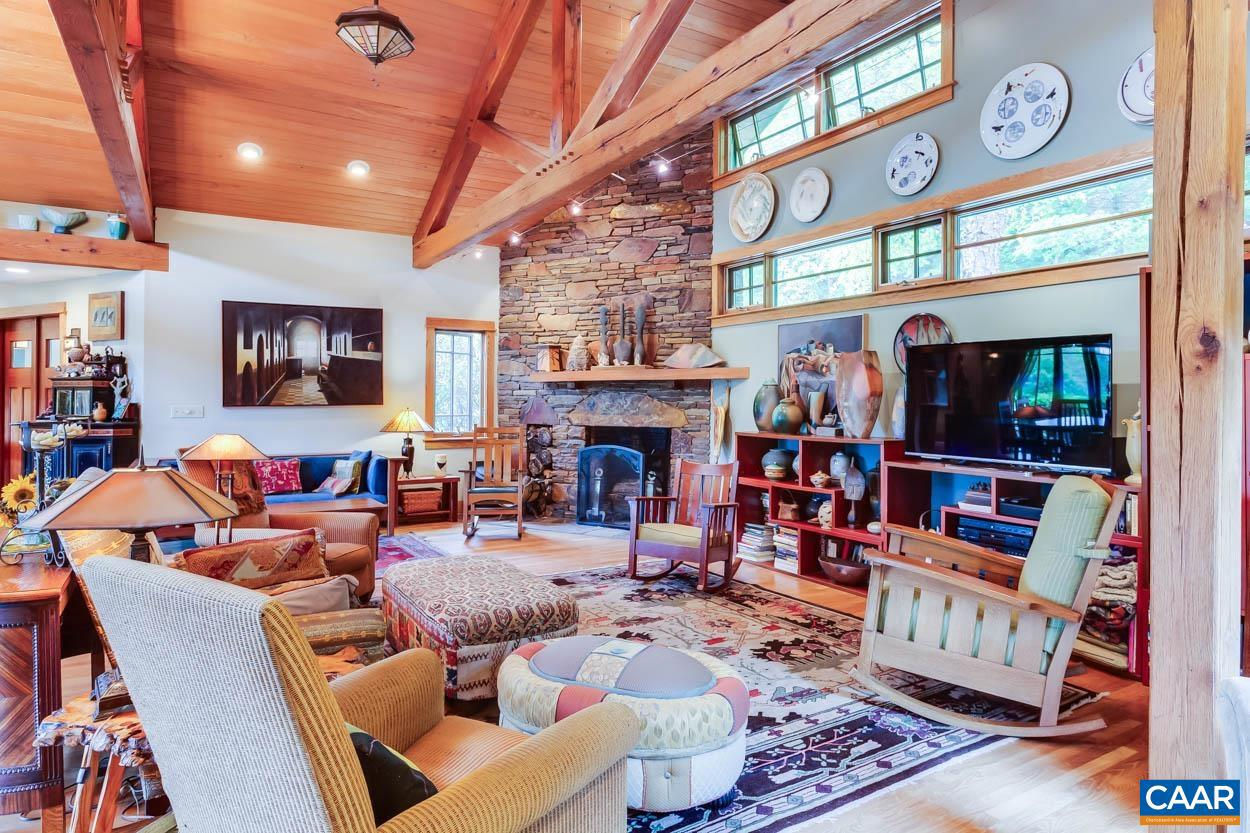 Sarvisberry is a remarkable property nestled in the scenic mountains of Floyd, Virginia, just off the Blue Ridge Parkway. This unique 26-acre estate, situated adjacent to the prestigious 5-star Primland Resort, offers an unparalleled habitat for diverse flora and fauna, thanks to its distinctive land and elevation. The property's elevation of over 3250 feet above sea level creates a unique micro-climate, ideal for a variety of plants and trees, reminiscent of an English garden. The main house on the property is an impressive 4792 square foot custom-built home, featuring 4 bedrooms and 4 bathrooms. With a passive solar design, it boasts a walk-out lower level that leads directly to the pond and backyard, extensive decks and patios offering stunning views, and a hot tub. The home is adorned with custom woodwork and exposed beams throughout, adding to its charm and elegance. Additionally there is a 1 bedroom guest cottage with a full bathroom.