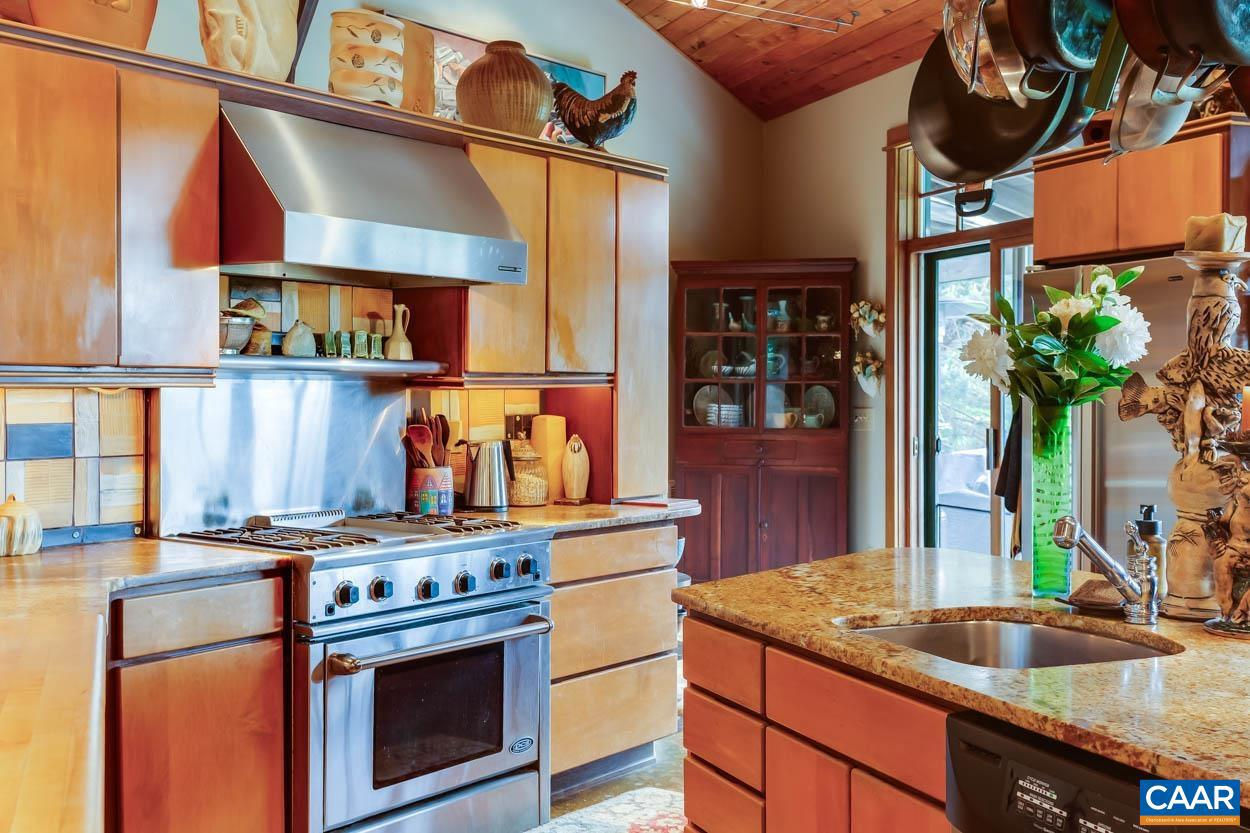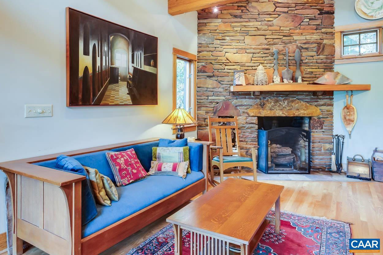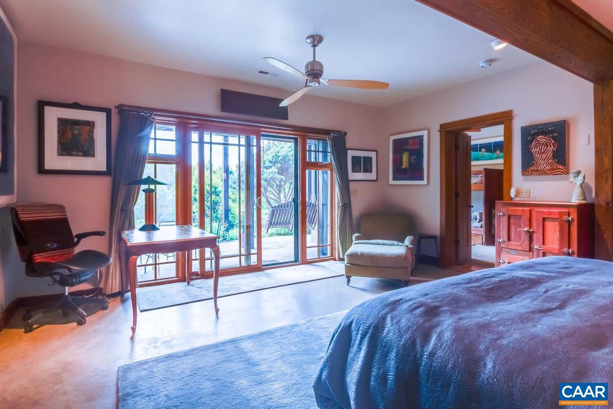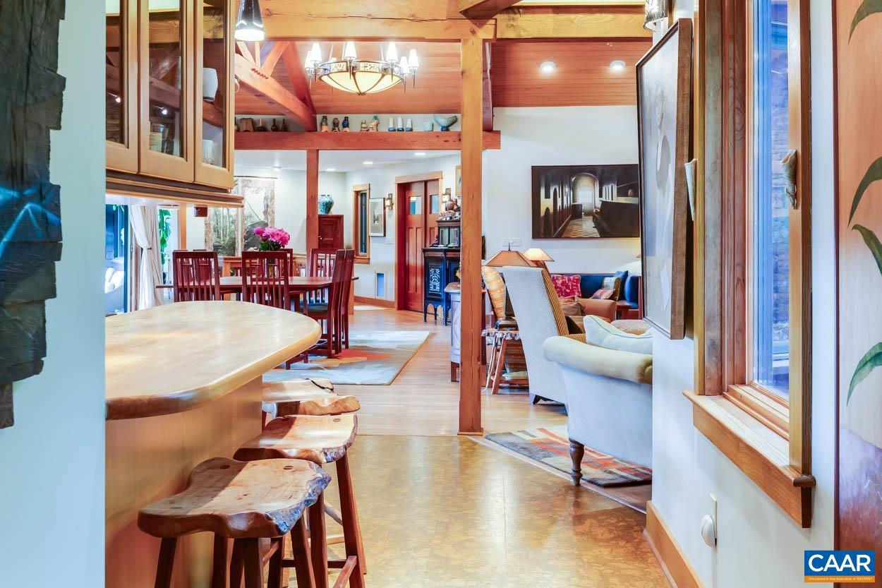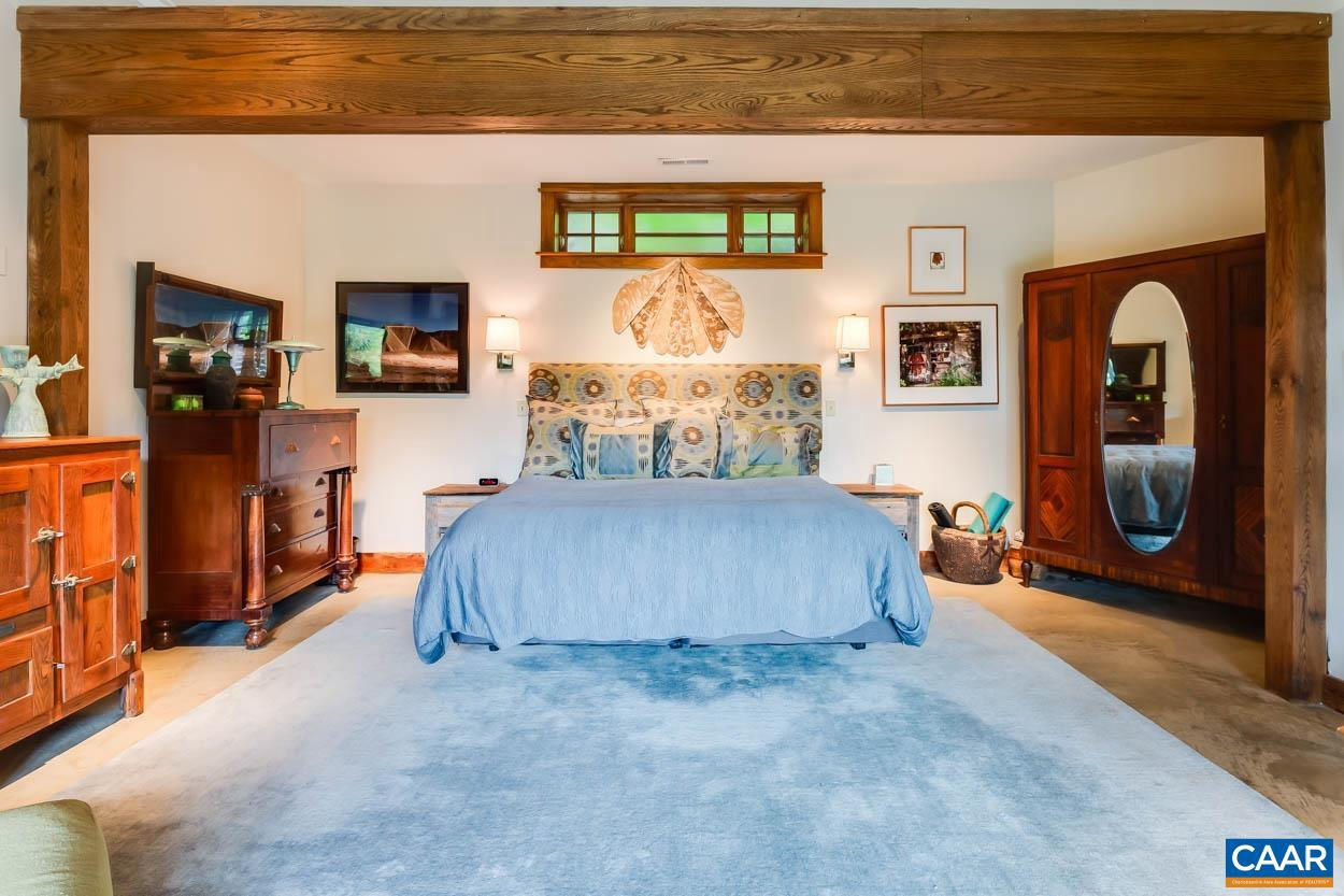 Sarvisberry is a remarkable property nestled in the scenic mountains of Floyd, Virginia, just off the Blue Ridge Parkway. This unique 26-acre estate, situated adjacent to the prestigious 5-star Primland Resort, offers an unparalleled habitat for diverse flora and fauna, thanks to its distinctive land and elevation. The property's elevation of over 3250 feet above sea level creates a unique micro-climate, ideal for a variety of plants and trees, reminiscent of an English garden. The main house on the property is an impressive 4792 square foot custom-built home, featuring 4 bedrooms and 4 bathrooms. With a passive solar design, it boasts a walk-out lower level that leads directly to the pond and backyard, extensive decks and patios offering stunning views, and a hot tub. The home is adorned with custom woodwork and exposed beams throughout, adding to its charm and elegance. Additionally there is a 1 bedroom guest cottage with a full bathroom.