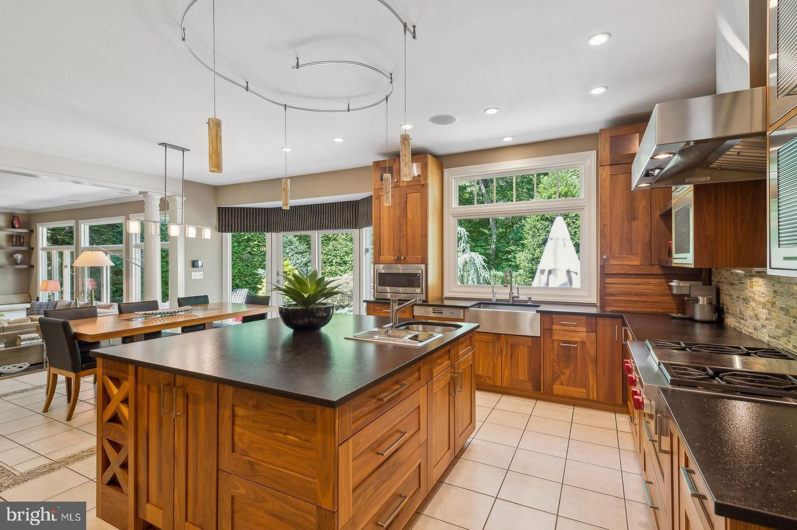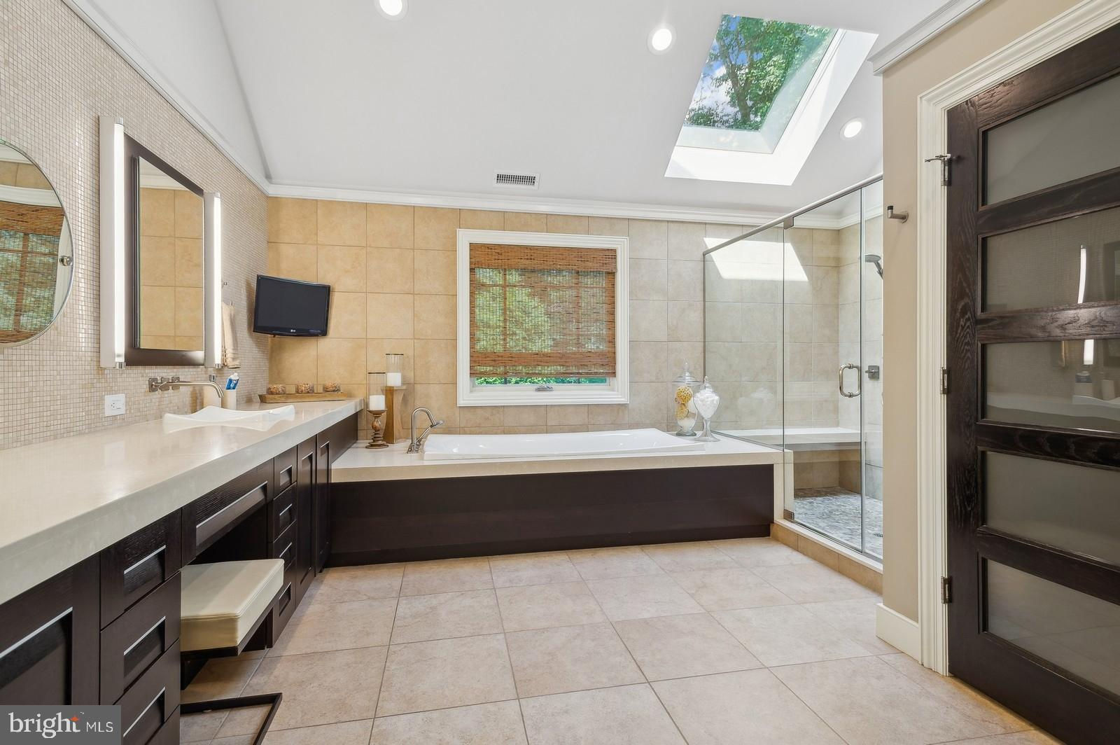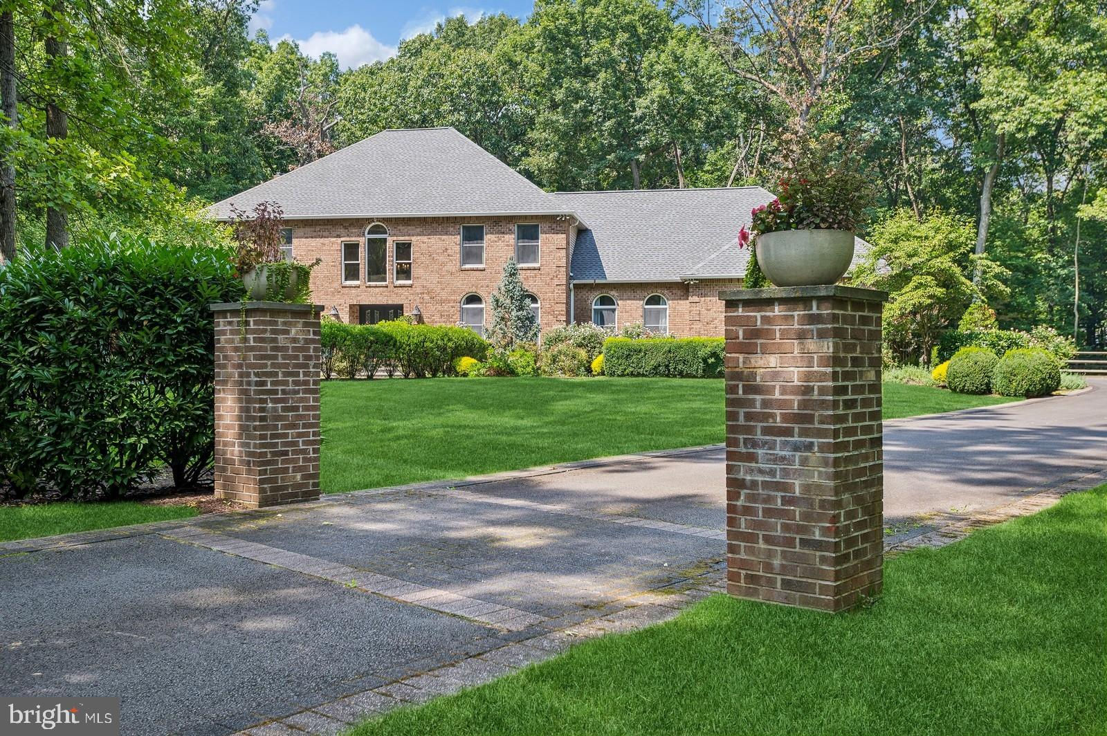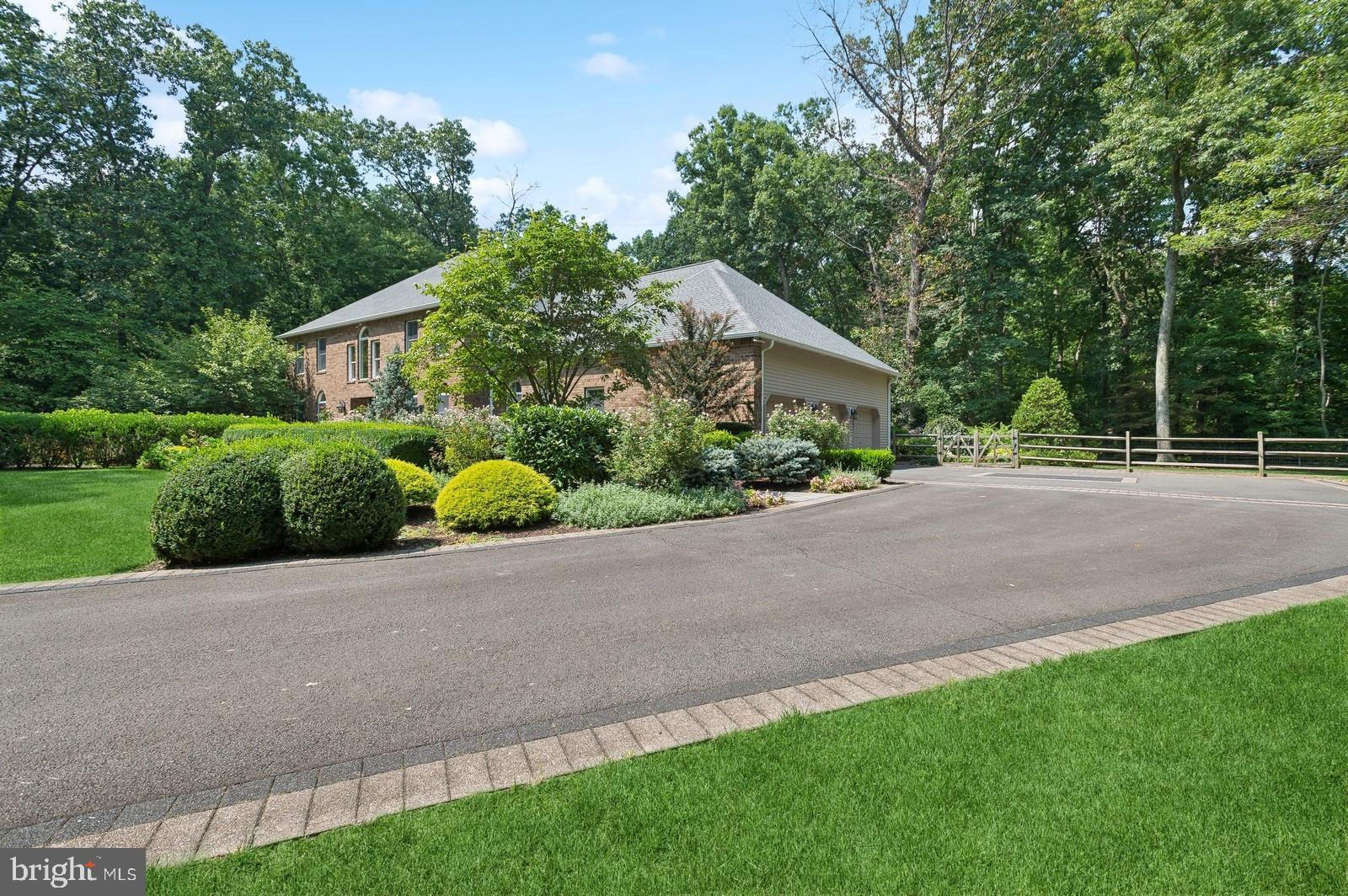 A Unique and Spectacular Estate Home set on exquisitely landscaped 2+ acres at the end of a beautiful cul-de-sac in West Windsor’s Windsor Ridge development. The elegance, grandeur and privacy of this special property is unmatched in the area. This meticulously maintained residence has been extensively upgraded throughout. Set beyond a grand, serpentine, private custom driveway, sits this magnificent 5-bedroom 3.5 bath residence. The harlequin patterned hardscape entry courtyard is a prelude to the grand foyer with its custom designed coordinating walls and cascading staircase. The exquisitely decorated and highly detailed formal spaces are drenched in natural light and are enhanced with custom millwork and etched hardwood floors. French doors lead to the beautifully appointed study with custom built-ins, vaulted ceiling and full wall of windows. The impressive updated gourmet kitchen has been fully equipped for the discerning chef and boasts Bentwood custom natural walnut cabinetry, honed granite countertop, custom tiled backsplash, Sub Zero refrigerator, beverage refrigerator, Wolf Range, Dacor wall ovens, Miele dishwasher and built-in microwave. The expansive center Island with overhead Tech Lighting is equipped with a prep sink, a Wolf stainless steel steamer, and provides great space for meal preparation and breakfast bar seating. Custom In-laid tile floors adorn the light and bright breakfast area with custom chandelier and slider to the outdoors. The step-down family room is soaked in light from the full wall of floor-to ceiling windows and is enhanced by hardwood floors and a wood burning fireplace flanked by custom built-ins. The first floor spacious bedroom has two professionally outfitted closets and is adjacent to a stunning full bathroom with an oversized all glass shower. A main floor laundry/mudroom with custom cabinetry and access to the rear yard, a recently renovated half bath, and rear staircase to the 2nd level completes the main floor of this home. Upstairs you’ll find the primary bedroom with professionally fitted walk-in closet and adjacent sumptuous spa-like bathroom suite complete with oversized soaking tub, radiant heat ceramic tile floors, dual sink vanity, frosted glass custom hardwood door, and multi zone stall shower; two generously sized additional bedrooms, updated hall bath and great sized bonus room with skylight- that is either a fifth bedroom or a perfect place for an at home gym or playroom. The fully finished basement consists of a play/game area, French doors to separate work/office space, an in-home theatre room with stadium seating, built-in cabinetry w/ beverage refrigerator, and 108" projector tv/screen. The backyard is a paradise of beauty, tranquility and privacy. Entertain on the expansive architecturally designed paver patio complete with outdoor kitchen, granite countertops and fire-pit. This unique and special property has been professionally landscaped and is truly exceptional! A three-car oversized garage, in-ground sprinkler, landscape lighting, new roof (2022), updated septic, new driveway with hardscape border, security system and much more. Highly Ranked West Windsor/Plainsboro Schools and just minutes to Princeton Jct. NJ Transit Station.