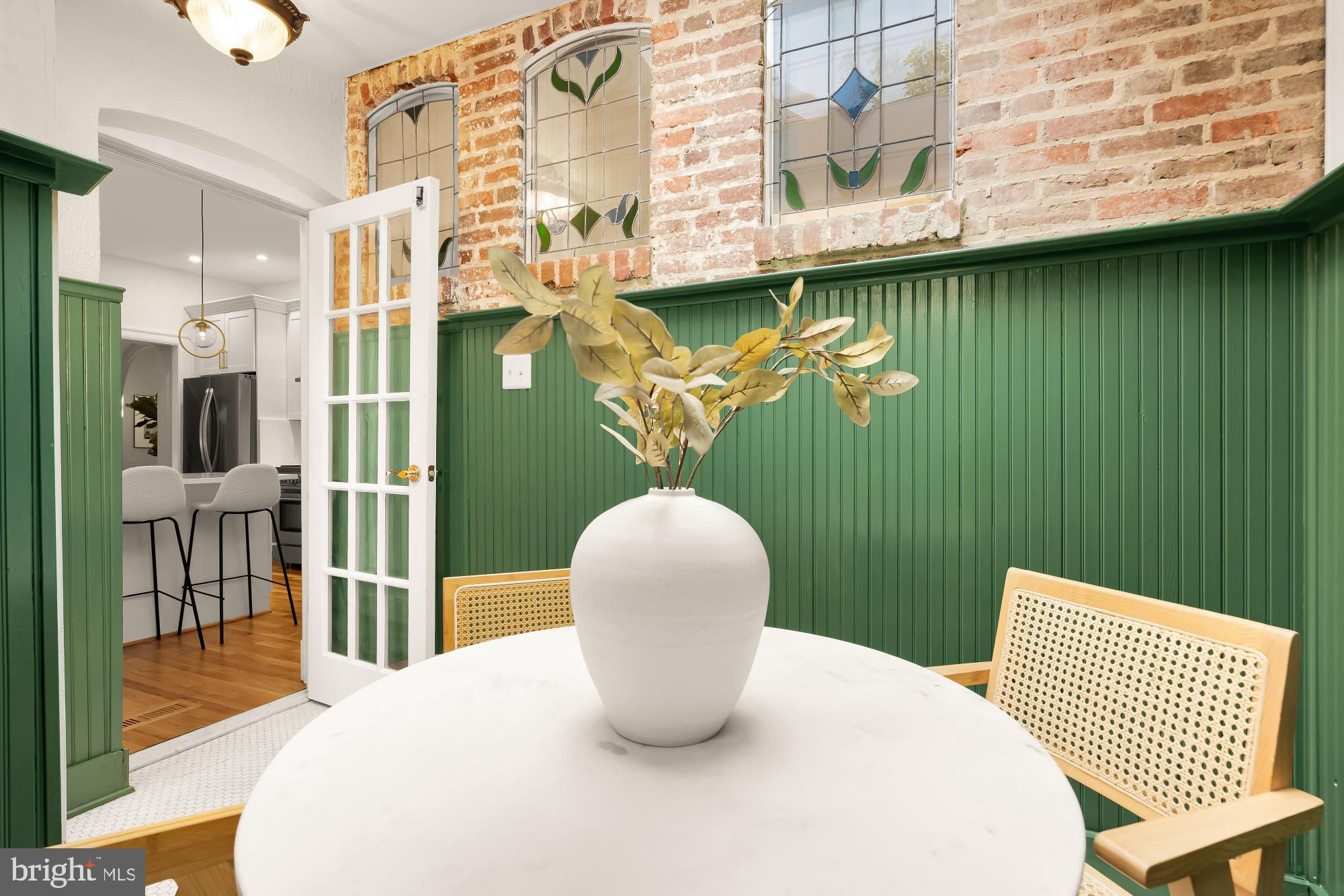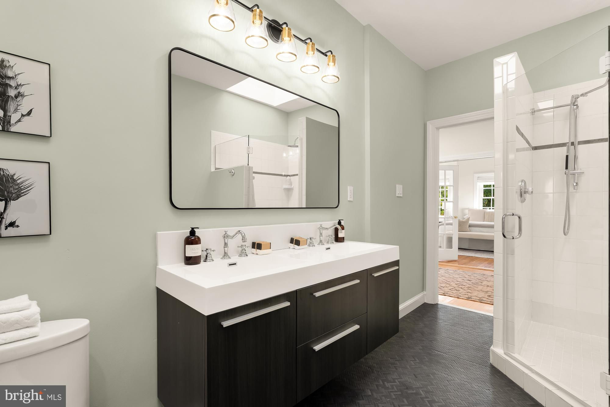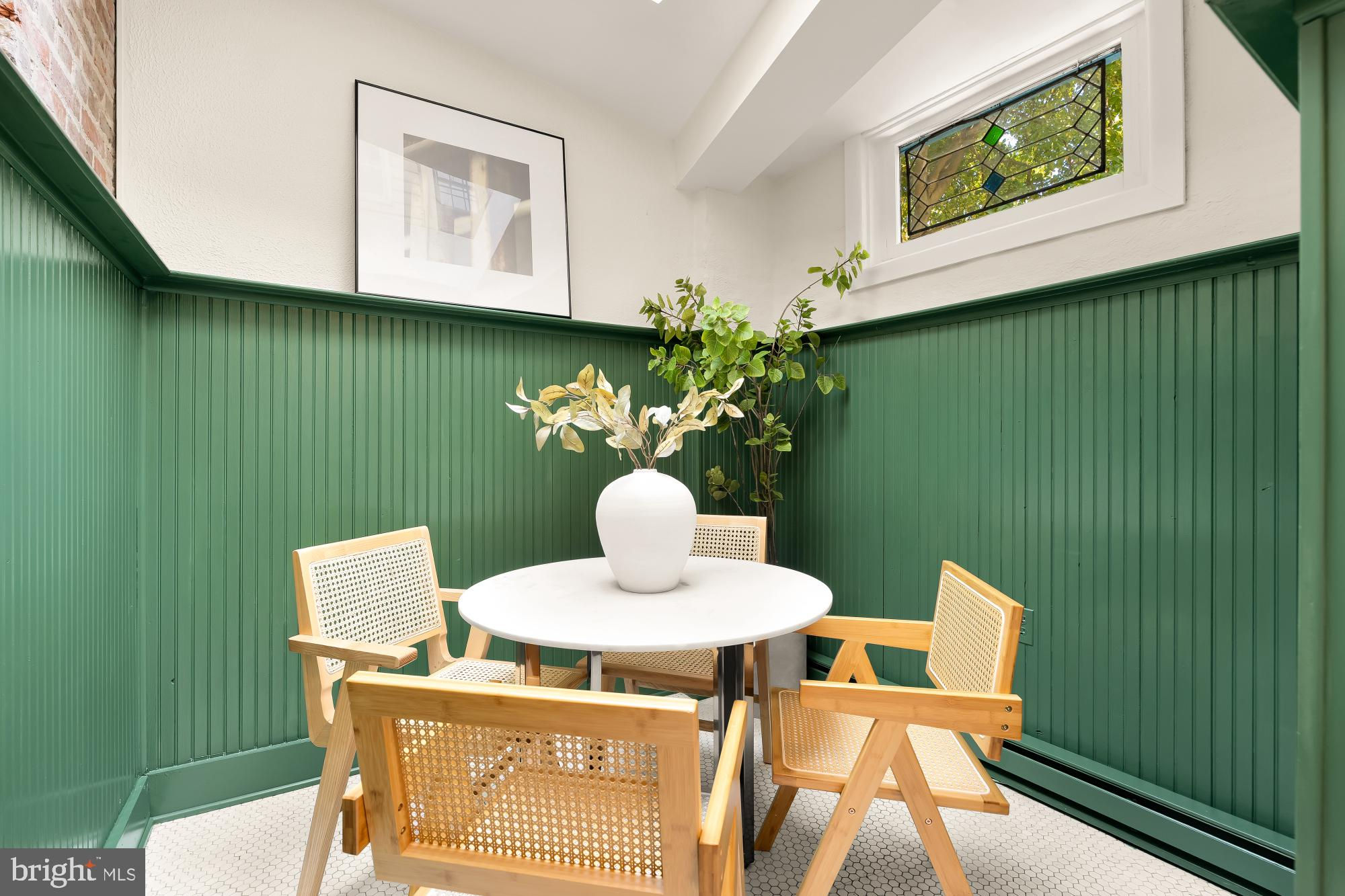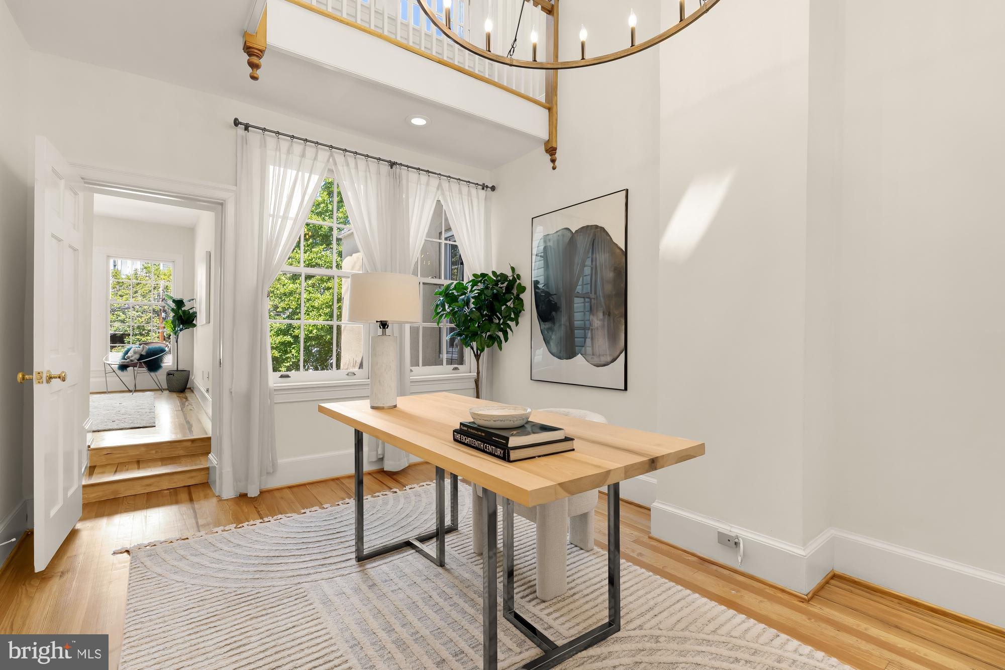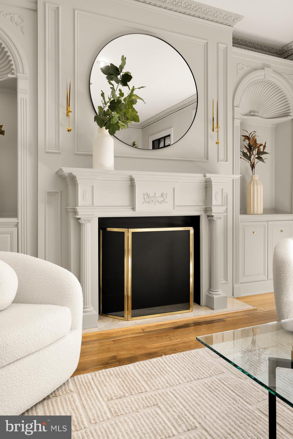 Tucked away in Historic Mount Pleasant, just one block from the National Zoo, 1819 Kenyon Street is an extraordinarily crafted Mediterranean-style rowhome boasting 5 bedrooms, 4 bathrooms, 3 half bathrooms, and a completely separate carriage house all spread over an expansive 4,400 est. sq. ft of living space. Stunning original details such as intricate moldings, large-scale rooms, and gleaming hardwood floors seamlessly combine with elegant updates for today’s homeowner. Multiple skylights, soaring ceiling heights, and oversized windows flood every space with light, adding to the airiness and grandeur of this magnificent home. Enter through the formal foyer to a sunlit seating area or ideal office, marked by stately columns, striking moldings, and a classic brick fireplace. Concealed doors open onto the home’s laundry room, mudroom area, pet wash station, and bonus storage room perfect for a wine cellar. Upstairs, the main level features a grand, light-filled living room with a fireplace and custom built-ins, a stylish dry bar for entertaining, and the formal dining room perfect for large gatherings. The rear of the home is anchored by a fully renovated kitchen boasting a BlueStar 6-burner range, LG French door refrigerator, eat-at peninsula, and a sunny breakfast room reminiscent of a Parisian café with exposed brick, painted wainscoting, and an oversized skylight. The butler’s pantry adds convenience with a second sink and beverage center, while a stunning powder room with stained glass windows completes this level. The upper levels offer a range of flexible spaces, all drenched in light from large windows and a huge over-stair skylight. On the third level, enjoy a generously sized bedroom with walk-in closet, en-suite bath, and cozy fireplace; a sun-filled second bedroom with a beautifully tiled en-suite bathroom and curbless shower; and a versatile office or playroom beneath an impressive two-story ceiling. The top floor showcases an airy primary suite with cathedral ceilings, glass-paneled French doors, and beautiful views of the surrounding greenery. Start and end your day in the luxurious primary bathroom featuring a clawfoot tub, floating double-vanity, and walk-in shower. Adjacent is a light-filled windowed closet or fourth bedroom, outfitted with custom storage. A rare highlight of this property is the fully detached carriage house—an impeccably renovated 1 bedroom, 1.5 bath residence. It offers a spacious living and dining area, a full kitchen, and stacked laundry, all drenched in sunlight from two skylights and a multitude of windows. This flexible space is perfect for long-term guests, multi-generational living, or as a premium rental opportunity. Outdoor living is effortless with a private rear patio connecting the main house and carriage house, providing an ideal setting for relaxation and al fresco dining. Stroll up to Mount Pleasant Street for coffee, yoga, shopping, dining, and more, or get outdoors on the trails of Rock Creek Park or at the National Zoo. Convene with neighbors at “Acorn Park” around the corner and hit up the Saturday Farmer’s Market on Mount Pleasant Street. In bounds for Bancroft Elementary, just a few blocks away, as well as Deal Middle School and Jackson-Reed High School. With its unique architecture, light-filled interiors, and flexible living options, 1819 Kenyon Street is an extraordinary offering in one of DC’s most cherished neighborhoods.