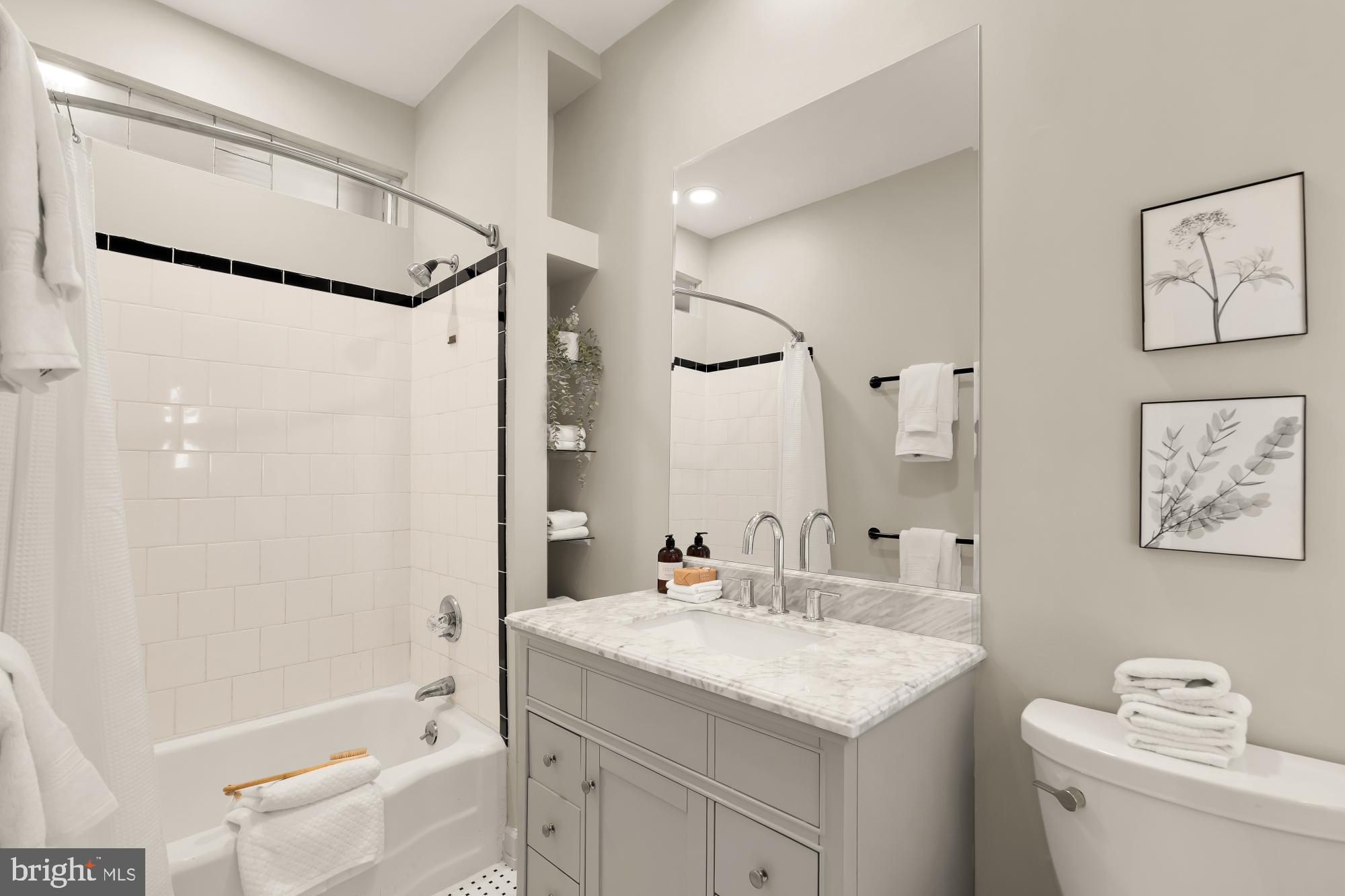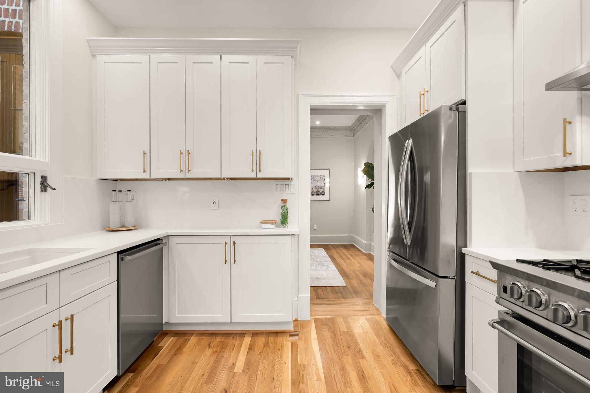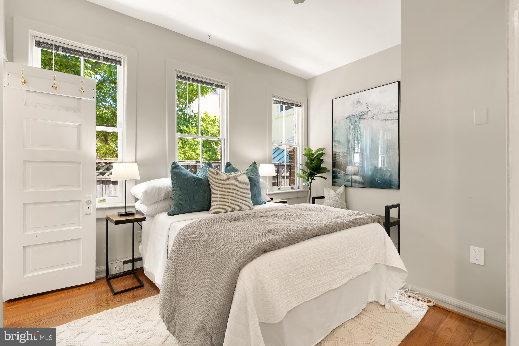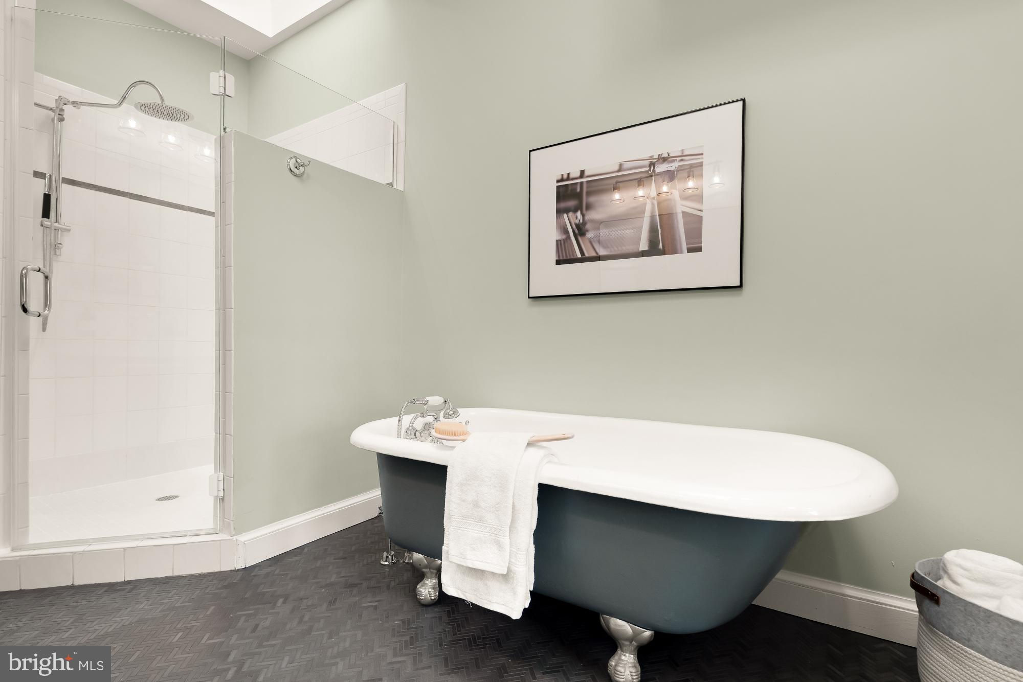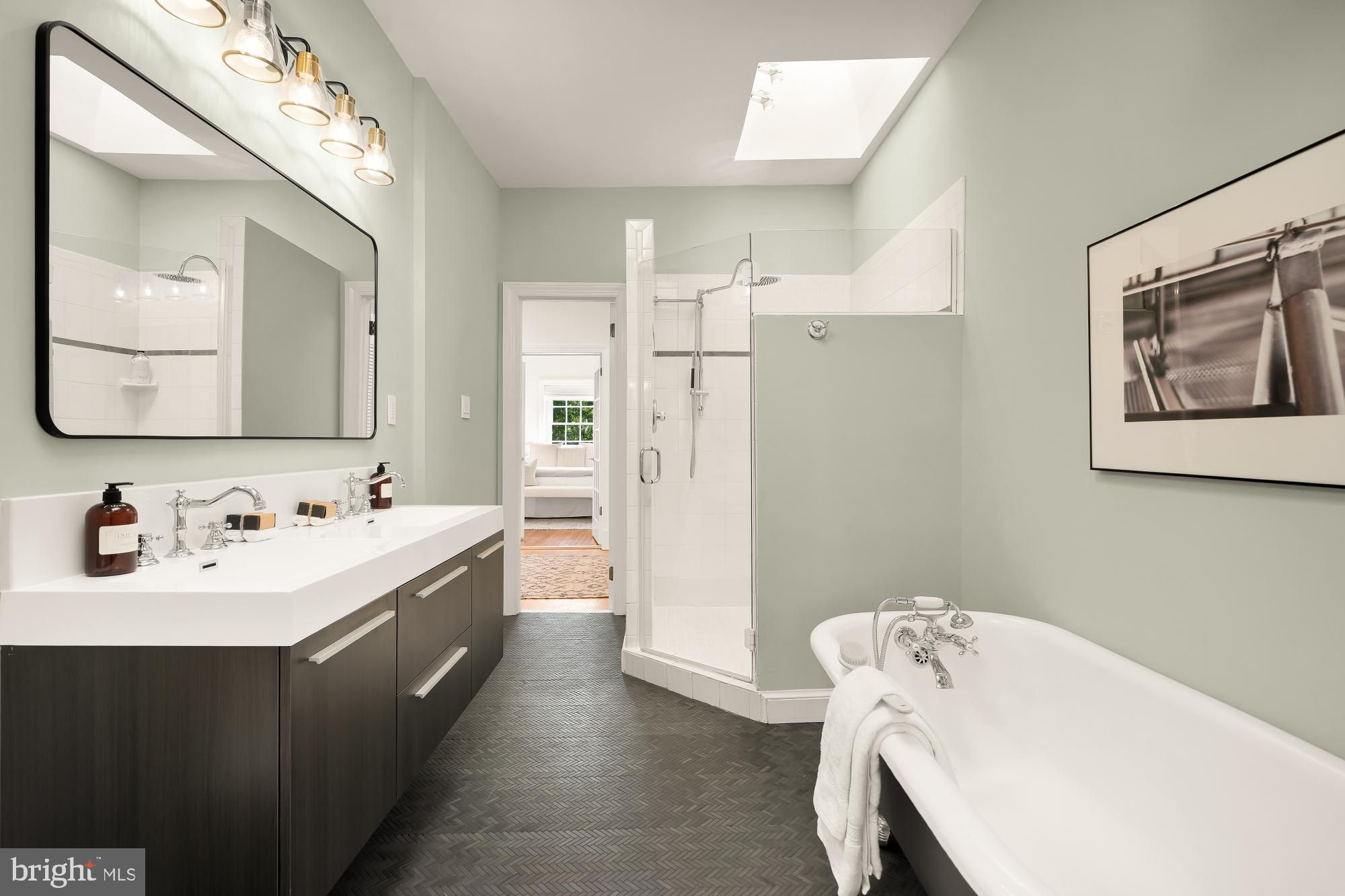 Tucked away in Historic Mount Pleasant, just one block from the National Zoo, 1819 Kenyon Street is an extraordinarily crafted Mediterranean-style rowhome boasting 5 bedrooms, 4 bathrooms, 3 half bathrooms, and a completely separate carriage house all spread over an expansive 4,400 est. sq. ft of living space. Stunning original details such as intricate moldings, large-scale rooms, and gleaming hardwood floors seamlessly combine with elegant updates for today’s homeowner. Multiple skylights, soaring ceiling heights, and oversized windows flood every space with light, adding to the airiness and grandeur of this magnificent home. Enter through the formal foyer to a sunlit seating area or ideal office, marked by stately columns, striking moldings, and a classic brick fireplace. Concealed doors open onto the home’s laundry room, mudroom area, pet wash station, and bonus storage room perfect for a wine cellar. Upstairs, the main level features a grand, light-filled living room with a fireplace and custom built-ins, a stylish dry bar for entertaining, and the formal dining room perfect for large gatherings. The rear of the home is anchored by a fully renovated kitchen boasting a BlueStar 6-burner range, LG French door refrigerator, eat-at peninsula, and a sunny breakfast room reminiscent of a Parisian café with exposed brick, painted wainscoting, and an oversized skylight. The butler’s pantry adds convenience with a second sink and beverage center, while a stunning powder room with stained glass windows completes this level. The upper levels offer a range of flexible spaces, all drenched in light from large windows and a huge over-stair skylight. On the third level, enjoy a generously sized bedroom with walk-in closet, en-suite bath, and cozy fireplace; a sun-filled second bedroom with a beautifully tiled en-suite bathroom and curbless shower; and a versatile office or playroom beneath an impressive two-story ceiling. The top floor showcases an airy primary suite with cathedral ceilings, glass-paneled French doors, and beautiful views of the surrounding greenery. Start and end your day in the luxurious primary bathroom featuring a clawfoot tub, floating double-vanity, and walk-in shower. Adjacent is a light-filled windowed closet or fourth bedroom, outfitted with custom storage. A rare highlight of this property is the fully detached carriage house—an impeccably renovated 1 bedroom, 1.5 bath residence. It offers a spacious living and dining area, a full kitchen, and stacked laundry, all drenched in sunlight from two skylights and a multitude of windows. This flexible space is perfect for long-term guests, multi-generational living, or as a premium rental opportunity. Outdoor living is effortless with a private rear patio connecting the main house and carriage house, providing an ideal setting for relaxation and al fresco dining. Stroll up to Mount Pleasant Street for coffee, yoga, shopping, dining, and more, or get outdoors on the trails of Rock Creek Park or at the National Zoo. Convene with neighbors at “Acorn Park” around the corner and hit up the Saturday Farmer’s Market on Mount Pleasant Street. In bounds for Bancroft Elementary, just a few blocks away, as well as Deal Middle School and Jackson-Reed High School. With its unique architecture, light-filled interiors, and flexible living options, 1819 Kenyon Street is an extraordinary offering in one of DC’s most cherished neighborhoods.