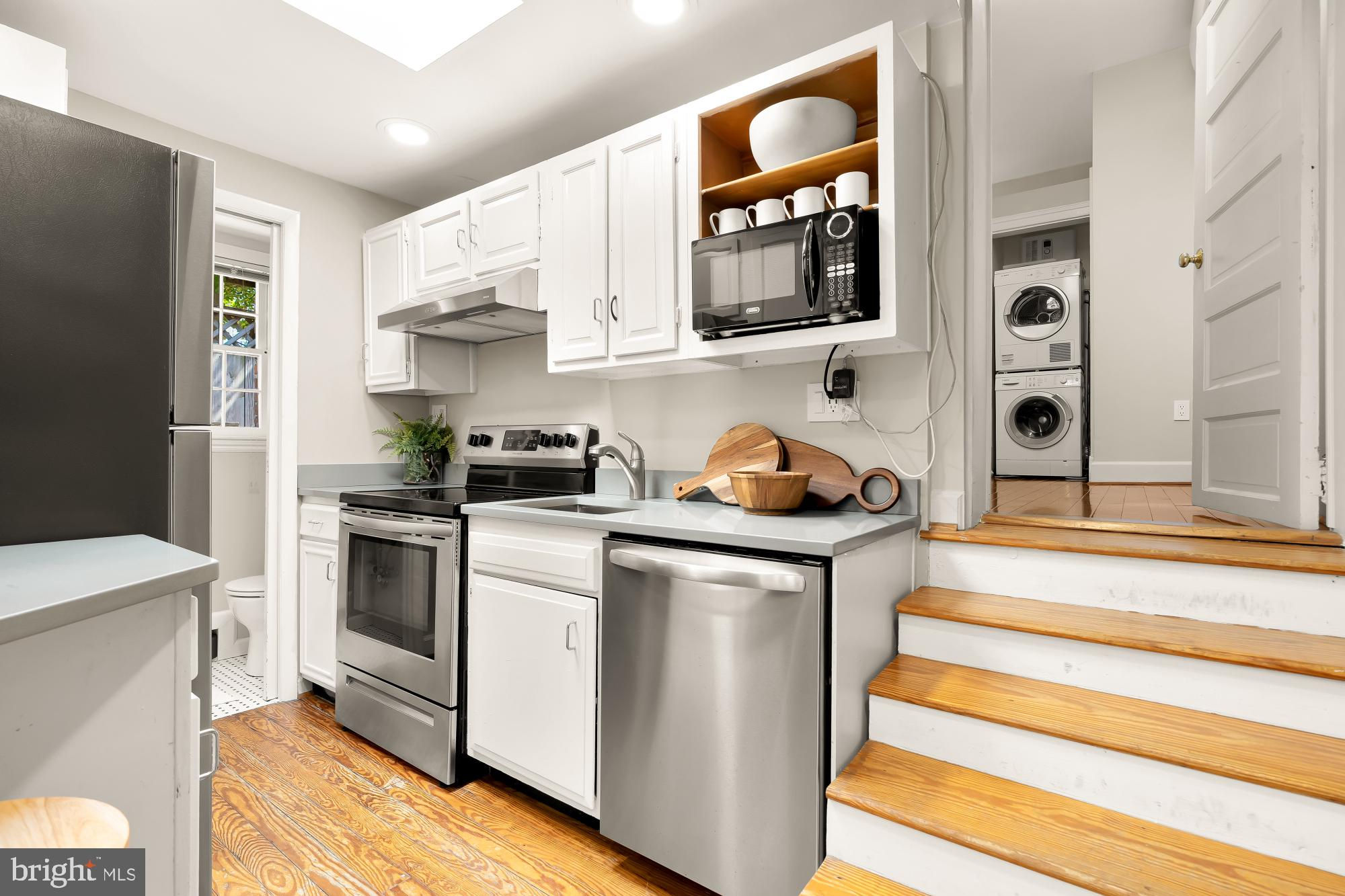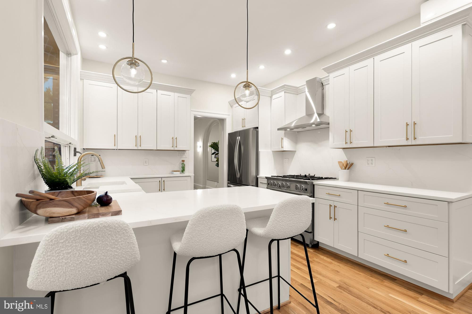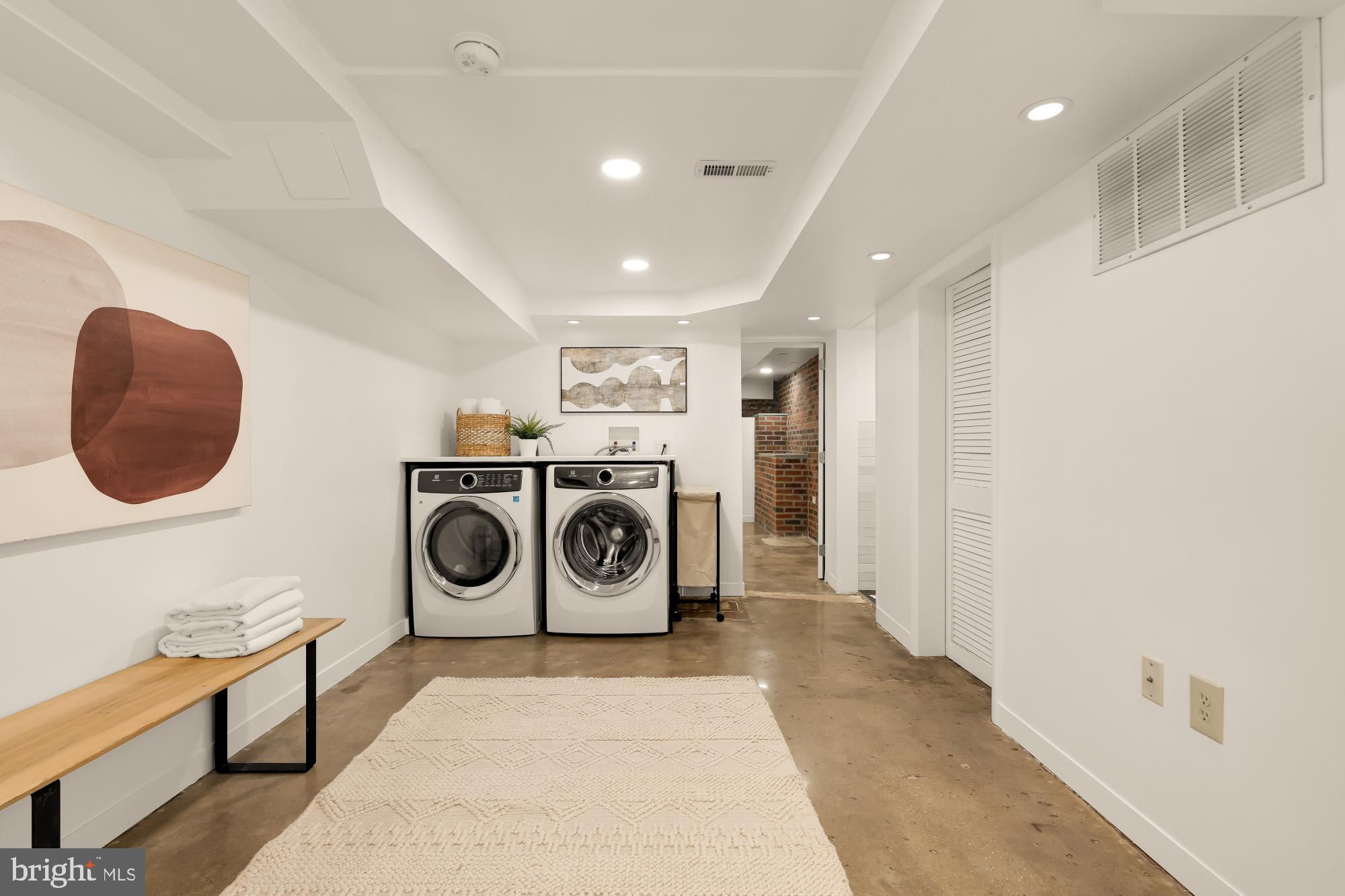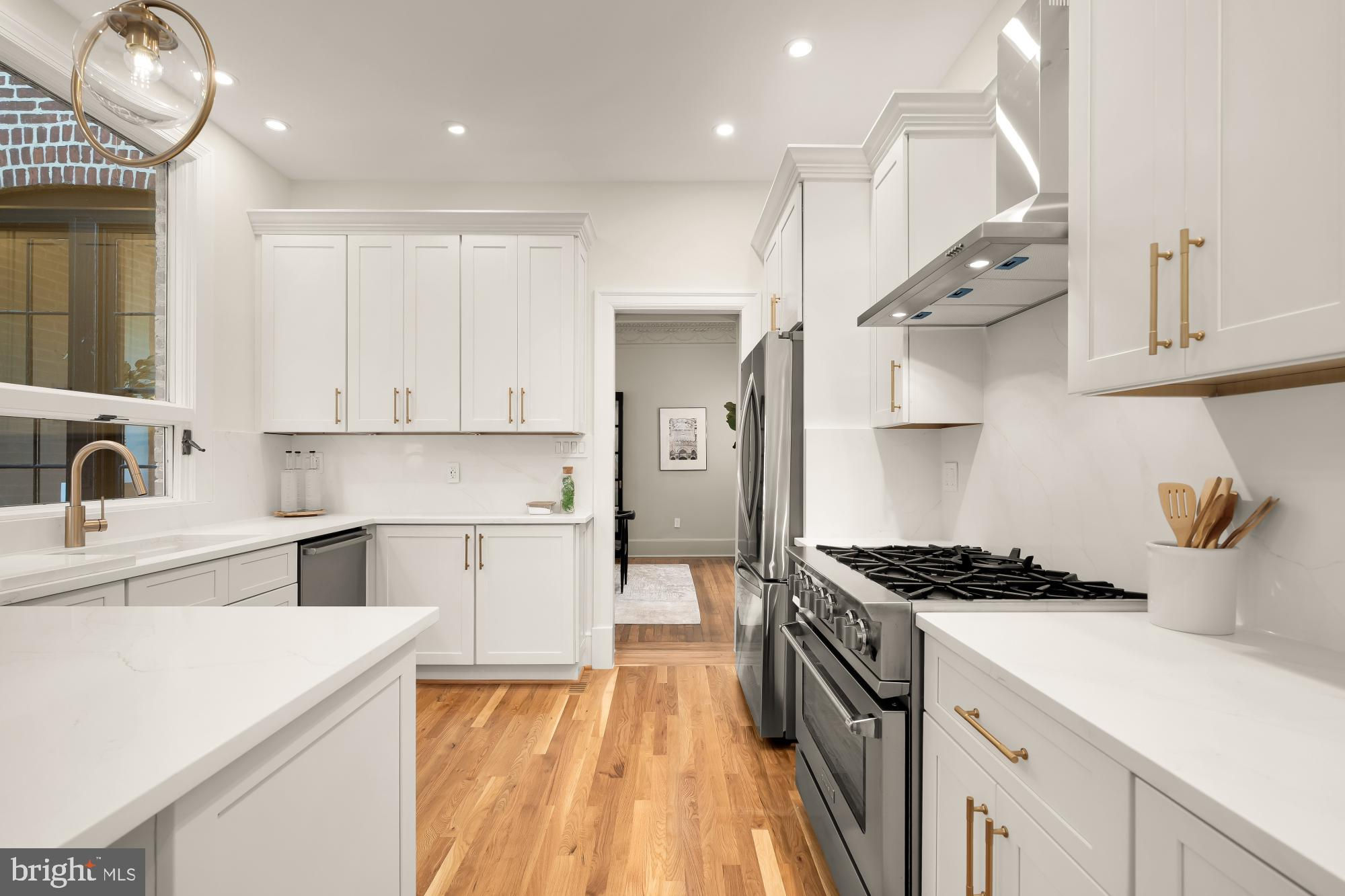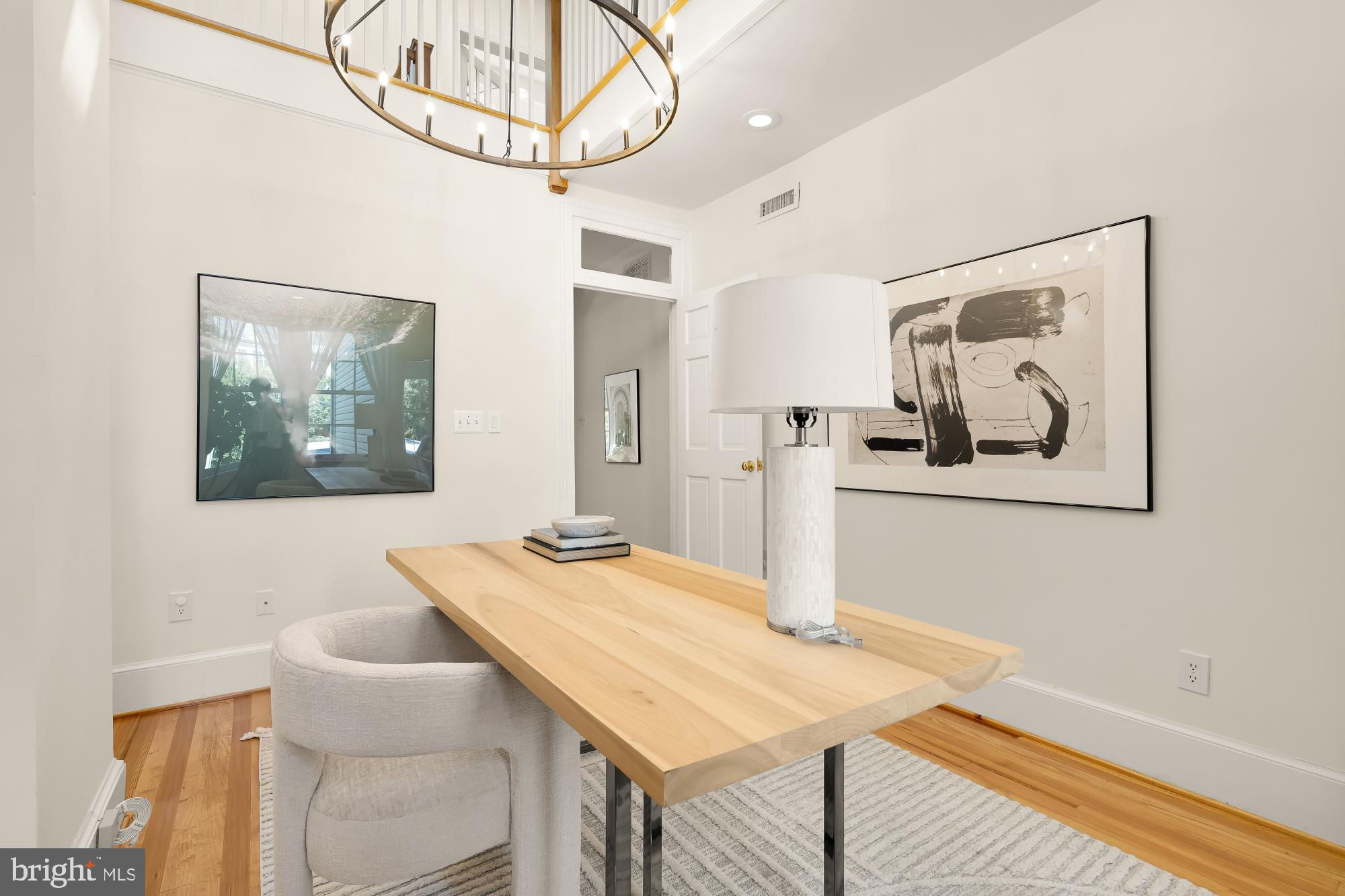 Tucked away in Historic Mount Pleasant, just one block from the National Zoo, 1819 Kenyon Street is an extraordinarily crafted Mediterranean-style rowhome boasting 5 bedrooms, 4 bathrooms, 3 half bathrooms, and a completely separate carriage house all spread over an expansive 4,400 est. sq. ft of living space. Stunning original details such as intricate moldings, large-scale rooms, and gleaming hardwood floors seamlessly combine with elegant updates for today’s homeowner. Multiple skylights, soaring ceiling heights, and oversized windows flood every space with light, adding to the airiness and grandeur of this magnificent home. Enter through the formal foyer to a sunlit seating area or ideal office, marked by stately columns, striking moldings, and a classic brick fireplace. Concealed doors open onto the home’s laundry room, mudroom area, pet wash station, and bonus storage room perfect for a wine cellar. Upstairs, the main level features a grand, light-filled living room with a fireplace and custom built-ins, a stylish dry bar for entertaining, and the formal dining room perfect for large gatherings. The rear of the home is anchored by a fully renovated kitchen boasting a BlueStar 6-burner range, LG French door refrigerator, eat-at peninsula, and a sunny breakfast room reminiscent of a Parisian café with exposed brick, painted wainscoting, and an oversized skylight. The butler’s pantry adds convenience with a second sink and beverage center, while a stunning powder room with stained glass windows completes this level. The upper levels offer a range of flexible spaces, all drenched in light from large windows and a huge over-stair skylight. On the third level, enjoy a generously sized bedroom with walk-in closet, en-suite bath, and cozy fireplace; a sun-filled second bedroom with a beautifully tiled en-suite bathroom and curbless shower; and a versatile office or playroom beneath an impressive two-story ceiling. The top floor showcases an airy primary suite with cathedral ceilings, glass-paneled French doors, and beautiful views of the surrounding greenery. Start and end your day in the luxurious primary bathroom featuring a clawfoot tub, floating double-vanity, and walk-in shower. Adjacent is a light-filled windowed closet or fourth bedroom, outfitted with custom storage. A rare highlight of this property is the fully detached carriage house—an impeccably renovated 1 bedroom, 1.5 bath residence. It offers a spacious living and dining area, a full kitchen, and stacked laundry, all drenched in sunlight from two skylights and a multitude of windows. This flexible space is perfect for long-term guests, multi-generational living, or as a premium rental opportunity. Outdoor living is effortless with a private rear patio connecting the main house and carriage house, providing an ideal setting for relaxation and al fresco dining. Stroll up to Mount Pleasant Street for coffee, yoga, shopping, dining, and more, or get outdoors on the trails of Rock Creek Park or at the National Zoo. Convene with neighbors at “Acorn Park” around the corner and hit up the Saturday Farmer’s Market on Mount Pleasant Street. In bounds for Bancroft Elementary, just a few blocks away, as well as Deal Middle School and Jackson-Reed High School. With its unique architecture, light-filled interiors, and flexible living options, 1819 Kenyon Street is an extraordinary offering in one of DC’s most cherished neighborhoods.