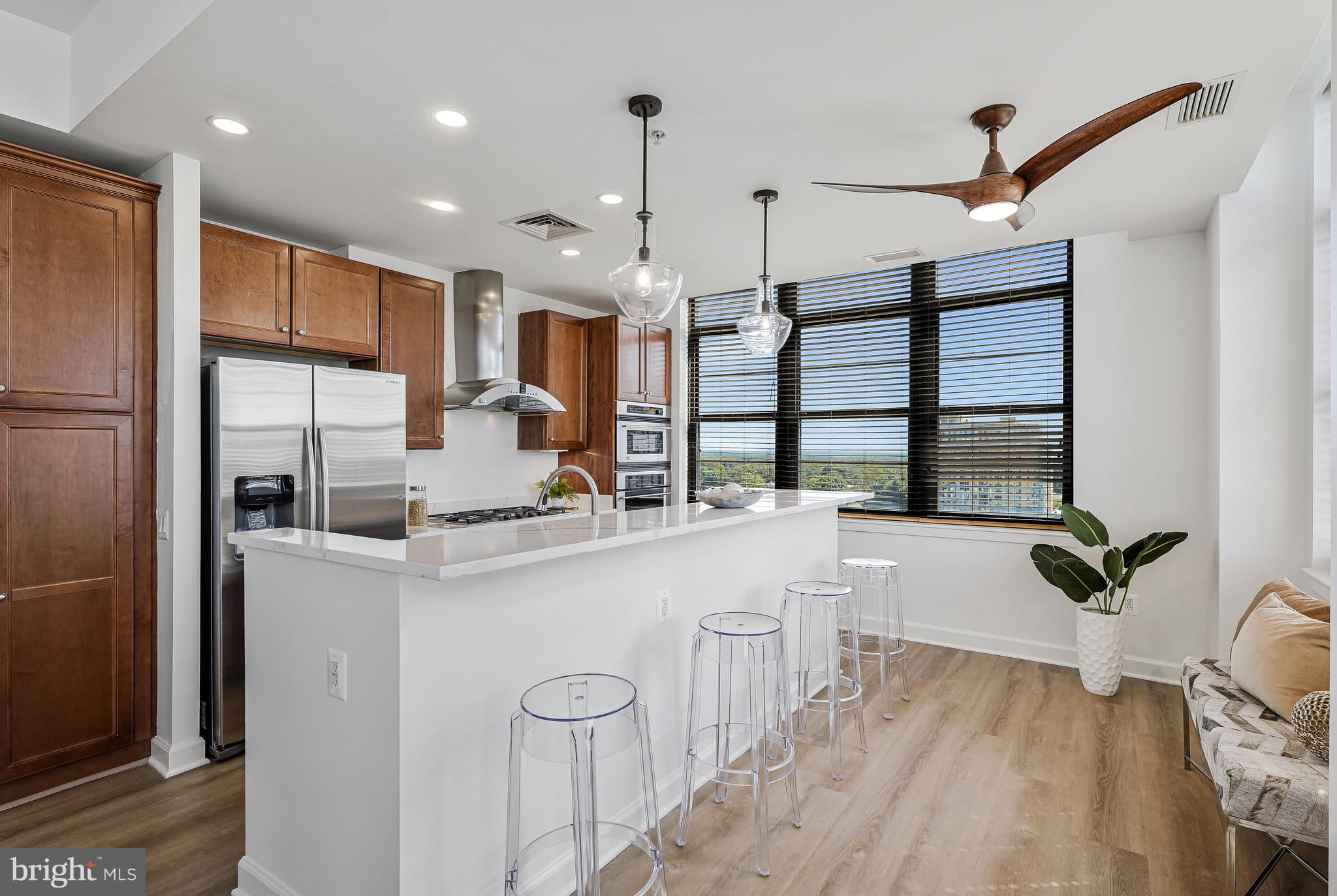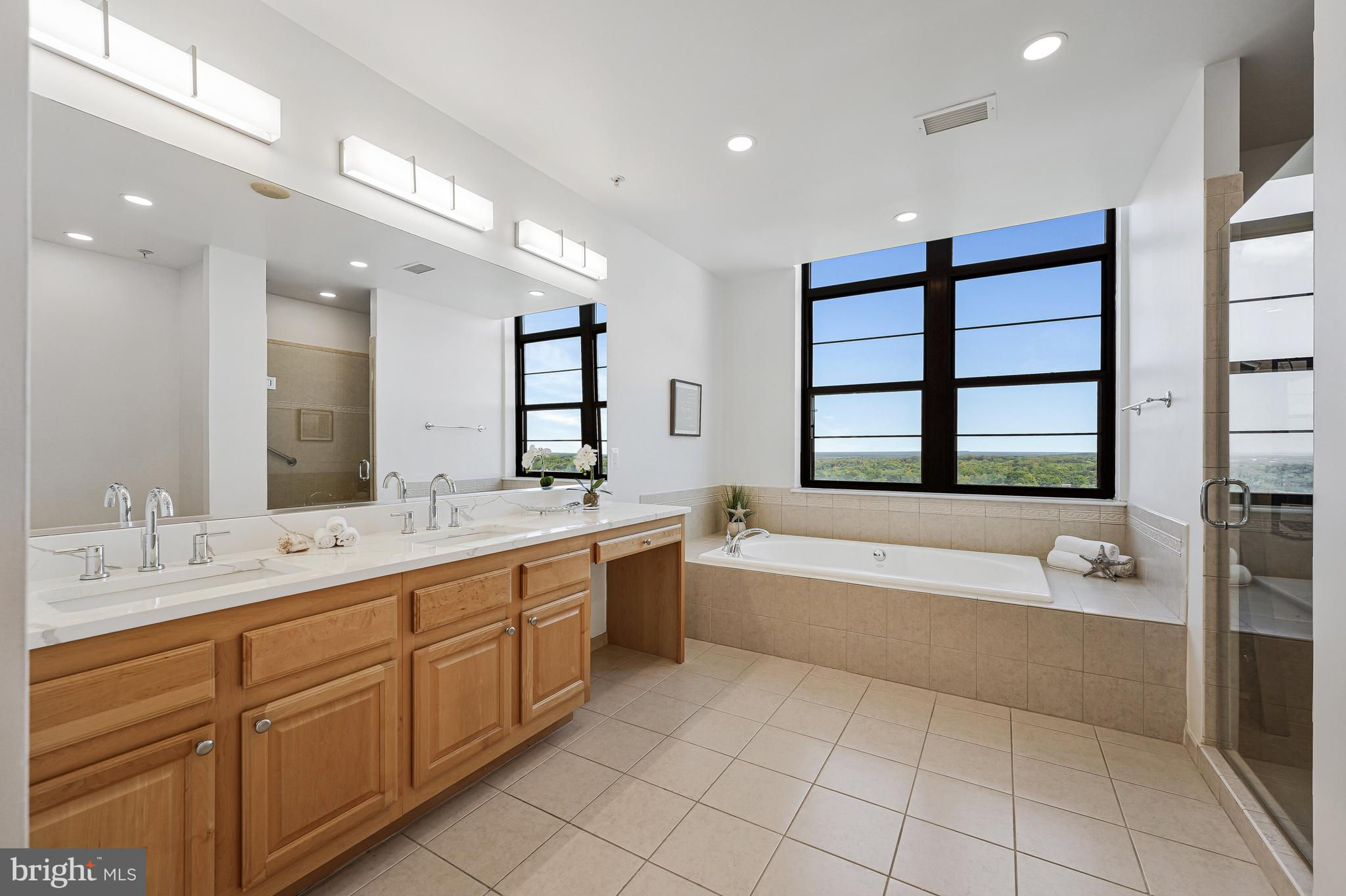 Stunning 3BD|3.5BA, 2,900 Sq Ft Penthouse in Reston Town Center. This corner unit, with an open floor plan, high ceilings, 9” plank flooring and floor to ceiling windows, has breathtaking and unobstructed 270° views. The Paramount is an amenity-rich, luxury high-rise condominium, right in the center of it all - with parks, trails, casual and chic restaurants, high-end and convenience shops, ice cream shops, a movie theater, an Apple store, as well as annual art shows and skating in the winter! The gourmet eat-in kitchen has plenty of cabinets and drawer storage, quartz countertops, and a center island with breakfast bar. The primary suite, with a stunning floor to ceiling wall of windows, offers two walk-in closets, and an ensuite bathroom with dual sink vanity, bidet, soaking tub and separate walk-in shower. Two additional bedrooms and two full baths, a home office/den, powder room and laundry complete the space. Three deeded garage parking spaces come with the unit. The luxury resort-style amenities include a beautiful pool with loungers, umbrellas and a lifeguard on duty, strength training and cardio fitness rooms, party/conference room with catering kitchen, a guest suite, and concierge. Reston Metro station and buses are just minutes away and Dulles Airport is just 4 miles away. Luxury and convenience - in a prime location! Just completed extensive upgrades to include new flooring, quartz countertops, faucets and primary bath shower fixtures, light fixtures and ceiling fans throughout.