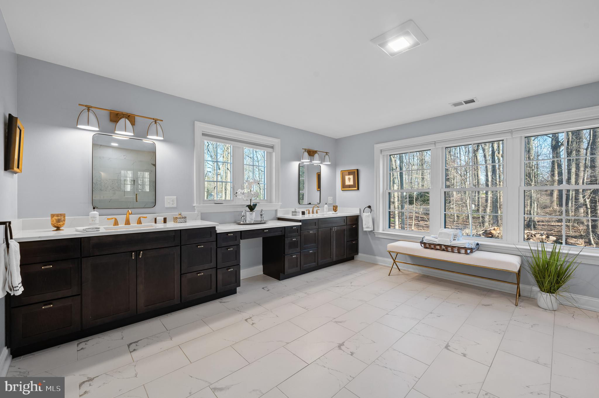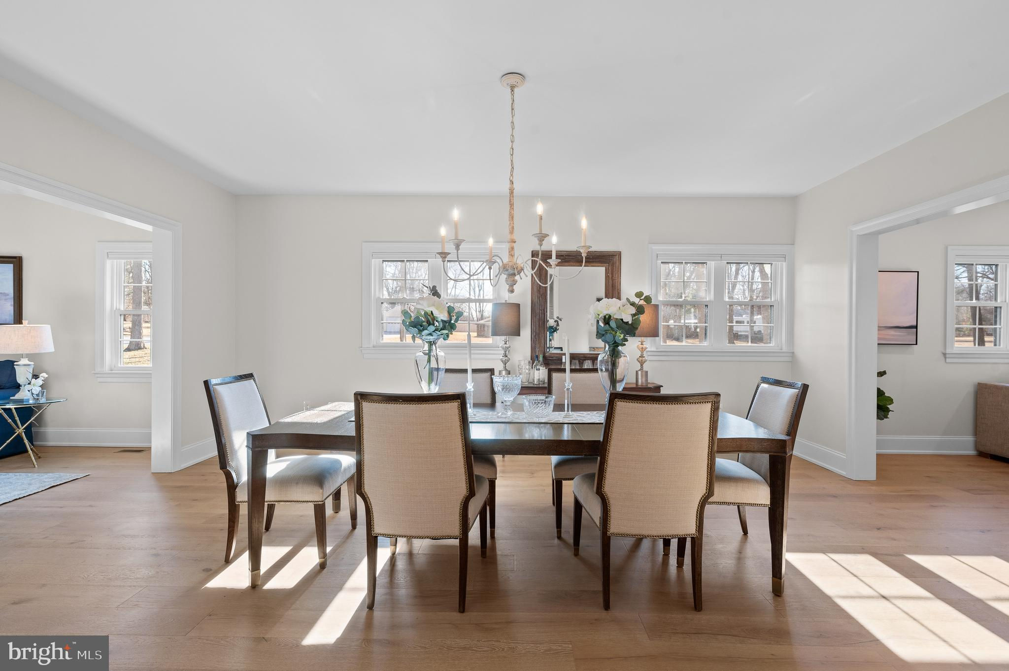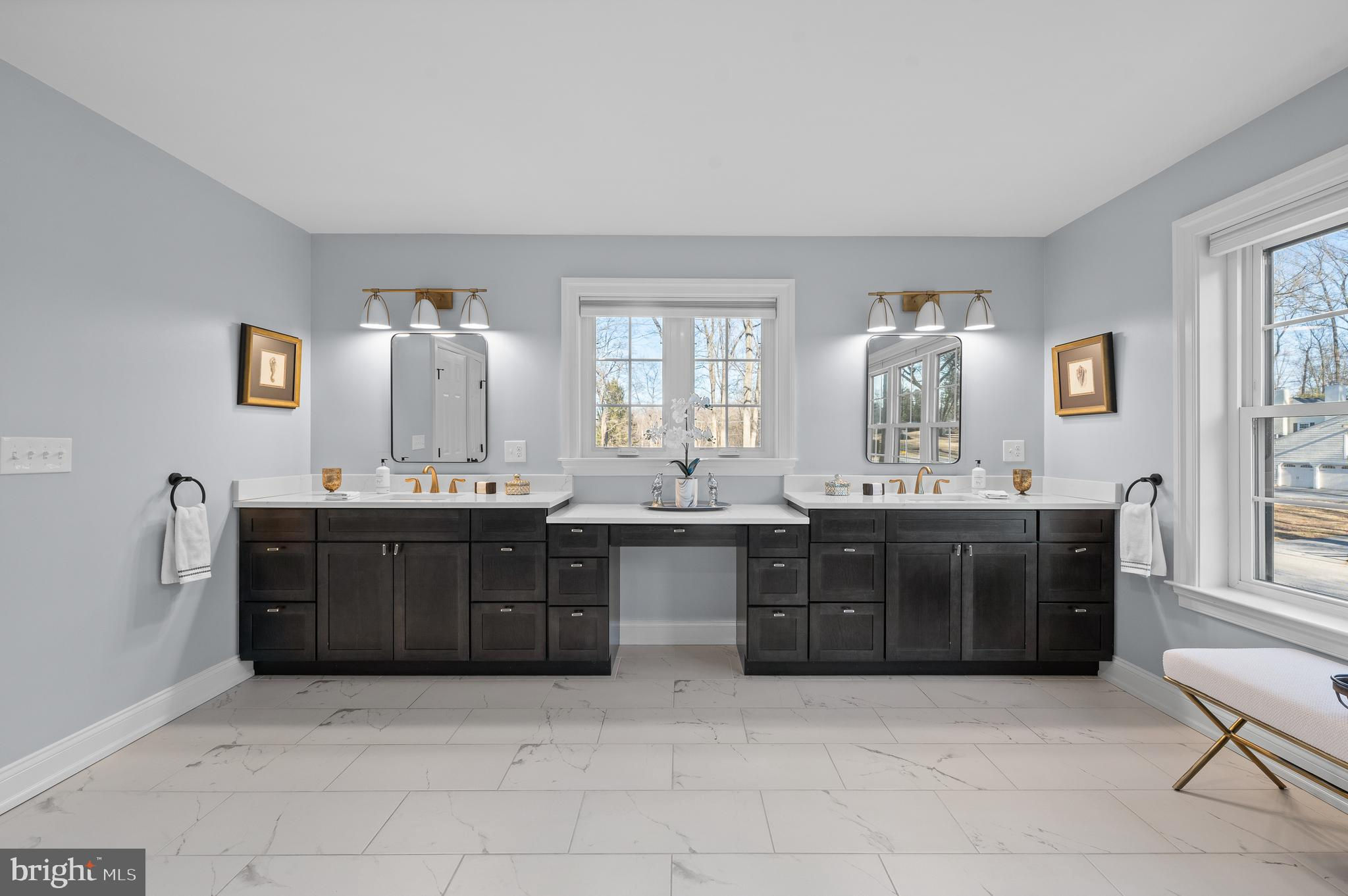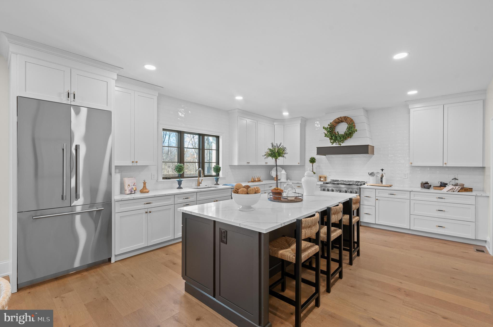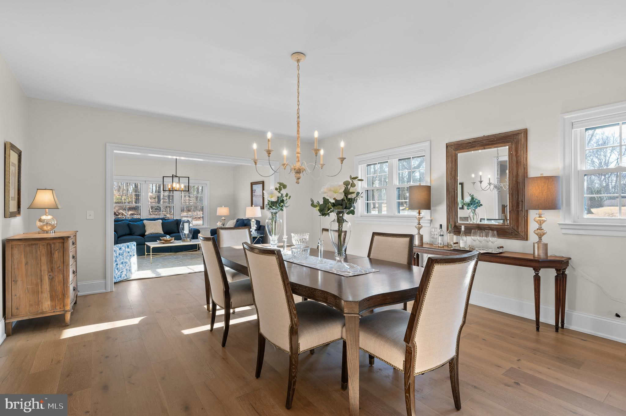 Situated on a sprawling corner lot in Malvern, this new construction, modern- farmhouse style home radiates luxury and craftmanship at every turn. From the side driveway, a stone walkway leads to the front porch with glass panel, architectural double doors. Inside, the glorious, two-story foyer highlights the home’s open, contemporary design and high-end finishes throughout, including white oak hardwood floors, nine-foot ceilings, a custom open staircase and upgraded woodwork. Just off the foyer sits a sun-drenched living room that’s ideal for cozy gatherings and chats. The dining room beyond offers the space and flexibility for any occasion, from large dinner parties to intimate family meals. Food prep and entertaining are a breeze thanks to the open-concept chef’s kitchen with commercial-grade appliances, nine-foot island, custom tile backsplash and ample cabinetry. An adjacent breakfast area offers a casual space to dine and gather with glass sliders that open to the rear patio and greenspace. The kitchen also connects to a smartly designed mudroom with plentiful storage, bench seating, a custom canine shower and direct access to the three-car garage. Additional main floor highlights include a luxurious open family room with beautiful custom millwork and marble fireplace, two powder rooms and a front office with shiplap accent wall and French doors for privacy. Take the distinctive open staircase to the second floor, where you’ll find a sumptuous primary suite featuring a walk-in closet with center island and ensuite bath with oversize vanity (over 20 feet long!) and extra-deep marble shower. This floor also houses three secondary bedrooms—one with an ensuite bath and two connected via jack-and-jill bath—plus a spacious laundry room. The finished basement provides even more space for relaxation and play, and plenty of storage. Outside, nearly three acres of flat, professionally landscaped greenspace and a rear slate patio offer a peaceful, relaxing respite in the heart of scenic Willistown Township. Located less than two miles from downtown Malvern and zoned for top-ranked Great Valley School District, this exceptional property is also close to Malvern Prep, two transit stations and Radnor Hunt Club. Current owner added many upgrades to the property including hardwood floors in on the second floor, expanded and upgraded the patio to stone, and much more!