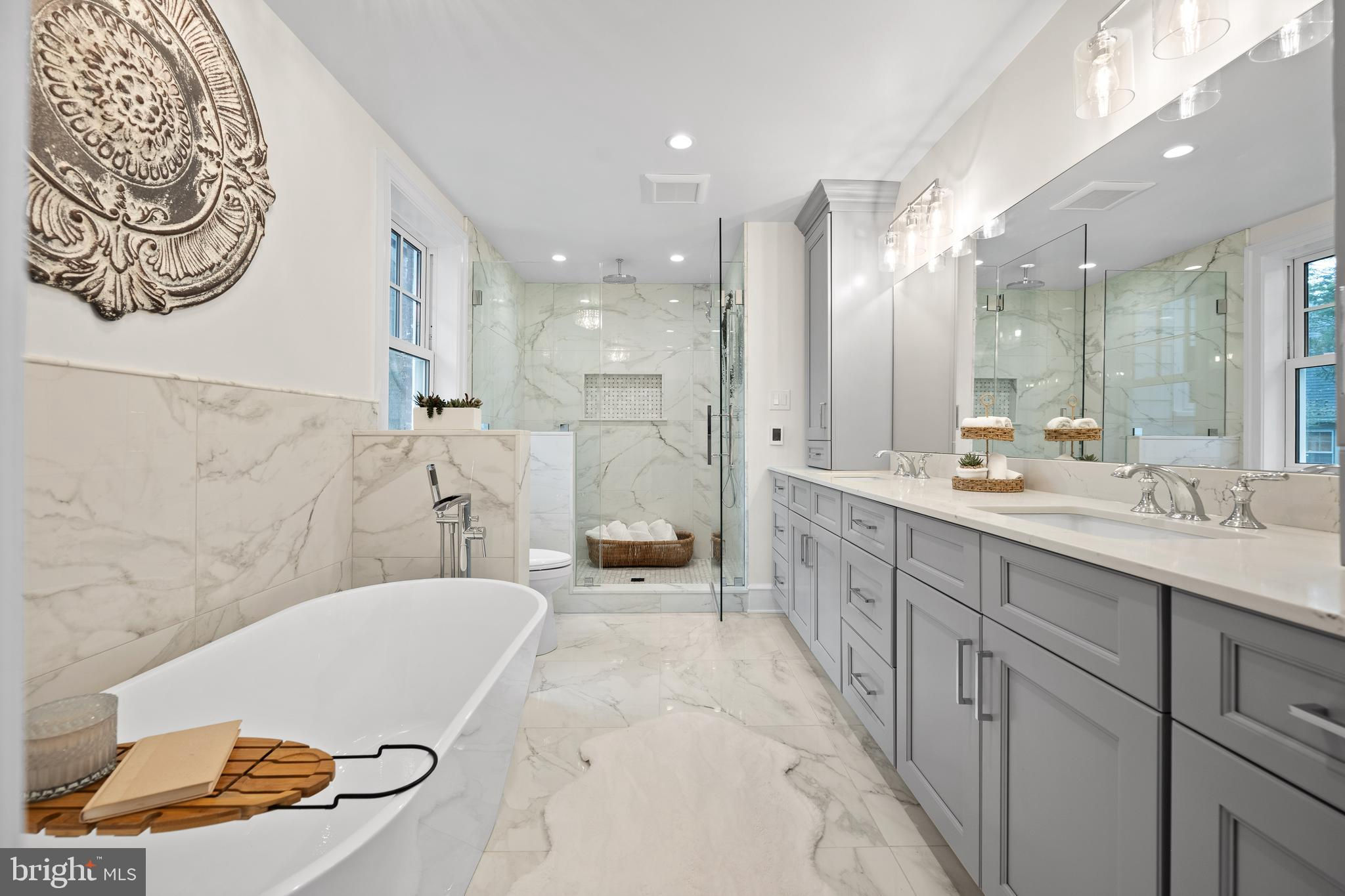 This fully renovated Villanova Colonial brings together the elegance of a classic Main Line estate with the comfort and efficiency of brand-new construction. The exterior makes an immediate impression with a stately brick façade, graceful columns, Hardie plank siding, a flagstone patio, and all-new hardscaping highlighted by a herringbone walkway. Inside, the home unfolds with a traditional yet open layout designed for today’s lifestyle. The welcoming foyer with a grand staircase is flanked by a formal living room with fireplace, custom built-ins, and French doors that open to a sun-filled bonus room ideal as an office, library, or play space. Opposite the foyer, the dining room offers an elegant setting for gatherings and flows seamlessly into the custom kitchen. The gourmet kitchen is the centerpiece of the home, featuring an oversized quartz island, custom cabinetry, a quartz backsplash, and high-end appliances including a six-burner stove. From here, the home opens into the expansive family room where oversized windows, a cozy window seat, and a gas fireplace create the perfect atmosphere. French doors lead directly outside to the flagstone terrace, offering effortless indoor-outdoor entertaining. The second floor boasts the primary suite, complete with vaulted ceilings, a custom walk-in closet, and a luxurious bathroom with dual vanities, soaking tub, glass-enclosed shower, and radiant heated floors. This level also includes two additional bedrooms, one with an ensuite bath, a marble-detailed hall bath, and a convenient laundry room. The third floor offers two more bedrooms and a full bath, perfect options for family or guests. Additional highlights include brand-new mechanicals, a four-zone heating system, an 80-gallon hot water heater, and a new roof. Thoughtful details such as recessed lighting, extensive millwork, solid red oak floors, and a mudroom entrance enhance the home even more. Situated in the heart of Villanova, this property offers proximity to the area’s finest dining and shopping, quick access to major roadways for an easy commute to Center City and New York, and located in the highly ranked Radnor School District with nearby access to some of the nation’s top private schools. Blending modern convenience with timeless character, don't miss out on this one-of-a-kind estate. Schedule your private showing today!