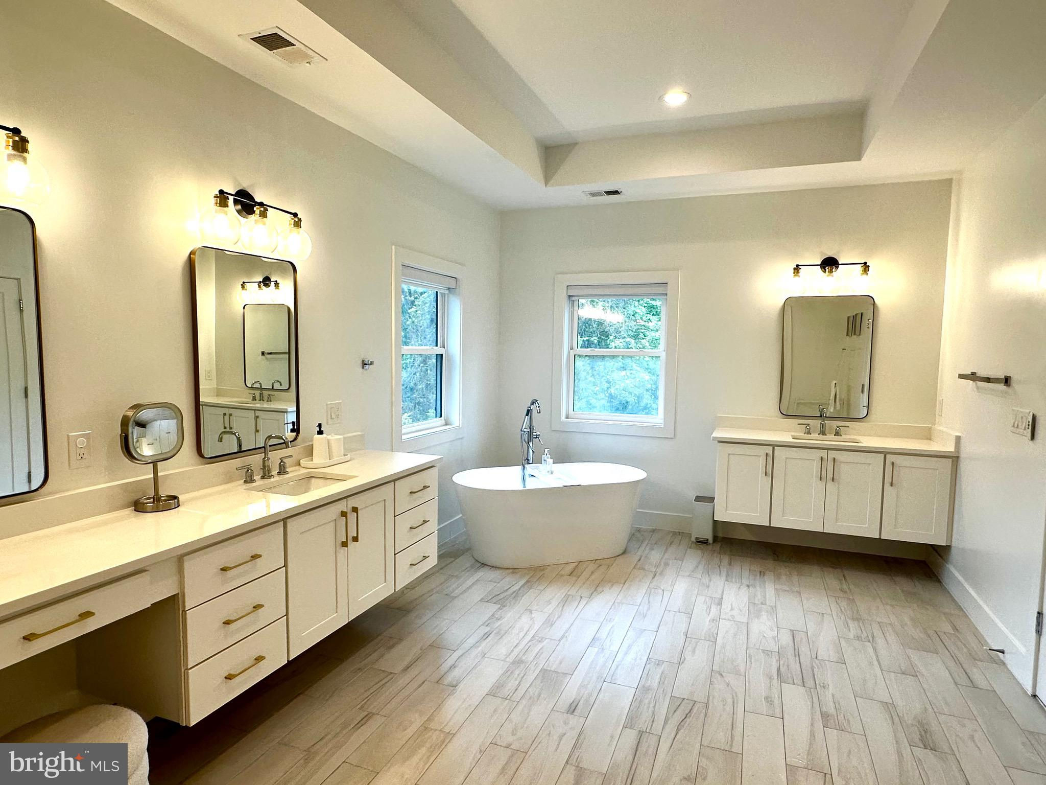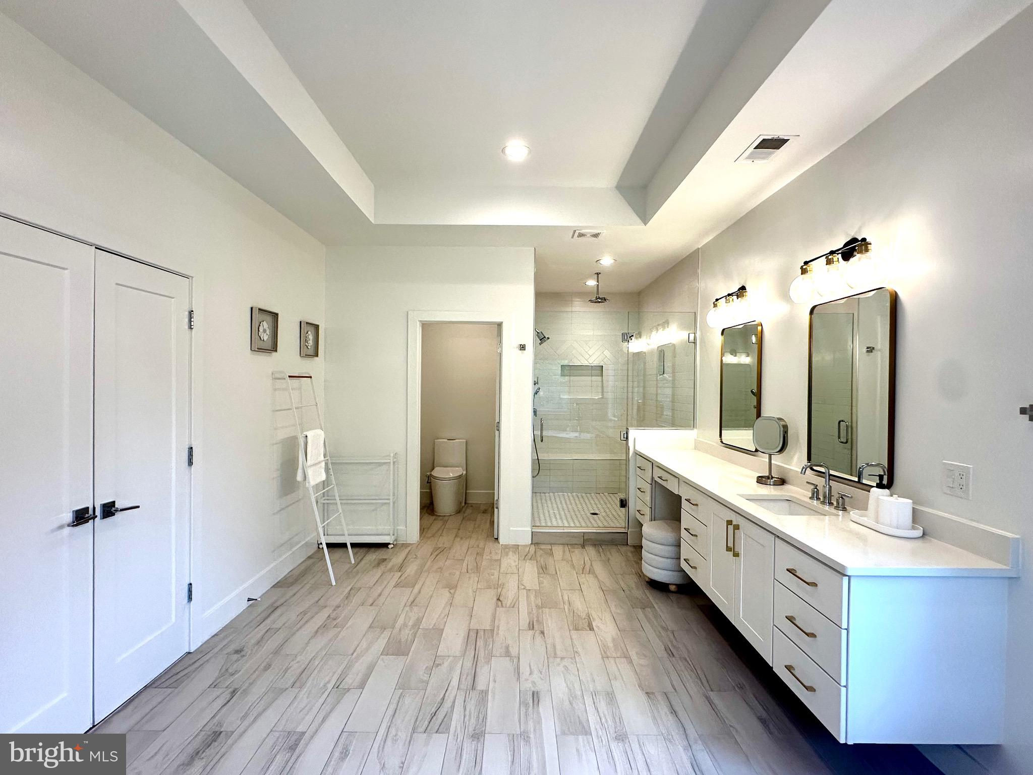 One-of-a-kind this unique stucco modern farmhouse with 2 car attached garage located in charming, highly sought-after Pimmit Hills. Meticulously maintained this stunning home features mature landscaping, seclusion fencing, built-in closets, automatic blinds, and more! With a size over 6200+ square feet of thoughtfully designed living space, this home has 6 bedrooms and 5 baths for comfortable living and entertaining. Enter from a covered front porch to a welcoming open foyer followed by the connected living and dining room. proceed into beautiful large, open chef’s kitchen featuring Fulgor Milano appliances and a butler’s pantry with large walk-in pantry which will lead you to a large family room followed by a large bedroom/playroom/study room/library with modern barn door. Upstairs, a spacious primary suite with a custom walk-in closet and 3 more bedrooms with attached baths, home office through a sophisticated glass doors and more than spacious laundry room. The lower level has independent entrance from inside and provides a complete second kitchen, 5th bedroom, full bathroom, additional prefect room for in-home exercise room or secondary office and large rec room with rear walk-up. Retreat to a fully fenced, one of the kind private backyard with and patio. Across the street from Griffith Park and steps to Pimmit Park and minutes' walk through nature into Lemon Road Elementary! Moments from West Falls Church Metro, I-66 and I-495 Tyson’s, dining and entertainment!