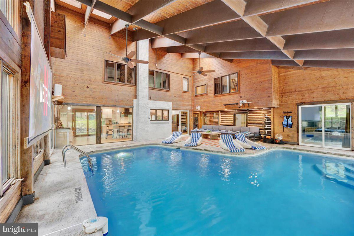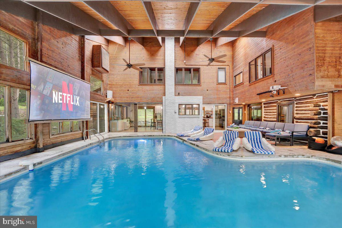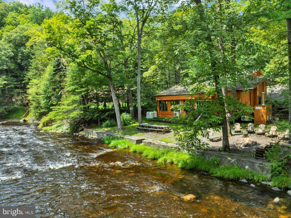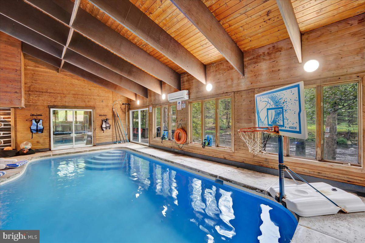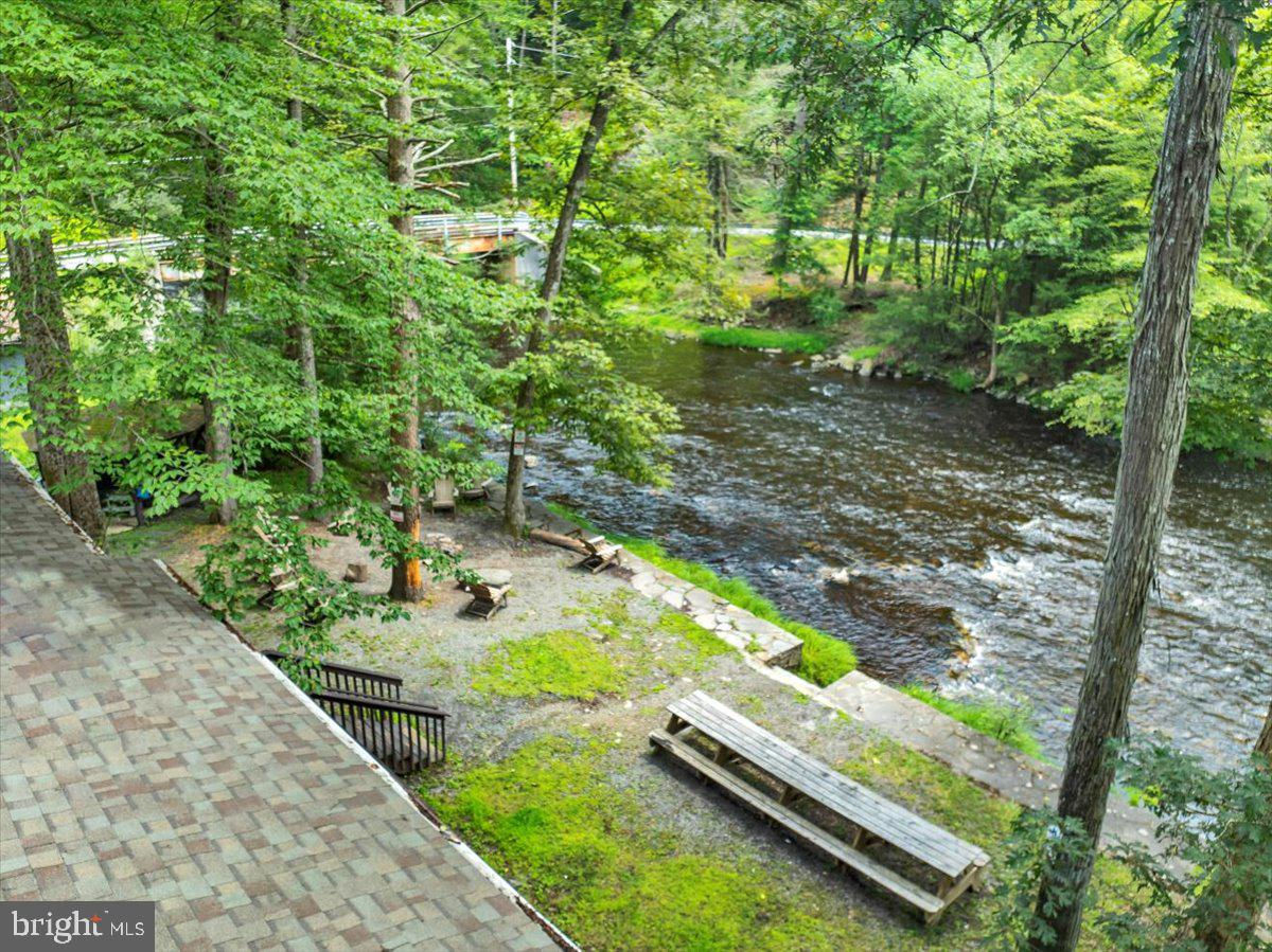 Falling View is a one-of-a-kind property in the Poconos. A historical cabin that predates the surrounding HOA, Falling View has 150+ feet of water frontage on the Bushkill Creek where the mountains fall into waters with breathtaking views in every direction. Originally built in 1930, and a painstaking renovation was completed combining luxury finishes and amenities with character and charm. Upon entering you'll be transported in time allowing your mind to wonder what it would have been like to visit here nearly 100 years ago. The living room has a striking cathedral ceiling of warm wood, skylights, a chandelier and a stone fireplace. The large updated kitchen overlooks the indoor pool with enough seating for everyone. The kitchen features stone counter tops, wall to wall subway tile backsplash, chef's stove, new appliances and white wood ceilings. The indoor pool room spans 1,200 sqft and is the heart of the home with every room having a view of it. The L shaped heated saltwater pool provides endless fun playing games or watching your favorite movie. The pool room is surrounded by windows that provide natural light and a view of the creek that will captivate all your senses. Sliding doors lead to the backyard where you'll find a scenic backdrop for your vacation with the sounds of water and mountain views that rival any in the Poconos. The backyard offers room for more amenities that come with a view and is currently outfitted with a covered hot tub gazebo, picnic table and firepit. It is one of the top 10 highest grossing STRs in the Poconos with $320,000 in revenue and a 4.96 review score across The living room cuts an opposing figure with a cathedral ceiling of warm wood logs, skylights, a chandelier and a stone fireplace. Further in you’re greeted by a large, updated kitchen that overlooks the indoor pool and provides more than enough seating for everyone. The kitchen features everything you would want including stone counter tops, wall to wall subway tile backsplash, chef’s stove, all new appliances and white wood ceilings. This is where you’ll gather with friends and family after a day of hiking and fun or in between swimming in your private natatorium. The indoor pool room spans 1,500+ square feet and is the heart of the home with virtually every room in the house having a view of it. The L shaped heated saltwater pool is big enough for everyone. Kids and adults alike will have endless fun playing games or watching your favorite movie from the pool. The pool room is surrounded by windows that provide lots of natural light and offers a view of the creek that will captivate all your senses. There are sliding doors leading directly to the backyard deck. Out back you’ll find another treasure that this waterfront property provides: A scenic backdrop for your vacation with the sounds of water and mountain views that rival any in the Poconos. The backyard has lots of space for exploring and games and features a firepit, a covered hot tub gazebo and a large picnic table, which are all perfectly placed so you can enjoy the sights and sounds of nature. The home is fully permitted with 6 bedrooms and 3 full bathrooms that have all been updated and equipped to provide a comfortable and cozy stay for guests. This magical property has provided unforgettable experiences for all who have stayed here for many years. Currently it is one of the top 10 highest grossing short term rentals in the Poconos with approximately $320,000 in revenue over the past twelve months. It has a nearly perfect 4.96 review score across 120+ reviews on Airbnb. Between the convenient location, size and bedroom count, water frontage, mountain views, irreplaceable character and indoor pool (1 of less than 20 in the Poconos) this home will provide an unmatched experience for guests and stay booked 365 days a year. This is a turnkey opportunity to own one of the most lucrative properties in the Poconos steeped in history, character and natural
