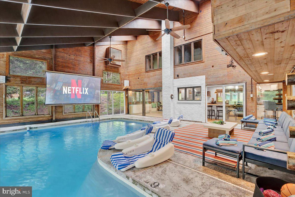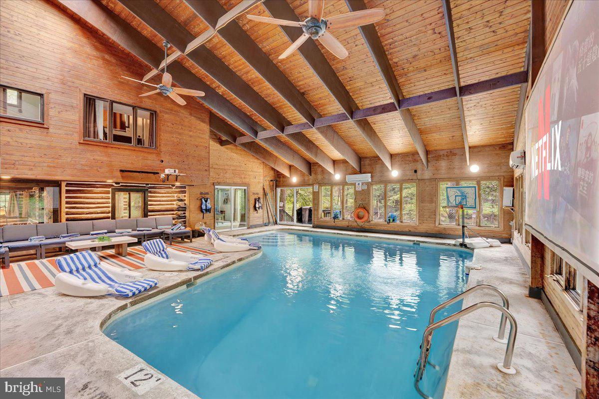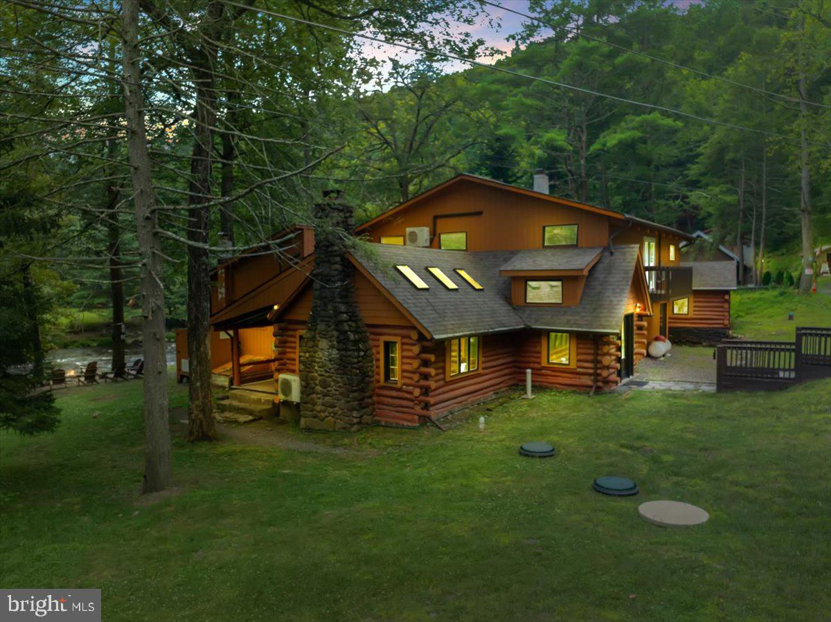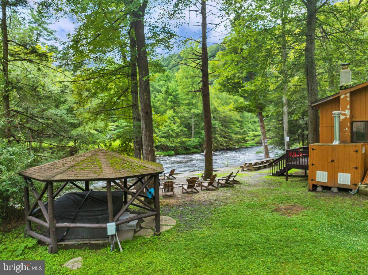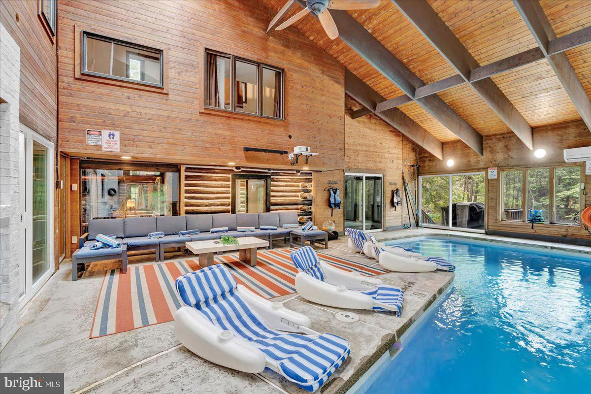 Falling View is a one-of-a-kind property in the Poconos. A historical cabin that predates the surrounding HOA, Falling View has 150+ feet of water frontage on the Bushkill Creek where the mountains fall into waters with breathtaking views in every direction. Originally built in 1930, and a painstaking renovation was completed combining luxury finishes and amenities with character and charm. Upon entering you'll be transported in time allowing your mind to wonder what it would have been like to visit here nearly 100 years ago. The living room has a striking cathedral ceiling of warm wood, skylights, a chandelier and a stone fireplace. The large updated kitchen overlooks the indoor pool with enough seating for everyone. The kitchen features stone counter tops, wall to wall subway tile backsplash, chef's stove, new appliances and white wood ceilings. The indoor pool room spans 1,200 sqft and is the heart of the home with every room having a view of it. The L shaped heated saltwater pool provides endless fun playing games or watching your favorite movie. The pool room is surrounded by windows that provide natural light and a view of the creek that will captivate all your senses. Sliding doors lead to the backyard where you'll find a scenic backdrop for your vacation with the sounds of water and mountain views that rival any in the Poconos. The backyard offers room for more amenities that come with a view and is currently outfitted with a covered hot tub gazebo, picnic table and firepit. It is one of the top 10 highest grossing STRs in the Poconos with $320,000 in revenue and a 4.96 review score across The living room cuts an opposing figure with a cathedral ceiling of warm wood logs, skylights, a chandelier and a stone fireplace. Further in you’re greeted by a large, updated kitchen that overlooks the indoor pool and provides more than enough seating for everyone. The kitchen features everything you would want including stone counter tops, wall to wall subway tile backsplash, chef’s stove, all new appliances and white wood ceilings. This is where you’ll gather with friends and family after a day of hiking and fun or in between swimming in your private natatorium. The indoor pool room spans 1,500+ square feet and is the heart of the home with virtually every room in the house having a view of it. The L shaped heated saltwater pool is big enough for everyone. Kids and adults alike will have endless fun playing games or watching your favorite movie from the pool. The pool room is surrounded by windows that provide lots of natural light and offers a view of the creek that will captivate all your senses. There are sliding doors leading directly to the backyard deck. Out back you’ll find another treasure that this waterfront property provides: A scenic backdrop for your vacation with the sounds of water and mountain views that rival any in the Poconos. The backyard has lots of space for exploring and games and features a firepit, a covered hot tub gazebo and a large picnic table, which are all perfectly placed so you can enjoy the sights and sounds of nature. The home is fully permitted with 6 bedrooms and 3 full bathrooms that have all been updated and equipped to provide a comfortable and cozy stay for guests. This magical property has provided unforgettable experiences for all who have stayed here for many years. Currently it is one of the top 10 highest grossing short term rentals in the Poconos with approximately $320,000 in revenue over the past twelve months. It has a nearly perfect 4.96 review score across 120+ reviews on Airbnb. Between the convenient location, size and bedroom count, water frontage, mountain views, irreplaceable character and indoor pool (1 of less than 20 in the Poconos) this home will provide an unmatched experience for guests and stay booked 365 days a year. This is a turnkey opportunity to own one of the most lucrative properties in the Poconos steeped in history, character and natural