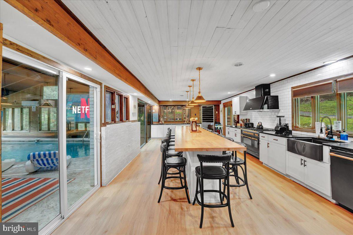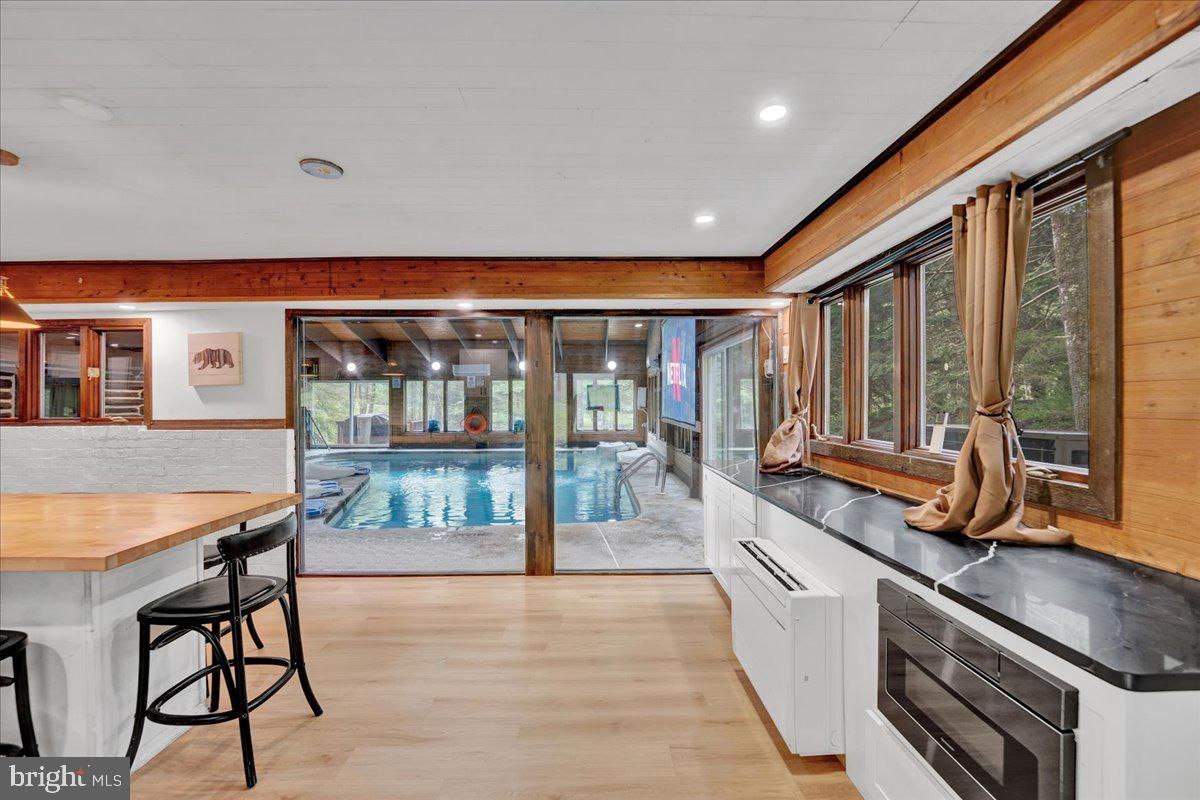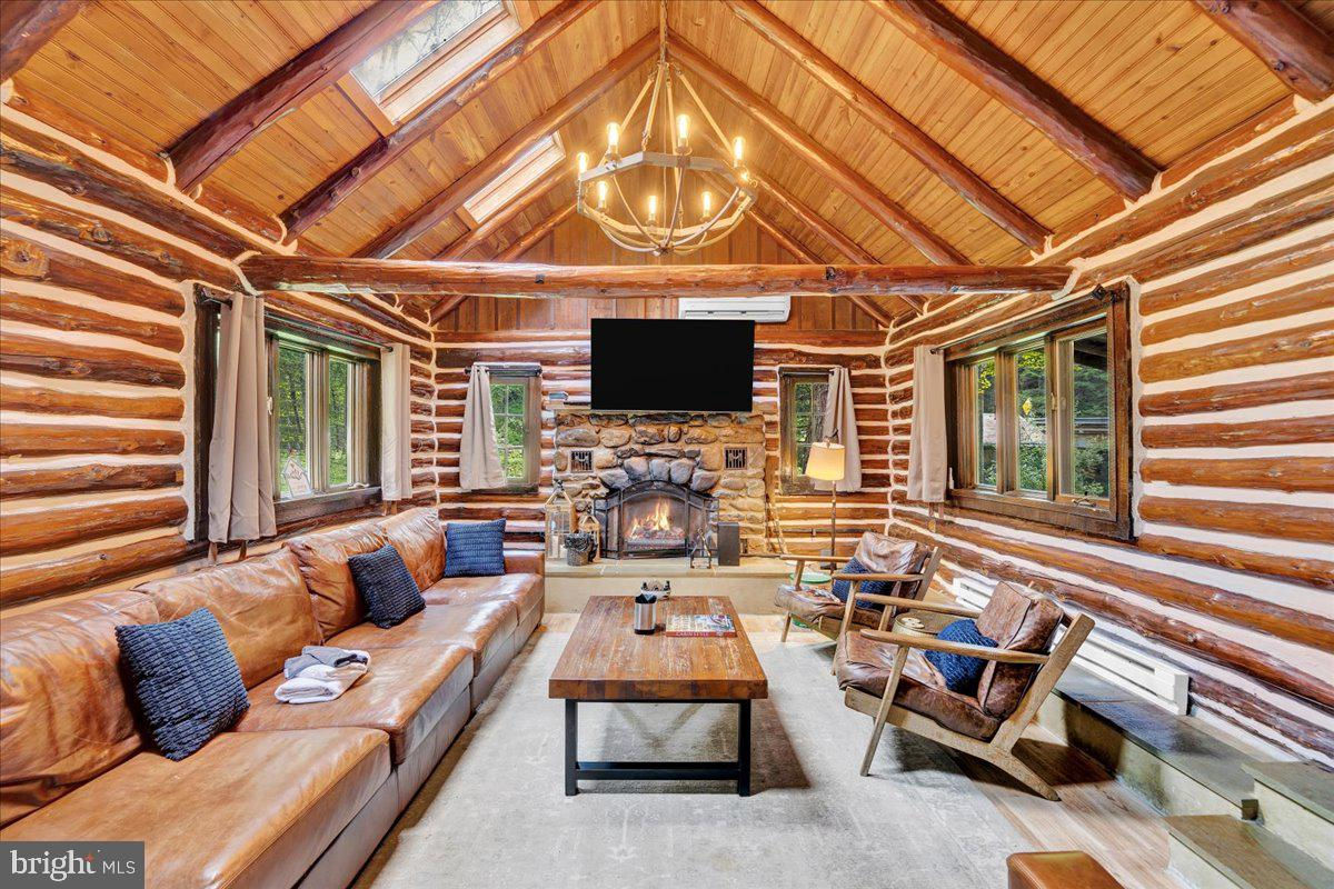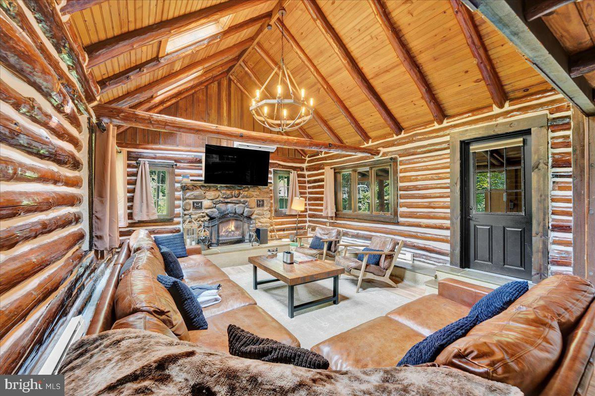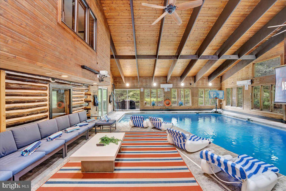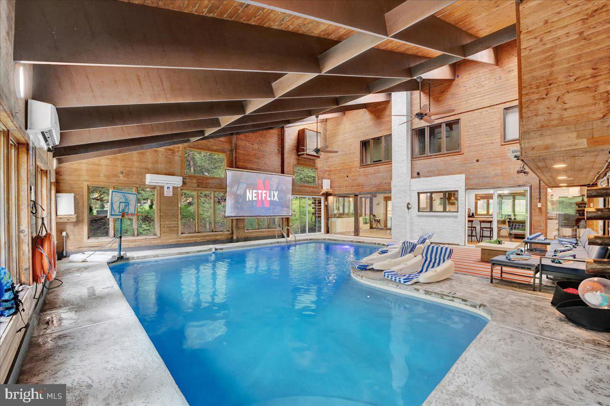 Falling View is a one-of-a-kind property in the Poconos. A historical cabin that predates the surrounding HOA, Falling View has 150+ feet of water frontage on the Bushkill Creek where the mountains fall into waters with breathtaking views in every direction. Originally built in 1930, and a painstaking renovation was completed combining luxury finishes and amenities with character and charm. Upon entering you'll be transported in time allowing your mind to wonder what it would have been like to visit here nearly 100 years ago. The living room has a striking cathedral ceiling of warm wood, skylights, a chandelier and a stone fireplace. The large updated kitchen overlooks the indoor pool with enough seating for everyone. The kitchen features stone counter tops, wall to wall subway tile backsplash, chef's stove, new appliances and white wood ceilings. The indoor pool room spans 1,200 sqft and is the heart of the home with every room having a view of it. The L shaped heated saltwater pool provides endless fun playing games or watching your favorite movie. The pool room is surrounded by windows that provide natural light and a view of the creek that will captivate all your senses. Sliding doors lead to the backyard where you'll find a scenic backdrop for your vacation with the sounds of water and mountain views that rival any in the Poconos. The backyard offers room for more amenities that come with a view and is currently outfitted with a covered hot tub gazebo, picnic table and firepit. It is one of the top 10 highest grossing STRs in the Poconos with $320,000 in revenue and a 4.96 review score across The living room cuts an opposing figure with a cathedral ceiling of warm wood logs, skylights, a chandelier and a stone fireplace. Further in you’re greeted by a large, updated kitchen that overlooks the indoor pool and provides more than enough seating for everyone. The kitchen features everything you would want including stone counter tops, wall to wall subway tile backsplash, chef’s stove, all new appliances and white wood ceilings. This is where you’ll gather with friends and family after a day of hiking and fun or in between swimming in your private natatorium. The indoor pool room spans 1,500+ square feet and is the heart of the home with virtually every room in the house having a view of it. The L shaped heated saltwater pool is big enough for everyone. Kids and adults alike will have endless fun playing games or watching your favorite movie from the pool. The pool room is surrounded by windows that provide lots of natural light and offers a view of the creek that will captivate all your senses. There are sliding doors leading directly to the backyard deck. Out back you’ll find another treasure that this waterfront property provides: A scenic backdrop for your vacation with the sounds of water and mountain views that rival any in the Poconos. The backyard has lots of space for exploring and games and features a firepit, a covered hot tub gazebo and a large picnic table, which are all perfectly placed so you can enjoy the sights and sounds of nature. The home is fully permitted with 6 bedrooms and 3 full bathrooms that have all been updated and equipped to provide a comfortable and cozy stay for guests. This magical property has provided unforgettable experiences for all who have stayed here for many years. Currently it is one of the top 10 highest grossing short term rentals in the Poconos with approximately $320,000 in revenue over the past twelve months. It has a nearly perfect 4.96 review score across 120+ reviews on Airbnb. Between the convenient location, size and bedroom count, water frontage, mountain views, irreplaceable character and indoor pool (1 of less than 20 in the Poconos) this home will provide an unmatched experience for guests and stay booked 365 days a year. This is a turnkey opportunity to own one of the most lucrative properties in the Poconos steeped in history, character and natural