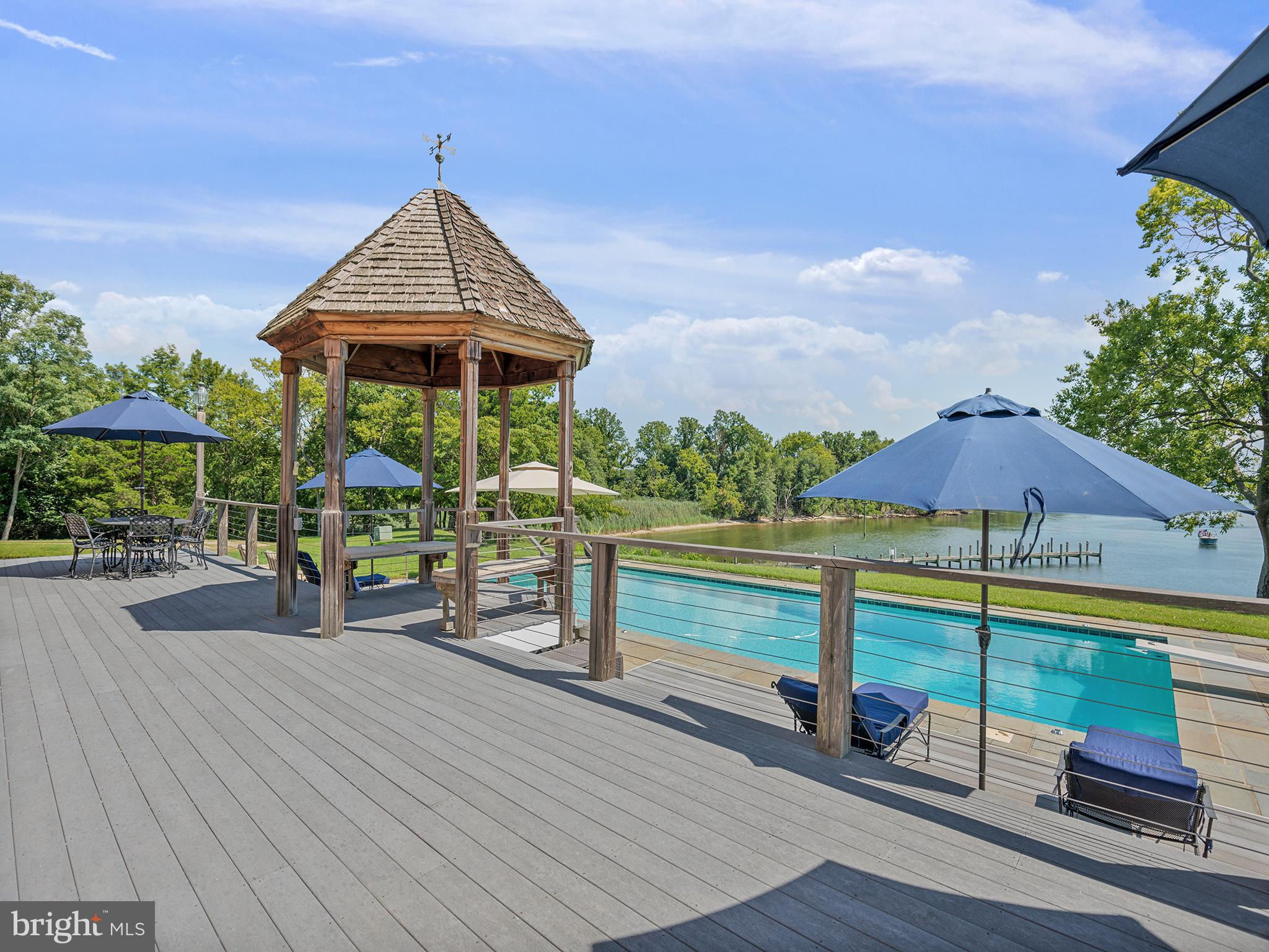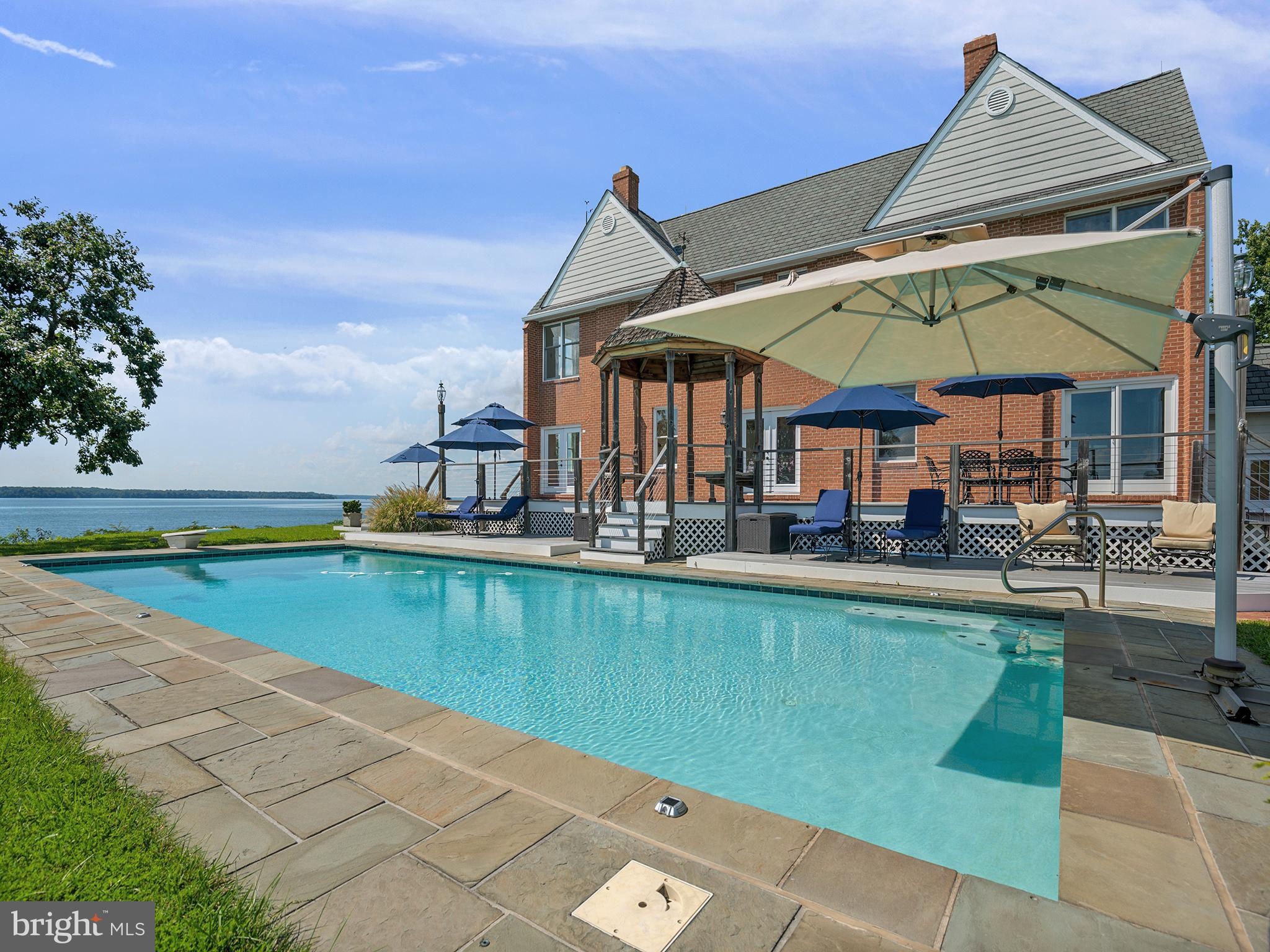 ONCE IN A LIFETIME setting on the Patuxent River at Preston on the Patuxent. This home was designed by Don Hawkins, an award-winning Georgetown Wash DC architect. It was built in 1984 to comply with and complement the National Register's 'Preston on the Patuxent' historic residence and shares the historic site. Perched on an elevated point of land with incredible southerly vistas of the Patuxent River, this site delivers. Natural light pours into the heart of the home. The kitchen is beautifully arranged, and you can cook to your heart's content while watching wildlife, boats, tending a fire. You'll love the extensive Trex decking with ipe and wire railings, extensive hardscape surrounding the inground pool. There is a separate entrance to the 1BR/1BA guest apartment above the garage, also a mostly finished basement with dual office spaces or hobby spaces, and a great home gym space as well.