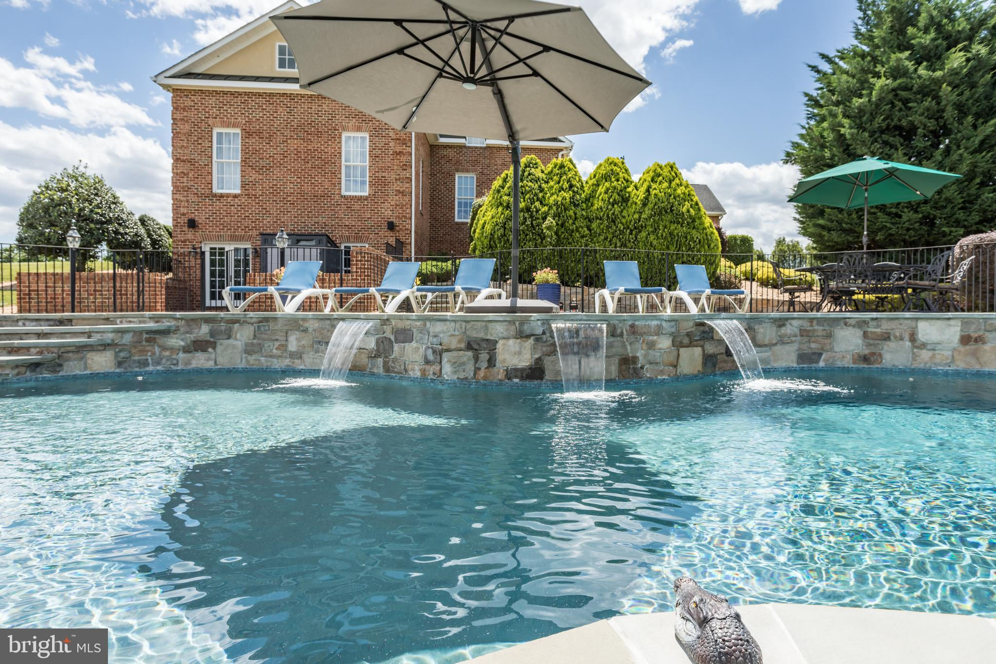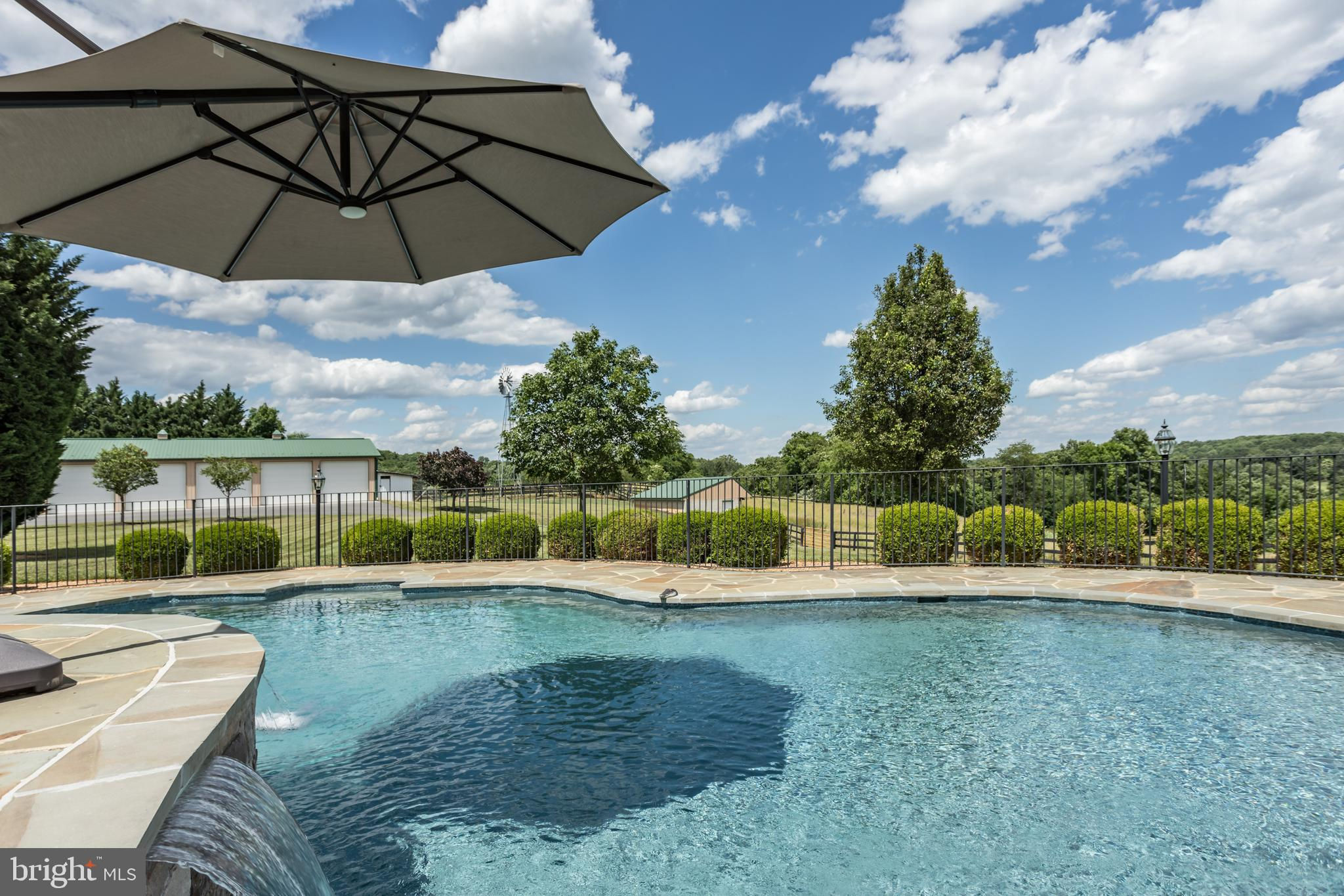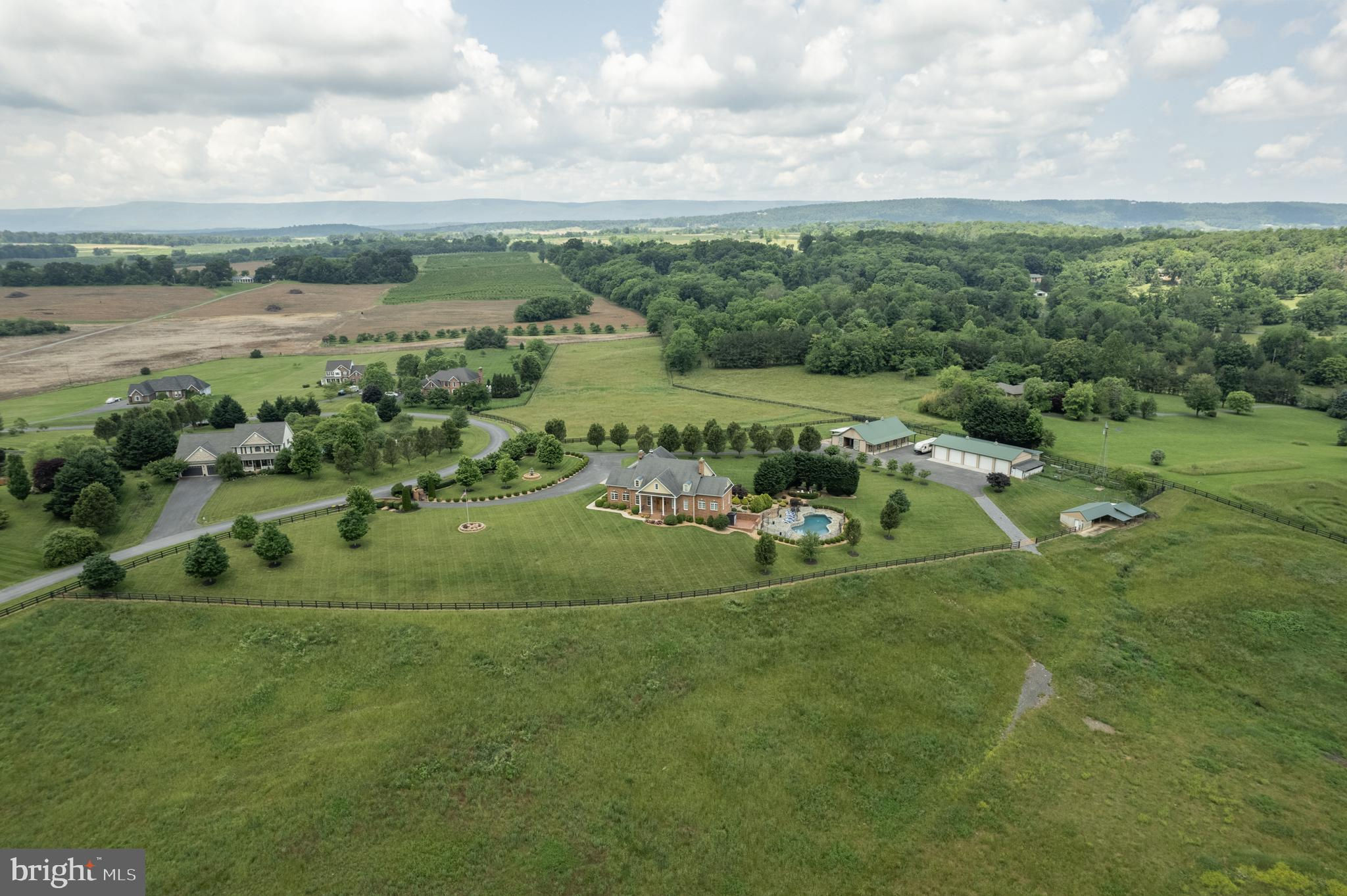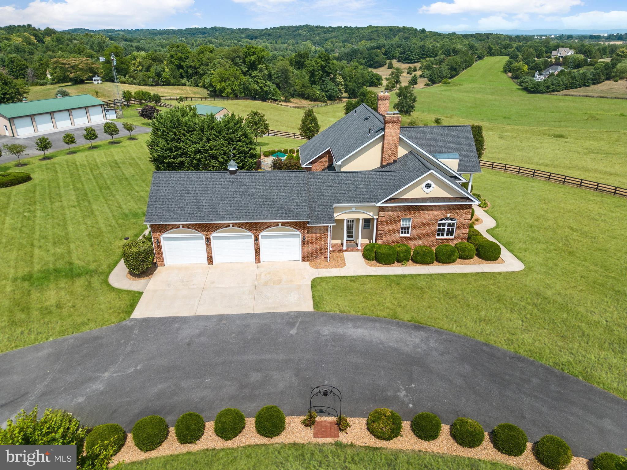 BEAUTIFUL BRICK ESTATE ON 42+ ACRES IN WINCHESTER!! This luxurious brick colonial is located just minutes outside of Winchester City. Boasting 4 bed rooms 4.5 bathrooms across three finished levels, totaling just over 7,700+ square feet. The heart of the home is the chef's kitchen. Which conveys top of the line appliances, granite countertops, and plenty of custom cherry cabinets. The main floor supplies one level living with an over sized primary suite and primary bathroom with his and her closets! The living room has ample natural lighting with scenic views of the county, which leads into the custom theatre room!! Home Theater Room conveys Klipsch surround sound system including Dolby Atmos in-ceiling speakers, a Denon 4k capable A/V receiver, plus a 4K UHD Sony Projector displaying on a 120" screen. The Upstairs you'll find 2 bedrooms connected with a Jack and Jill bath, another bedroom with an attached bath, an office (equipped with high speed Xfinity internet wired throughout the home), 2 spacious storage rooms, and bonus play. Going down to the basement you'll find a granite wet bar, additional full bath and Rec Room/Family Room/Work Out Room, the options are endless! Walking out from the basement is a heated salt water swimming pool, featuring 3 water falls and full color LED lighting while provided with panoramic views and outdoor speakers! ( Whole home is equipped with a blue tooth speaker system). For your security needs, the home has a monitored alarm system with interior motion and door sensors and is surrounded with an exterior 4k camera system. Also, protecting the driveway is 2 power entrance gates. All three levels of the home are climate controlled as well as the three car garage by 4 zone HVAC. New roof in 2024!! All of the luxurious amenities this home has to offer is also supplied with 42.42 acres and three additional buildings!! Electric underground dog fence to help contain your pets! There are several paddocks throughout the land all separated and surrounded with three board fence. The 5 car detached garage is (72X32), Horse barn is (60X38) has a full bath and is equipped with a wash stall and automatic water in every stall. There's an automatic water feature in the pasture as well. House, Barn and Horse Stables, all on dedicated electric service.