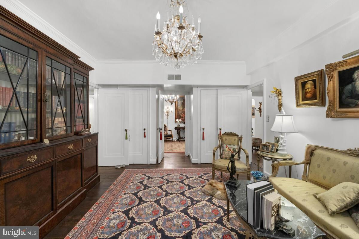 Stunning luxury co-op in the heart of Kalorama, 2101 Connecticut Ave is a prime example of everything DC living has to offer. Both the building and unit maintain classically luxurious 1928 finishes with the modern function you've come to expect. To this day the building maintains it Spanish Colonial Revival style originally designed by architects Joseph H. Abel and George T. Santmyer, and is designated as a contributing property to the Kalorama Triangle Historic District, listed on the National Register of Historic Places. This lavash and spacious 2,700 SF apartment is all one level, with a grand foyer looking across the entire unit. The large updated dine-in kitchen boasts custom cabinets, granite countertops as well as a butlers pantry to further expand your prep and storage space. Directly next to the kitchen is an additional bedroom, bathroom as well as a second entrance into the unit. Continuing through the home you'll find wonderful flow, perfect for entertaining. Whether doing a formal event in the dining room, or a more informal gathering throughout the piano room and the rest of the living space. Tucked away in the back of the unit is the Main Living Quarters with a private bath with his/hers closets. Next to this is a charming Den space which could be used as a 4th bedroom if needed. Other building amenities include a recently upgraded gym, and expansive rooftop deck with gas grills, perfect for entertaining on the 4th of July and watching the fireworks. This wonderful home comes with 2 additional storage units (44 & DD) in the building as well as an assigned parking space.