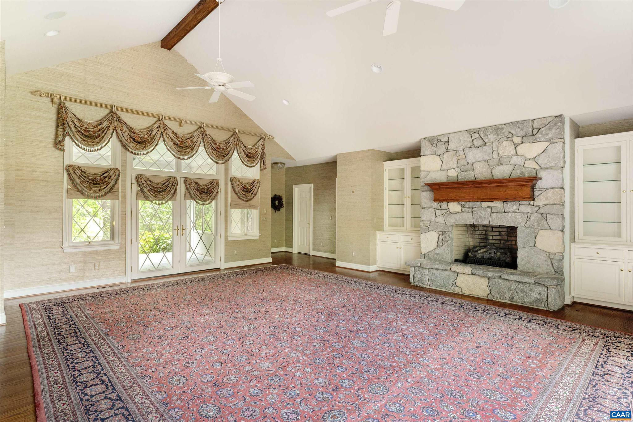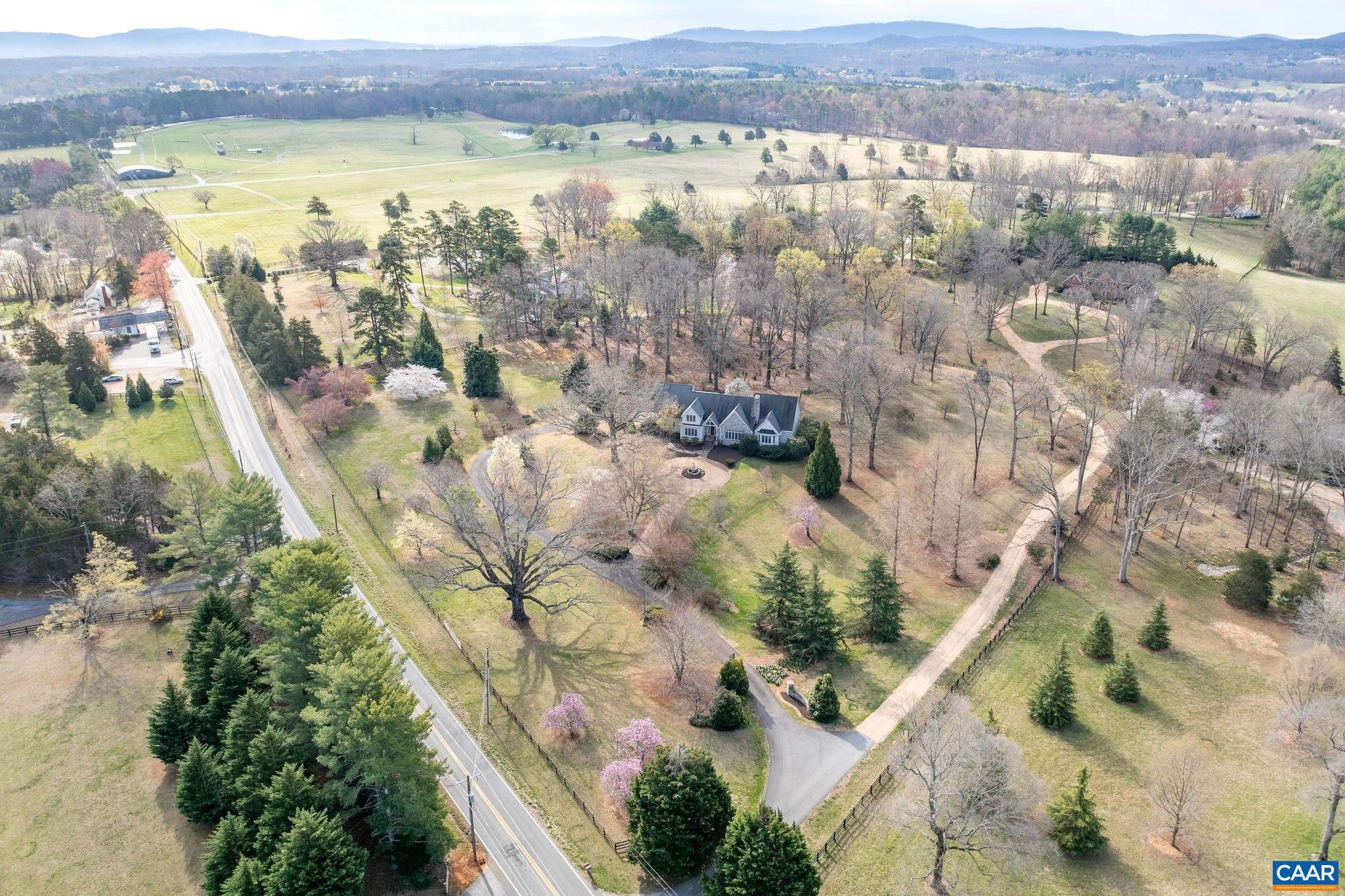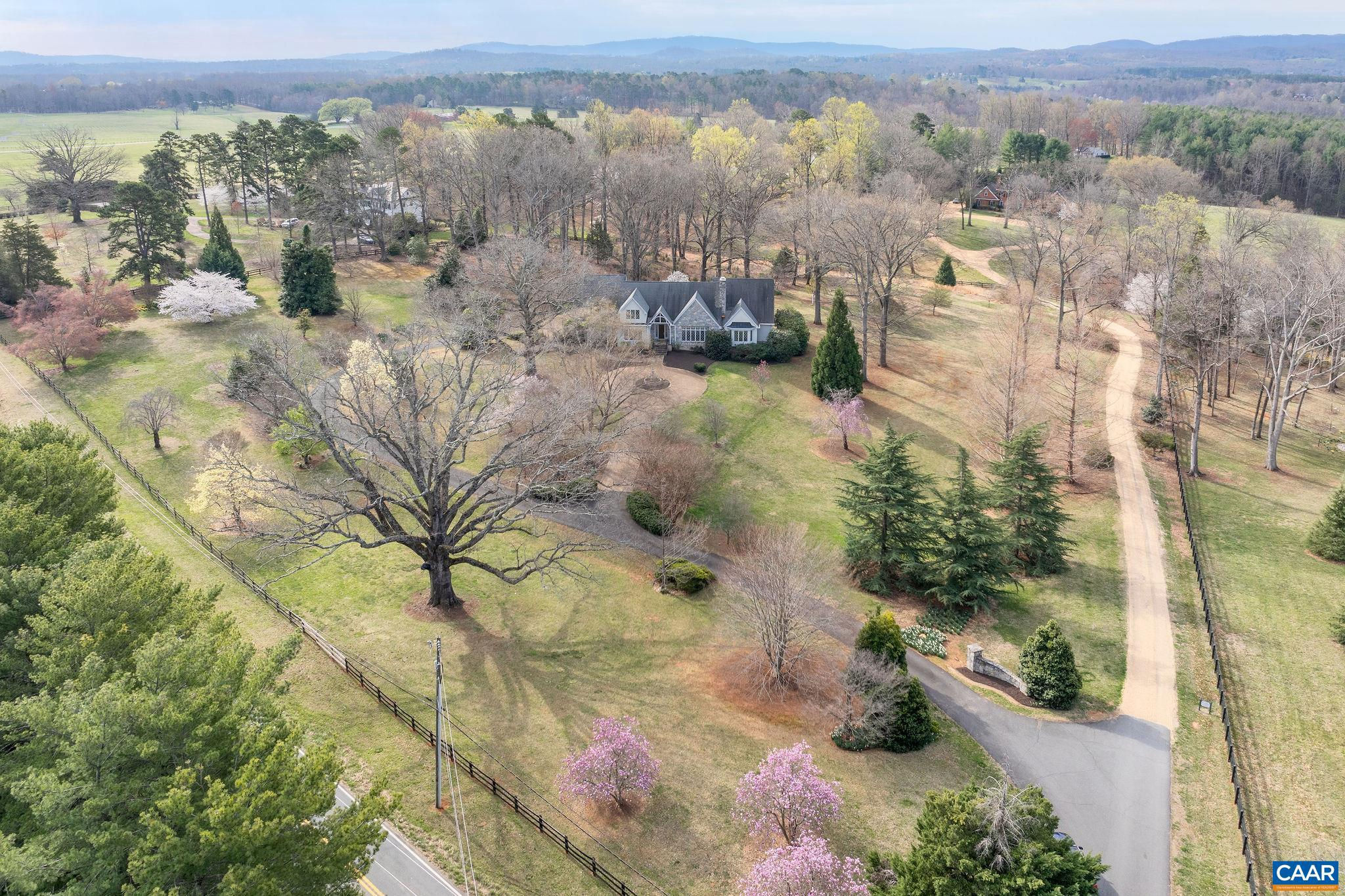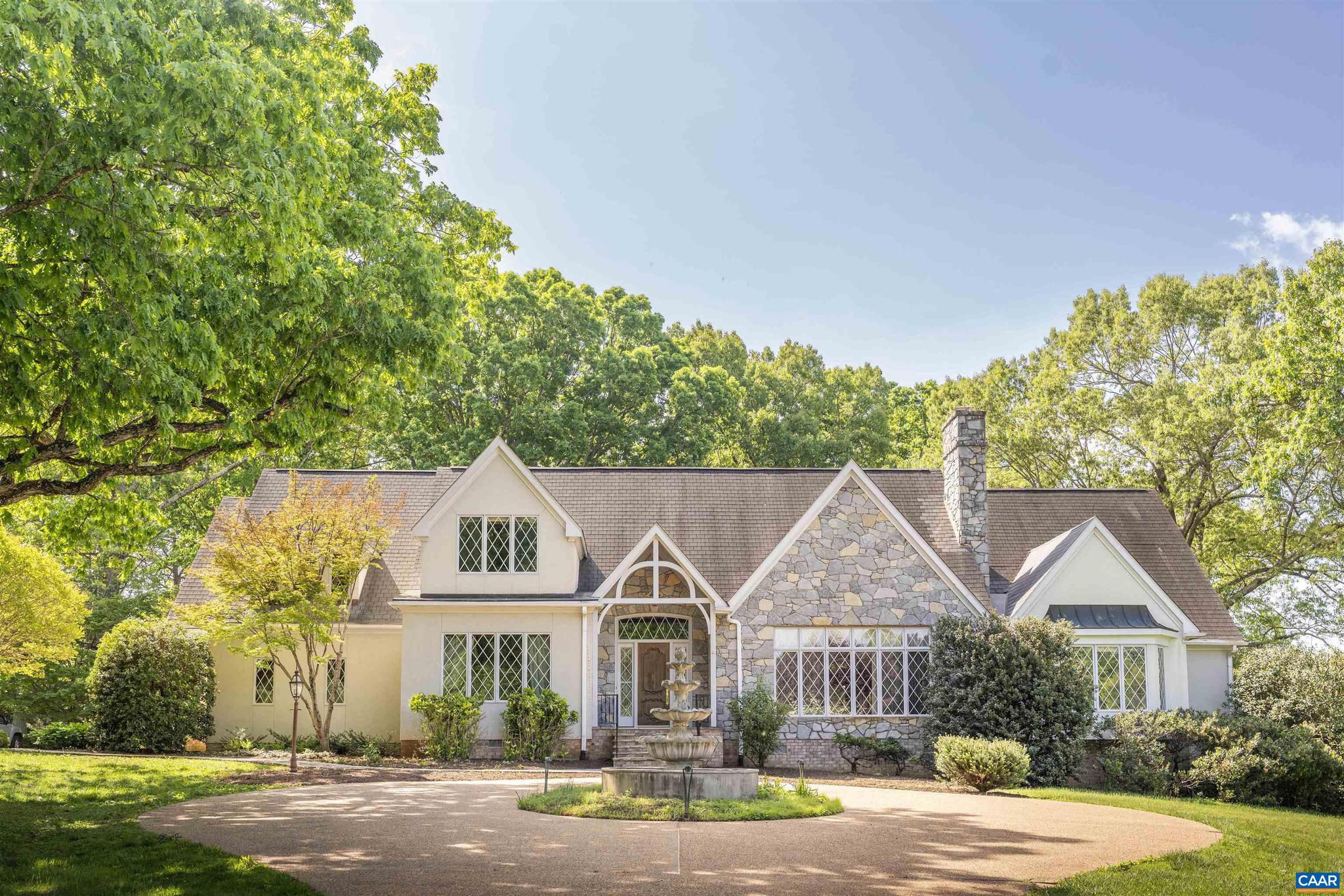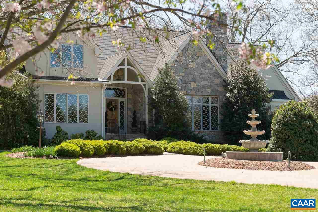 Situated on nearly 7.5 manicured acres amongst the scenic & rolling terrain of Western Albemarle ,on the highly coveted Garth Road, is this stunning, completely custom English Country-style residence only 5 miles from town! Designed & constructed with premium finishes & unparalleled attention to detail, the stone & stucco home features an extremely functional and inviting, light-filled floor plan, cathedral ceilings, elegant moldings, striking stone fireplace, with custom built-ins throughout. There is a large primary bedroom suite on the main level along with an adjoining second bedroom suite. Upper level has a 3rd bedroom, full bath, office or study, and huge loft area to covert a 4th bedroom, and family room. Other features include three bay garage, and generous well-appointed kitchen w/ adjoining breakfast room, leading to covered exterior porch. The surrounding grounds offer a truly lovely setting, with gorgeous landscaping, towering oak trees , large goldfish pond and magnificent views of the surrounding pastoral countryside. PRICED TO SELL, LISTED ALMOST $200,000 BELOW CURRENT ALBEMARLE CO. TAX ASSESSMENT!!!,Granite Counter,Solid Surface Counter,White Cabinets,Wood Cabinets,Fireplace in Great Room