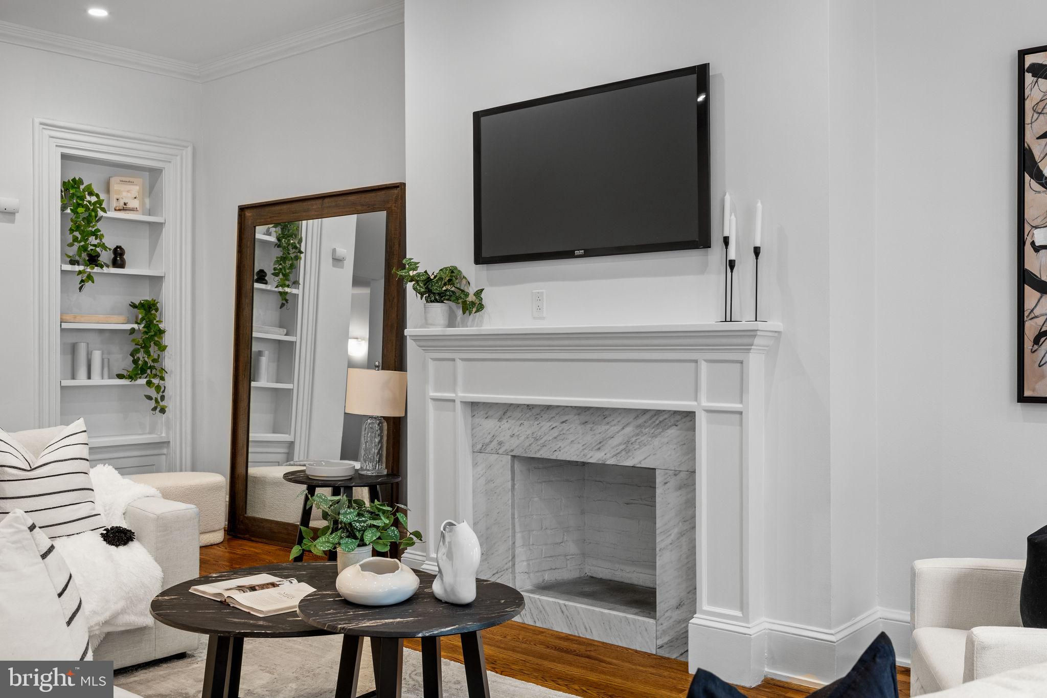 FITLER SQUARE townhouse with PARKING on a rare 100 ft deep lot! This charming townhouse spans over 2700 SF across four levels of living, offering three bedrooms - each with an en-suite bathroom - with two half bathrooms, a finished basement, sauna, and large garden plus 1-car covered parking. The first level features a spacious living room with high ceilings, wood floors, and a fireplace, adjacent to the separate dining room and kitchen. There is also a conveniently located powder room. The kitchen features stainless steel appliances, Downsview cabinetry, and oversized windows that look out to the garden. The garden offers plenty of room for outdoor entertaining, alfresco dining, and access to the covered parking and Latimer Street. The second level provides two-bedroom suites. The south-facing bedroom features a built-in bed and wardrobe, with an en-suite bathroom which includes a large soaking tub, single vanity sink, and stall shower. The primary suite is also on this level and features large custom closets and an en-suite bathroom with a double vanity sink and glass-enclosed shower. The 3rd floor is a large loft-like bedroom with vaulted ceilings and an attached bathroom with a single vanity, sink, and stall shower. Completing this home is a finished basement with a carpeted den/playroom with built-in bookshelves, storage, powder room, and a built-in sauna. This home is located in the Greenfield Elementary School Catchment and blocks from the green spaces of the Schuylkill River Park, playground, dog parks, and running/walking/biking trail. A short commute to Penn, CHOP, Drexel, and 30th Street Station, and 15 min from the PHL International Airport.