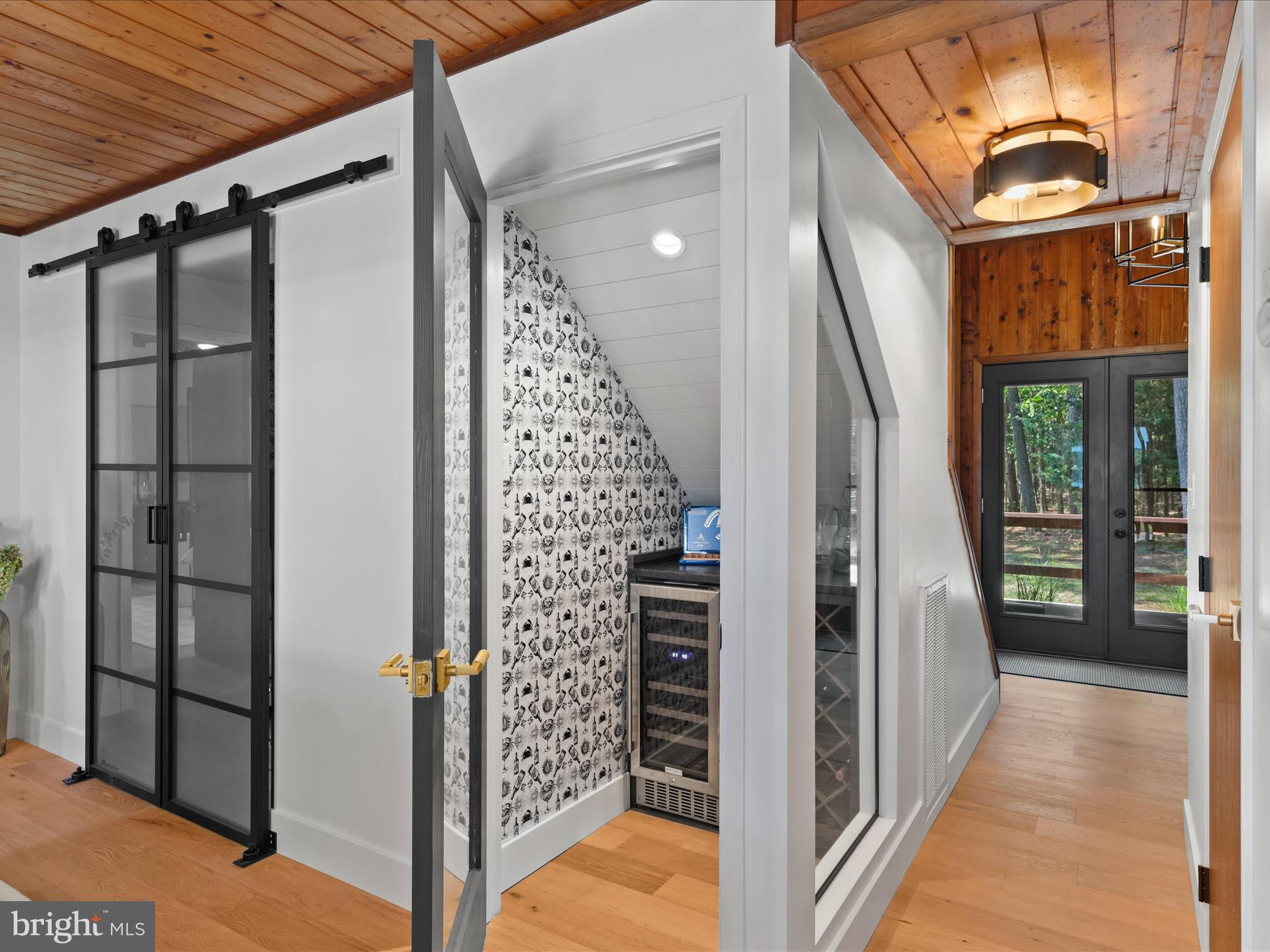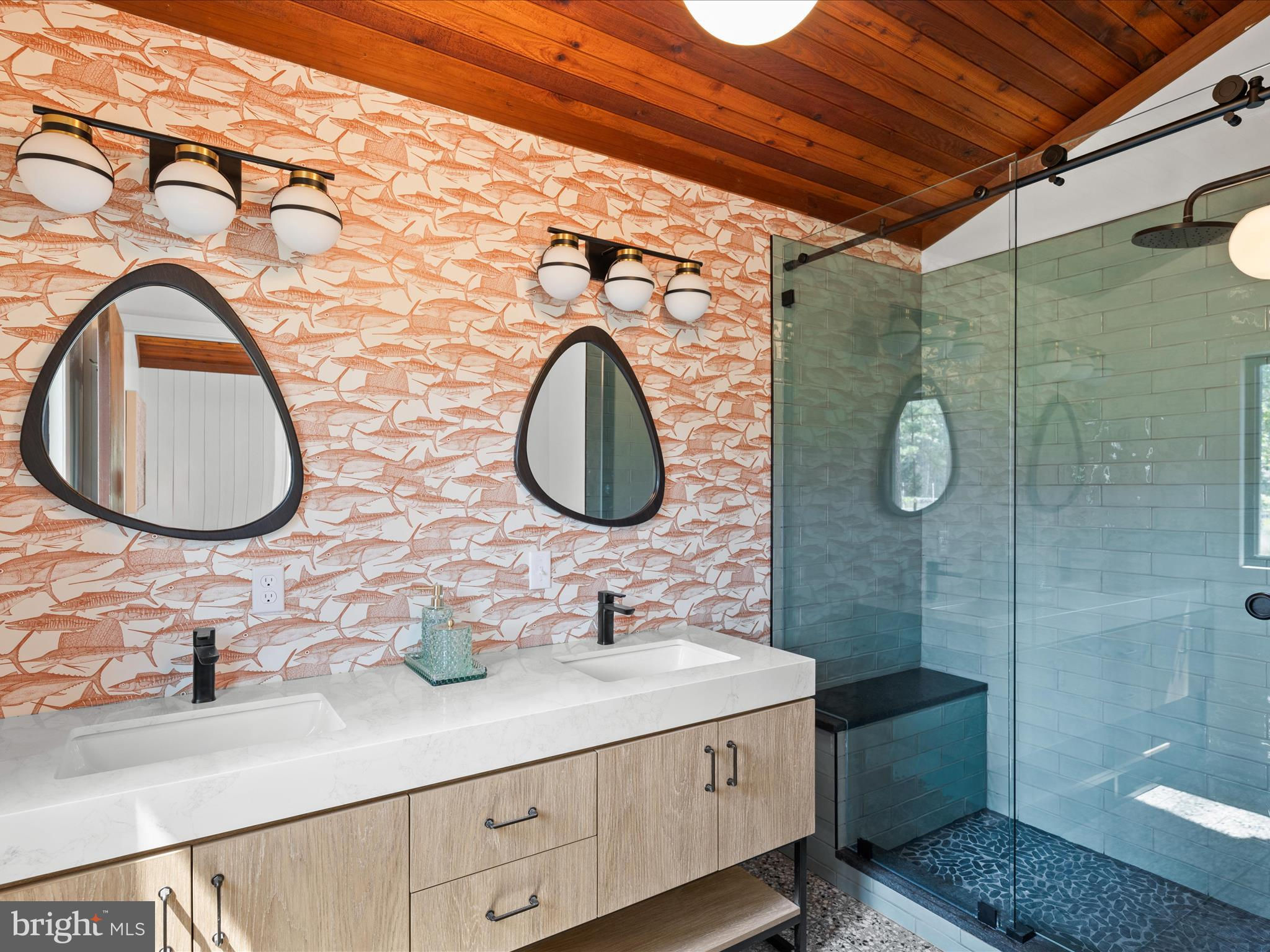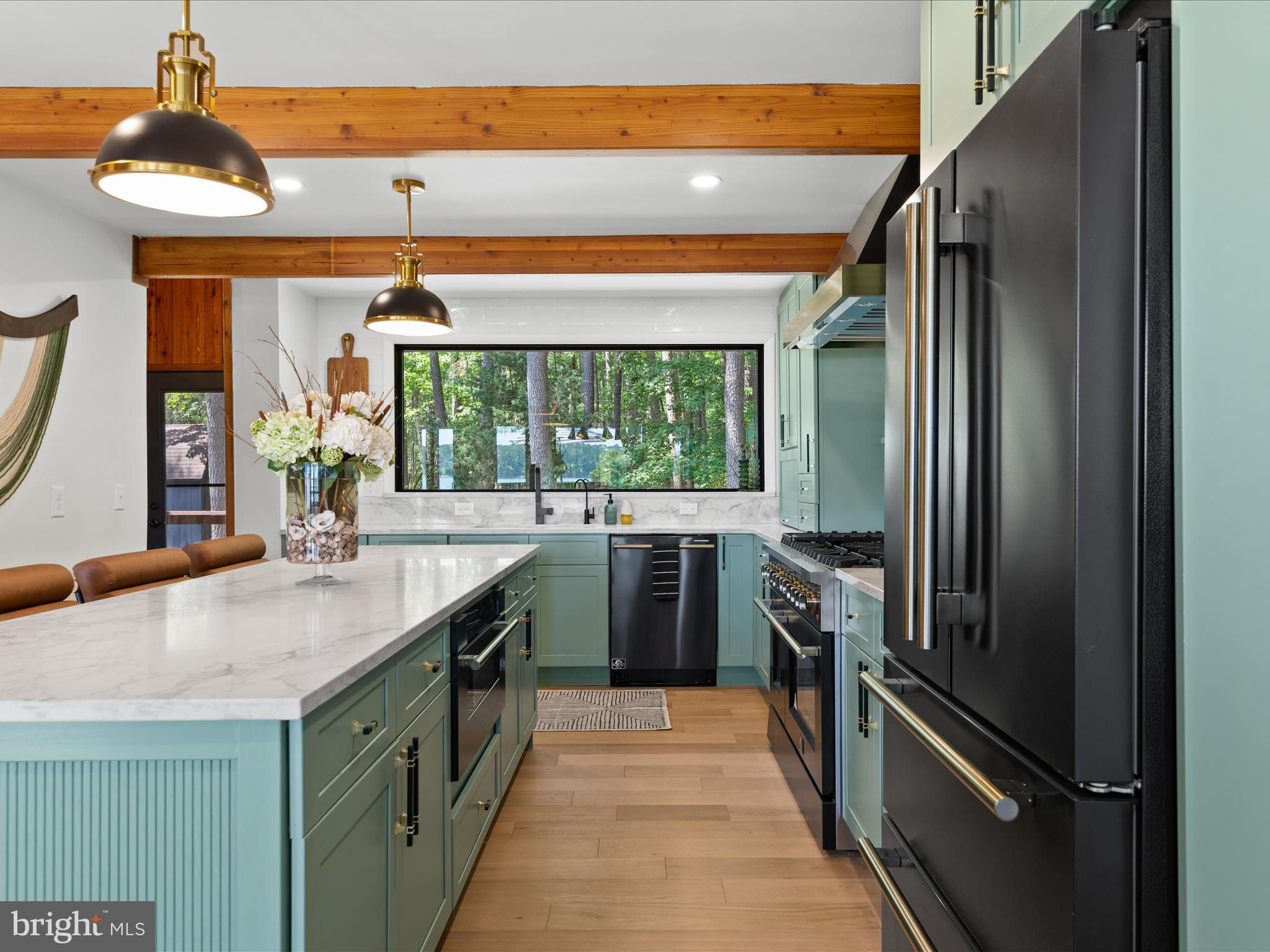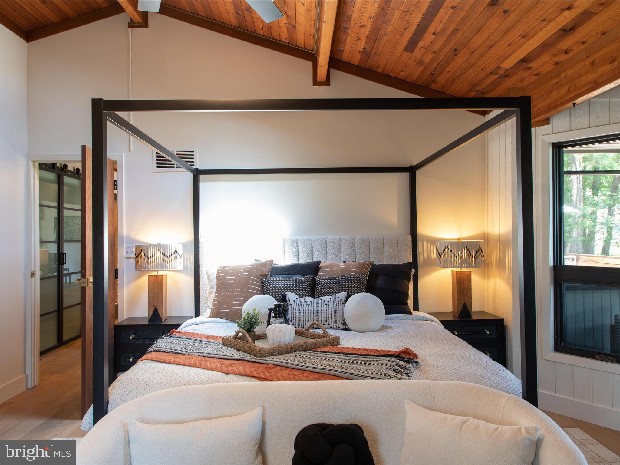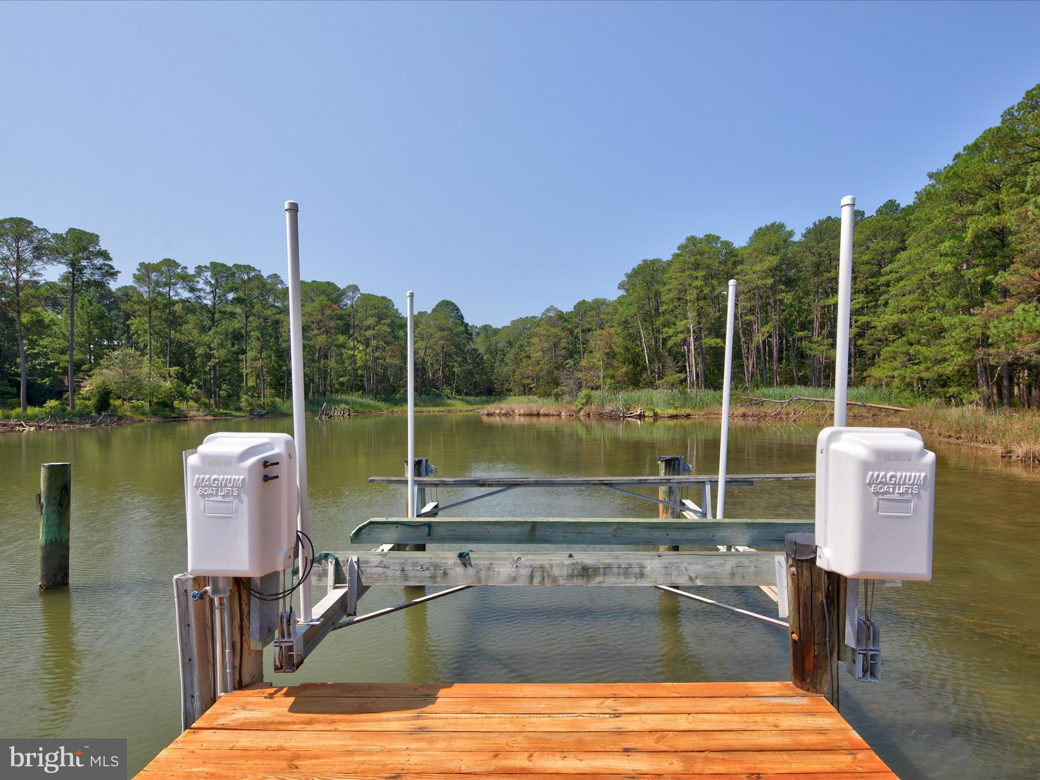 Experience elevated coastal living in this impeccably renovated 2,250 sq ft post-and-beam home, reimagined as a coastal modern contemporary masterpiece by interior designer Hollace Kutay. Known as Oyster Cove for its picturesque 2.5 acre location on Broad Creek, this home is perfectly situated for boaters and kayakers seeking both adventure and tranquility. Enjoy expansive water views from nearly every room, and take full advantage of the private dock outfitted with an electric boat lift—complete with both water and electric hookups for seamless waterfront living. Featuring 4 bedrooms and 3.5 baths—including dual primary suites upstairs and down—this designer showcase comes fully furnished (except 2 bedrooms) with curated, unique pieces included in the sale. The chef's kitchen features beautifully black and gold appliances, including a 48-inch duel fuel range. A stunning 9-foot island anchors the room, perfect for casual dining or entertaining, while the separate prep kitchen is equipped with a second refrigerator, sink, and dishwasher, ensuring both efficiency and style. The under-stair wine room with one-of-a-kind wallpaper as well as a dedicated office/lounge add both charm and function. The powder room features a custom artisan octopus sink crafted by designer and artist Hollace Kutay. Enjoy seamless indoor-outdoor living with generous dining spaces perfect for gatherings. This is a rare turnkey opportunity to own a furnished, design-forward home that’s as livable as it is luxurious. Owner is a Maryland licensed realtor.