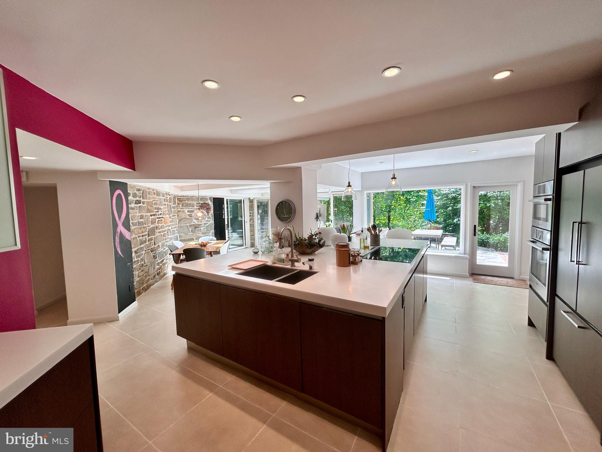 Hidden treasure! Distinctive property on Northside Haverford's most prestigious lane, utmost privacy, yet proximity to the train, shops & restaurants of Haverford & Ardmore's Suburban Squares, (a few minutes walking distance). 5,500 square feet of flexible open floor plan. Adjacent to the Merion Cricket Club! Wall of windows in kitchen area and expansive Terrace add to year-round enjoyment of the grounds. Pool and deck installed in 2014. Many updates through the years, including replacement windows and a whole wall of windows and special lighting, and skylights were added. Charming Entrance Hall with graceful circular staircase. Spacious Living Room with multiple built-ins and custom Tennessee sandstone surround for the fireplace. Porcelanosa Kitchen was installed in 2014, oversized peninsula, dishwasher, large FR with beamed soaring ceiling, two-sided wood fp and beautiful floors, laundry, utility and mud rooms, 2 PRs on that level. Backstairs to bedroom level, large master suite created out of two bedrooms, with an ensuite bath, entirely redone in 2014; second good size bedroom with bath, 3rd & 4th bedrooms share bath; A small flight of stairs in the back leads to another 2 guest rooms that share one bath. Opportunity for au-pair suite or in-law suite. Fantastic storage everywhere! Special location...special house!