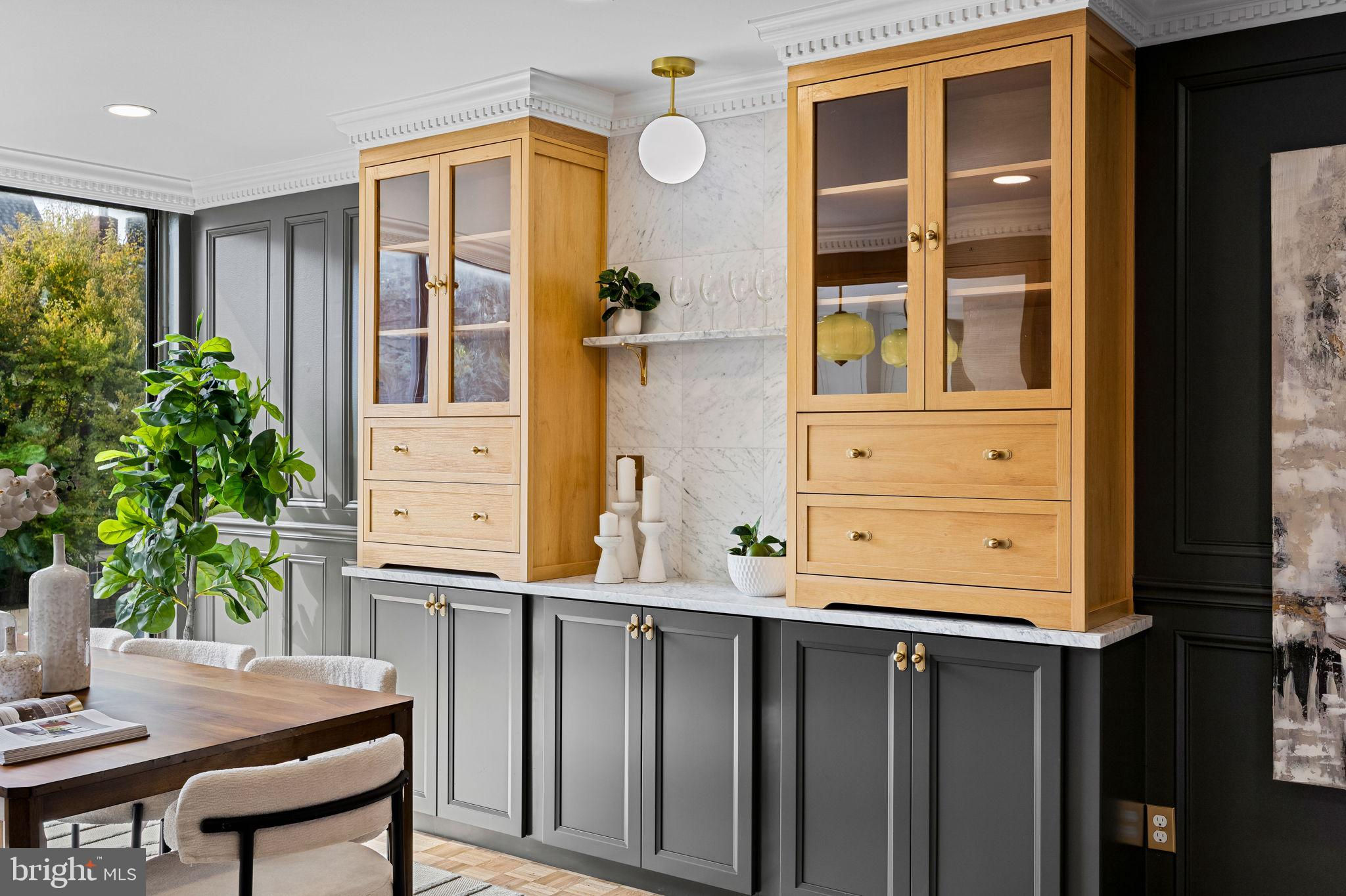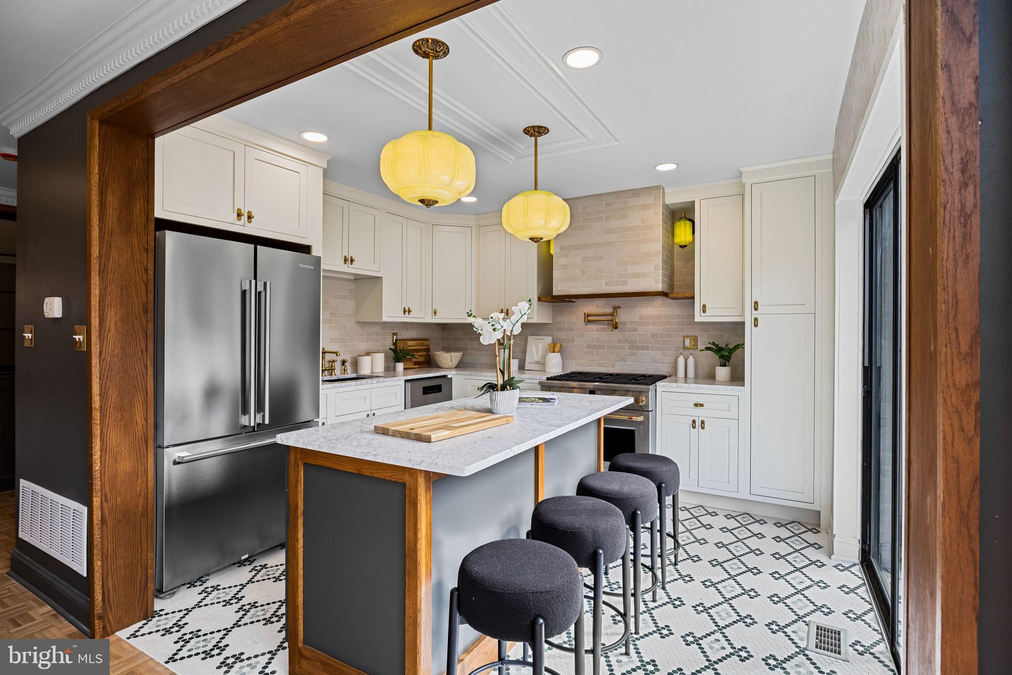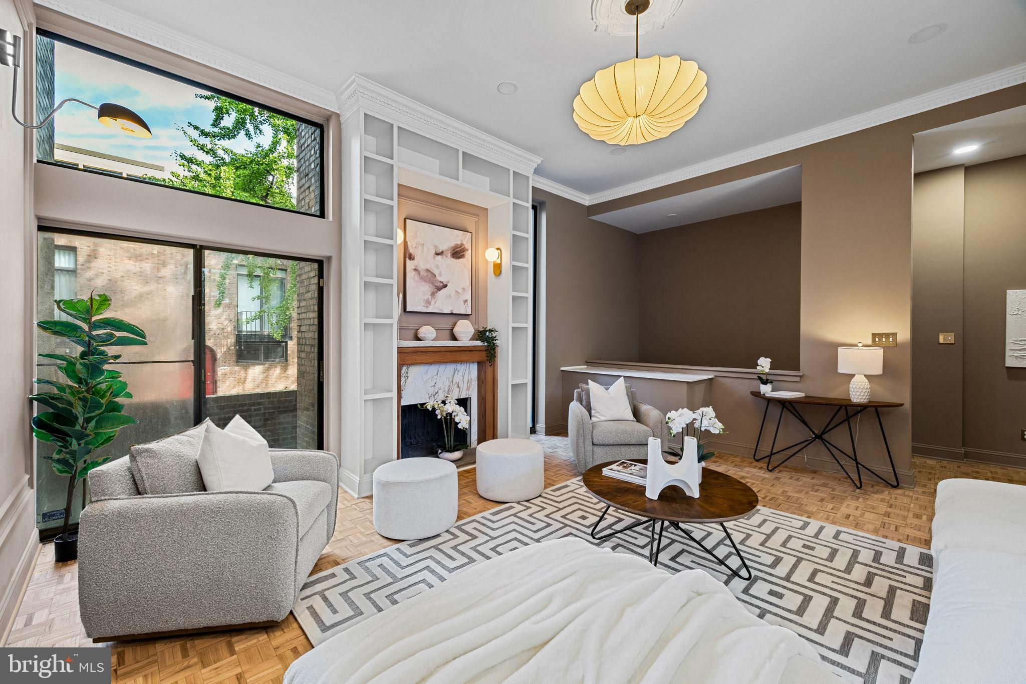Welcome to this exquisitely reimagined residence in Society Hill, originally designed by Louis Sauer and thoughtfully renovated to offer the perfect balance of modern luxury and timeless character. This four-bedroom, three-bath home with private parking showcases elevated craftsmanship and refined finishes throughout. As you enter the foyer, you’re greeted by a bright and expansive living area featuring 11-foot ceilings, classic mill work, intricate custom moldings, a marble-surround fireplace, and beautifully preserved parquet oak floors. Floor-to-ceiling windows flood the space with natural light and frame serene views of the tree-lined street. Just beyond the living room, a patio overlooks the lushly landscaped gardens, creating an inviting space for morning coffee or evening relaxation. The gourmet kitchen is a showpiece of design, appointed with premium stainless steel appliances, inset cabinetry, Carrara marble countertops, and a custom-tiled range hood. An adjacent dining area with custome built-in shelving and cabinetry provides a warm and elegant setting for entertaining. Upstairs, the tranquil primary suite offers a generous walk-in closet and a spa-like bathroom featuring a walk-in shower and a freestanding soaking tub. Two additional bedrooms and a full hallway bath complete this level, blending comfort with thoughtful design. The lower level is equally impressive, offering a spacious bonus room with over-sized windows overlooking the rear patio and garden—perfect for a media lounge or entertaining space. This level also includes a mudroom/bar area and an additional full bathroom for convenience. A gated parking space directly behind the home provides ease and functionality in this coveted neighborhood. Nestled in the heart of a historically preserved community, residents enjoy access to beautiful green spaces like Three Bears Park and Independence Park. All of this, just steps from acclaimed restaurants, charming cafés, Ritz and PFS theaters, and a short 15-minute drive to the airport.
