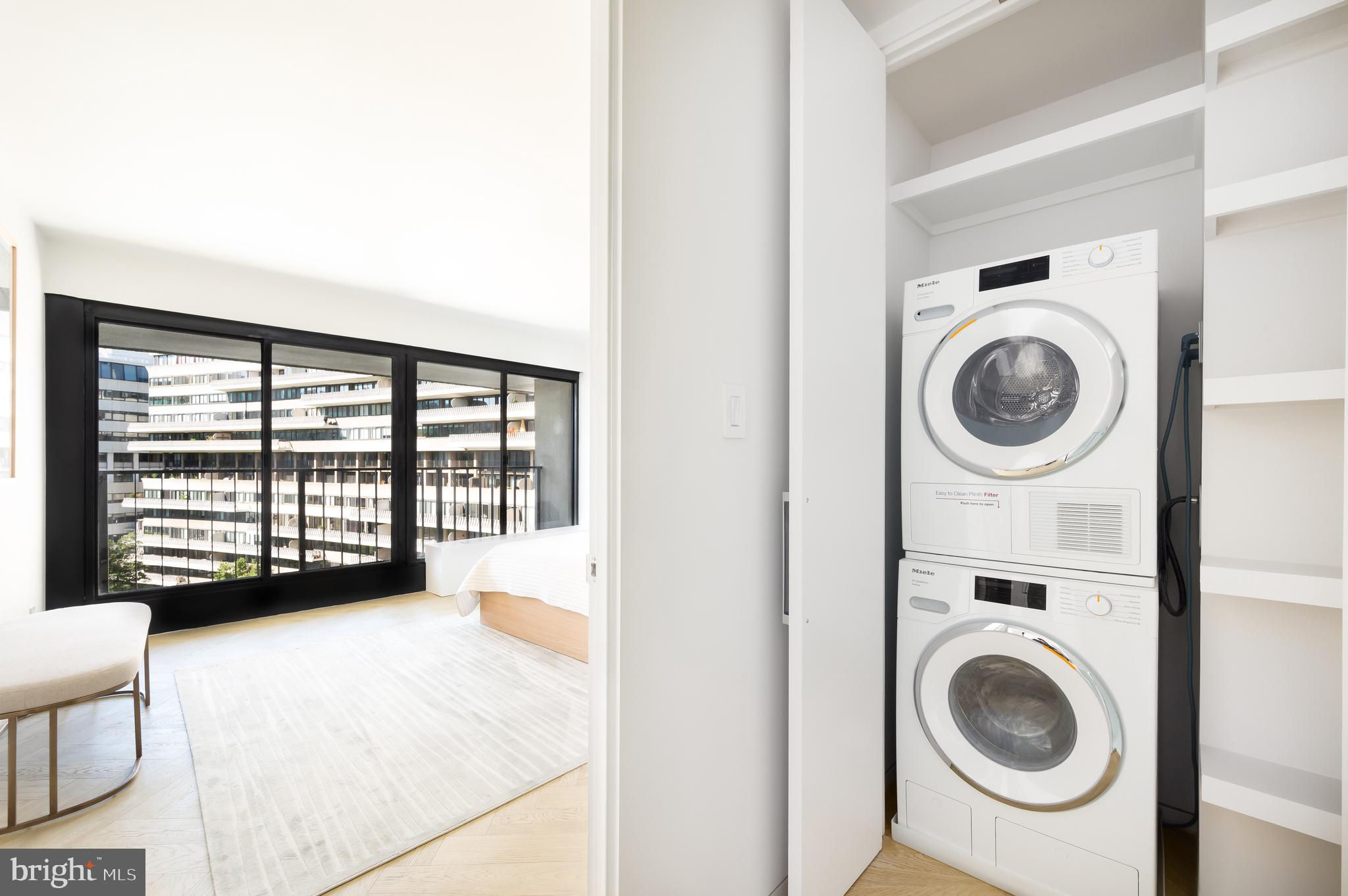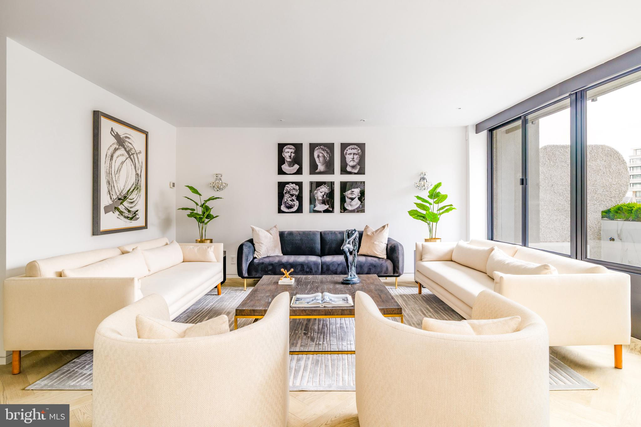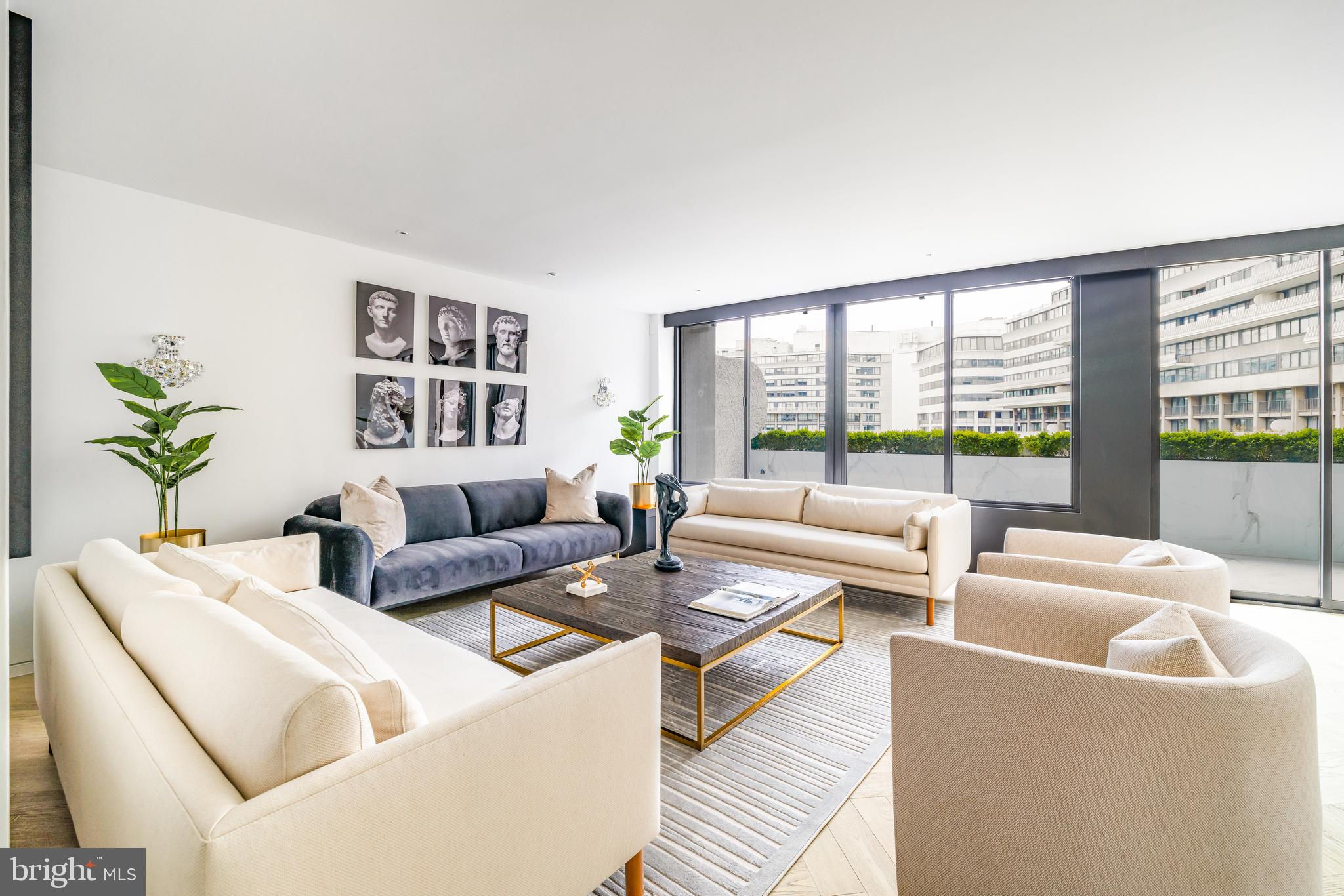 Few landmarks hold as much historical significance in the United States as Watergate. A symbol of power, prestige, and luxury, the iconic mid-century façade of Watergate East conceals a collection of distinguished residences among the finest in the city. Within this exclusive enclave lies #715—a meticulously reimagined two-bedroom residence that embodies the essence of open-concept living. A refined simplicity defines the space, where a bright, open aesthetic has been curated to the highest global standards. Wide-plank hardwood floors and a light, airy palette shimmer in the natural light streaming through floor-to-ceiling windows, creating an ethereal atmosphere in every room. The chef’s kitchen is a masterpiece of form and function, featuring imported white marble, sleek European cabinetry, and commercial-grade appliances, all complemented by Architectural Digest-worthy designer fixtures. Thoughtfully designed custom built-ins add a touch of artistry, while the bathrooms rival those of the world’s finest hotels, showcasing exquisite hardware and finishes. The layout includes two generous bedroom suites, each with its own luxurious bath, along with a sophisticated powder room. Below, the lush interior lawn and private swimming pool glisten in the light, with the soothing sounds of Watergate’s iconic fountains providing a tranquil backdrop. Watergate East offers a full-service experience with a 24-hour concierge and an array of premier amenities. A designated private parking space and a secure storage unit convey, The remarkably reasonable monthly co-op fee includes property taxes, all utilities, HVAC maintenance, cable, internet, and parking.Set against the backdrop of Foggy Bottom’s waterfront, #715 presents a rare opportunity to own a fully reimagined masterpiece in one of America’s most storied addresses.