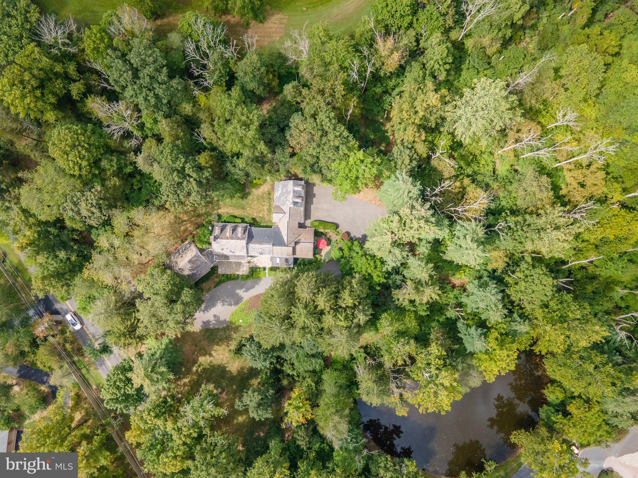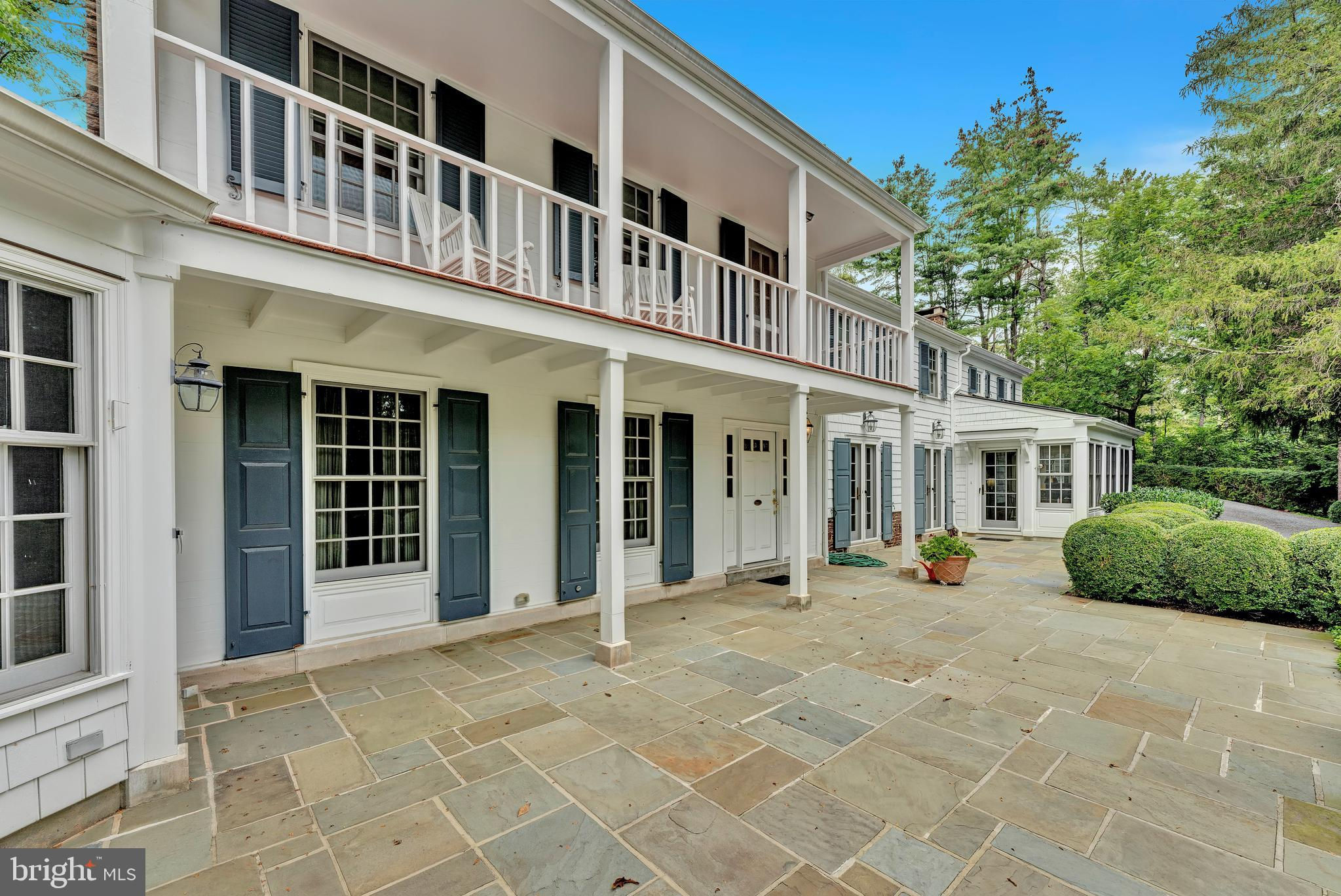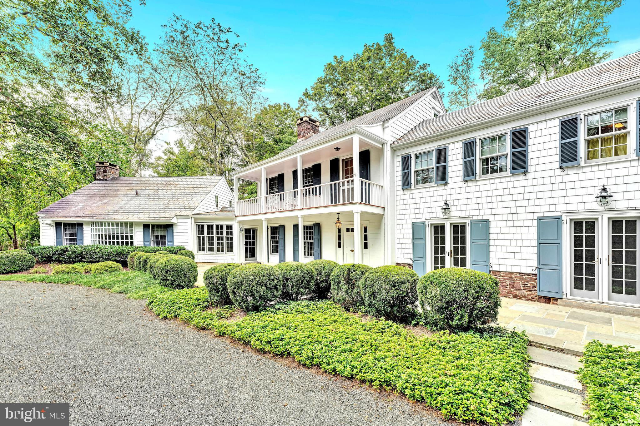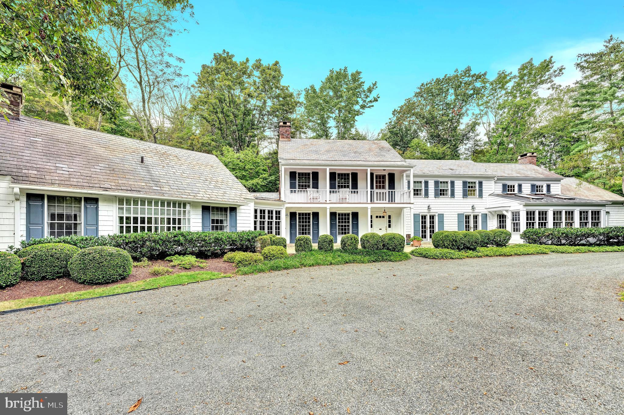 Welcome to this picturesque Princetonian estate located in the northern section of Princeton, New Jersey. This home is situated on almost 4 acres of land with private pond, elevated detached garage, wooded trails, and mature landscaping. The exterior esthetic is that of a historic Mercer County estate featuring slate tile roof, wood panel siding, natural stone, front balcony area, and 3 stories of well organized living space. With almost 4,700 finished square feet, this home is ideal for multi-generational living or accommodating larger families. The entire west wing of the property is a main level master suite with separate sitting room, dedicated office with built in shelving, spacious bedroom, walk-in closet, and full en-suite bathroom. The main level also provides a half bathroom, formal dining room, eat-in kitchen with full wall of windows, first floor laundry, large pantry, and a 2-story main living space. To access the second level, there are 2 sets of stairs, along with a fully-functioning elevator. The second floor features the second master suite with ample closet space and full bathroom, along with 2 additional bedrooms, a shared bathroom, and access to both the garage space, and the front balcony sitting area. The third floor has an additional bedroom/den with its own full bathroom. The garage has 3 separate bays and access to its own bonus storage space. The property has plenty of parking for larger gatherings and several outdoor spaces for dining, entertaining, pets, and play areas. There is even a private trail leading to the property's pond which borders the Pretty Brook Tennis Club. Ease-of-maintenance with updated utilities, public water/sewer, and well-maintained grounds. Take full advantage of the highly rated Princeton schools, the exciting downtown shops/eateries, and easy access to the beaches and major cities around Central New Jersey. Explore the home virtually via the 3D tour link!