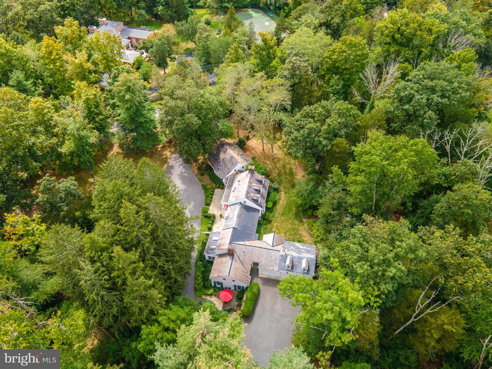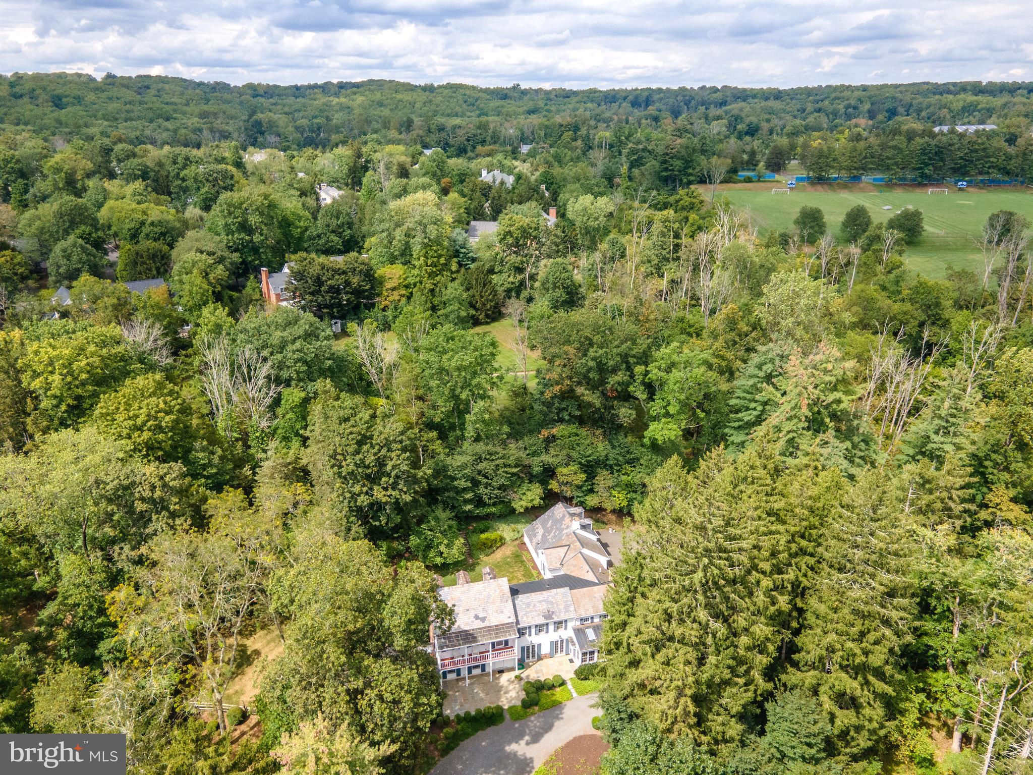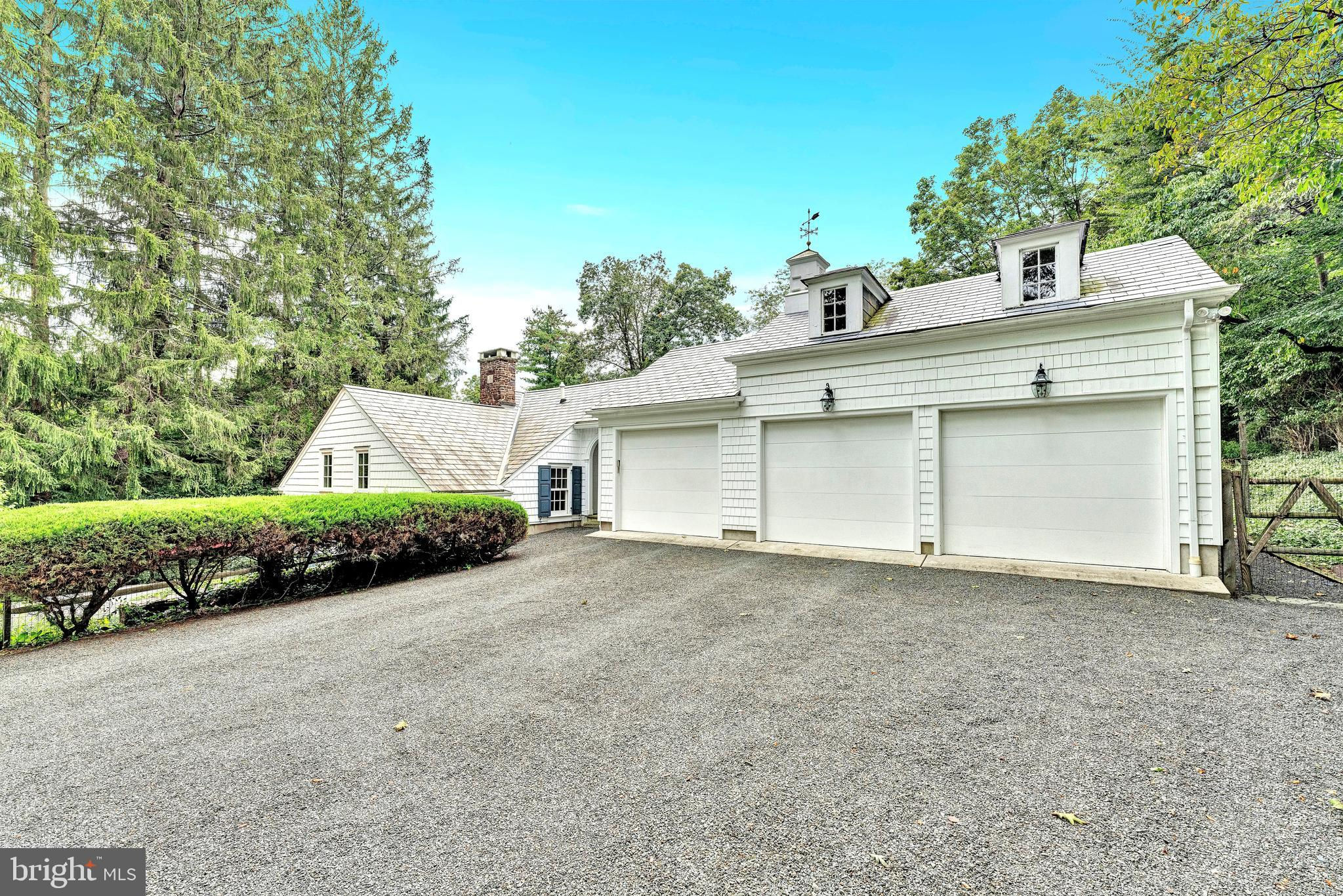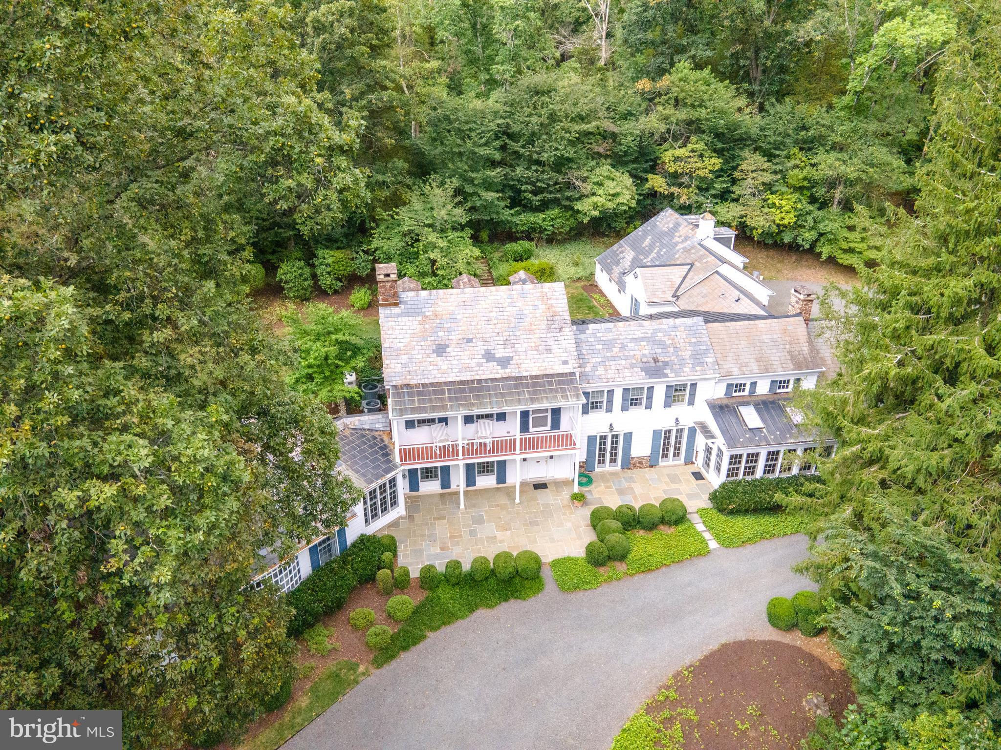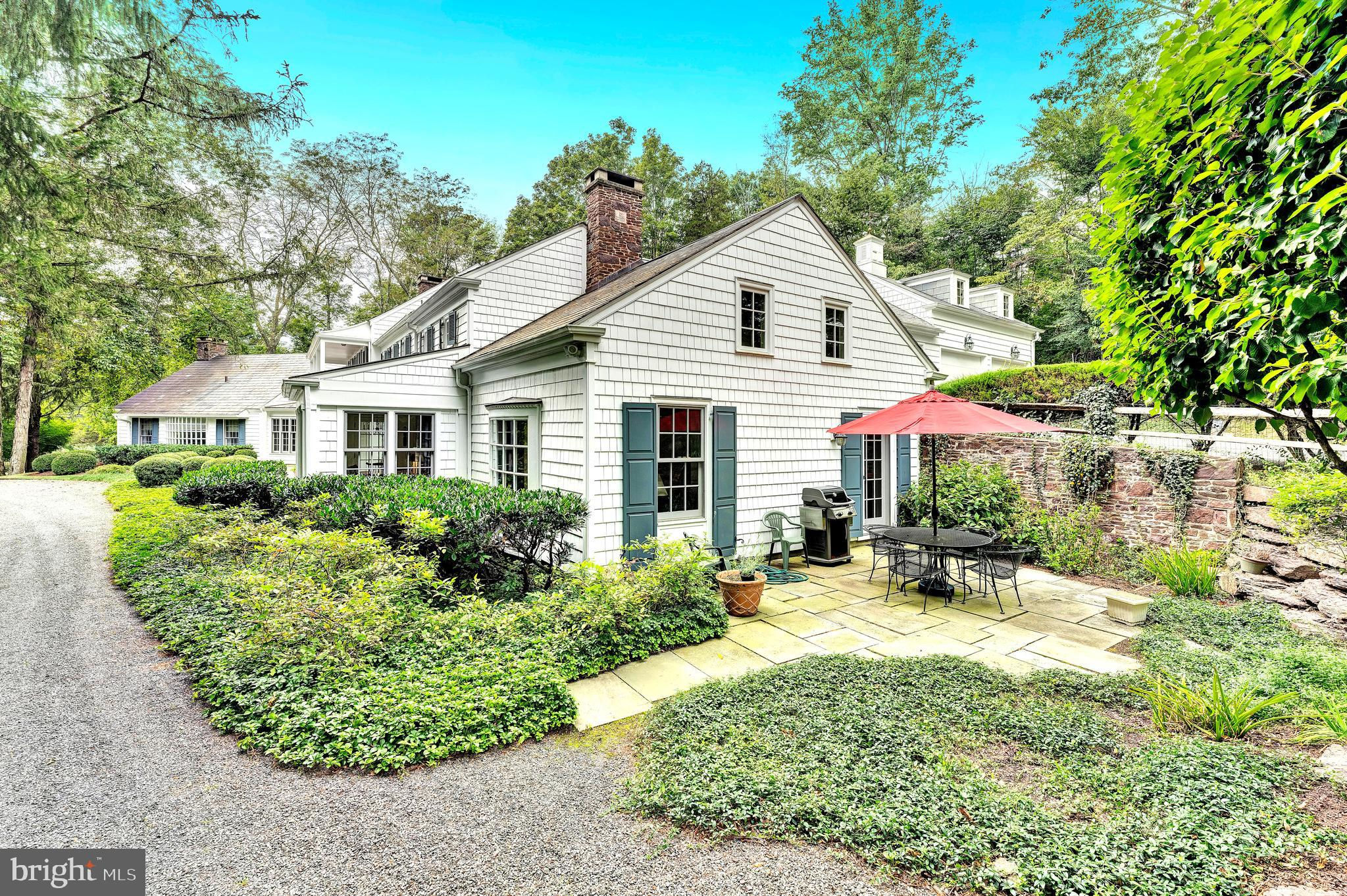 Welcome to this picturesque Princetonian estate located in the northern section of Princeton, New Jersey. This home is situated on almost 4 acres of land with private pond, elevated detached garage, wooded trails, and mature landscaping. The exterior esthetic is that of a historic Mercer County estate featuring slate tile roof, wood panel siding, natural stone, front balcony area, and 3 stories of well organized living space. With almost 4,700 finished square feet, this home is ideal for multi-generational living or accommodating larger families. The entire west wing of the property is a main level master suite with separate sitting room, dedicated office with built in shelving, spacious bedroom, walk-in closet, and full en-suite bathroom. The main level also provides a half bathroom, formal dining room, eat-in kitchen with full wall of windows, first floor laundry, large pantry, and a 2-story main living space. To access the second level, there are 2 sets of stairs, along with a fully-functioning elevator. The second floor features the second master suite with ample closet space and full bathroom, along with 2 additional bedrooms, a shared bathroom, and access to both the garage space, and the front balcony sitting area. The third floor has an additional bedroom/den with its own full bathroom. The garage has 3 separate bays and access to its own bonus storage space. The property has plenty of parking for larger gatherings and several outdoor spaces for dining, entertaining, pets, and play areas. There is even a private trail leading to the property's pond which borders the Pretty Brook Tennis Club. Ease-of-maintenance with updated utilities, public water/sewer, and well-maintained grounds. Take full advantage of the highly rated Princeton schools, the exciting downtown shops/eateries, and easy access to the beaches and major cities around Central New Jersey. Explore the home virtually via the 3D tour link!