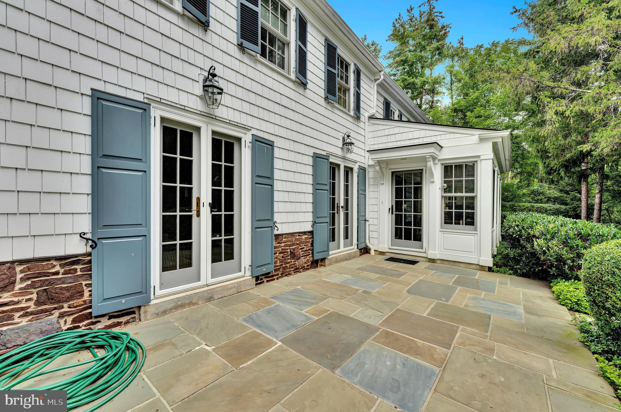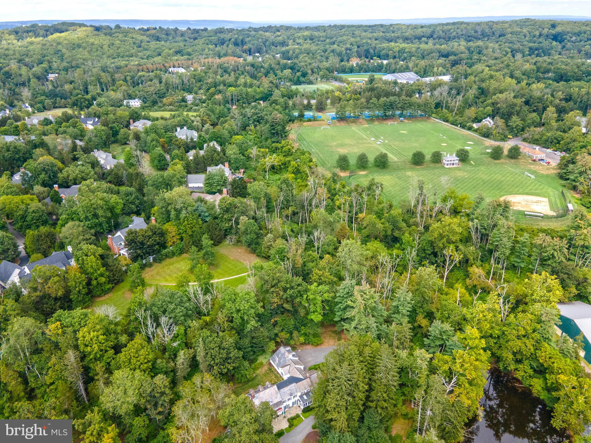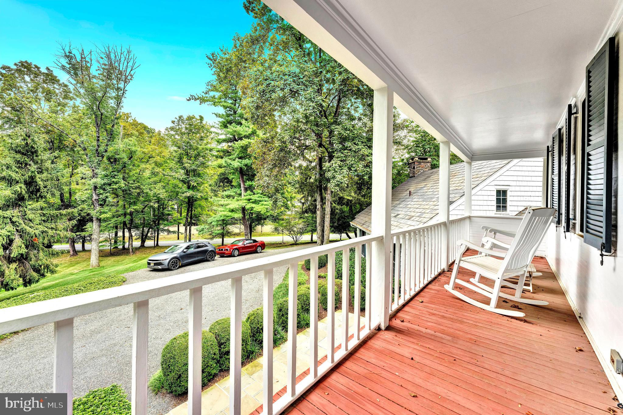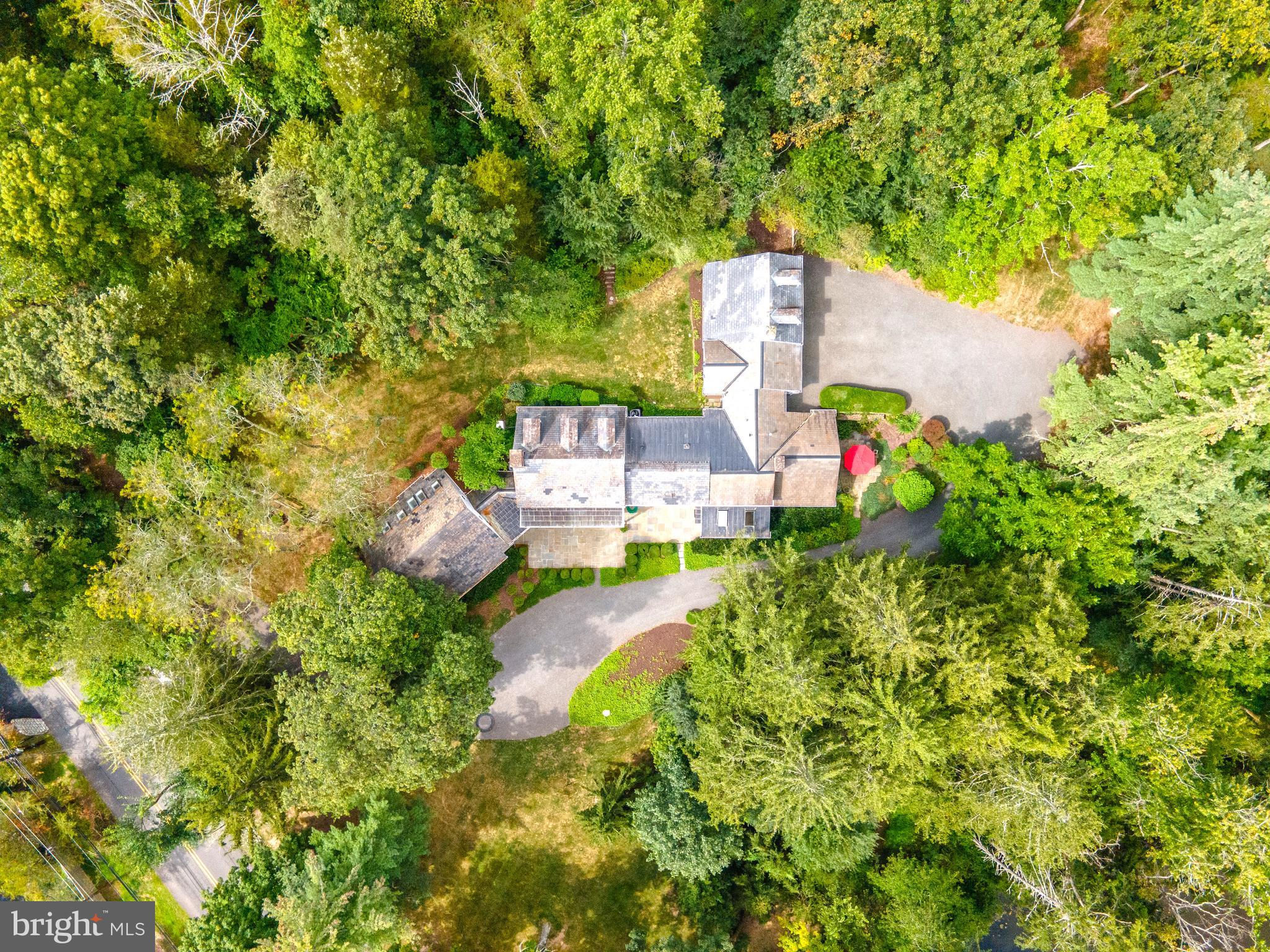 Welcome to this picturesque Princetonian estate located in the northern section of Princeton, New Jersey. This home is situated on almost 4 acres of land with private pond, elevated detached garage, wooded trails, and mature landscaping. The exterior esthetic is that of a historic Mercer County estate featuring slate tile roof, wood panel siding, natural stone, front balcony area, and 3 stories of well organized living space. With almost 4,700 finished square feet, this home is ideal for multi-generational living or accommodating larger families. The entire west wing of the property is a main level master suite with separate sitting room, dedicated office with built in shelving, spacious bedroom, walk-in closet, and full en-suite bathroom. The main level also provides a half bathroom, formal dining room, eat-in kitchen with full wall of windows, first floor laundry, large pantry, and a 2-story main living space. To access the second level, there are 2 sets of stairs, along with a fully-functioning elevator. The second floor features the second master suite with ample closet space and full bathroom, along with 2 additional bedrooms, a shared bathroom, and access to both the garage space, and the front balcony sitting area. The third floor has an additional bedroom/den with its own full bathroom. The garage has 3 separate bays and access to its own bonus storage space. The property has plenty of parking for larger gatherings and several outdoor spaces for dining, entertaining, pets, and play areas. There is even a private trail leading to the property's pond which borders the Pretty Brook Tennis Club. Ease-of-maintenance with updated utilities, public water/sewer, and well-maintained grounds. Take full advantage of the highly rated Princeton schools, the exciting downtown shops/eateries, and easy access to the beaches and major cities around Central New Jersey. Explore the home virtually via the 3D tour link!