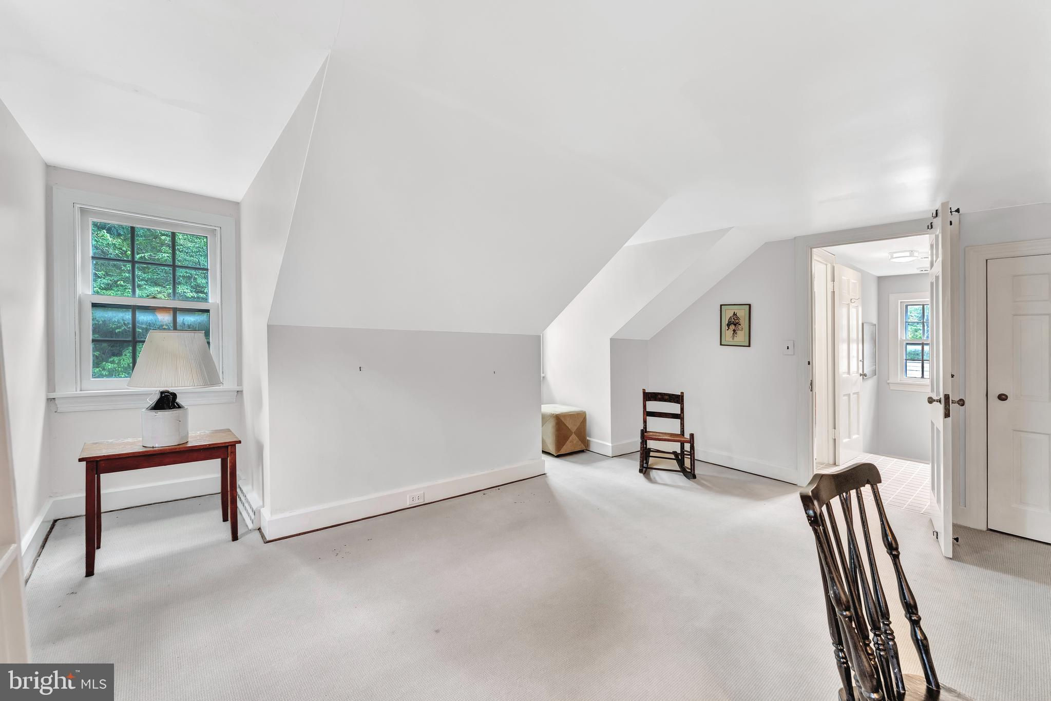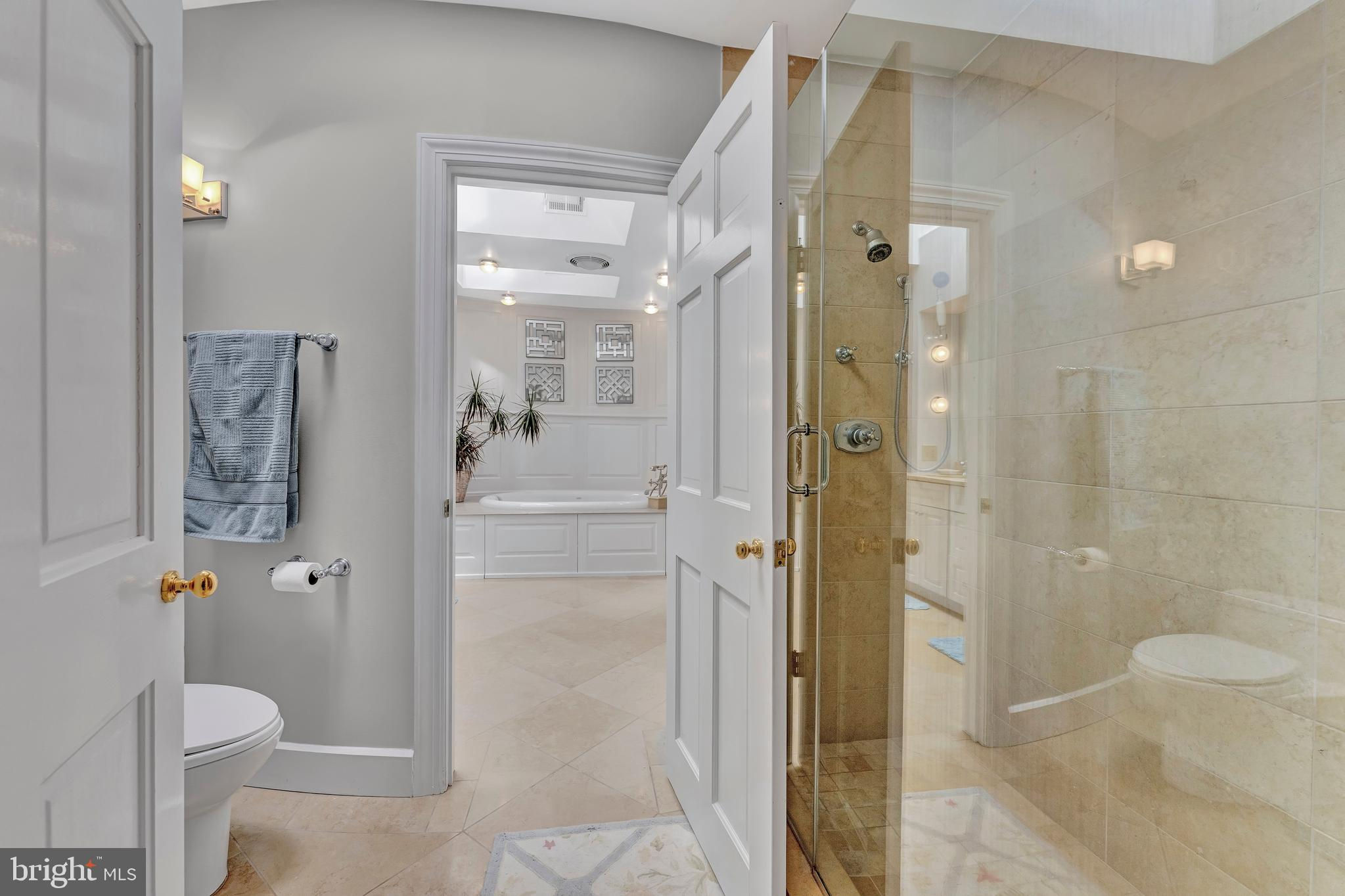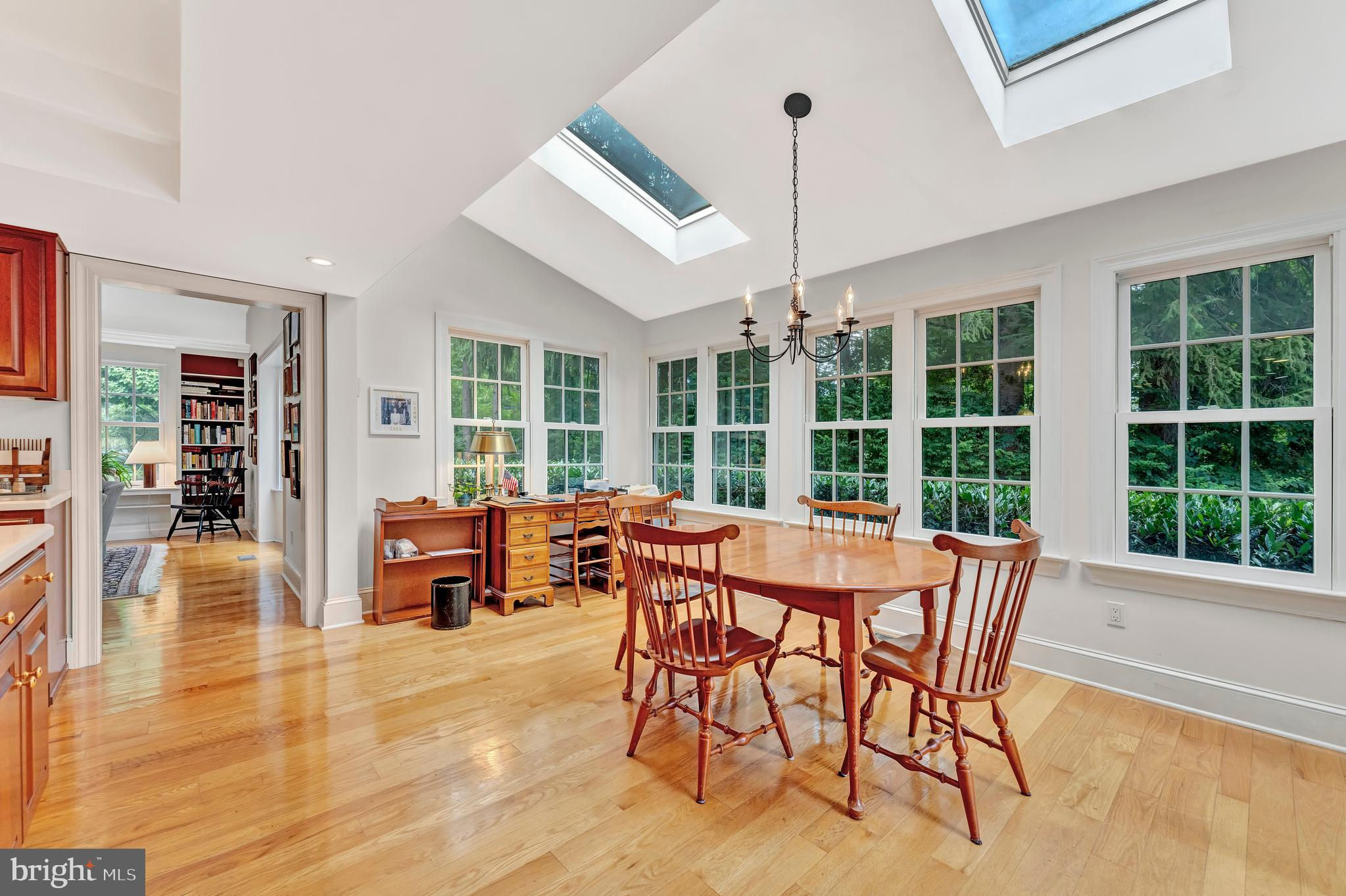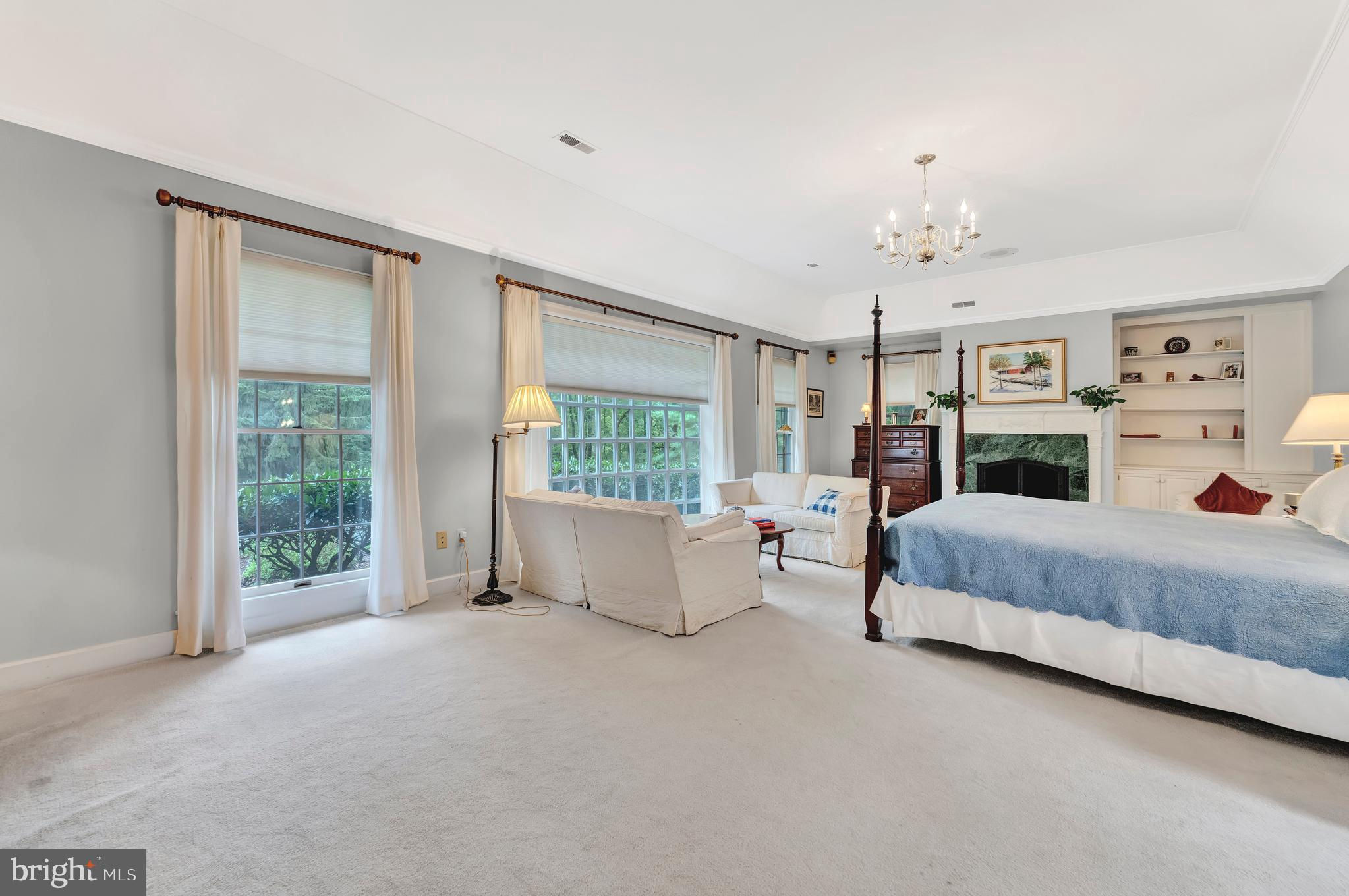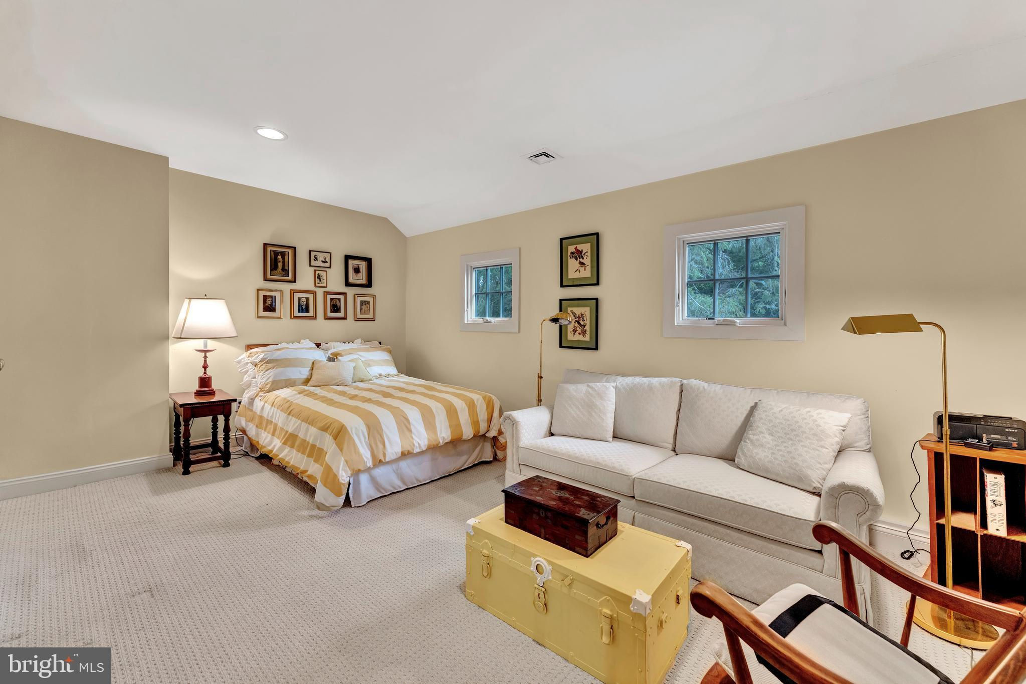 Welcome to this picturesque Princetonian estate located in the northern section of Princeton, New Jersey. This home is situated on almost 4 acres of land with private pond, elevated detached garage, wooded trails, and mature landscaping. The exterior esthetic is that of a historic Mercer County estate featuring slate tile roof, wood panel siding, natural stone, front balcony area, and 3 stories of well organized living space. With almost 4,700 finished square feet, this home is ideal for multi-generational living or accommodating larger families. The entire west wing of the property is a main level master suite with separate sitting room, dedicated office with built in shelving, spacious bedroom, walk-in closet, and full en-suite bathroom. The main level also provides a half bathroom, formal dining room, eat-in kitchen with full wall of windows, first floor laundry, large pantry, and a 2-story main living space. To access the second level, there are 2 sets of stairs, along with a fully-functioning elevator. The second floor features the second master suite with ample closet space and full bathroom, along with 2 additional bedrooms, a shared bathroom, and access to both the garage space, and the front balcony sitting area. The third floor has an additional bedroom/den with its own full bathroom. The garage has 3 separate bays and access to its own bonus storage space. The property has plenty of parking for larger gatherings and several outdoor spaces for dining, entertaining, pets, and play areas. There is even a private trail leading to the property's pond which borders the Pretty Brook Tennis Club. Ease-of-maintenance with updated utilities, public water/sewer, and well-maintained grounds. Take full advantage of the highly rated Princeton schools, the exciting downtown shops/eateries, and easy access to the beaches and major cities around Central New Jersey. Explore the home virtually via the 3D tour link!