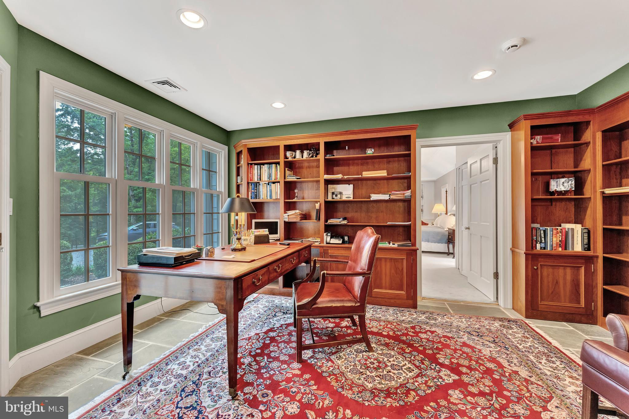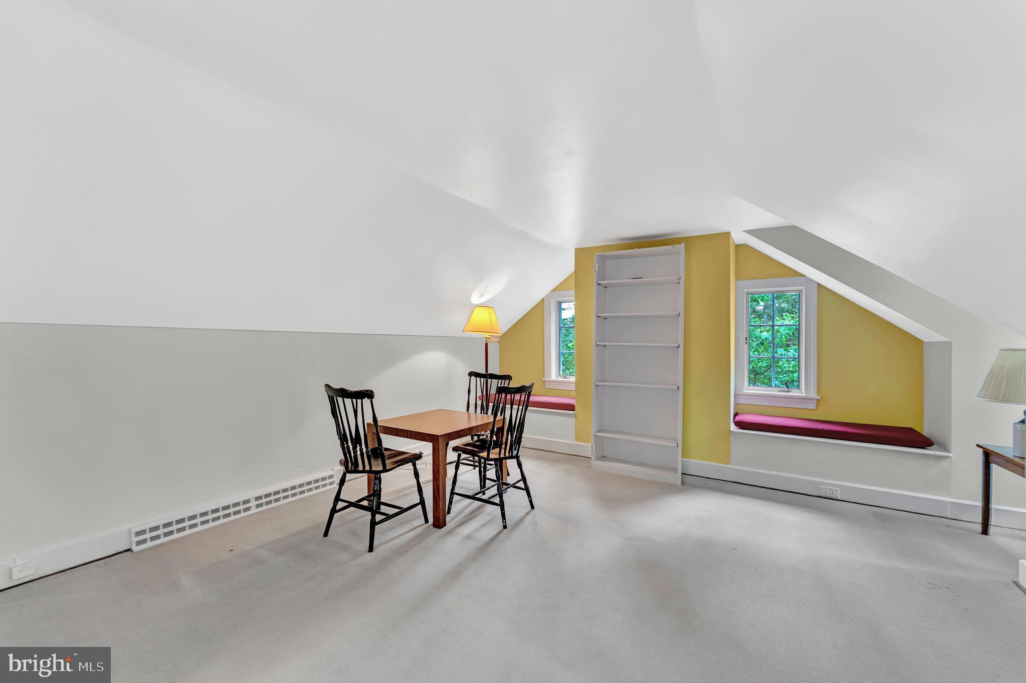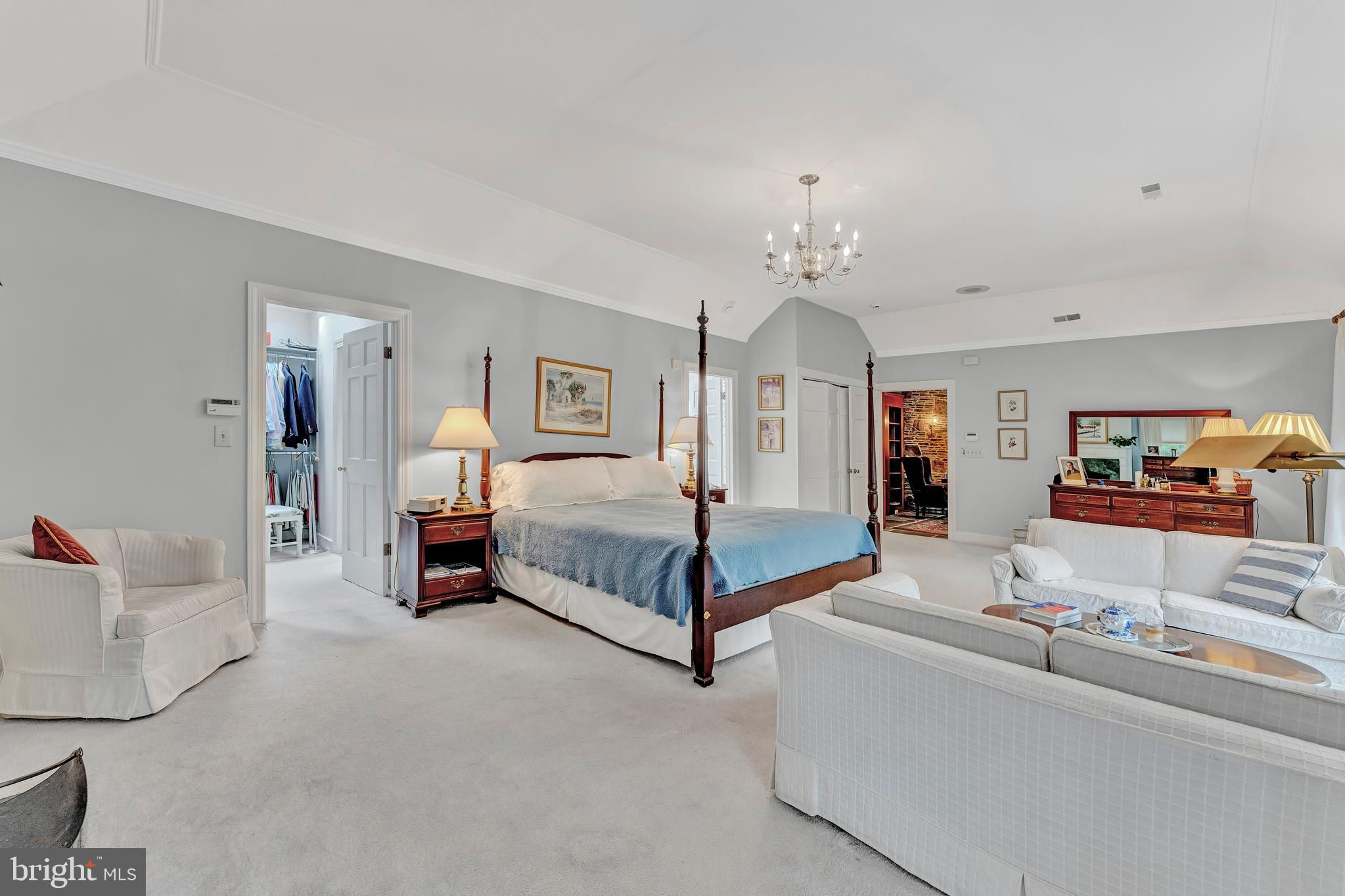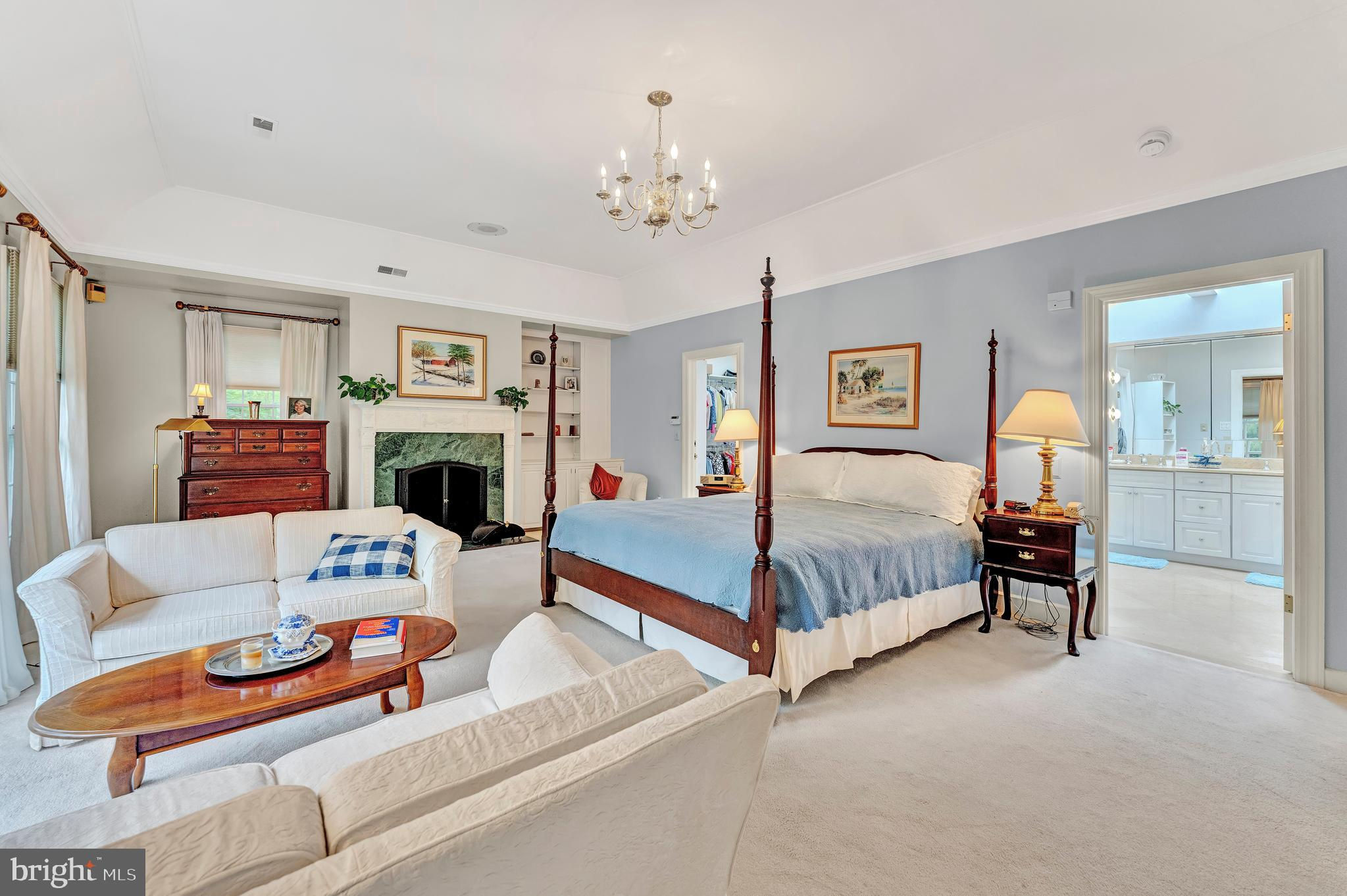 Welcome to this picturesque Princetonian estate located in the northern section of Princeton, New Jersey. This home is situated on almost 4 acres of land with private pond, elevated detached garage, wooded trails, and mature landscaping. The exterior esthetic is that of a historic Mercer County estate featuring slate tile roof, wood panel siding, natural stone, front balcony area, and 3 stories of well organized living space. With almost 4,700 finished square feet, this home is ideal for multi-generational living or accommodating larger families. The entire west wing of the property is a main level master suite with separate sitting room, dedicated office with built in shelving, spacious bedroom, walk-in closet, and full en-suite bathroom. The main level also provides a half bathroom, formal dining room, eat-in kitchen with full wall of windows, first floor laundry, large pantry, and a 2-story main living space. To access the second level, there are 2 sets of stairs, along with a fully-functioning elevator. The second floor features the second master suite with ample closet space and full bathroom, along with 2 additional bedrooms, a shared bathroom, and access to both the garage space, and the front balcony sitting area. The third floor has an additional bedroom/den with its own full bathroom. The garage has 3 separate bays and access to its own bonus storage space. The property has plenty of parking for larger gatherings and several outdoor spaces for dining, entertaining, pets, and play areas. There is even a private trail leading to the property's pond which borders the Pretty Brook Tennis Club. Ease-of-maintenance with updated utilities, public water/sewer, and well-maintained grounds. Take full advantage of the highly rated Princeton schools, the exciting downtown shops/eateries, and easy access to the beaches and major cities around Central New Jersey. Explore the home virtually via the 3D tour link!