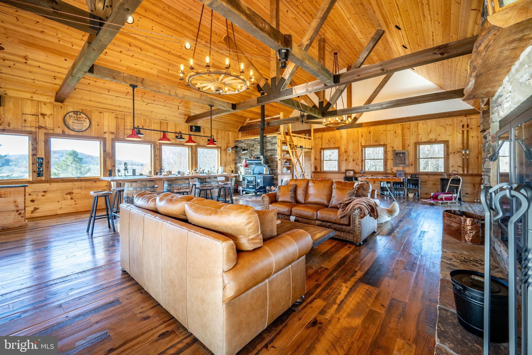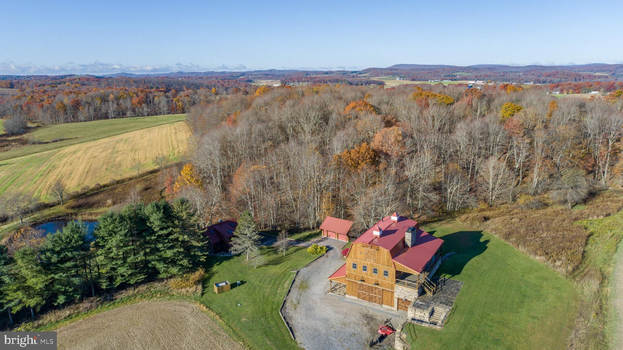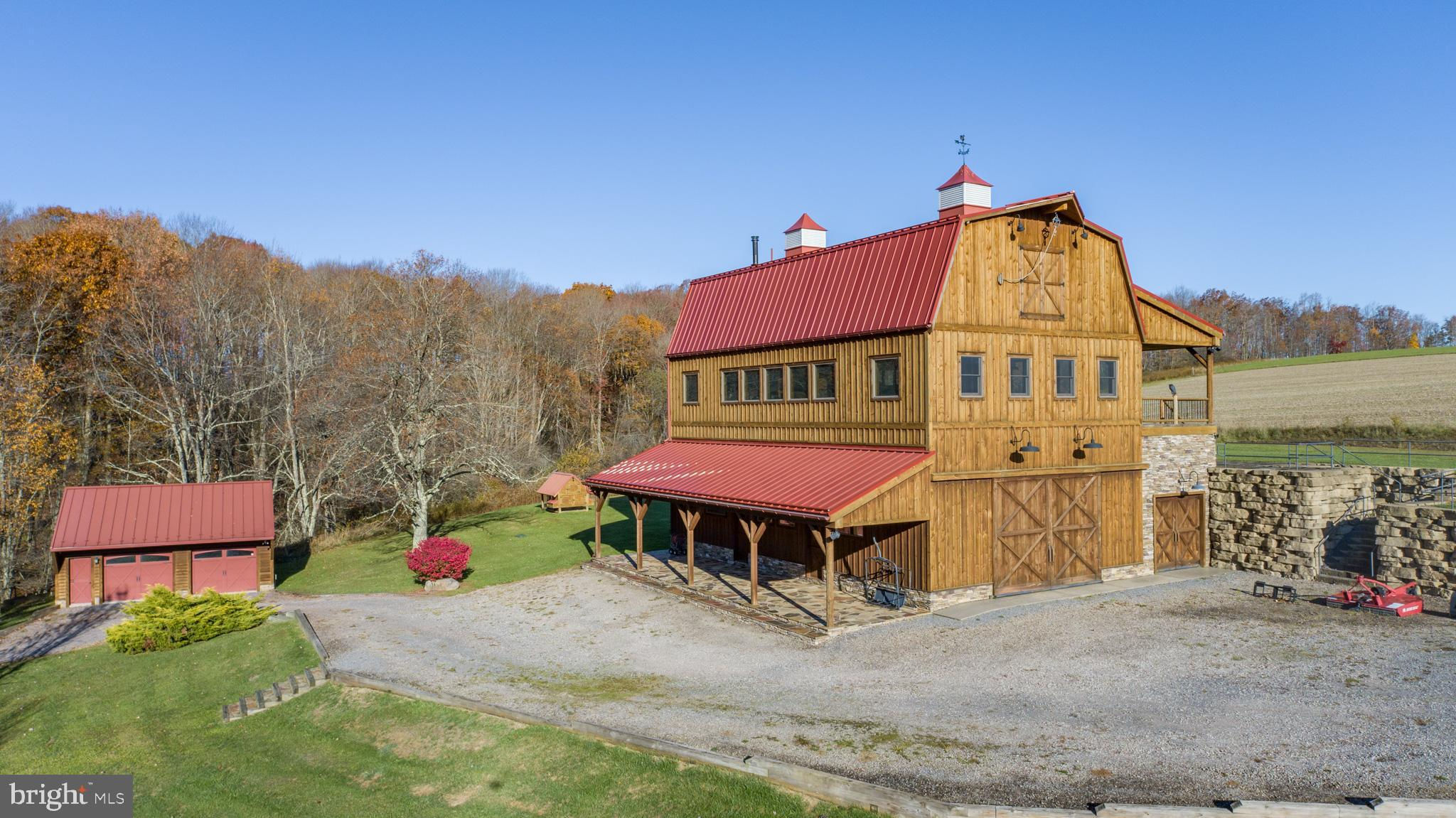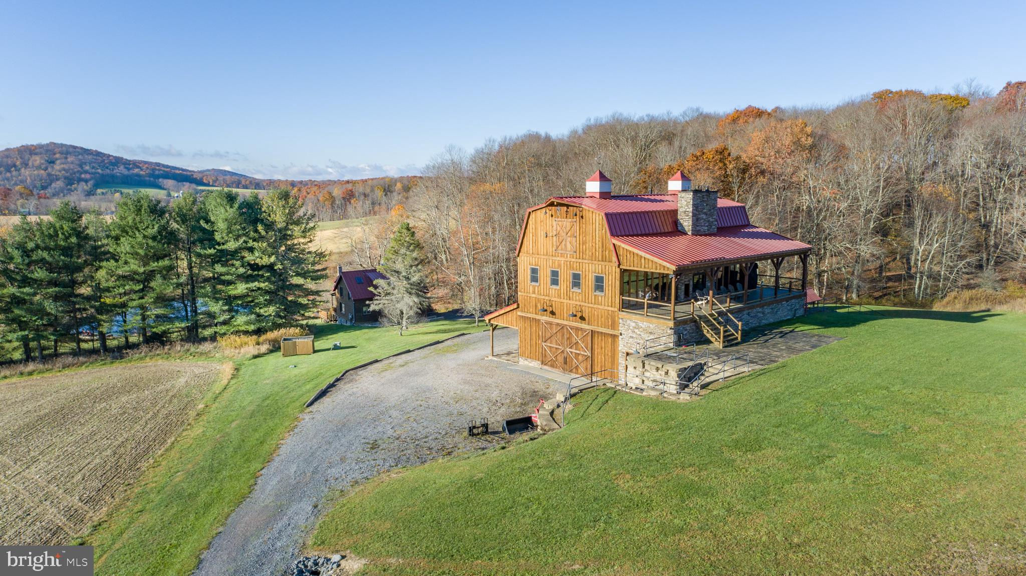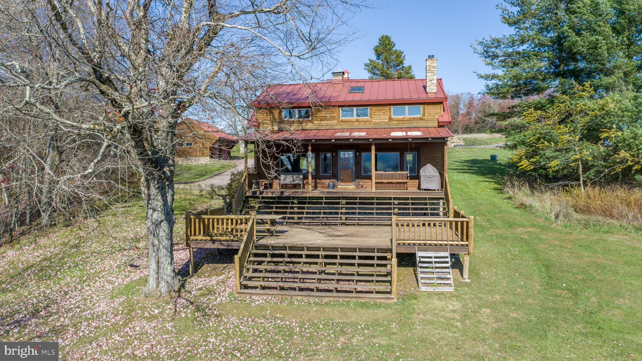 Experience your own slice of paradise in the highly desirable Pleasant Valley area of Garrett County. This scenic 3-bedroom log home overlooks a serene private pond, nestled on 22 breathtaking acres that blend open pasture with peaceful wooded areas, all with stunning mountain views. The property boasts a 2-car detached garage and an impressive, upscale barn with a spacious workshop, offering endless possibilities for your hobbies or business ventures. Above the workshop, you’ll discover a stunning entertainment area perfect for hosting gatherings. Featuring a stacked stone fireplace, a kitchen and bar area, a game room area, and a loft for additional sleeping space, plus a full bathroom, this area is built to impress. Currently operating as a small farm, including a fully fenced in pasture (electrified) to include a lean to with a spring fed trough for animals to graze in. This property offers a unique blend of luxury, functionality, and tranquility. Truly a must-see, this property has everything you’ve been searching for. Schedule your appointment today and step into the lifestyle of your dreams!