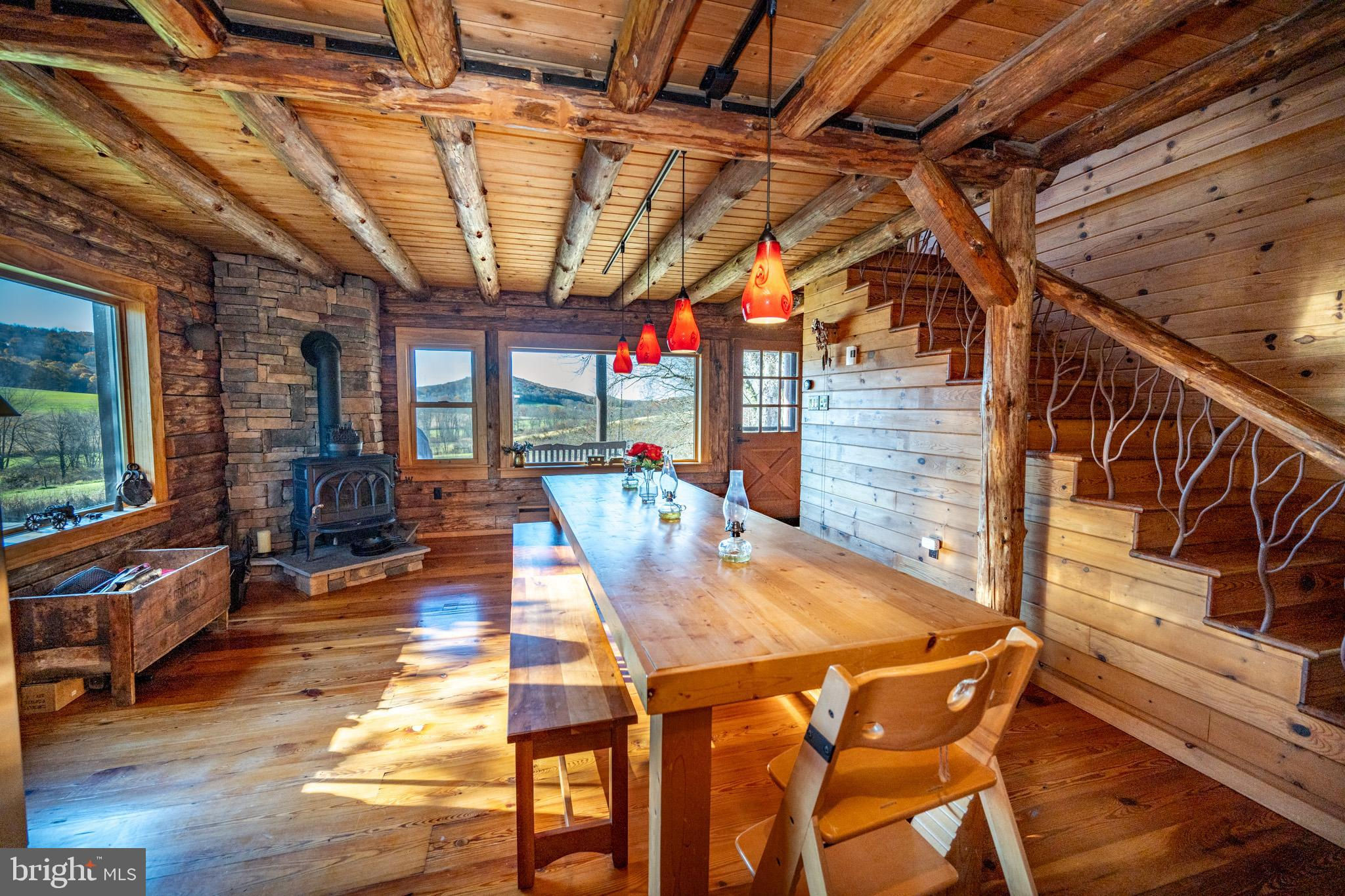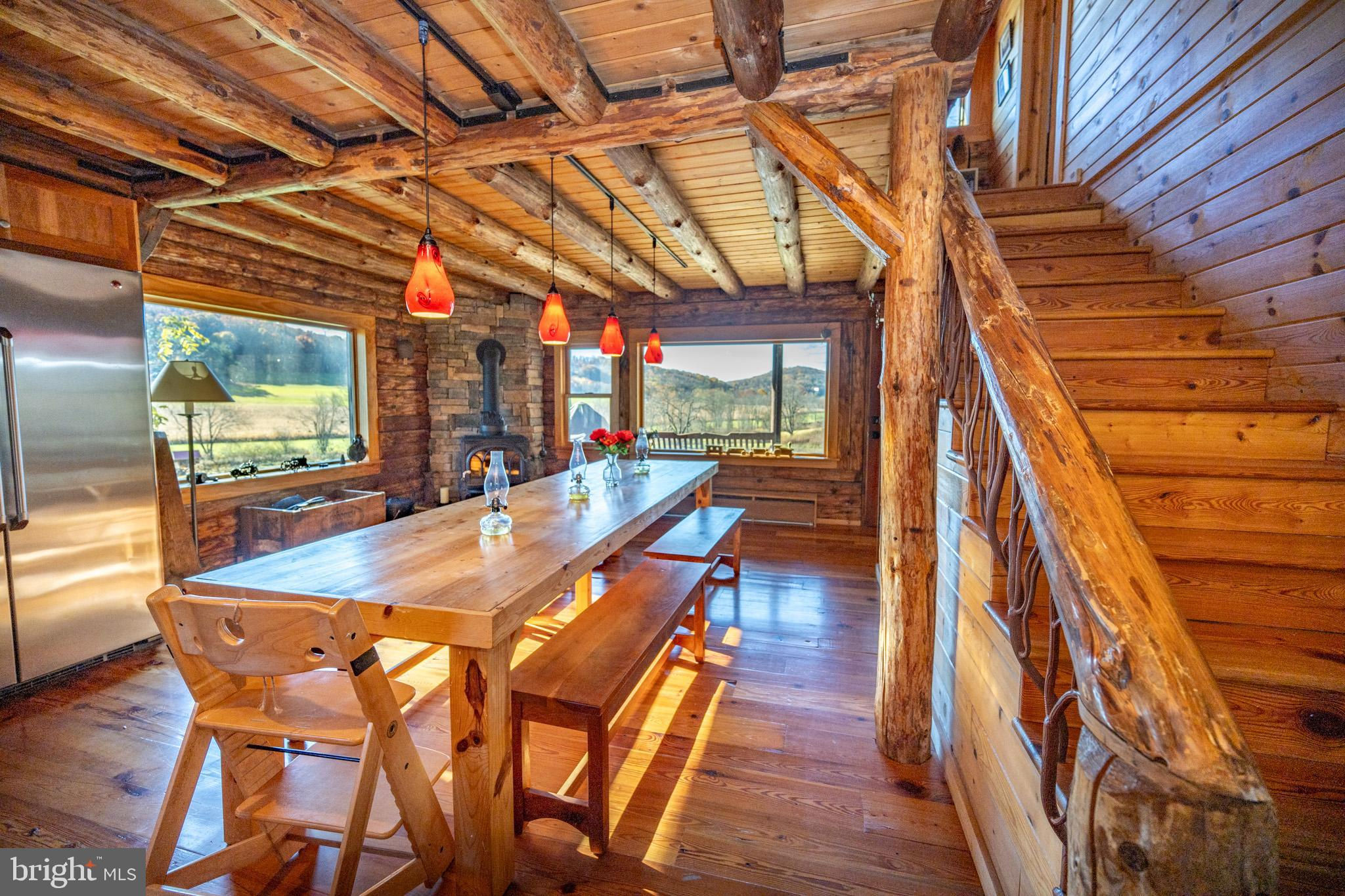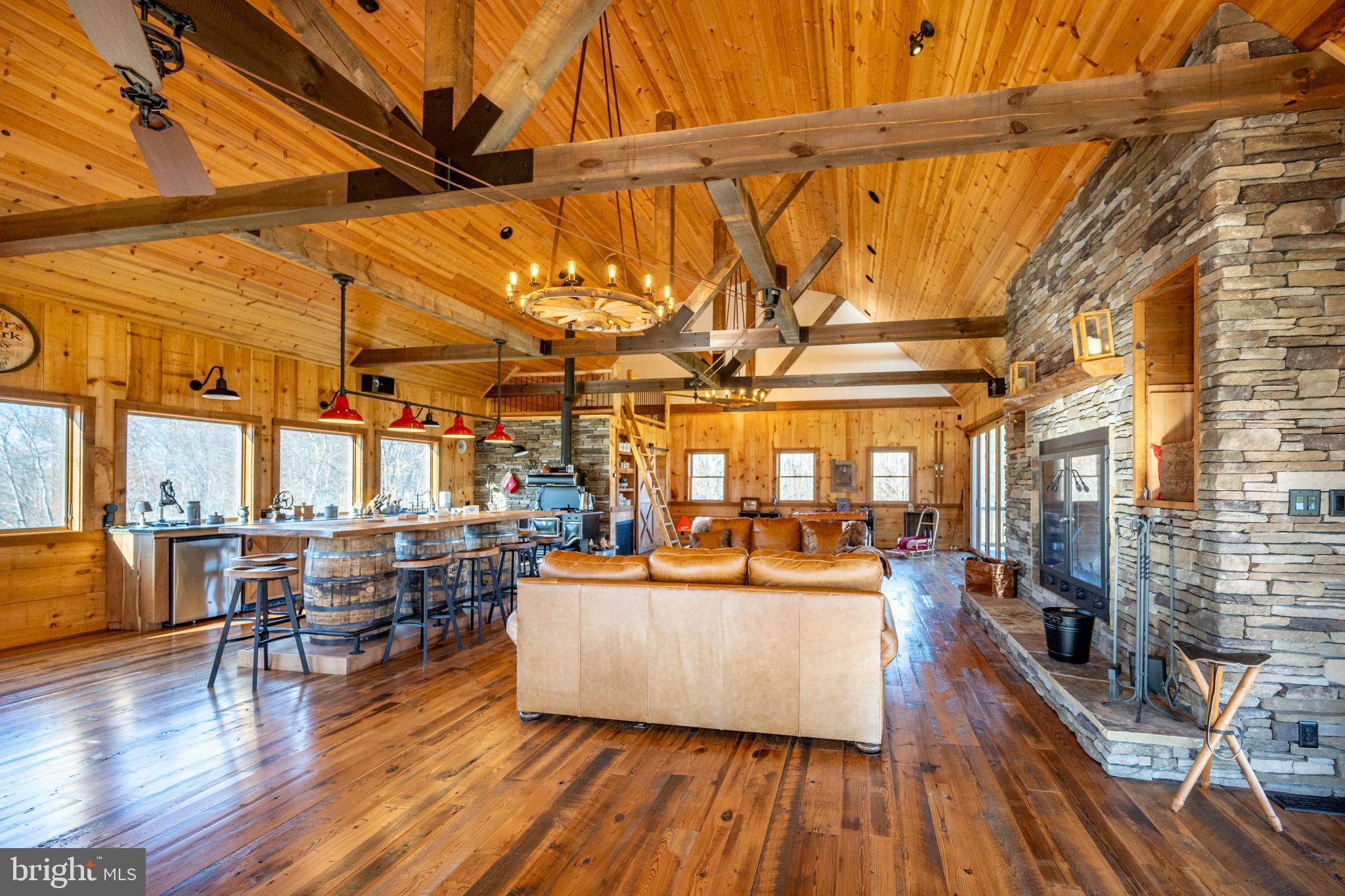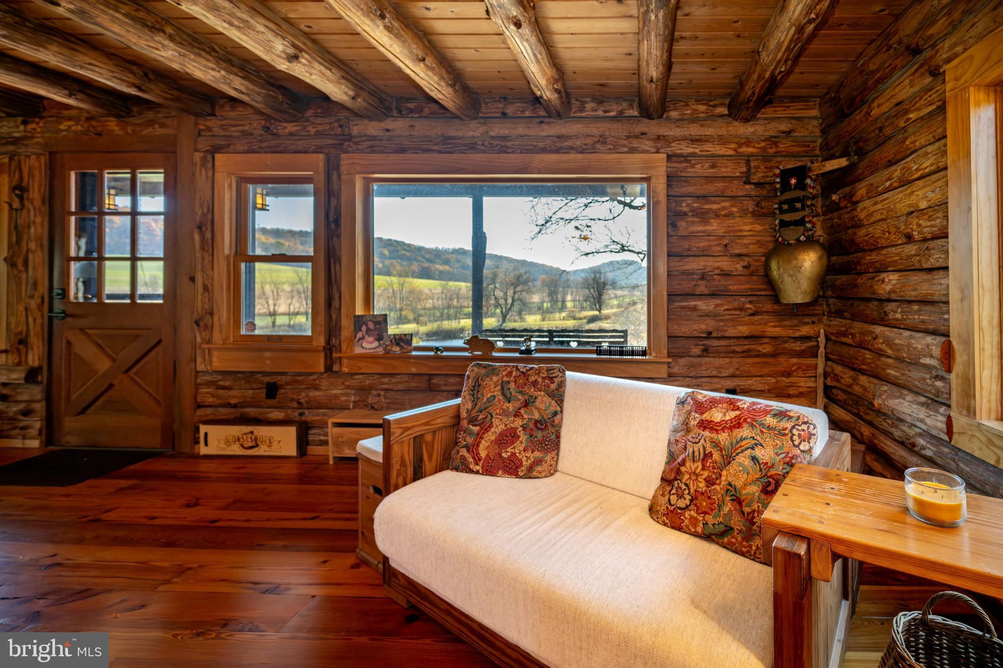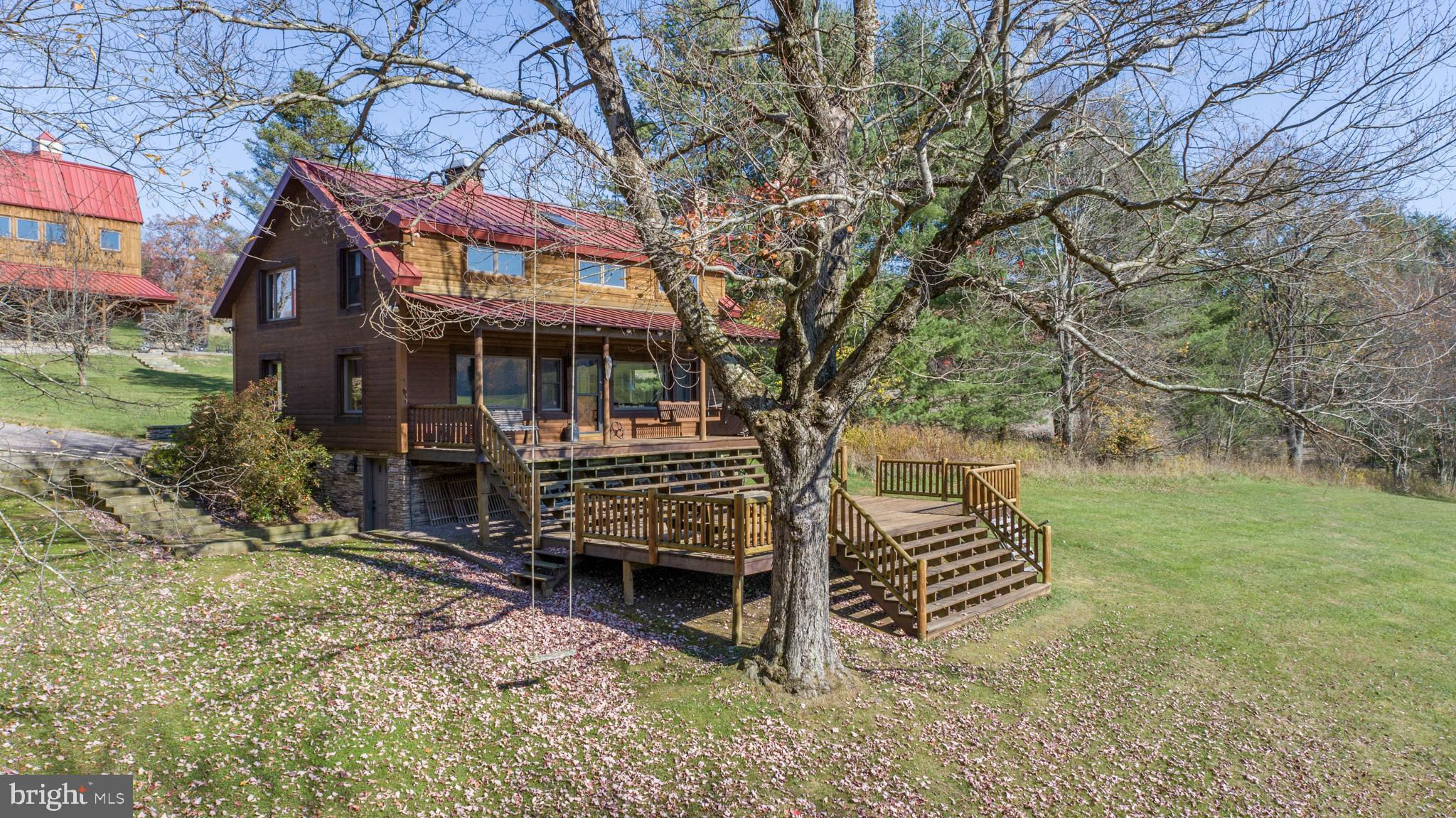 Experience your own slice of paradise in the highly desirable Pleasant Valley area of Garrett County. This scenic 3-bedroom log home overlooks a serene private pond, nestled on 22 breathtaking acres that blend open pasture with peaceful wooded areas, all with stunning mountain views. The property boasts a 2-car detached garage and an impressive, upscale barn with a spacious workshop, offering endless possibilities for your hobbies or business ventures. Above the workshop, you’ll discover a stunning entertainment area perfect for hosting gatherings. Featuring a stacked stone fireplace, a kitchen and bar area, a game room area, and a loft for additional sleeping space, plus a full bathroom, this area is built to impress. Currently operating as a small farm, including a fully fenced in pasture (electrified) to include a lean to with a spring fed trough for animals to graze in. This property offers a unique blend of luxury, functionality, and tranquility. Truly a must-see, this property has everything you’ve been searching for. Schedule your appointment today and step into the lifestyle of your dreams!