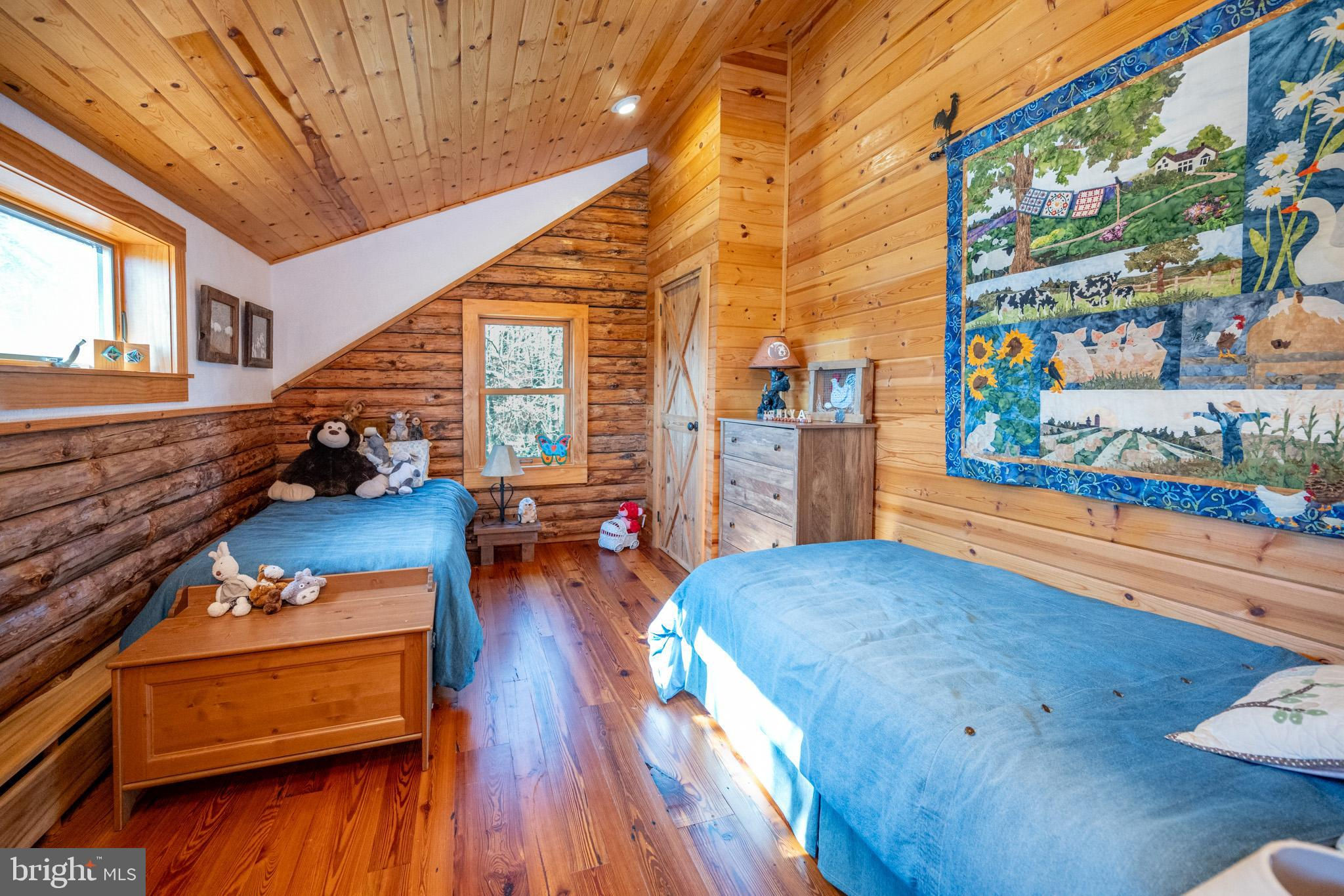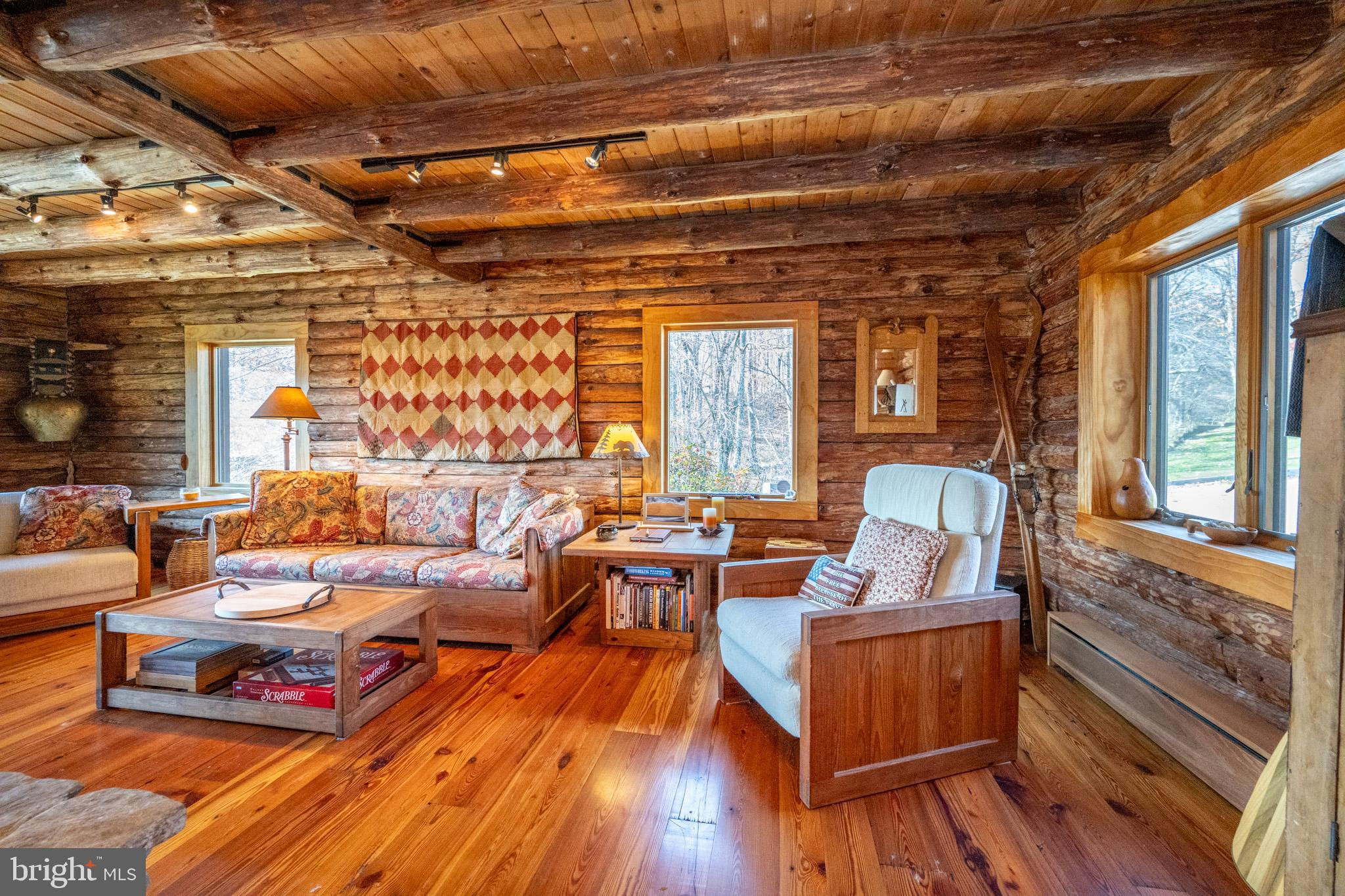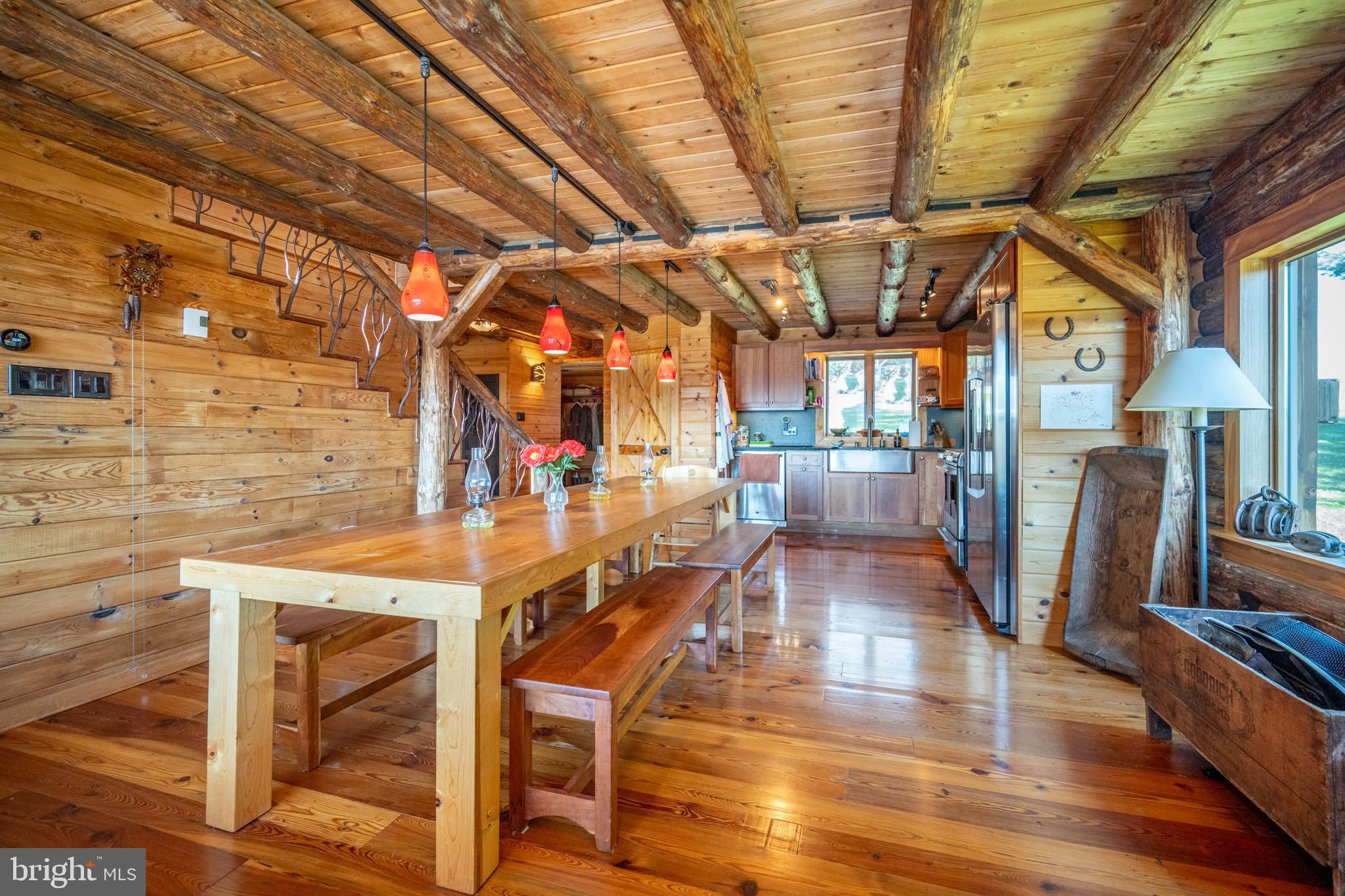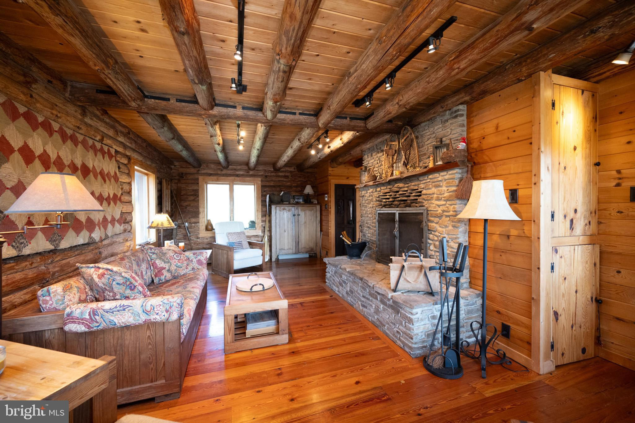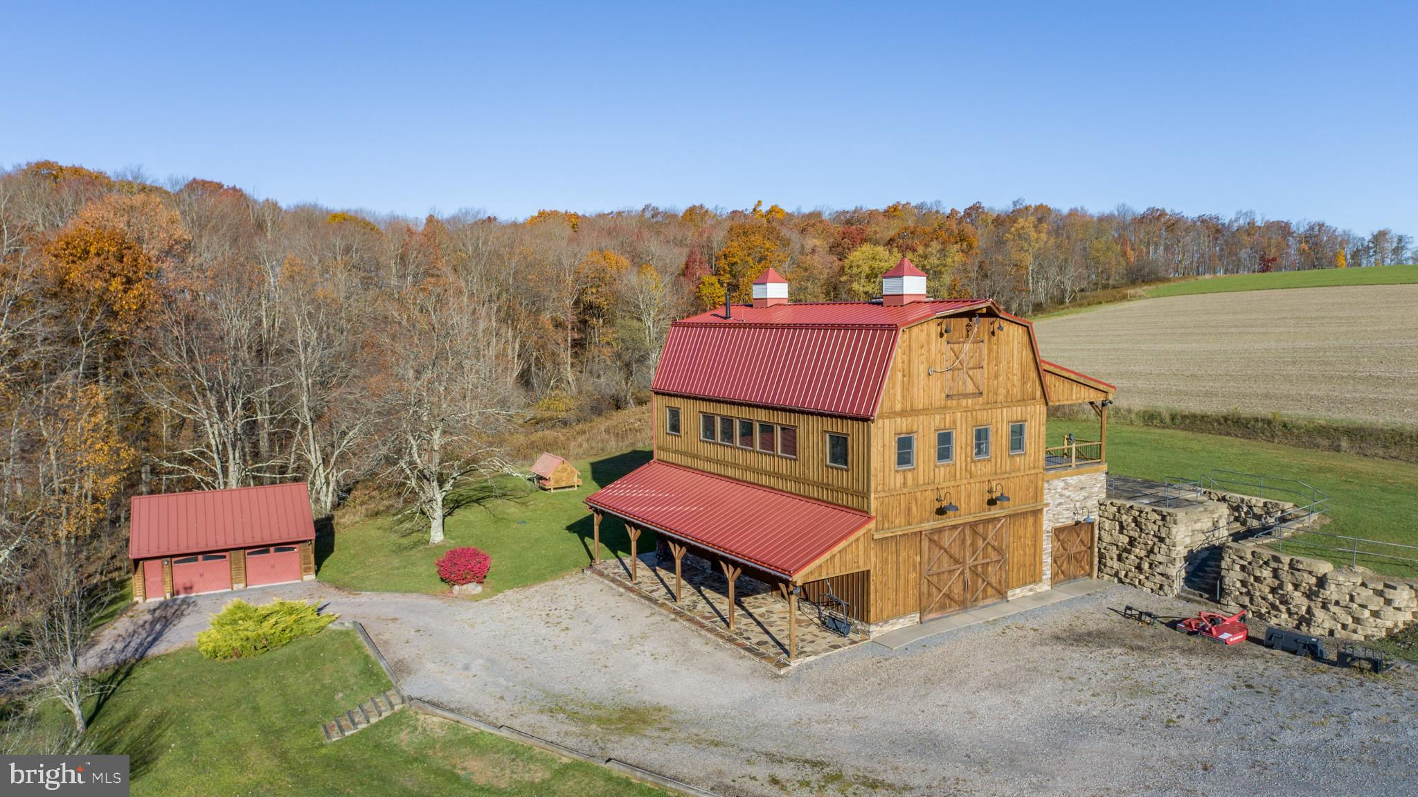 Experience your own slice of paradise in the highly desirable Pleasant Valley area of Garrett County. This scenic 3-bedroom log home overlooks a serene private pond, nestled on 22 breathtaking acres that blend open pasture with peaceful wooded areas, all with stunning mountain views. The property boasts a 2-car detached garage and an impressive, upscale barn with a spacious workshop, offering endless possibilities for your hobbies or business ventures. Above the workshop, you’ll discover a stunning entertainment area perfect for hosting gatherings. Featuring a stacked stone fireplace, a kitchen and bar area, a game room area, and a loft for additional sleeping space, plus a full bathroom, this area is built to impress. Currently operating as a small farm, including a fully fenced in pasture (electrified) to include a lean to with a spring fed trough for animals to graze in. This property offers a unique blend of luxury, functionality, and tranquility. Truly a must-see, this property has everything you’ve been searching for. Schedule your appointment today and step into the lifestyle of your dreams!